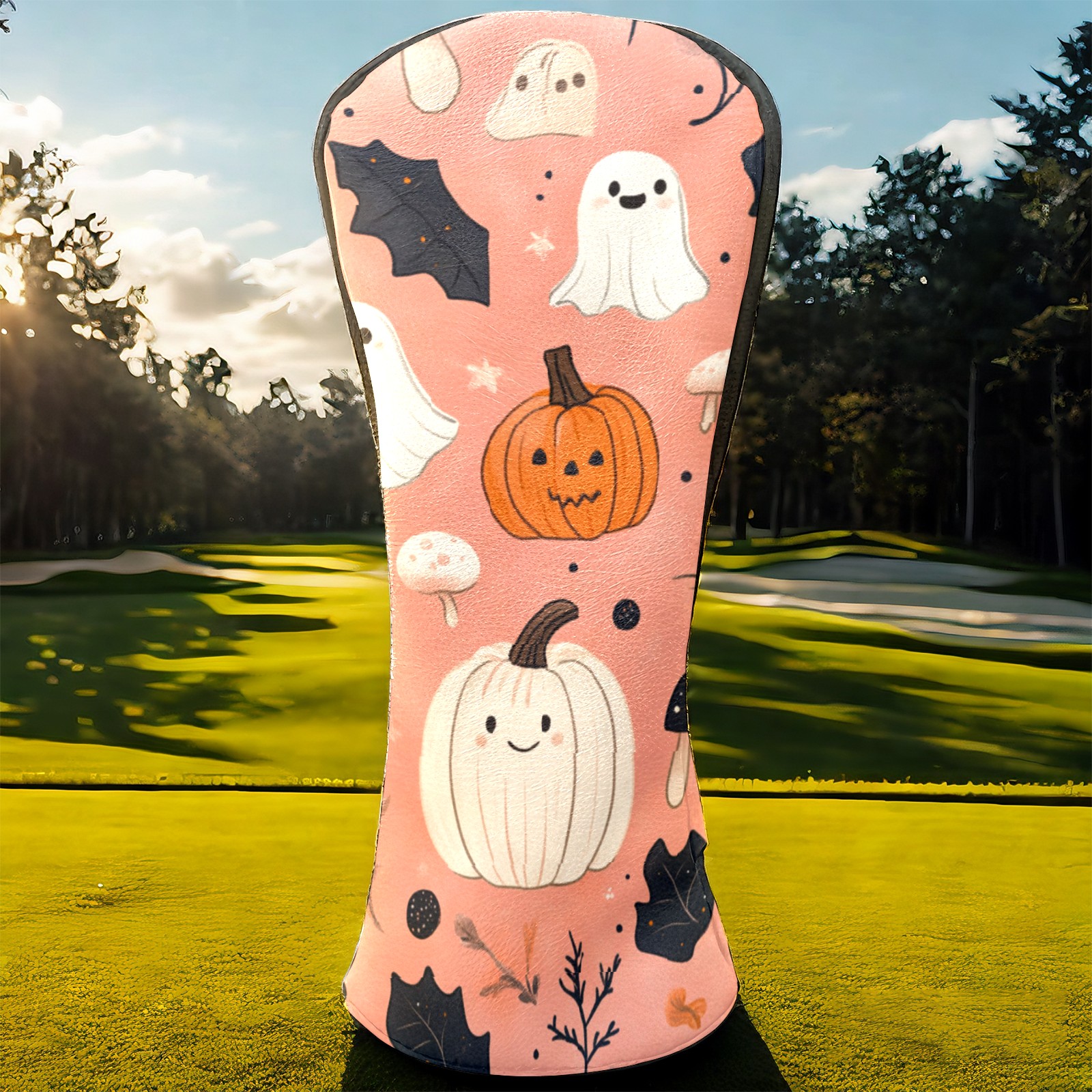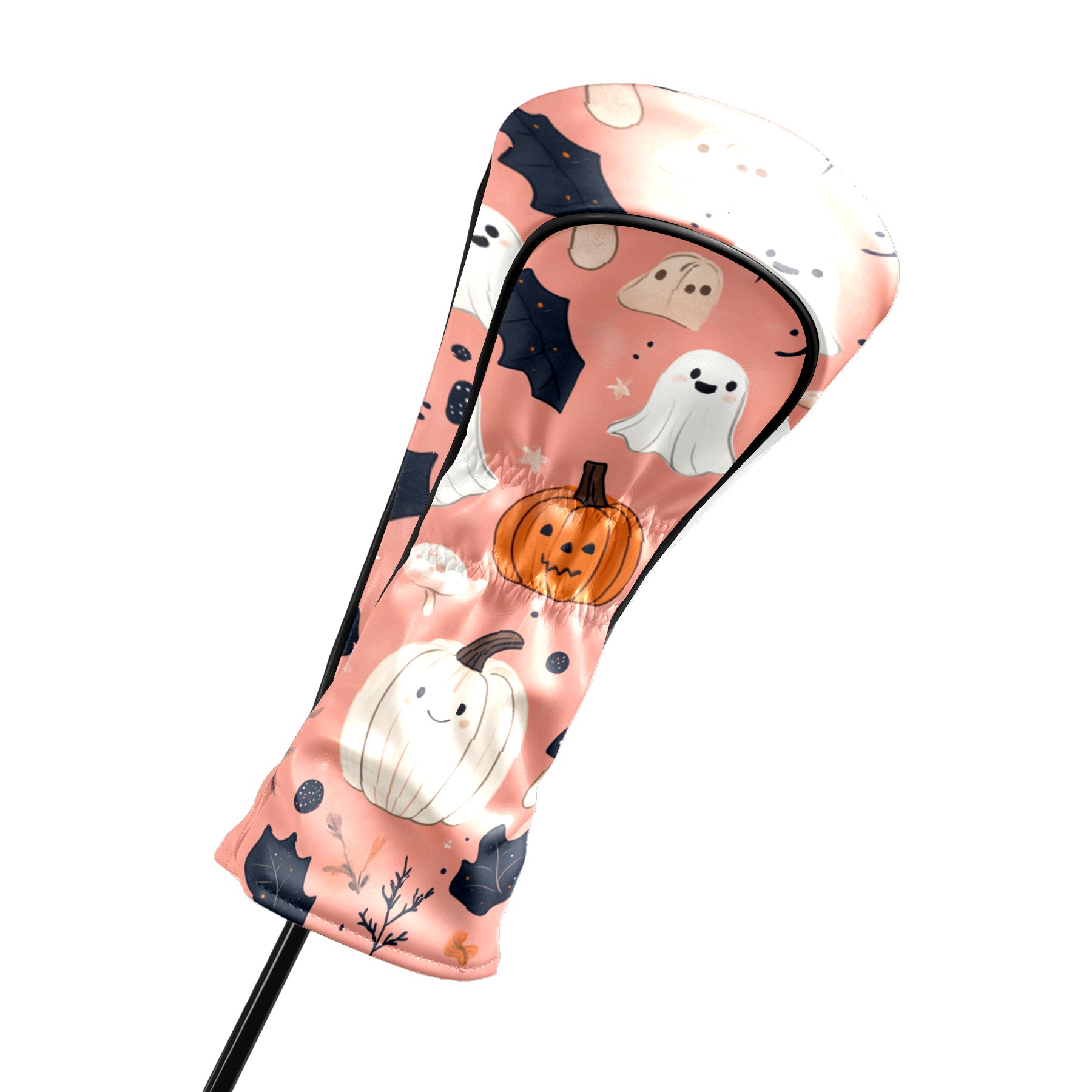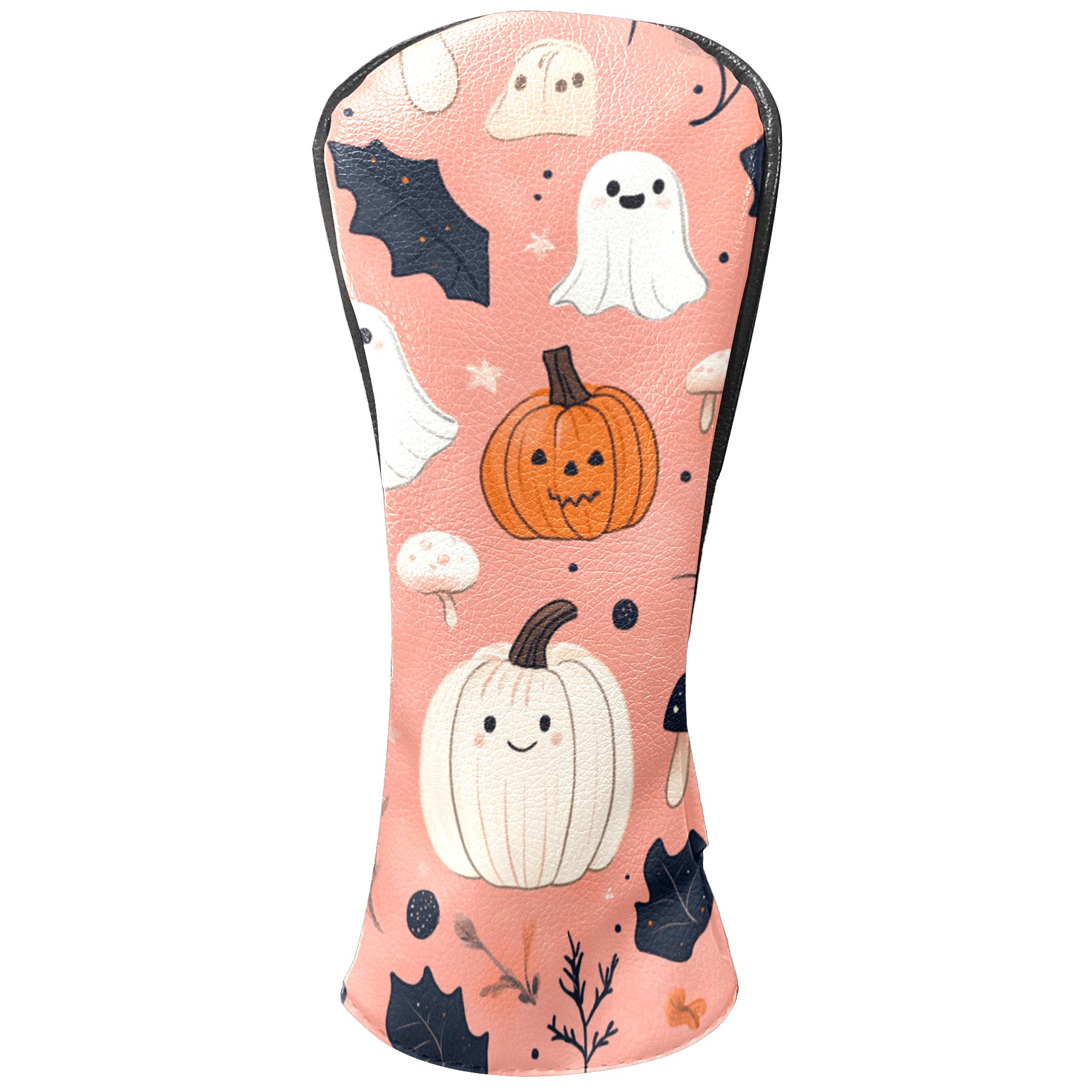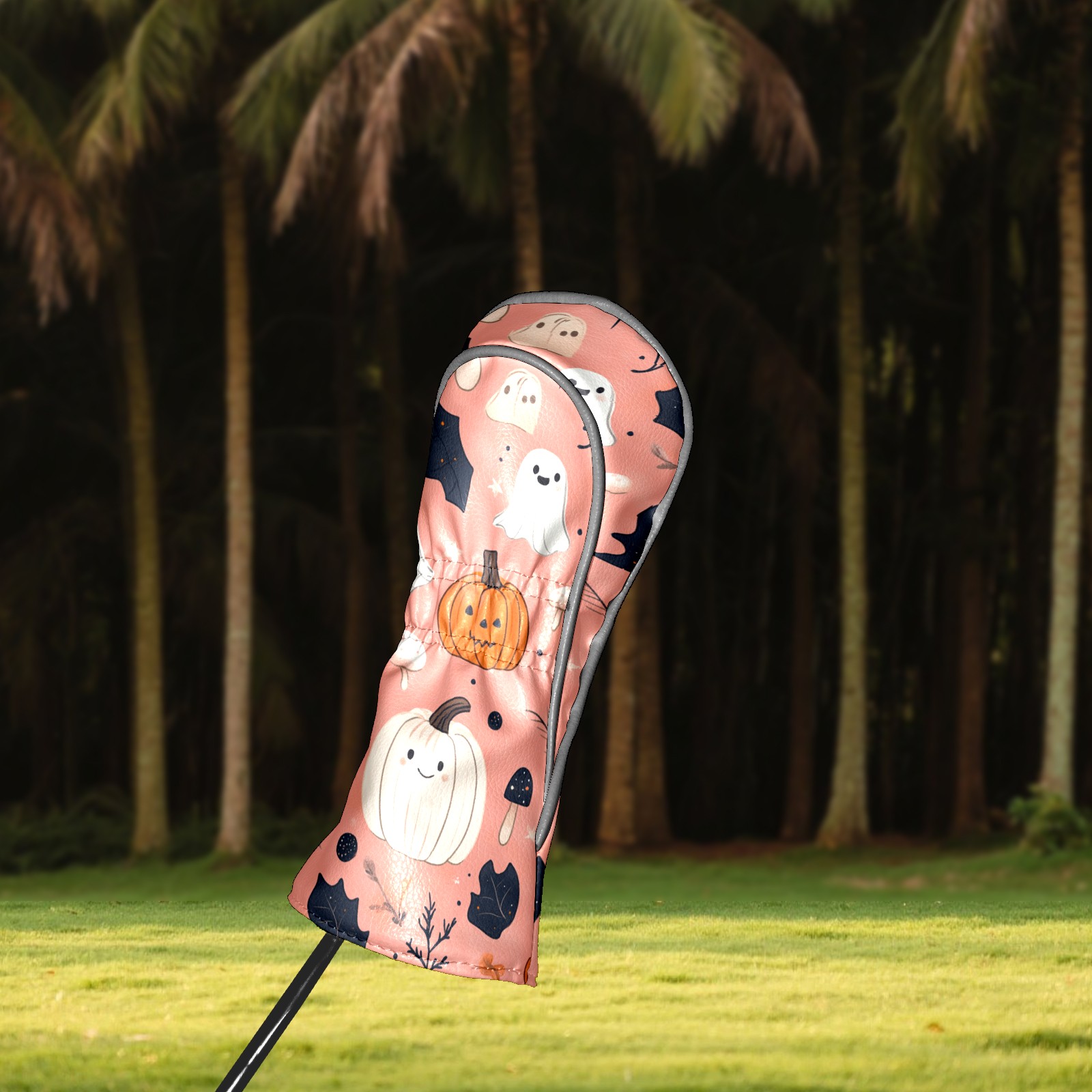Golf Club Covers PU Leather Waterproof,Golf Club Head Covers for Fairway Woods and Hybrids Pink Halloween Pattern Unisex Suitable for Most Brands