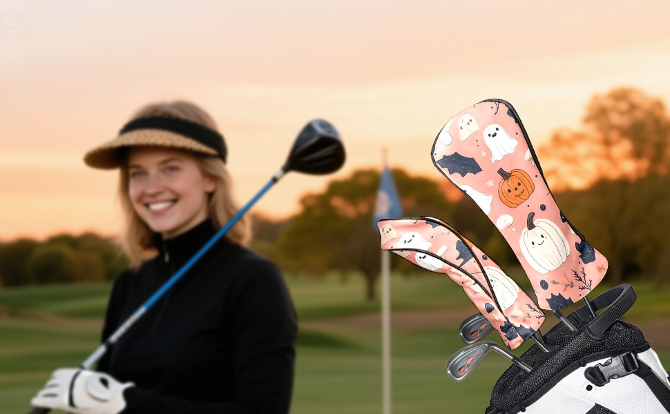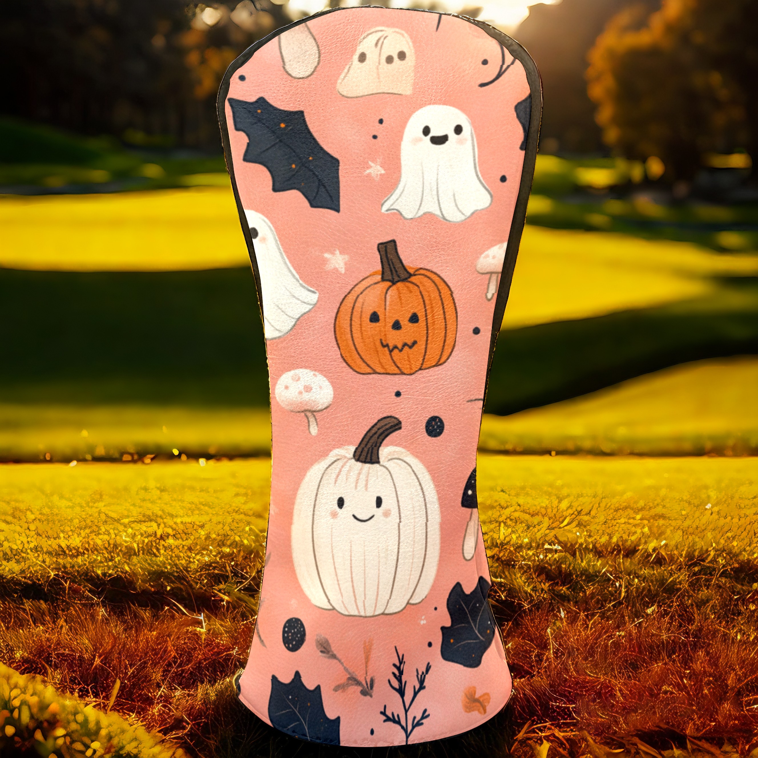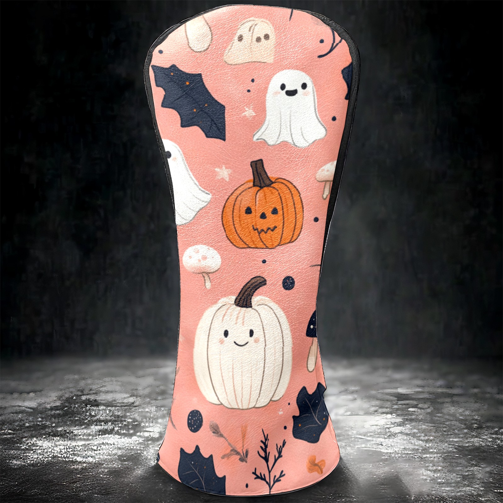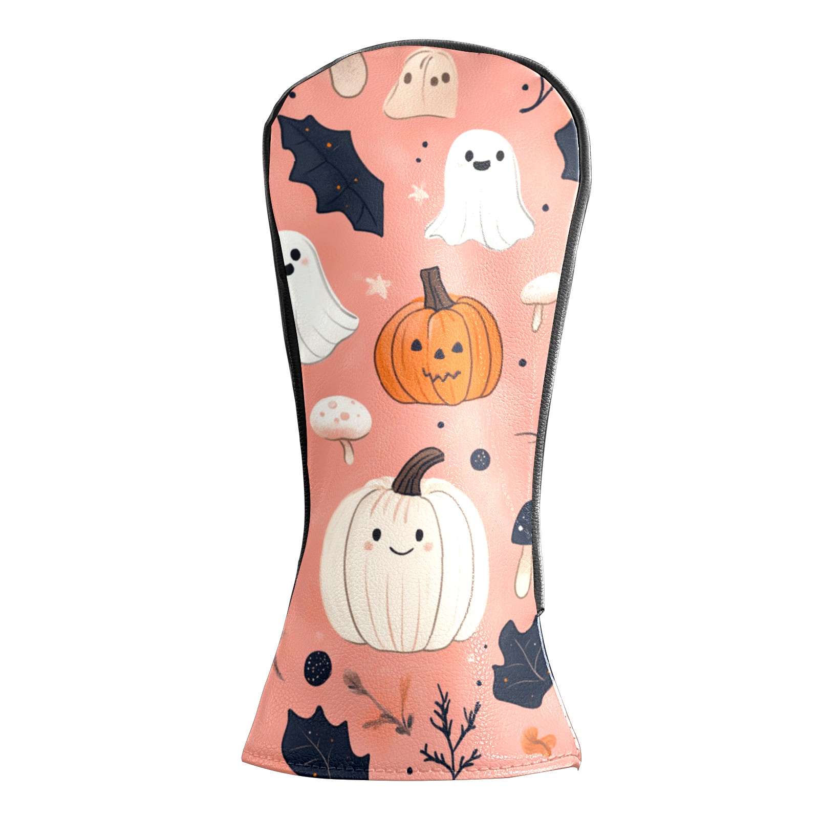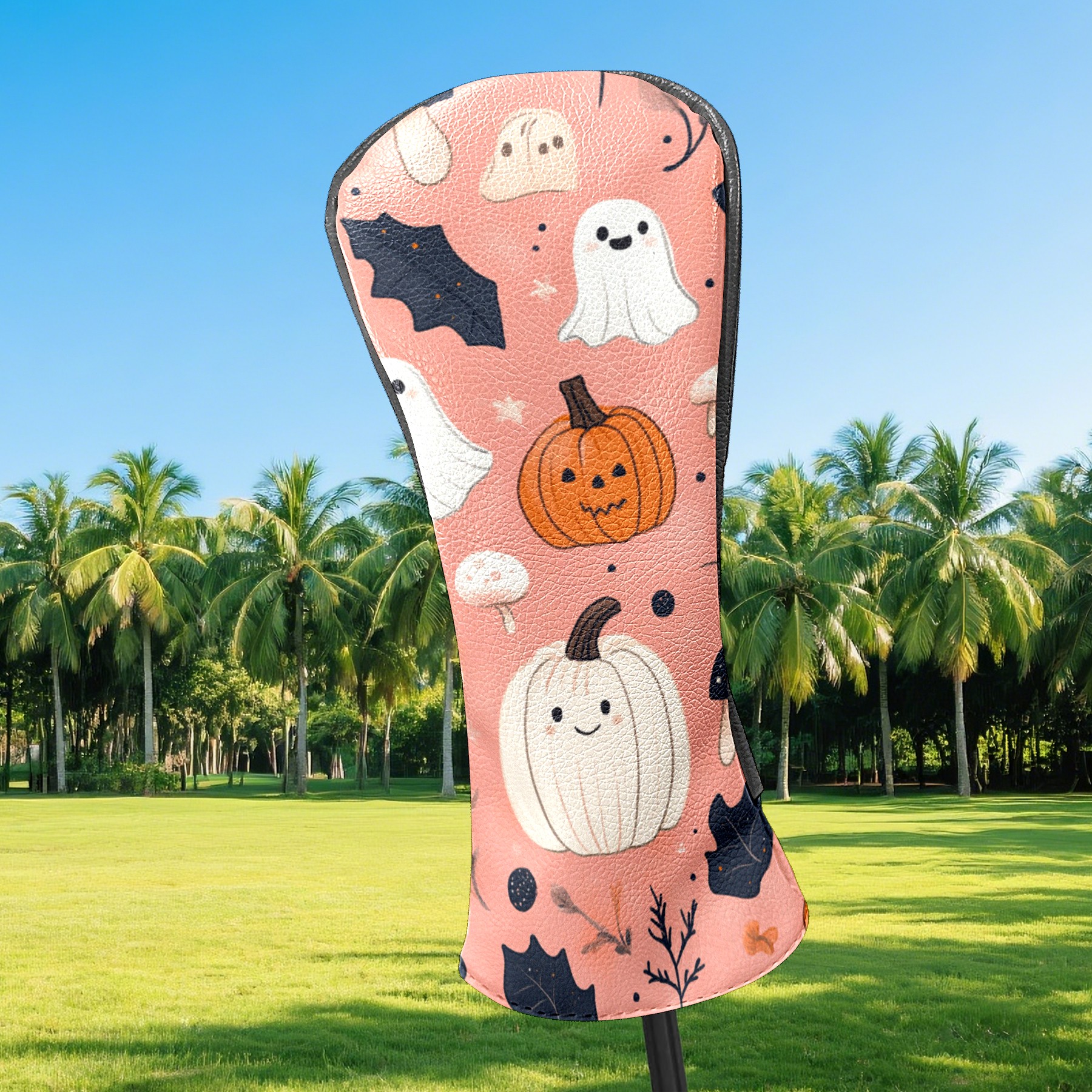 Golf Club Covers PU Leather Waterproof,Golf Club Head Covers for Fairway Woods and Hybrids Pink Halloween Pattern Unisex Suitable for Most Brands