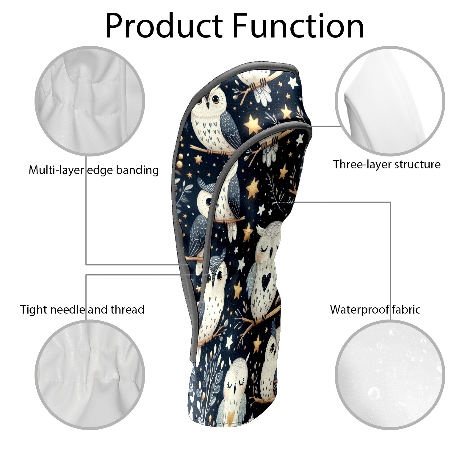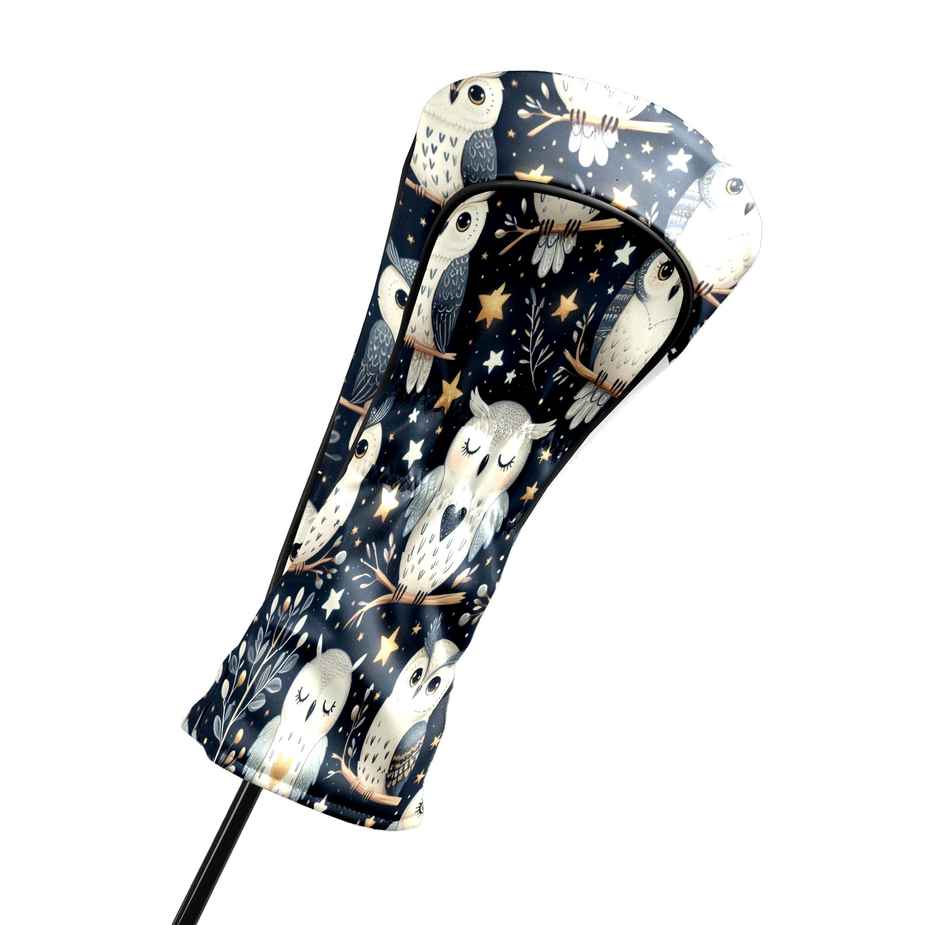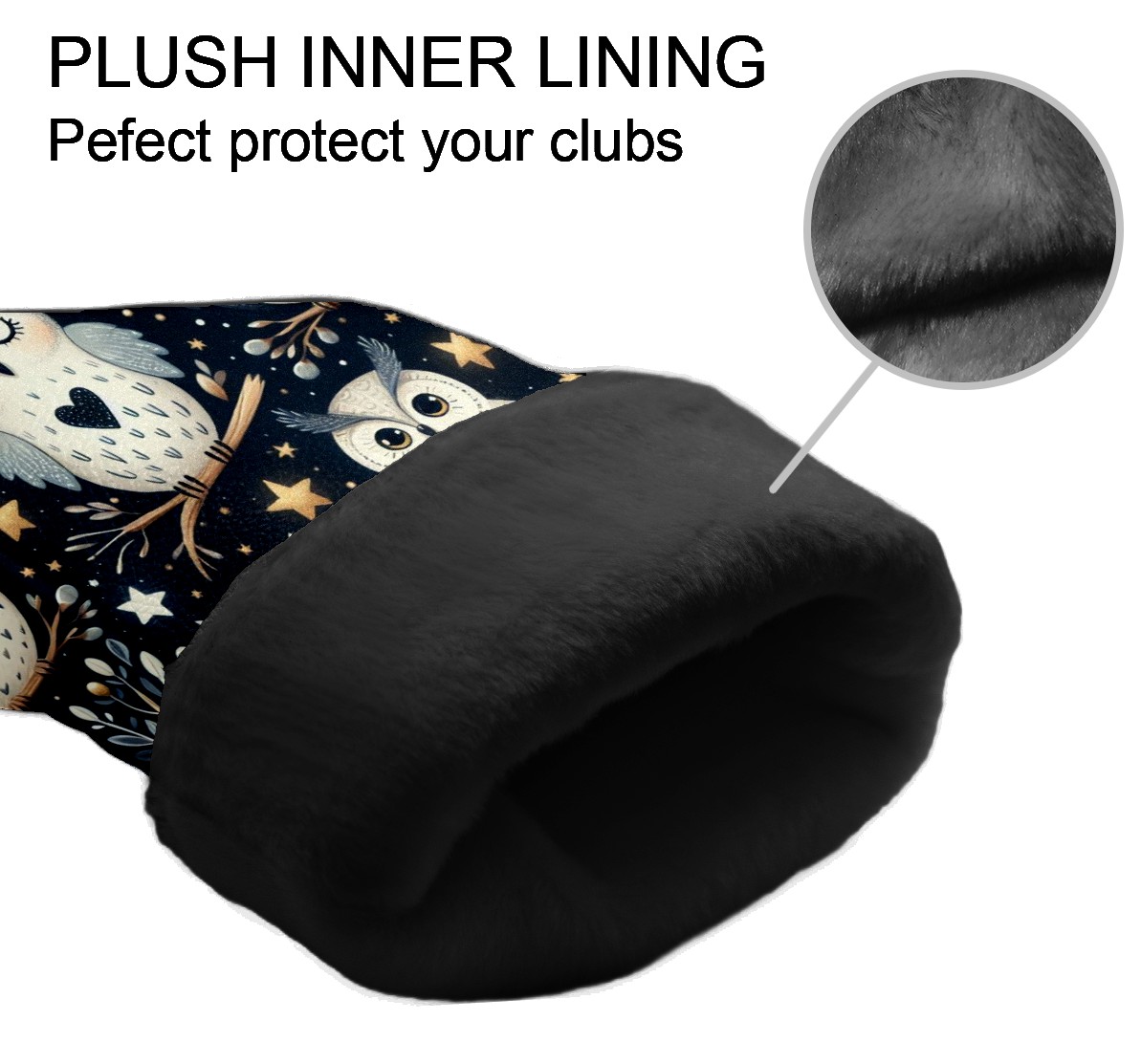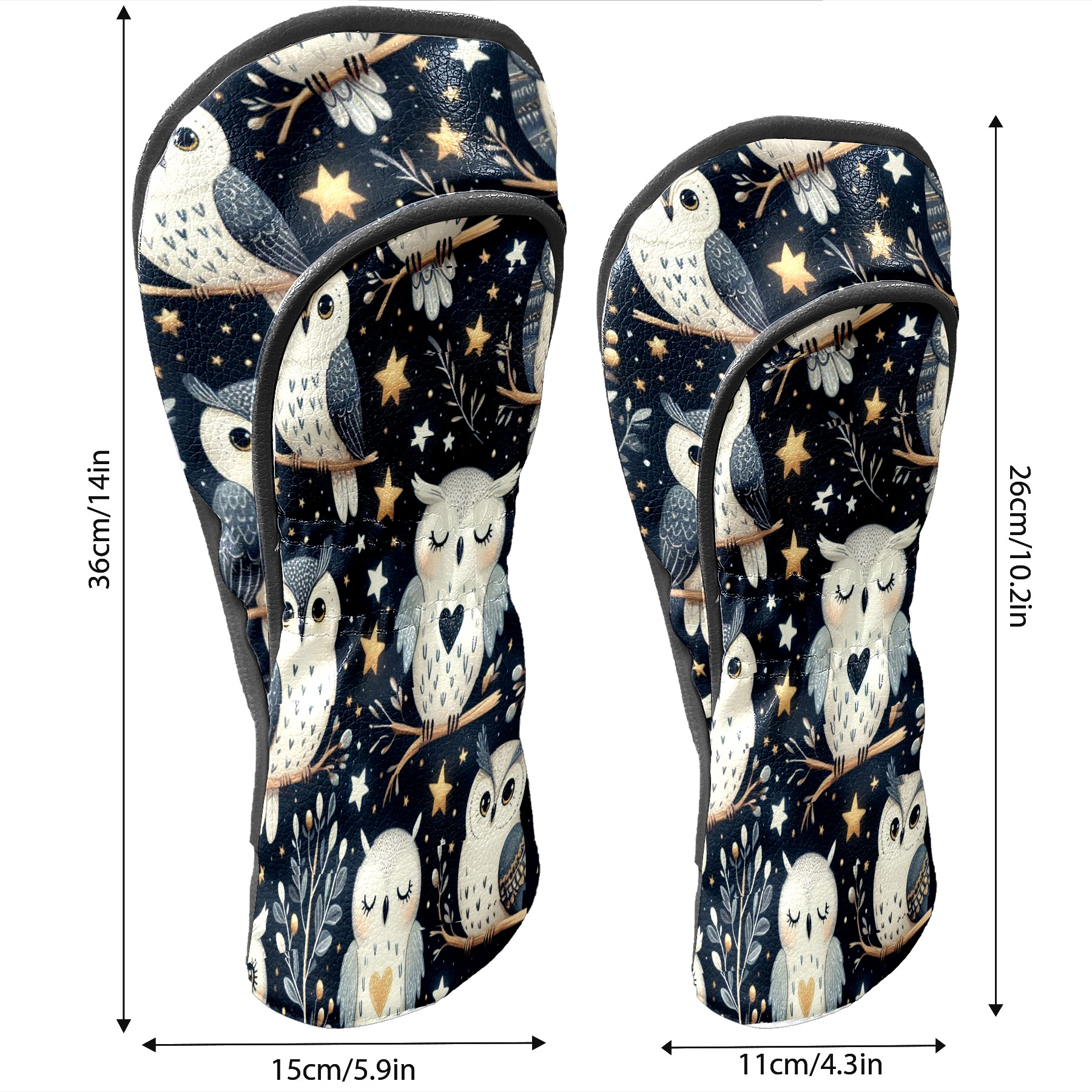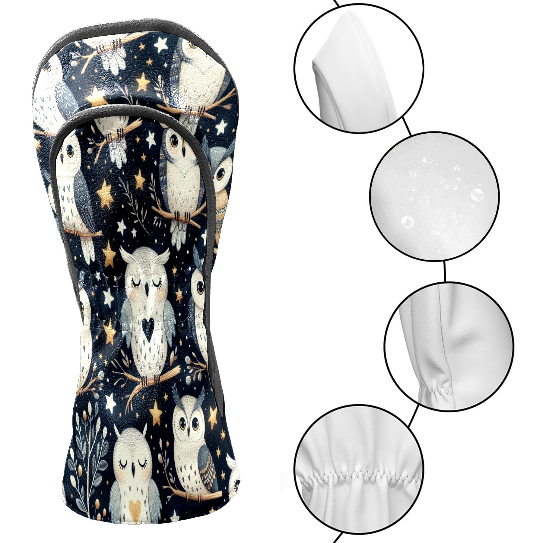 Golf Club Covers, Starlight Owl Premium PU Leather Driver Hybrid Putter Head Covers with Velvet Lining, Waterproof Golf Gifts for Men Women