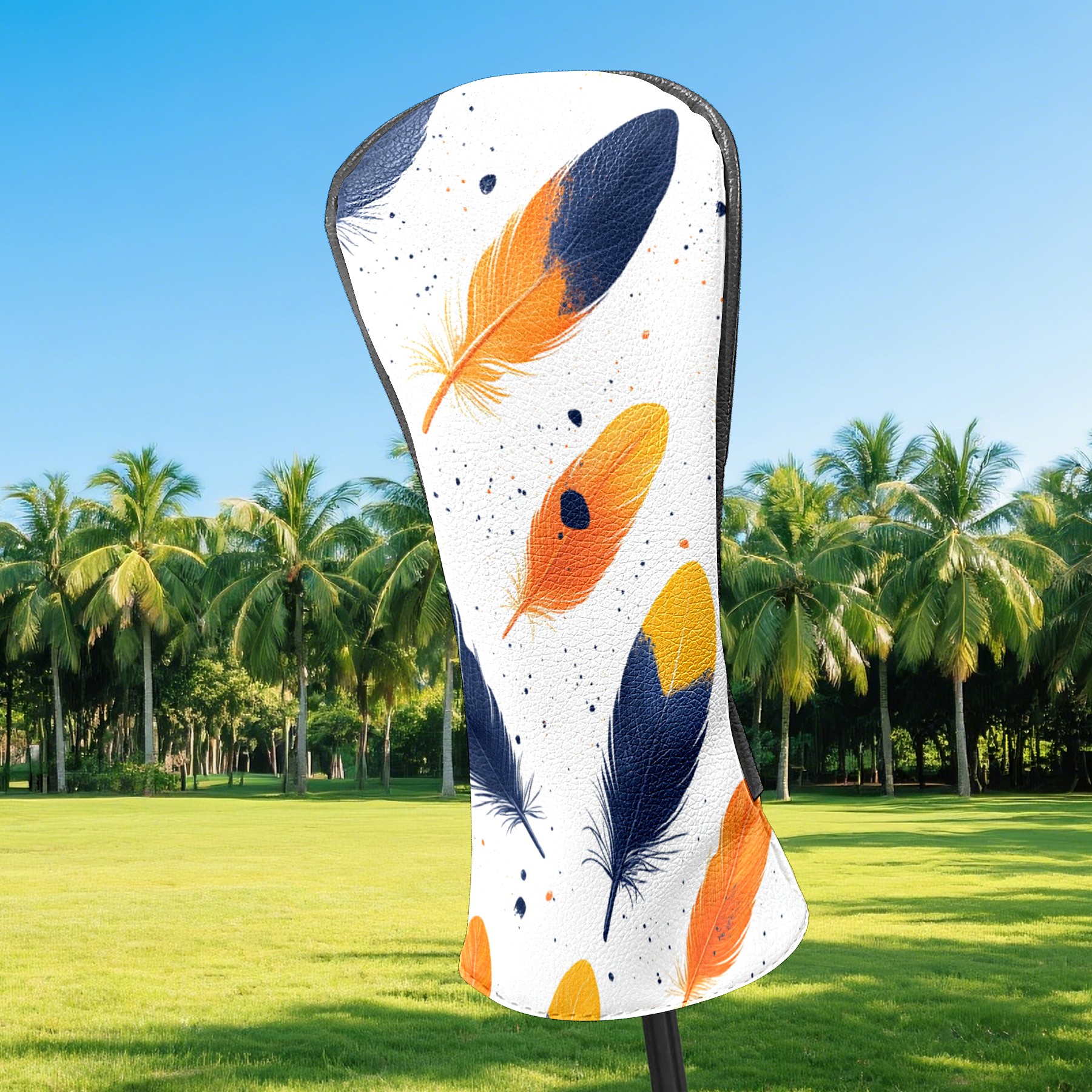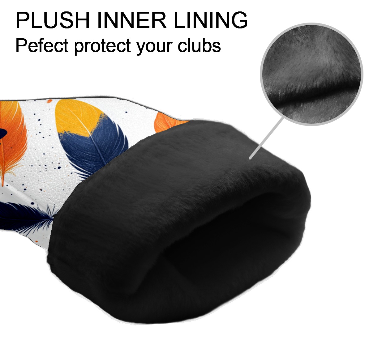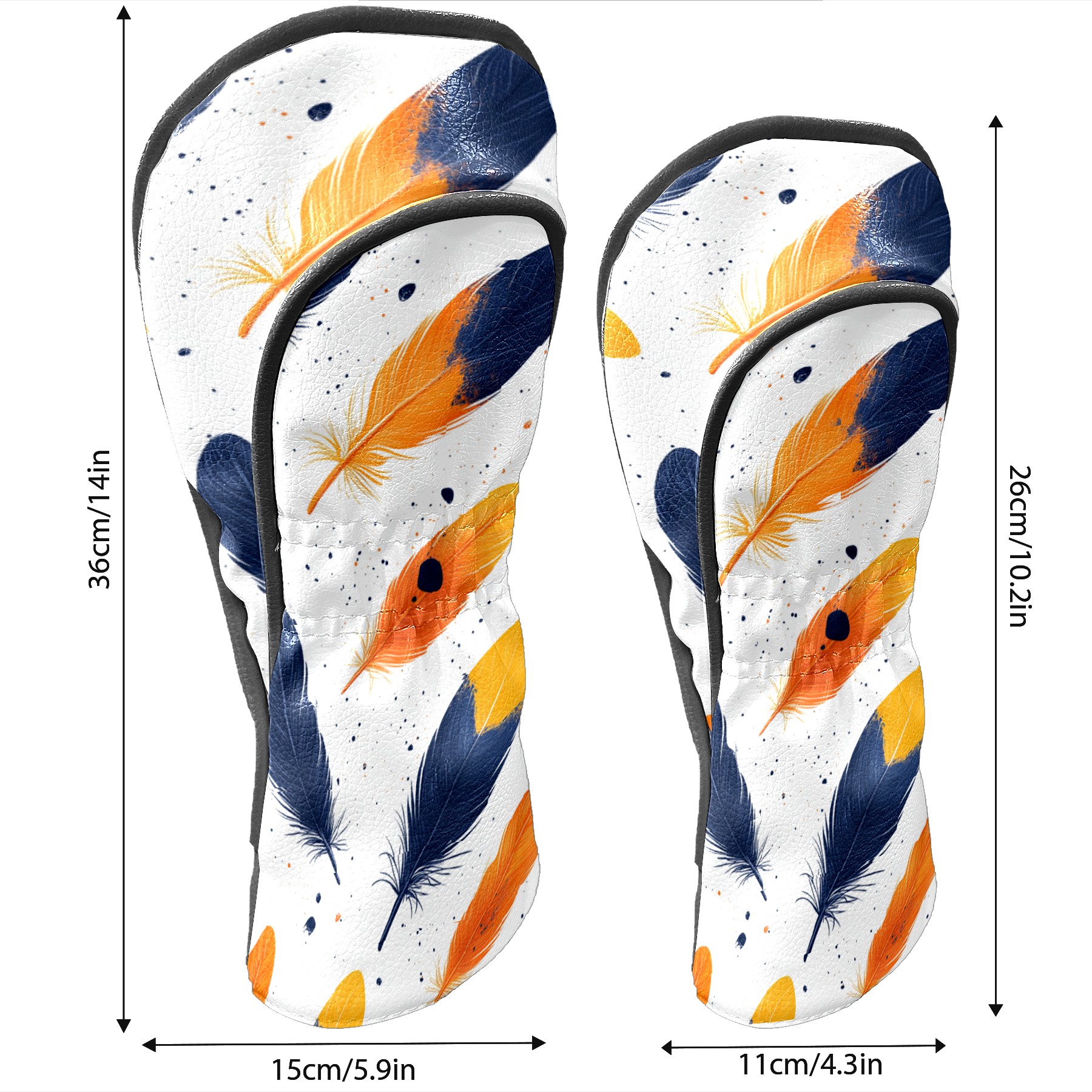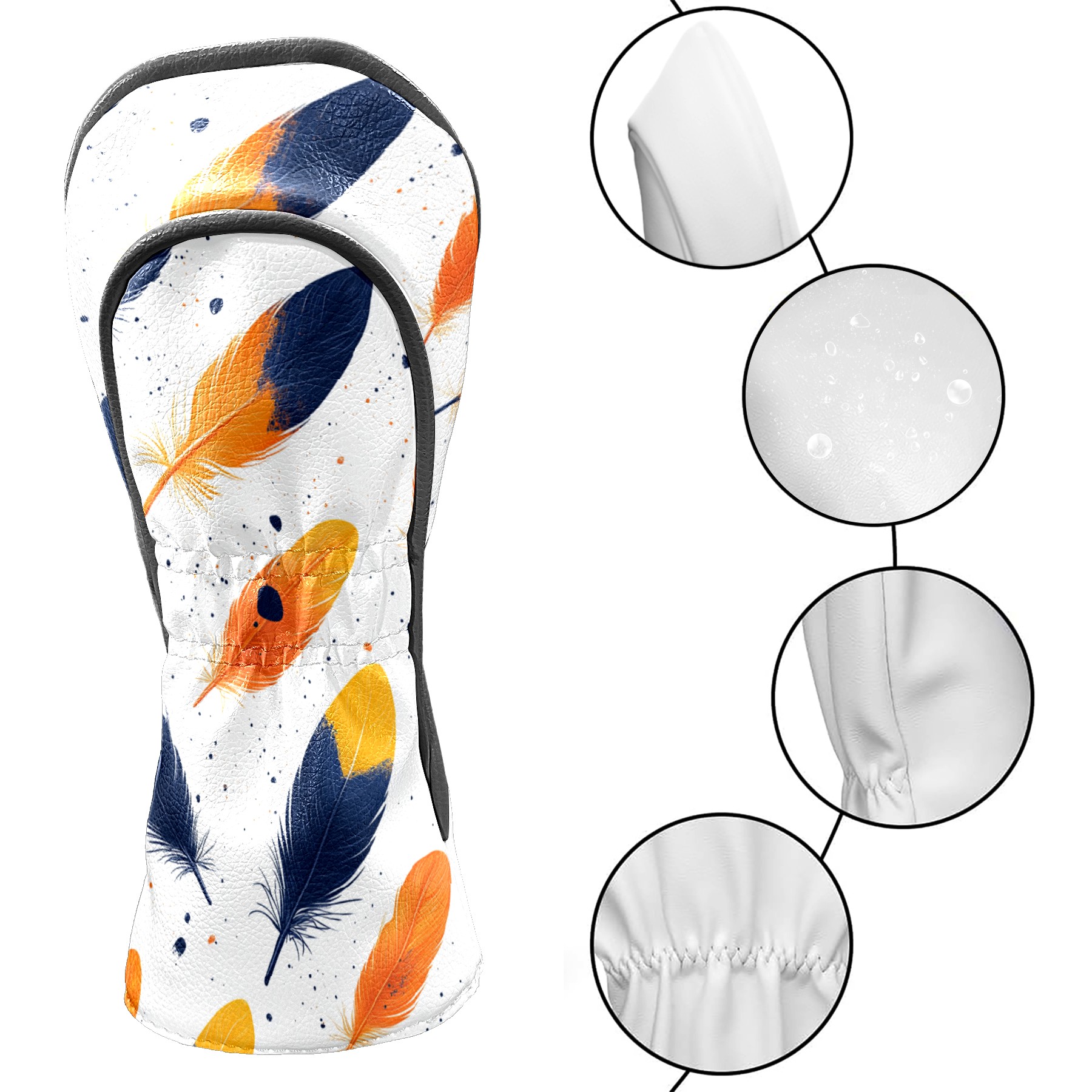 Golf Club Covers PU Leather Waterproof,Golf Club Head Covers for Fairway Woods and Hybrids Orange Feathers Unisex Suitable for Most Brands