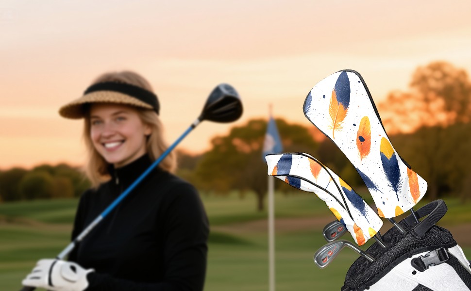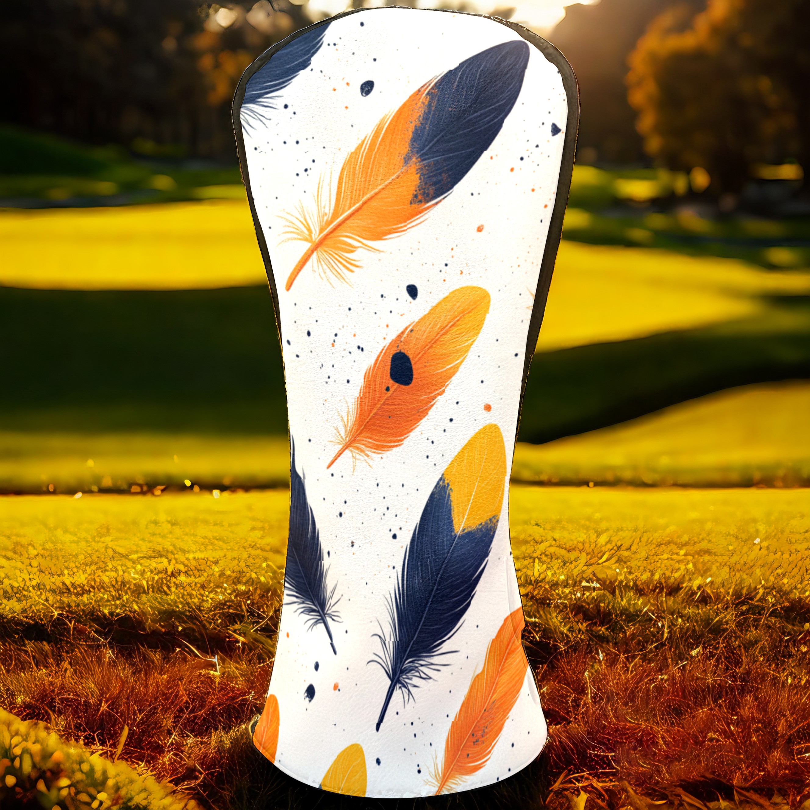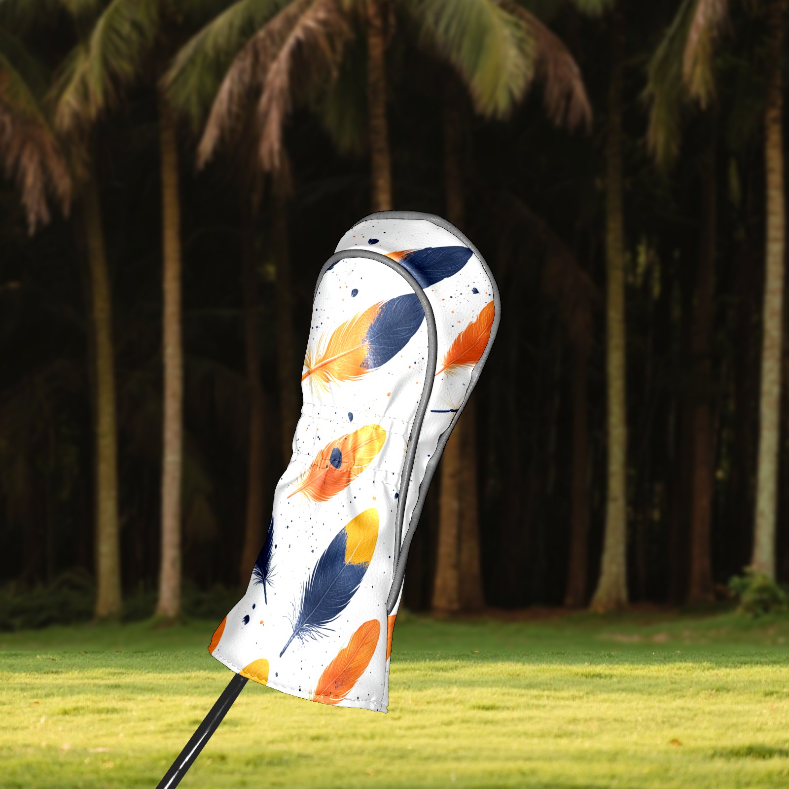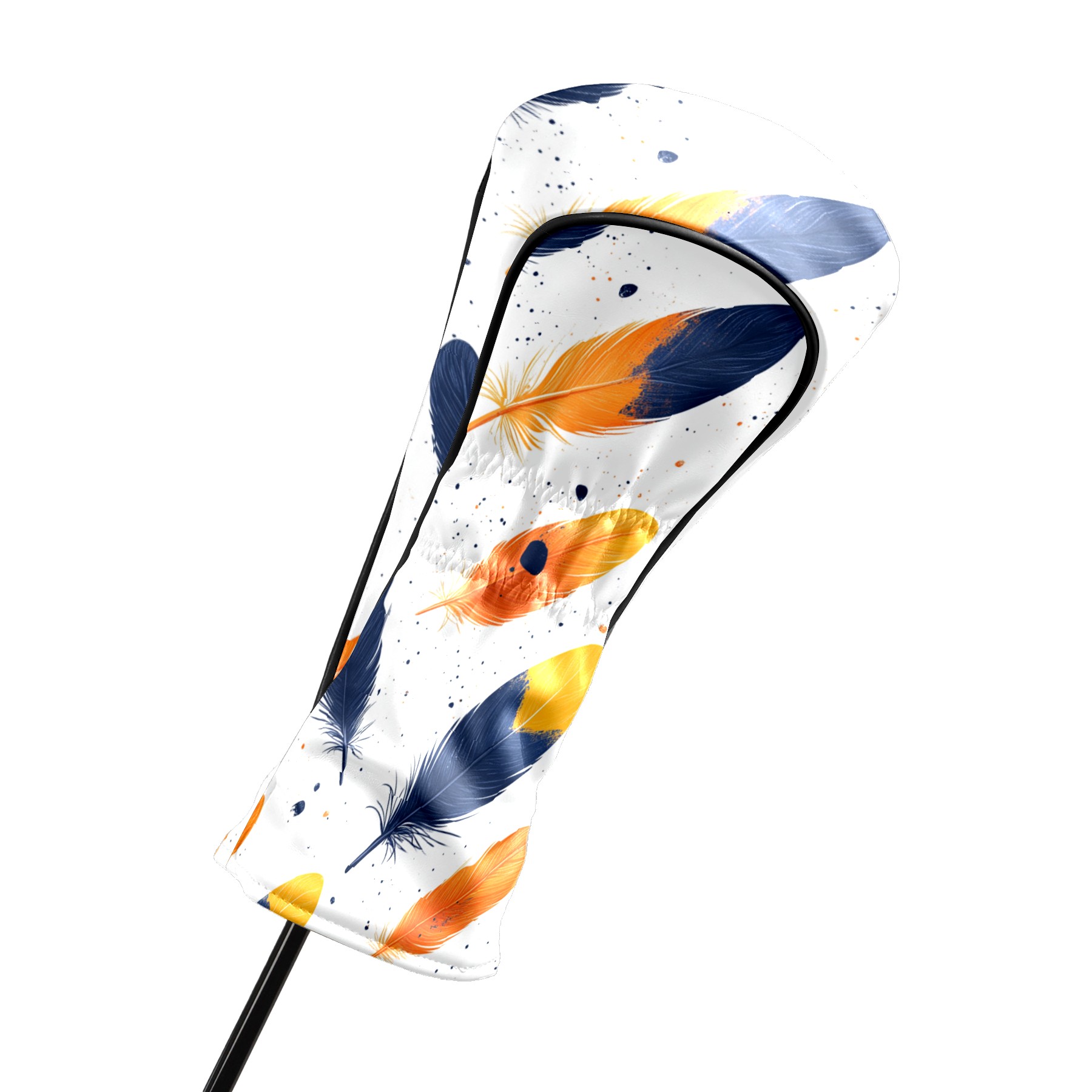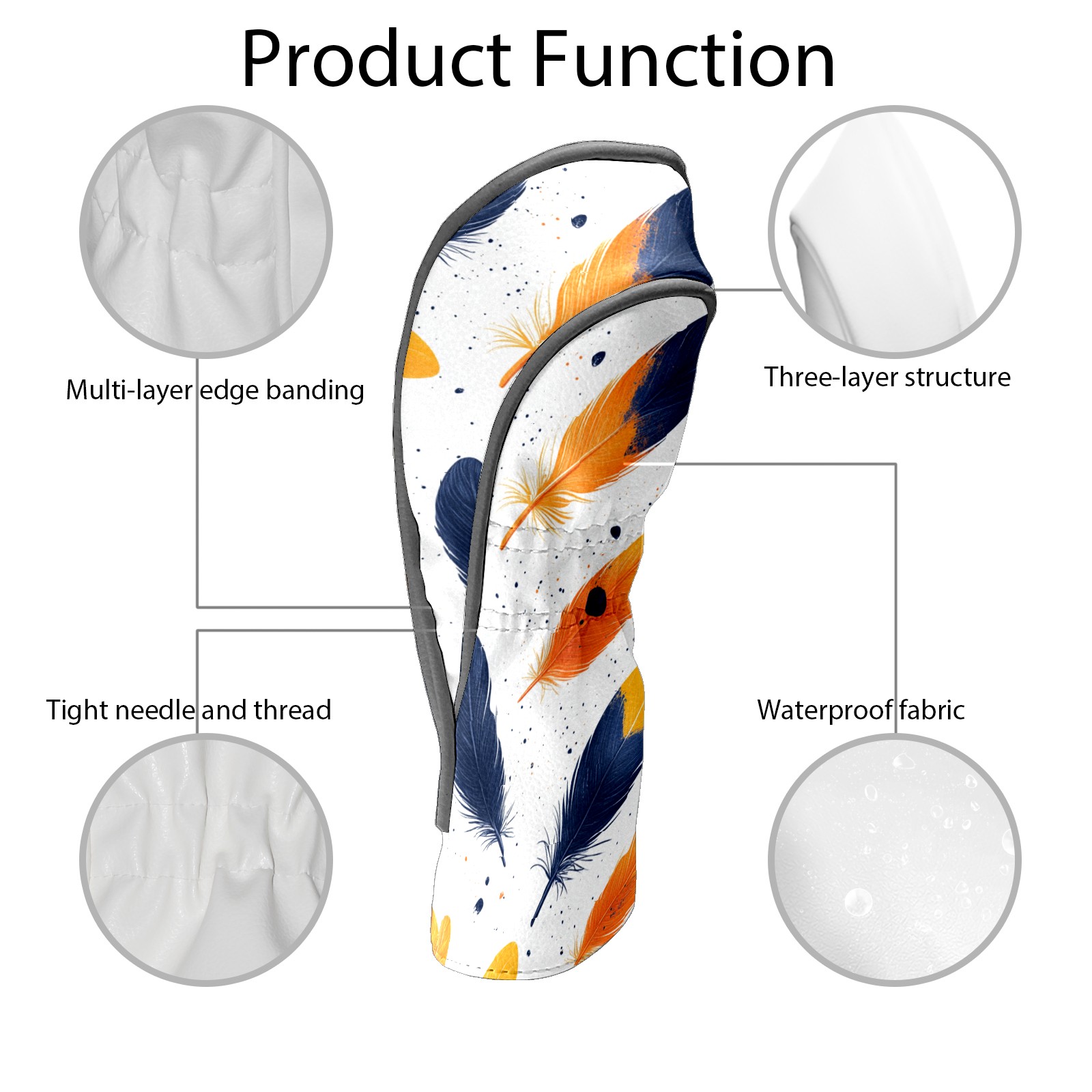 Golf Club Covers PU Leather Waterproof,Golf Club Head Covers for Fairway Woods and Hybrids Orange Feathers Unisex Suitable for Most Brands