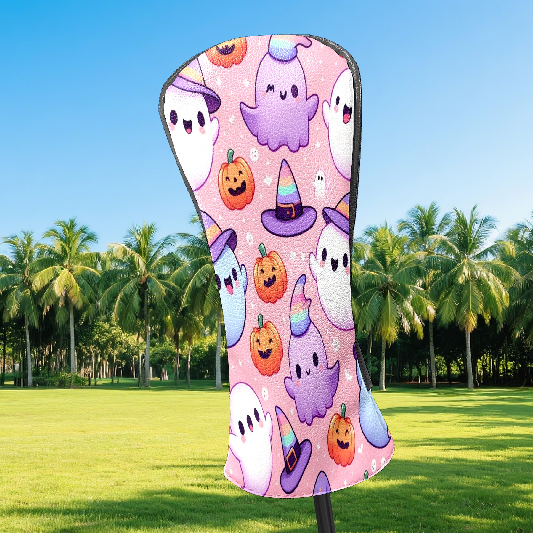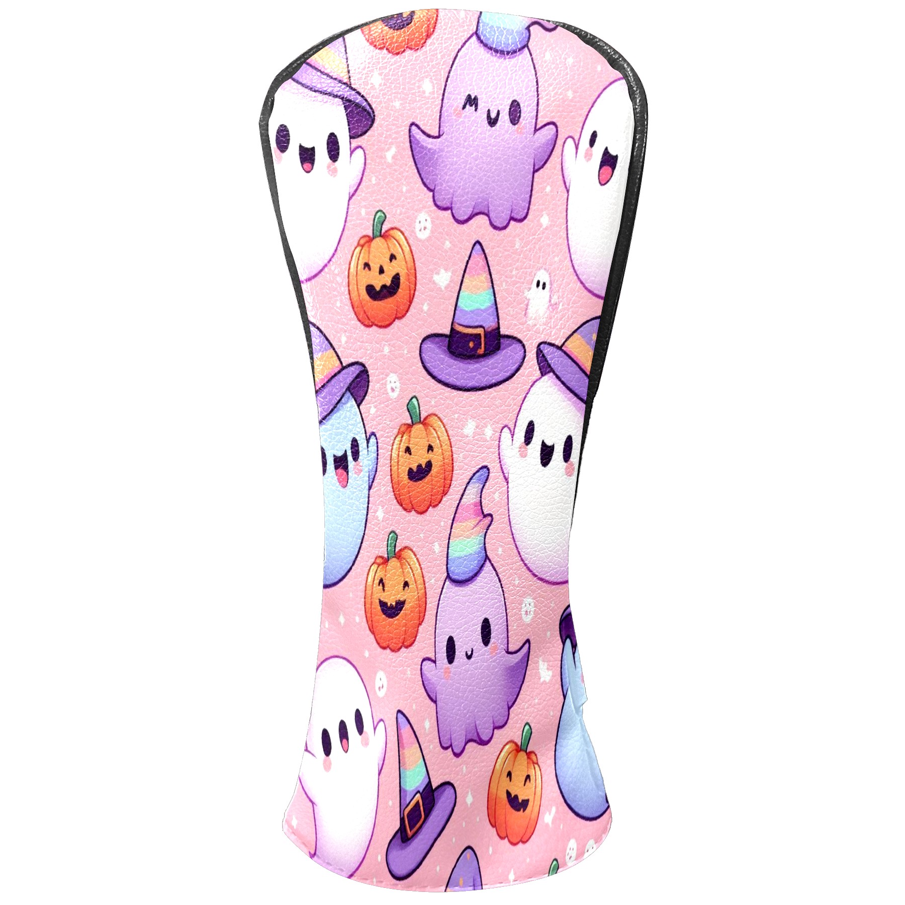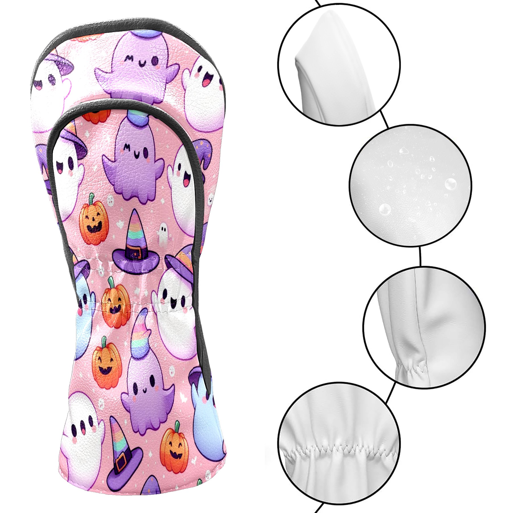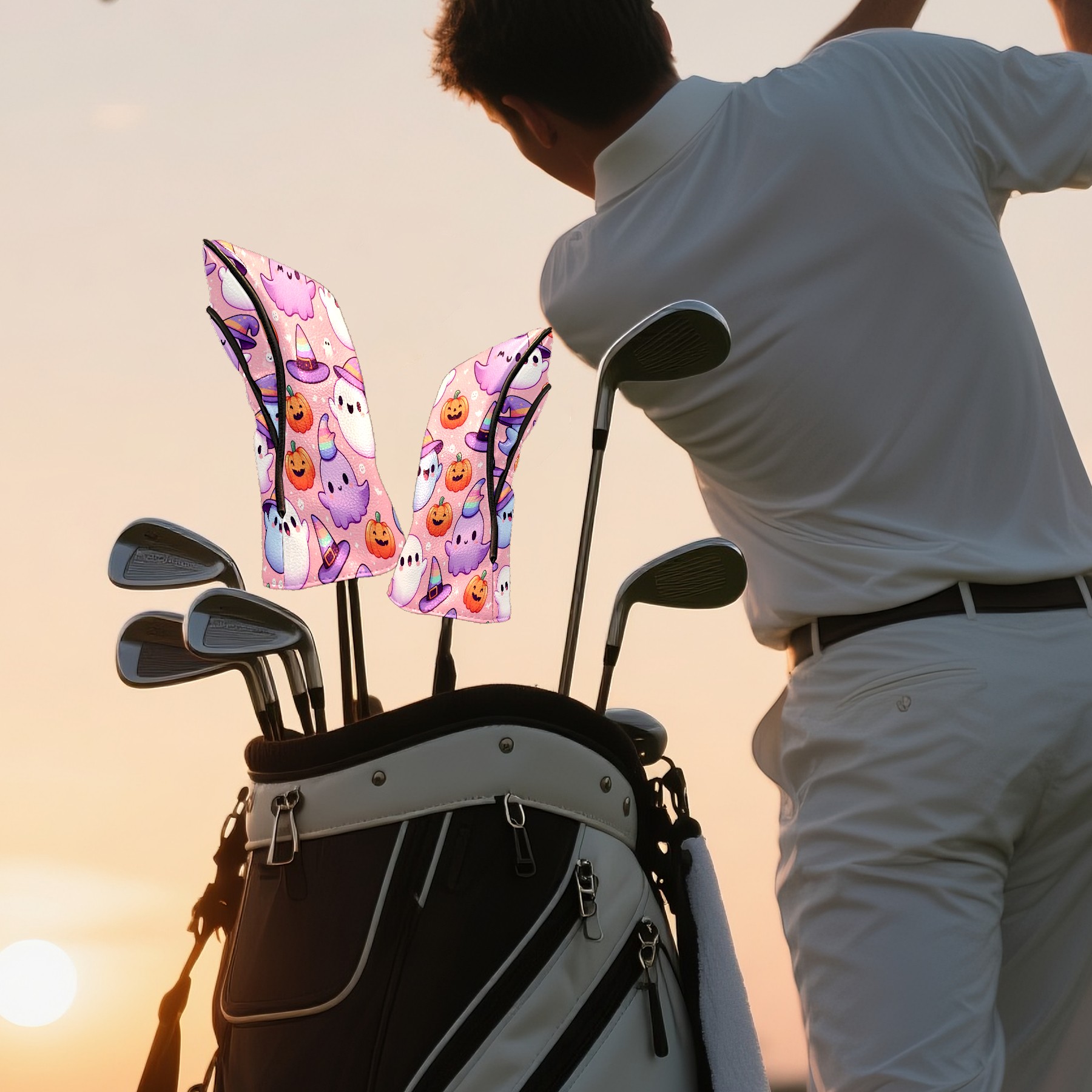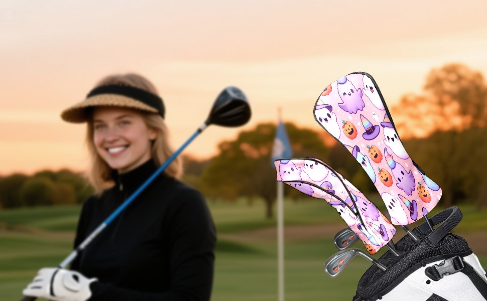 Golf Club Covers, PinkPurple Ghost Premium PU Leather Driver Hybrid Putter Head Covers with Velvet Lining, Waterproof Golf Gifts for Men Women