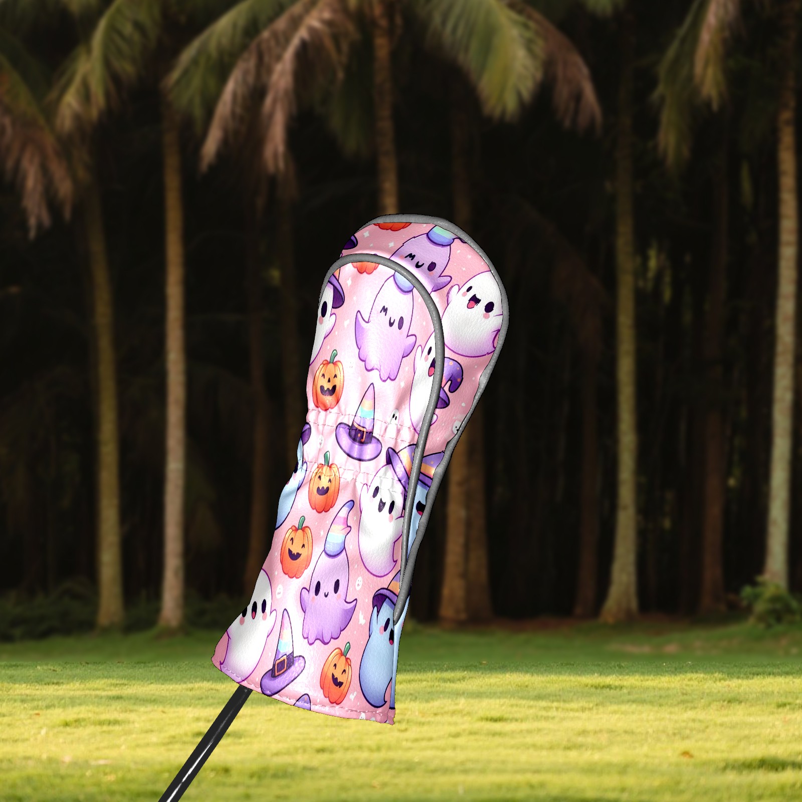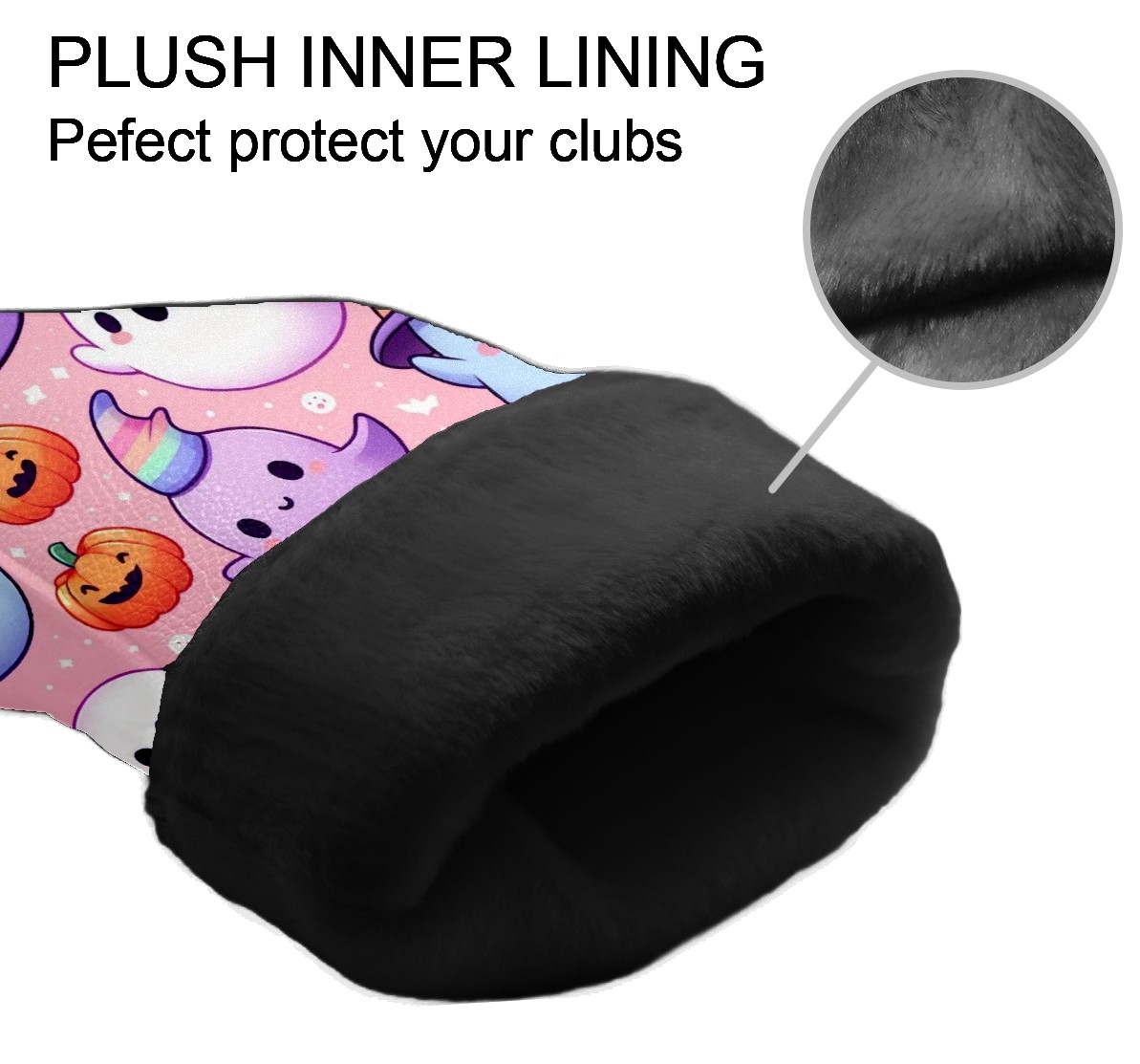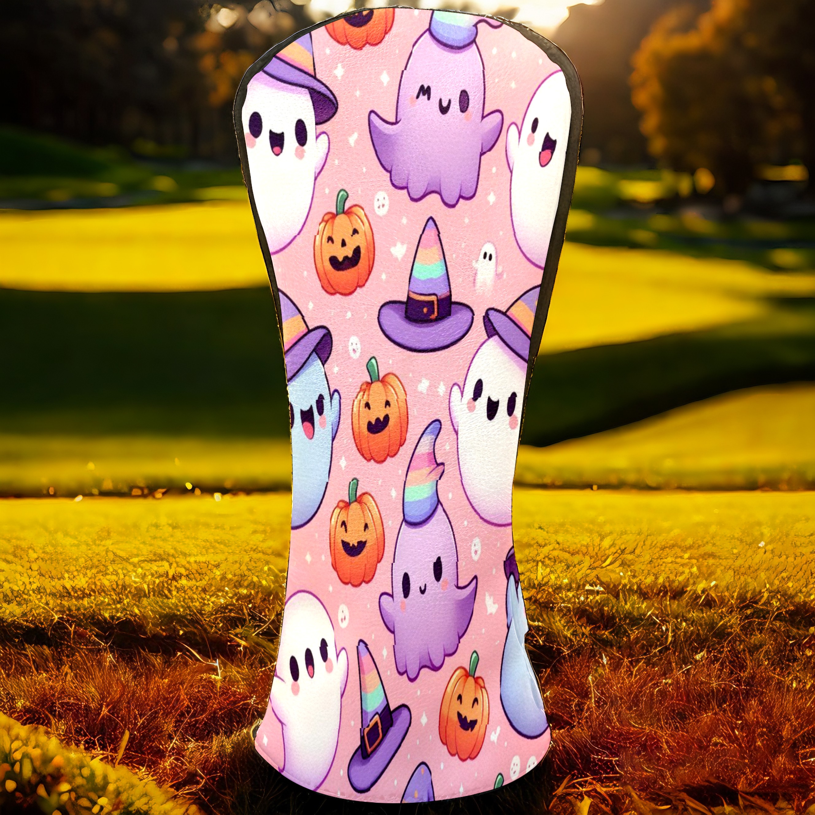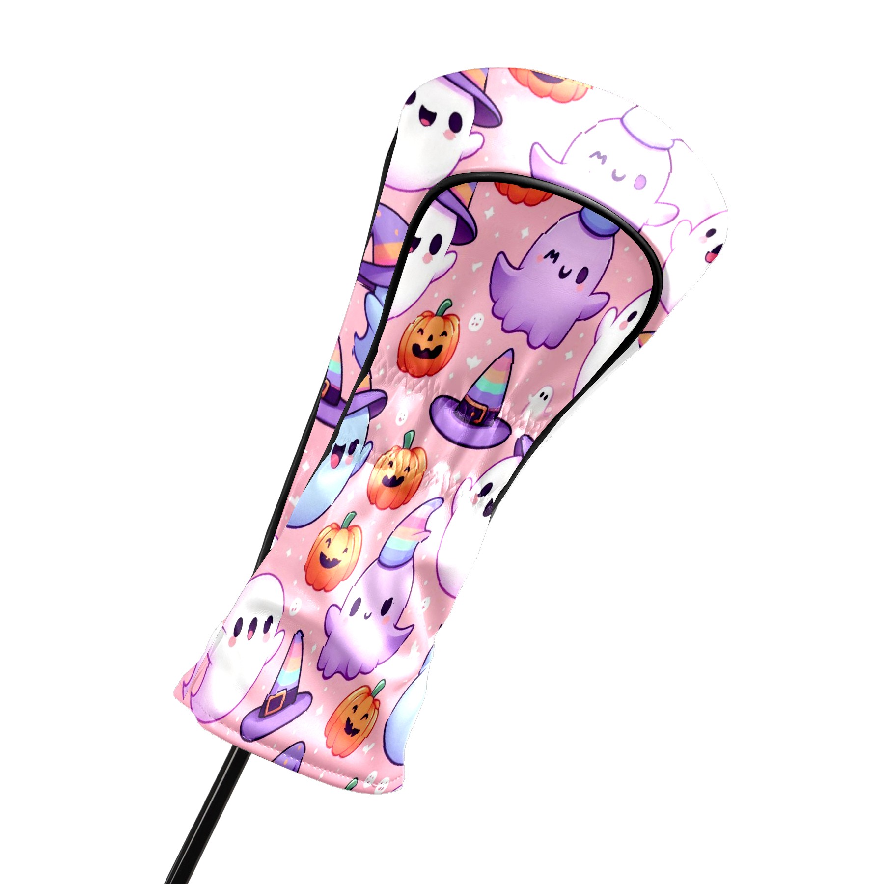 Golf Club Covers, PinkPurple Ghost Premium PU Leather Driver Hybrid Putter Head Covers with Velvet Lining, Waterproof Golf Gifts for Men Women