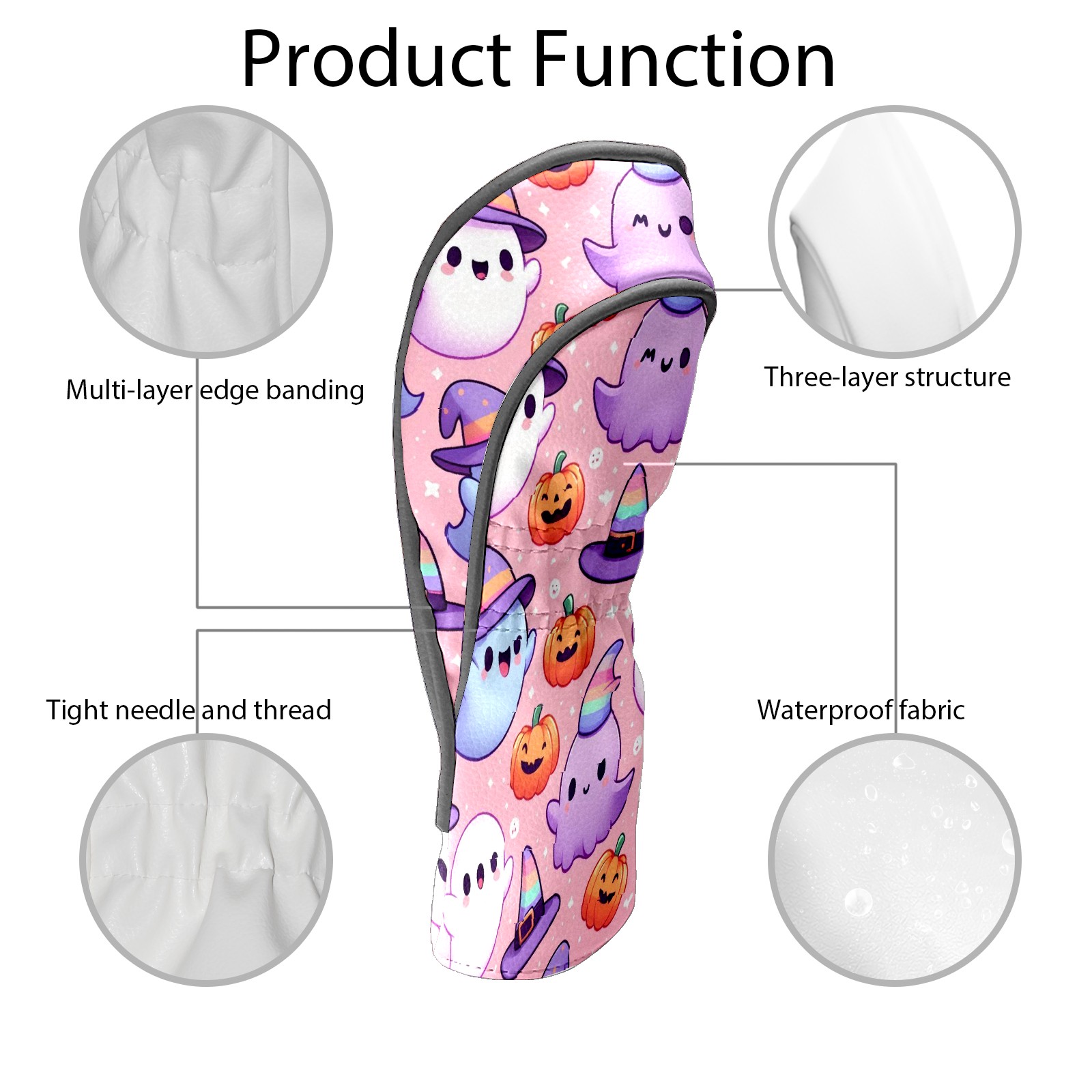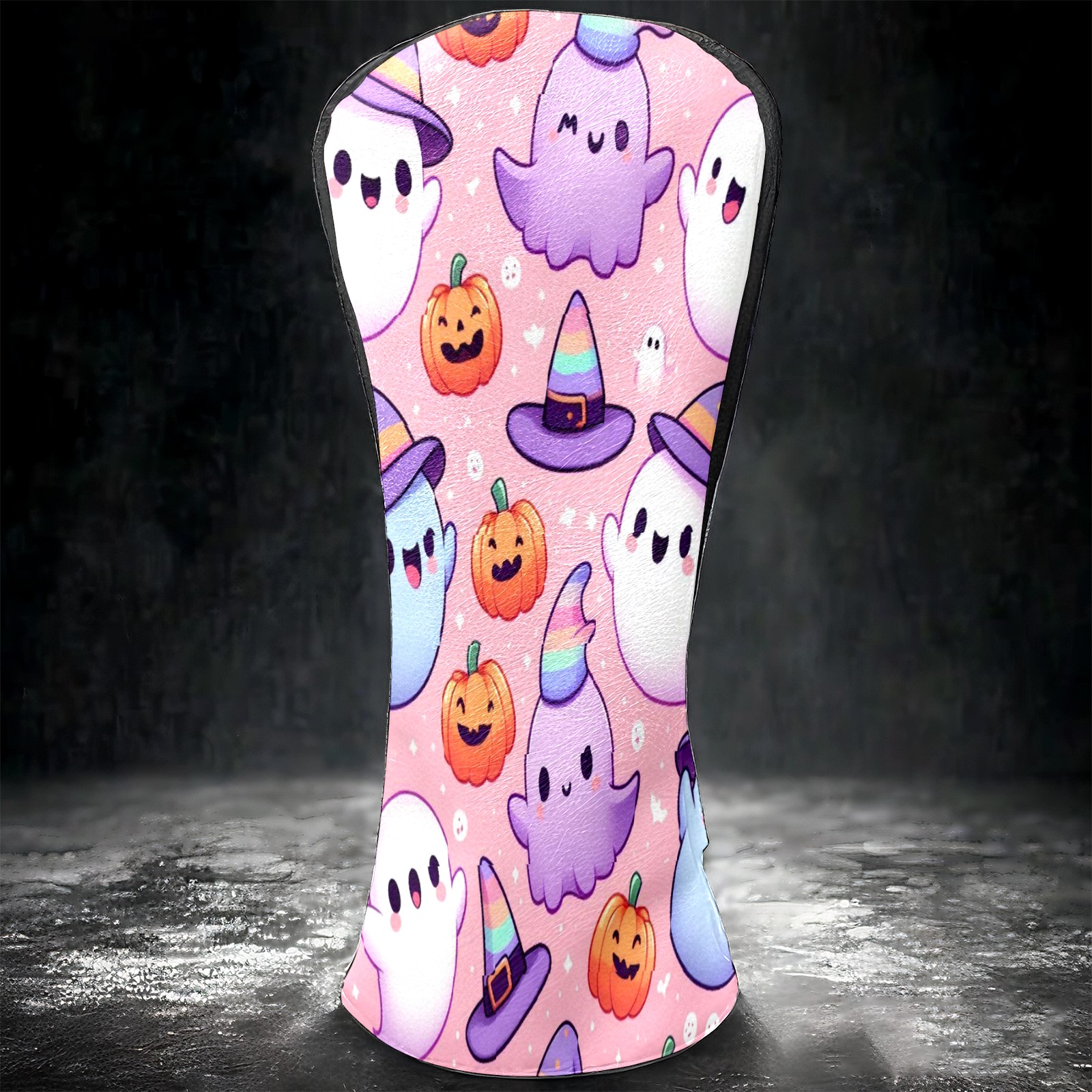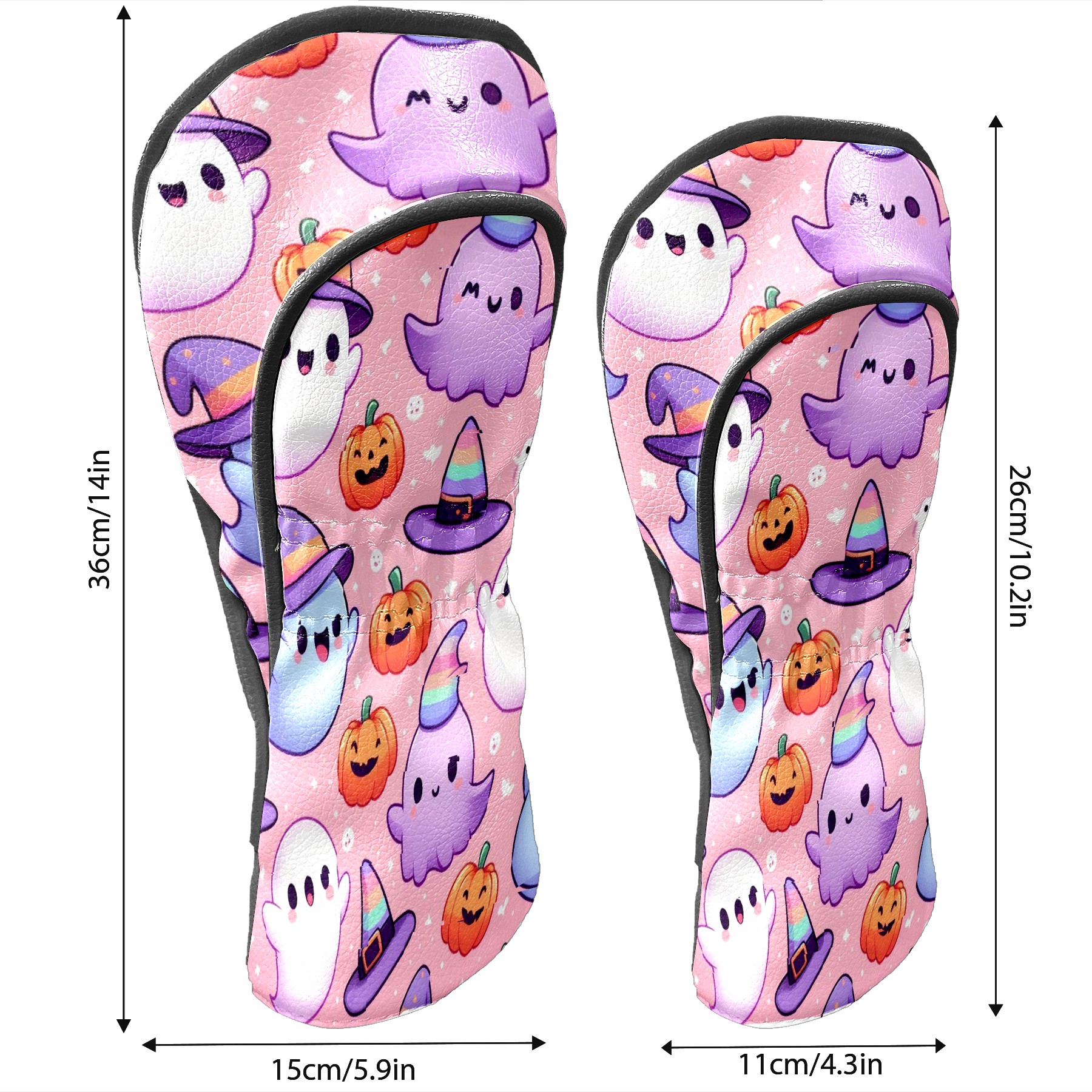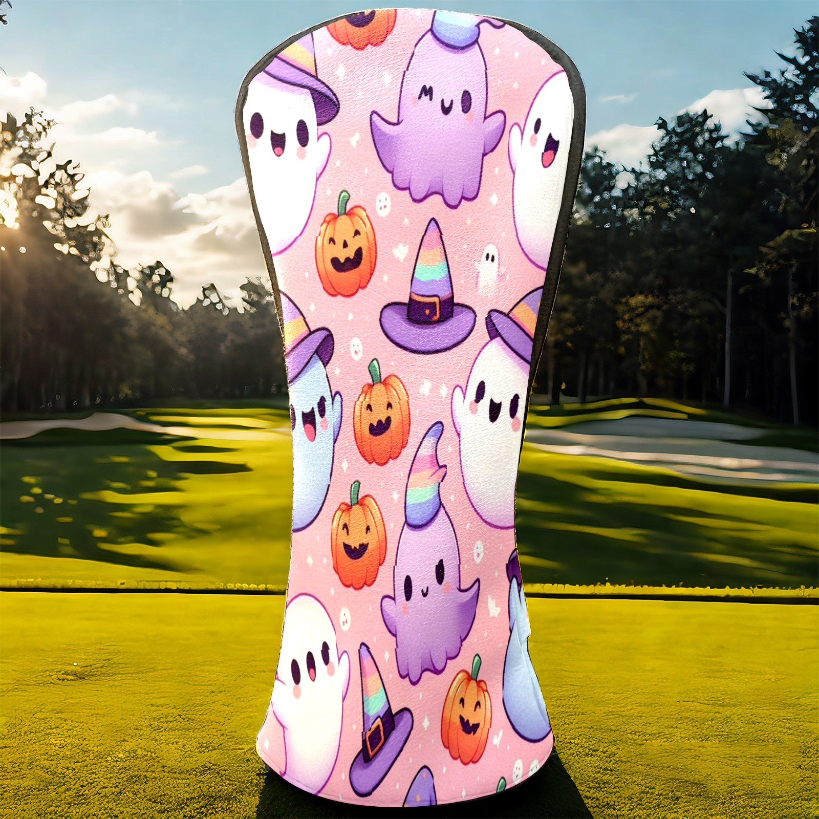 Golf Club Covers, PinkPurple Ghost Premium PU Leather Driver Hybrid Putter Head Covers with Velvet Lining, Waterproof Golf Gifts for Men Women
