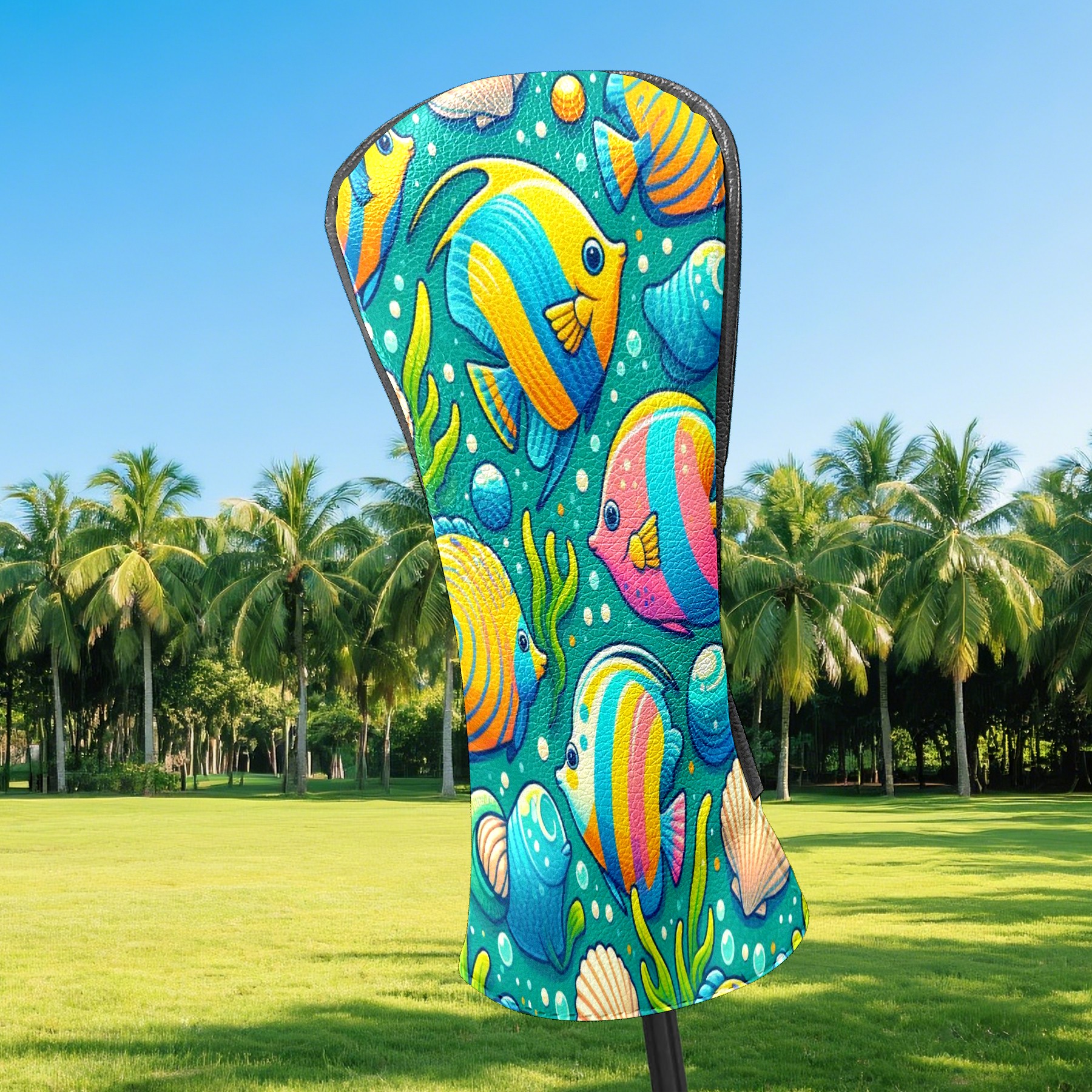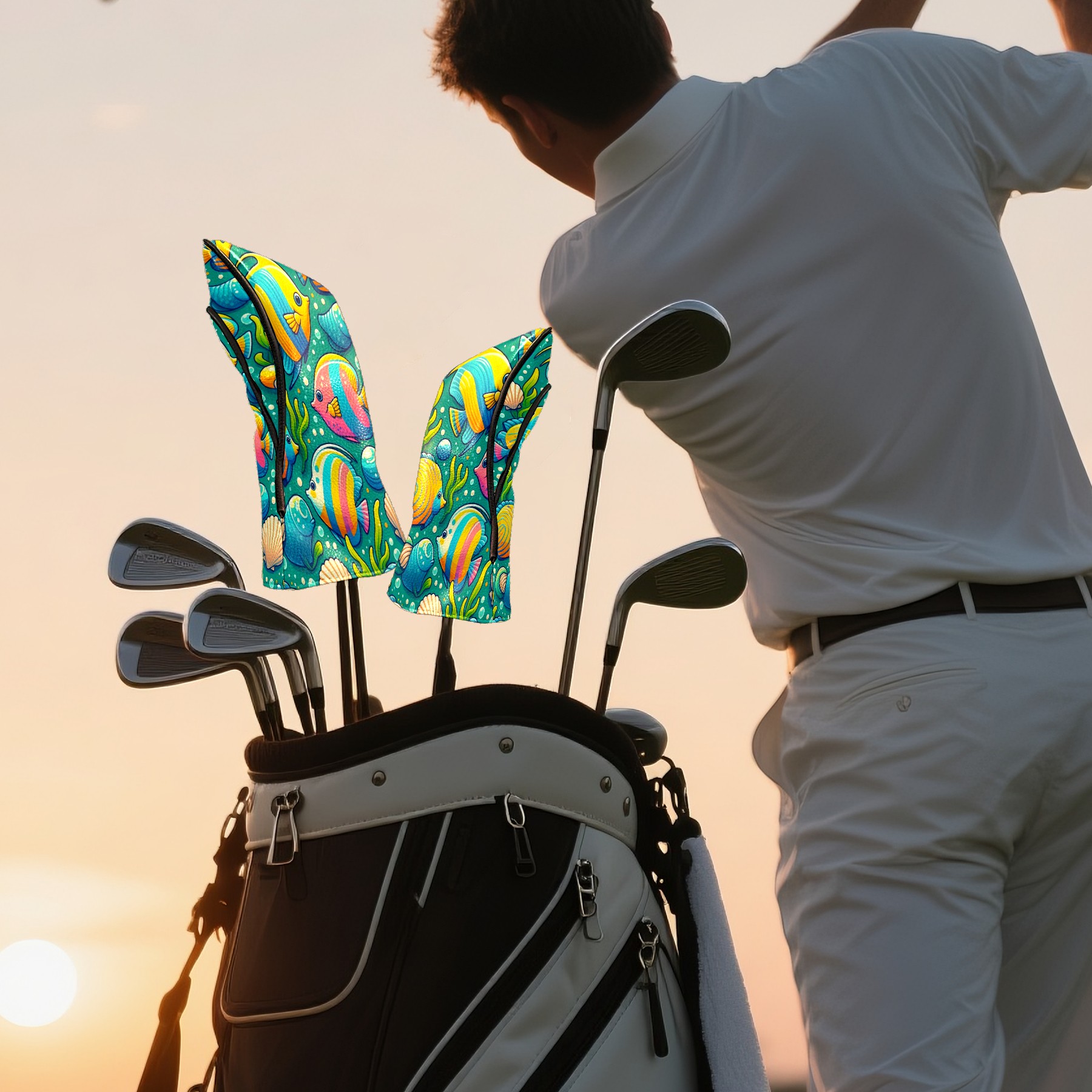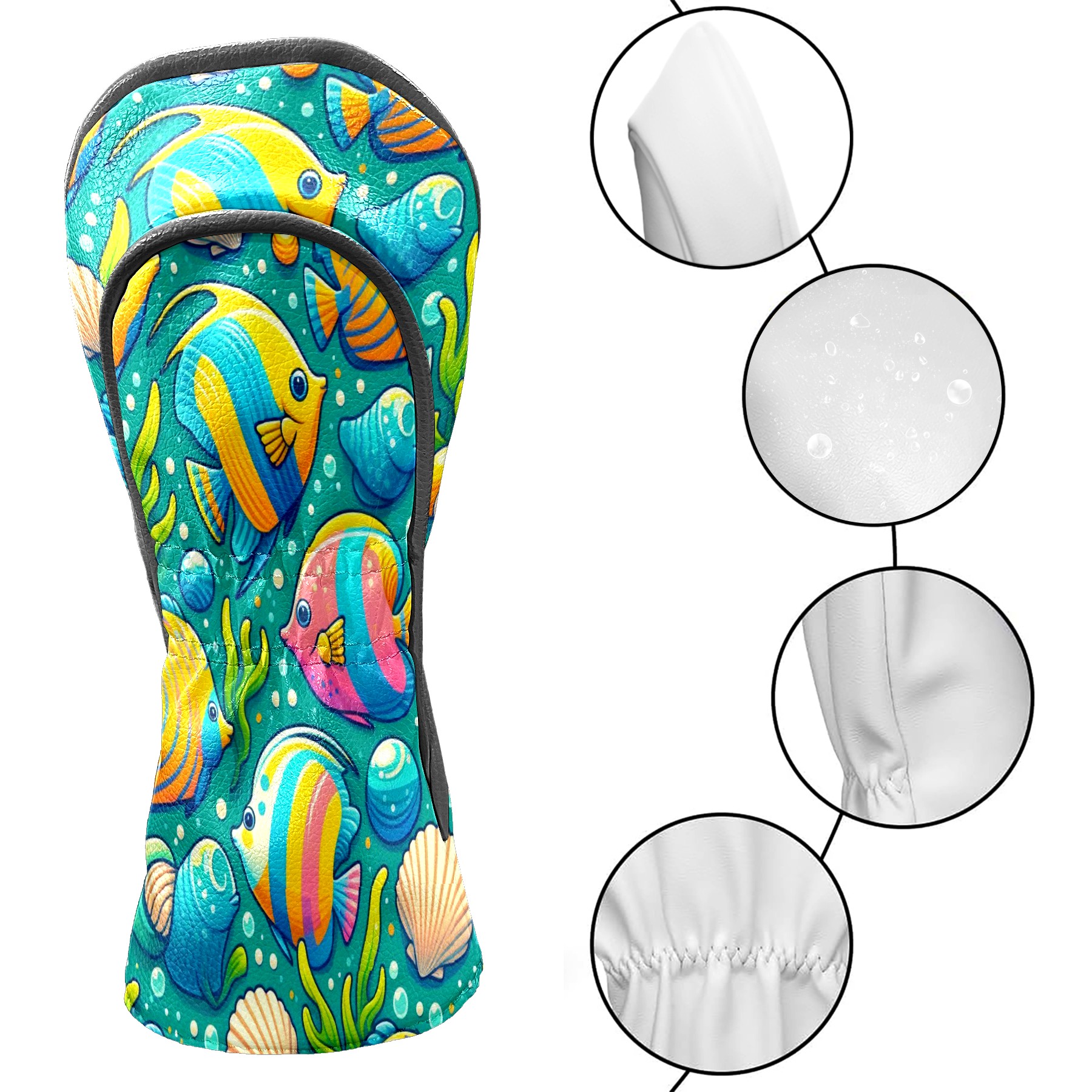 Golf Club Covers, BlueColorful Sea Fish Premium PU Leather Driver Hybrid Putter Head Covers with Velvet Lining, Waterproof Golf Gifts for Men Women