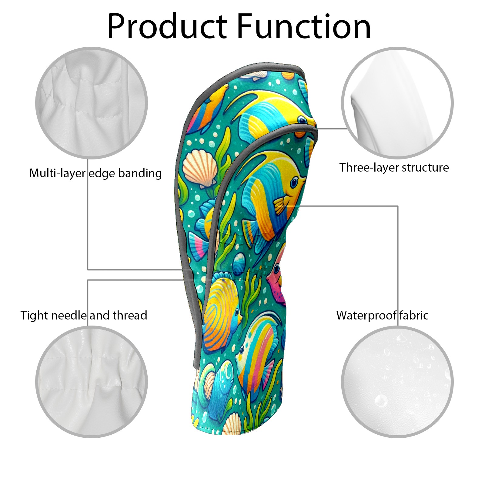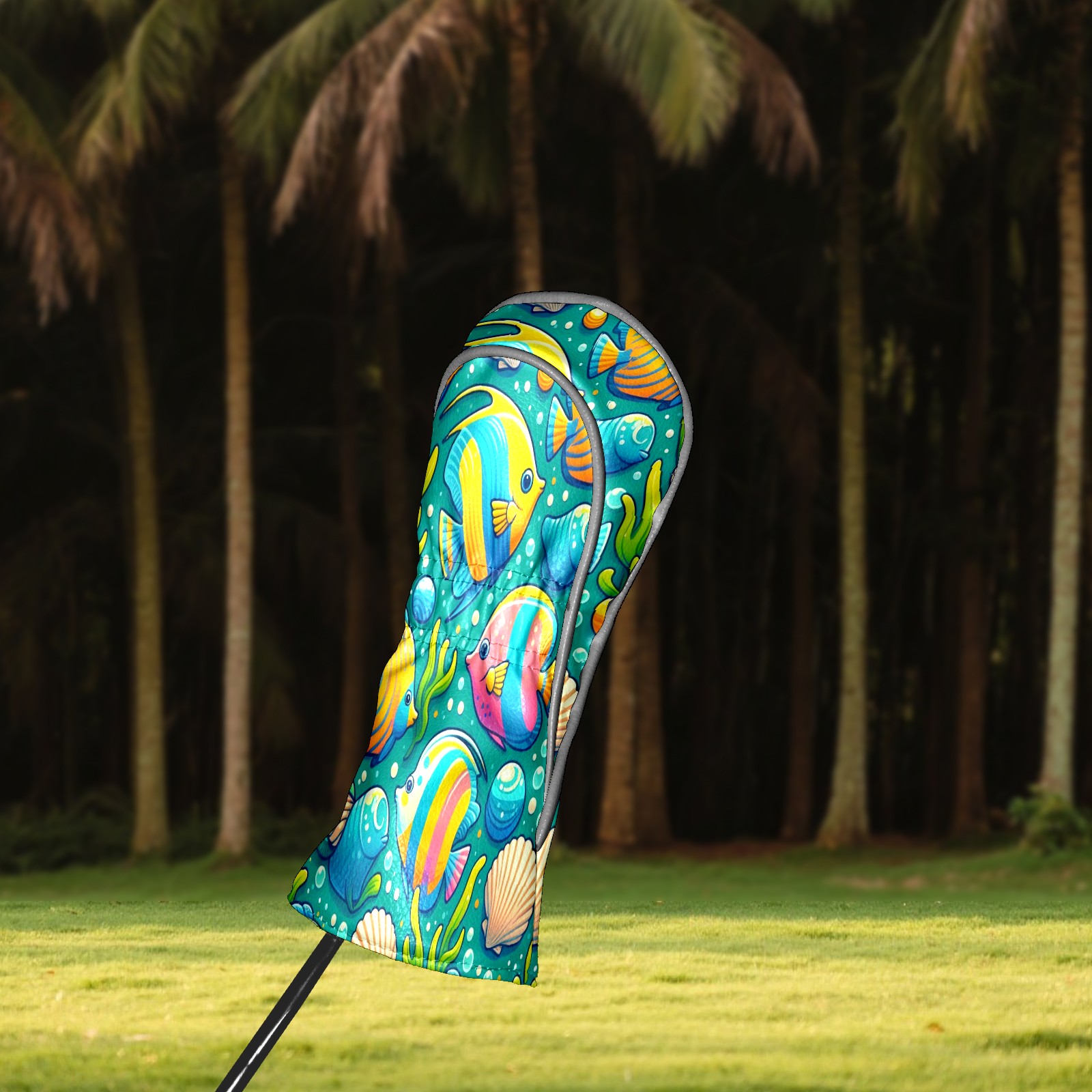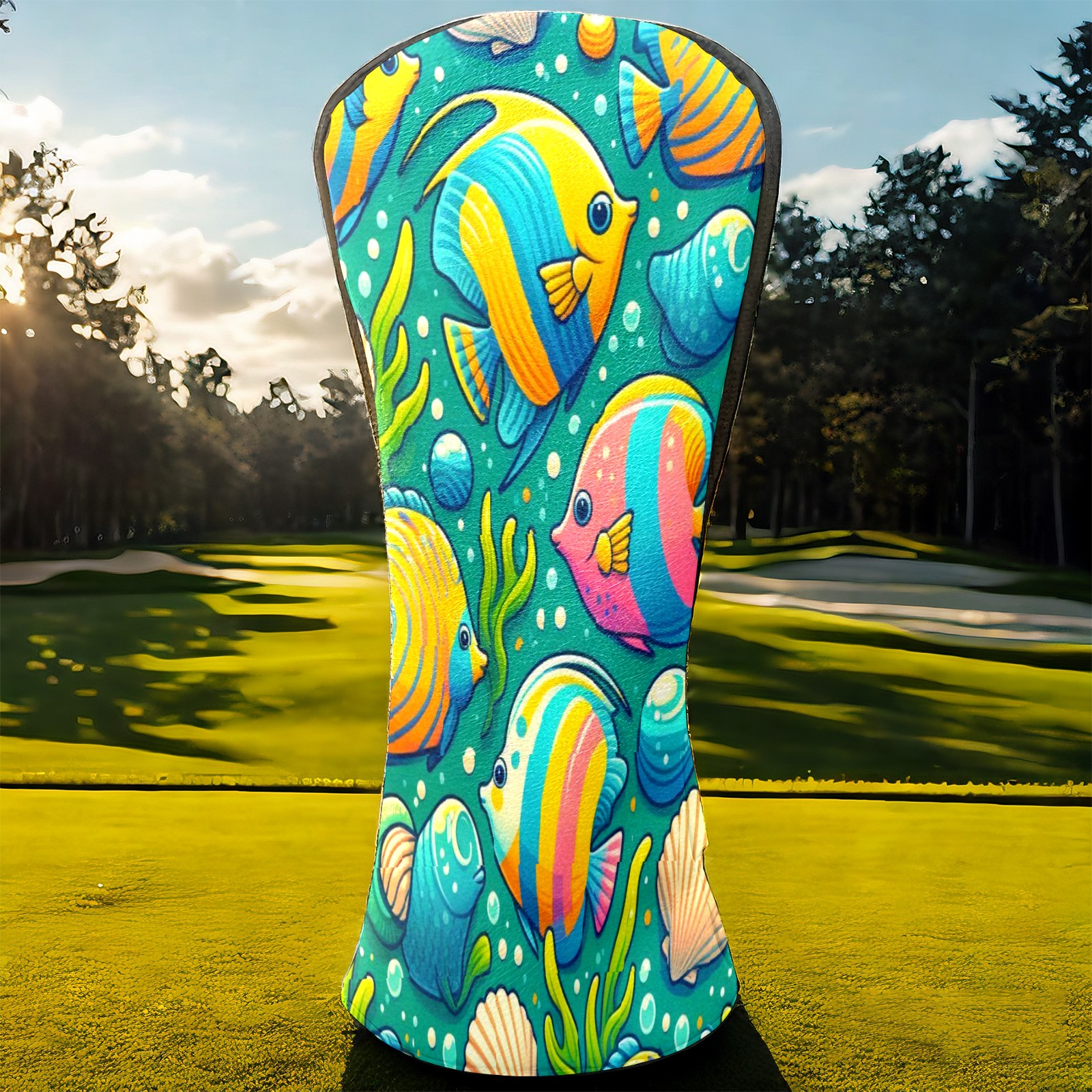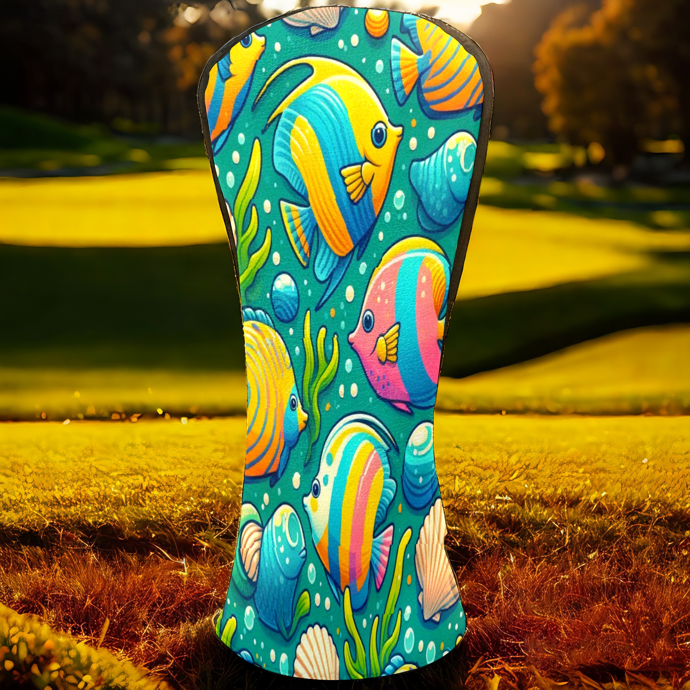 Golf Club Covers, BlueColorful Sea Fish Premium PU Leather Driver Hybrid Putter Head Covers with Velvet Lining, Waterproof Golf Gifts for Men Women