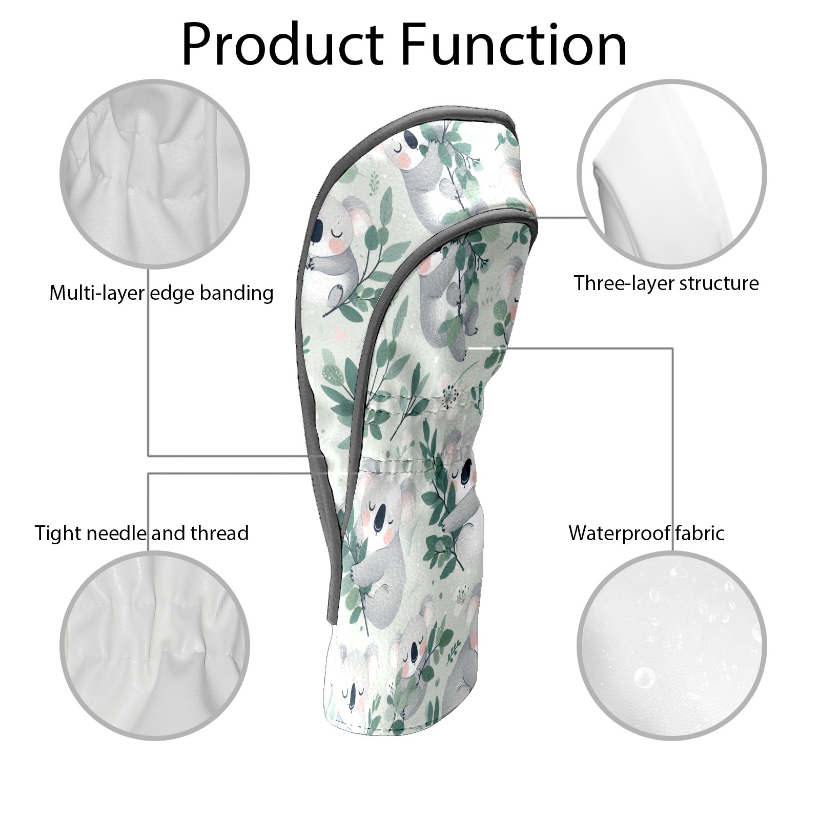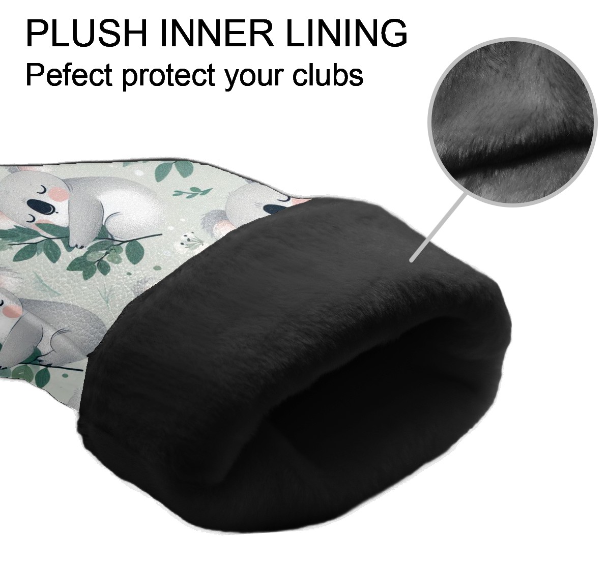 Golf Club Covers, LightGray Koala Premium PU Leather Driver Hybrid Putter Head Covers with Velvet Lining, Waterproof Golf Gifts for Men Women