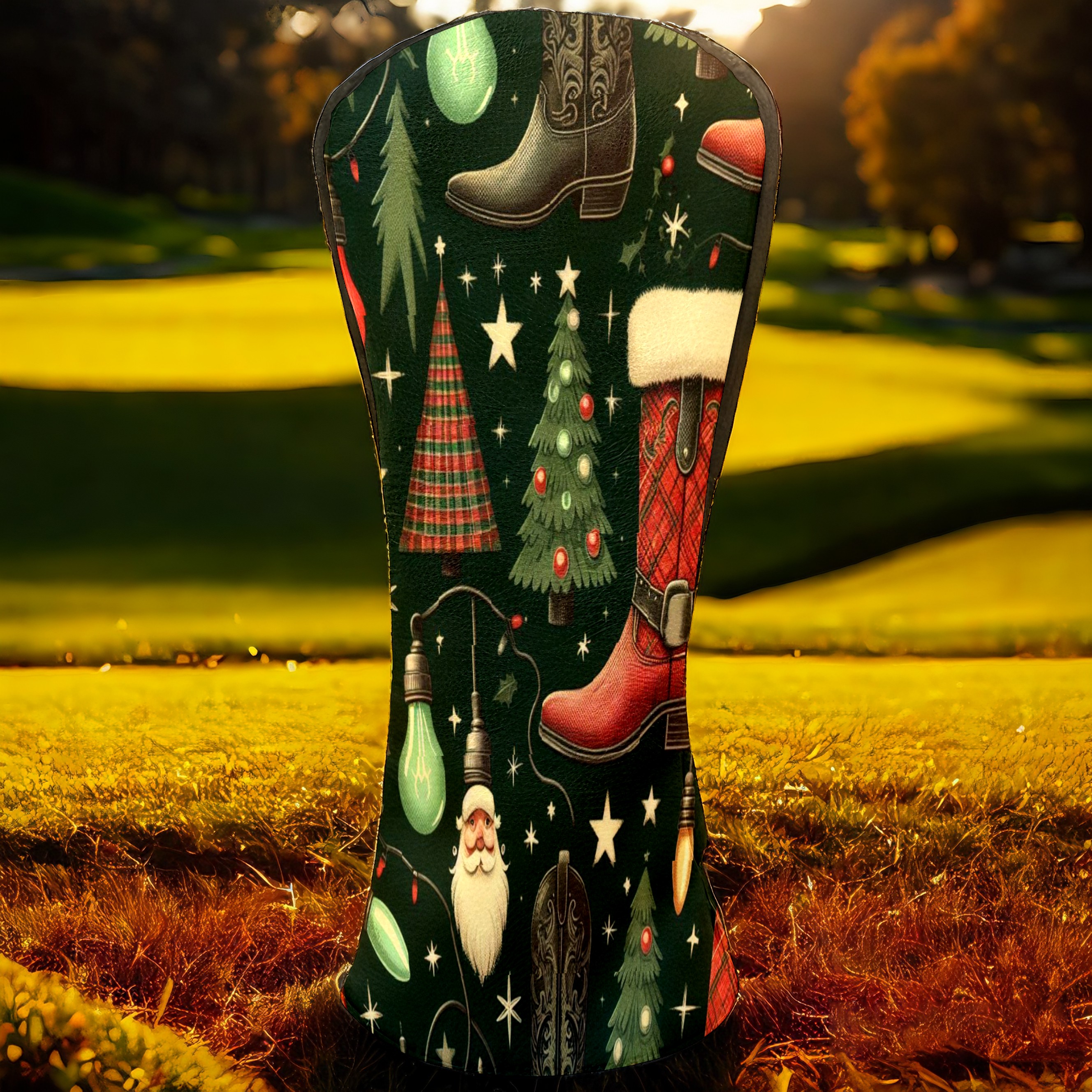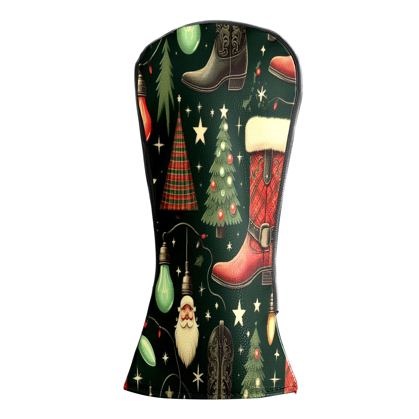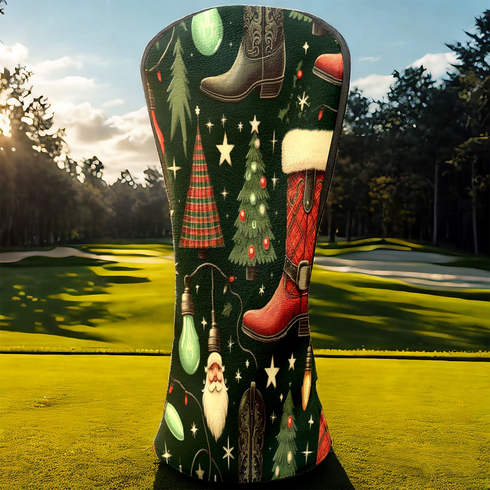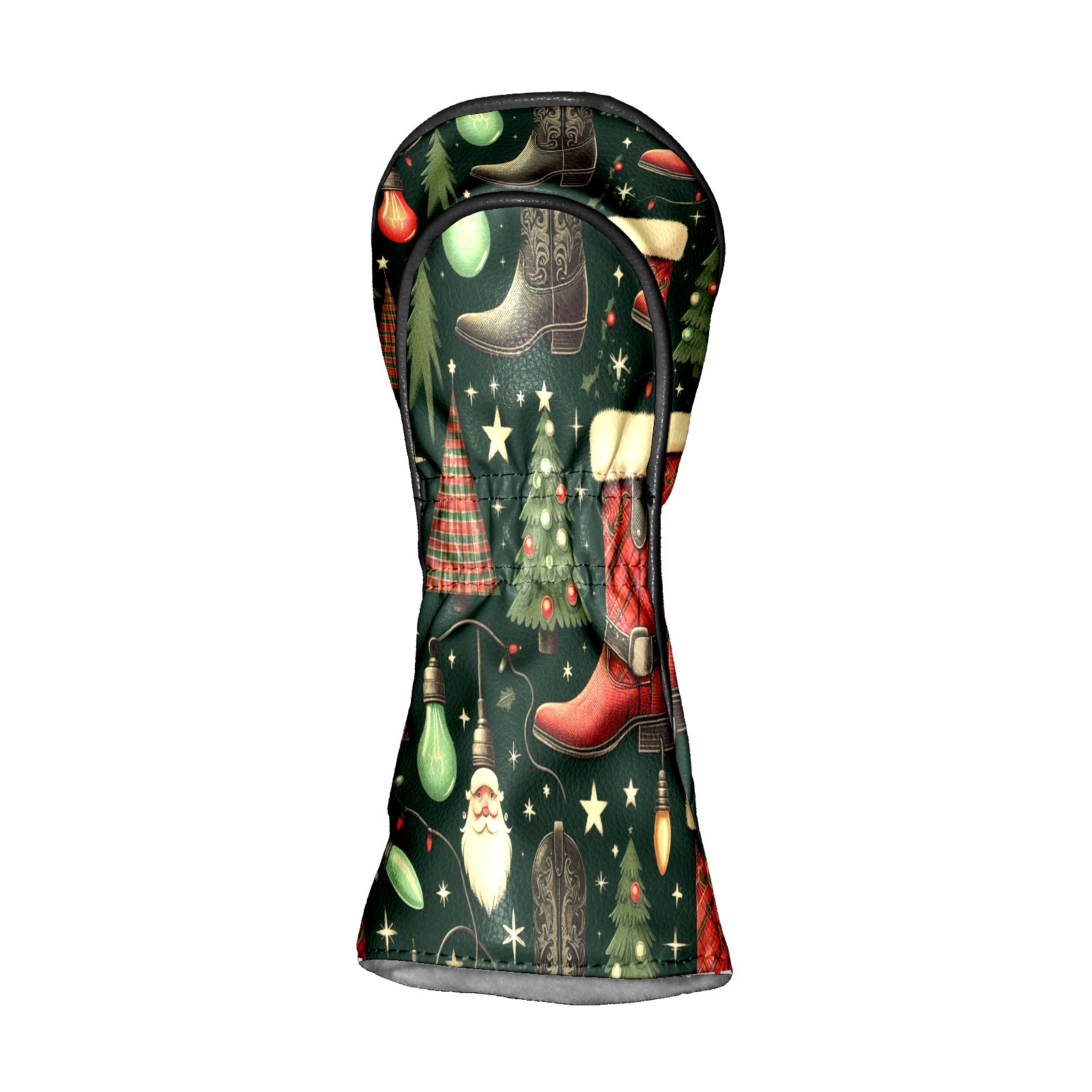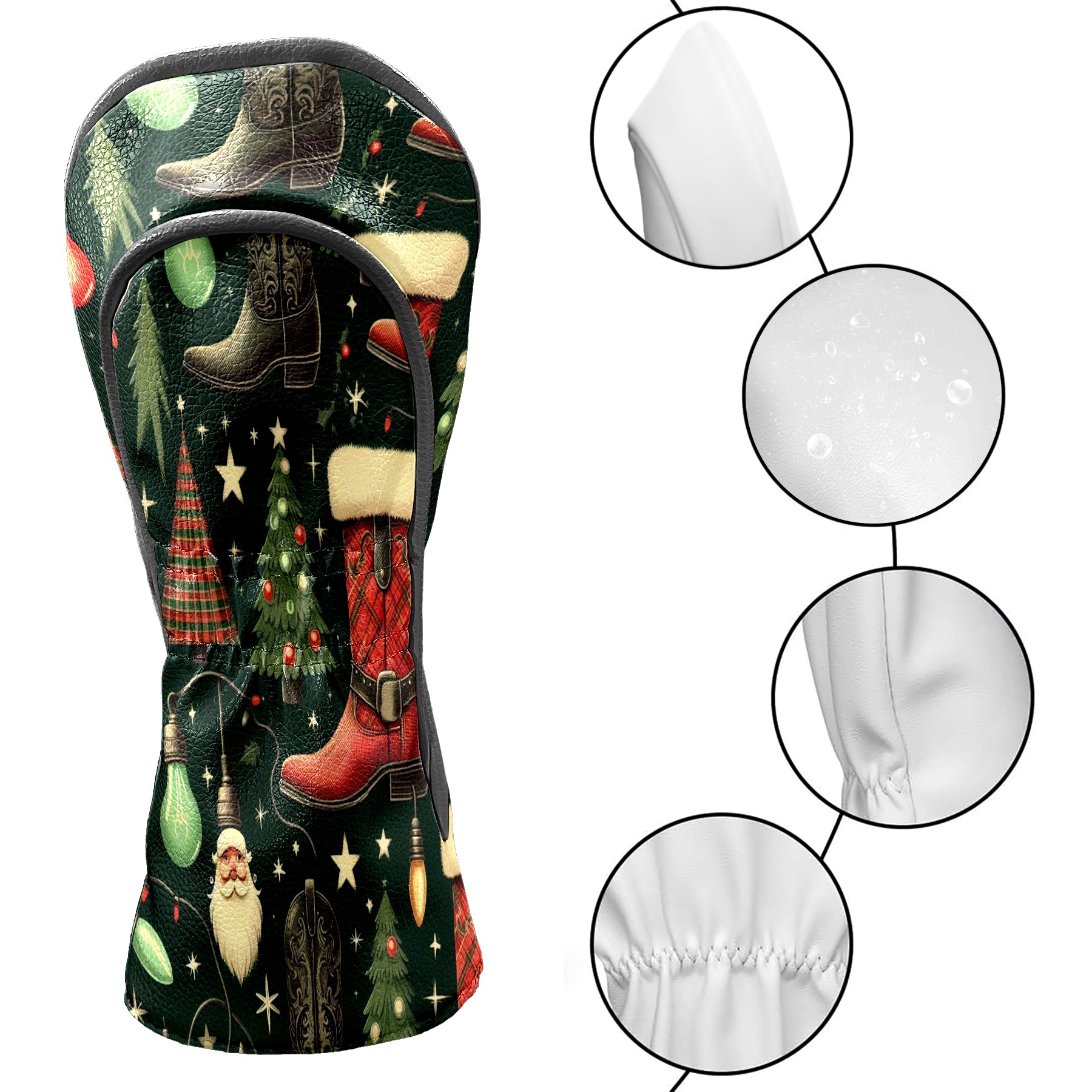Golf Club Covers, DarkGreen Xmas Boot Premium PU Leather Driver Hybrid Putter Head Covers with Velvet Lining, Waterproof Golf Gifts for Men Women