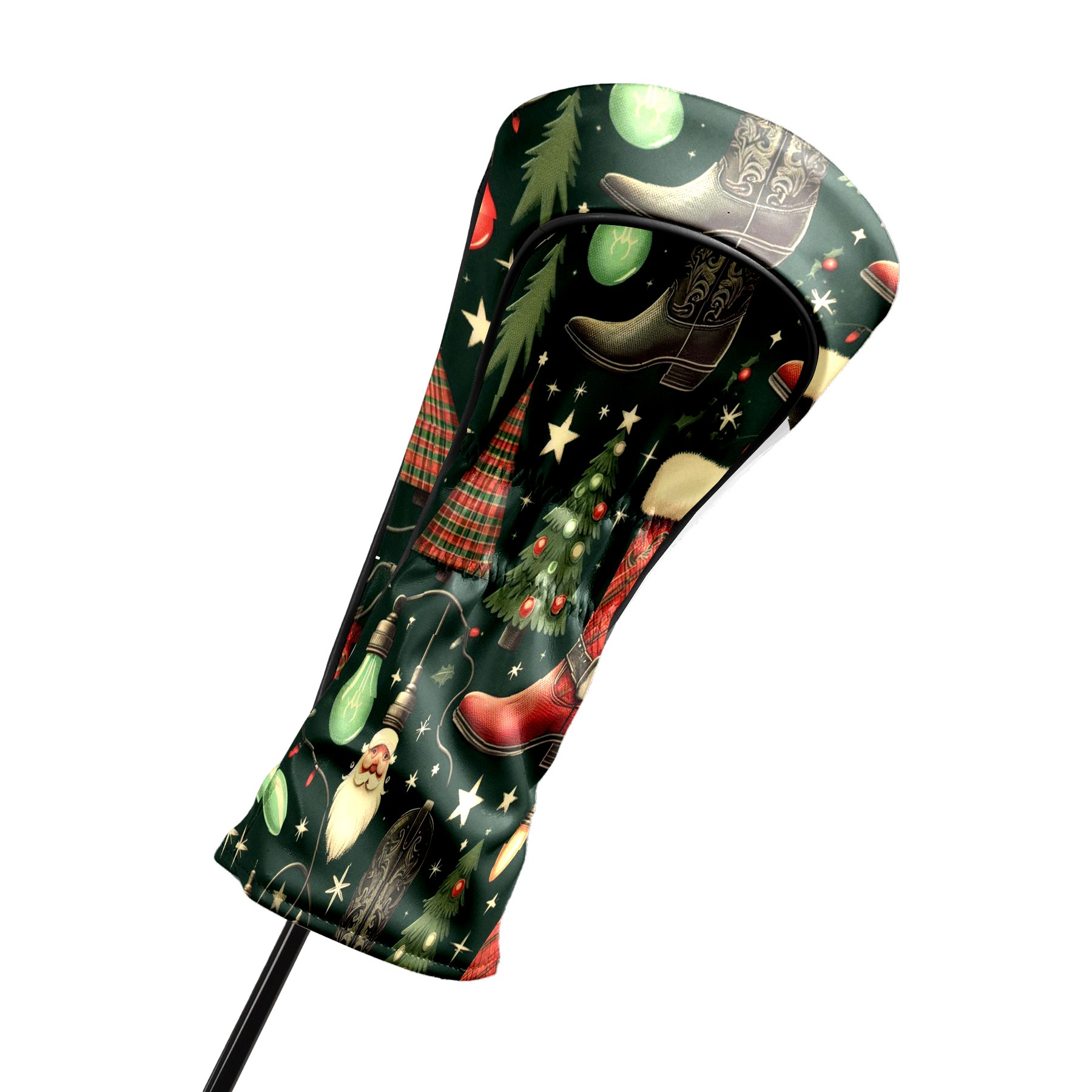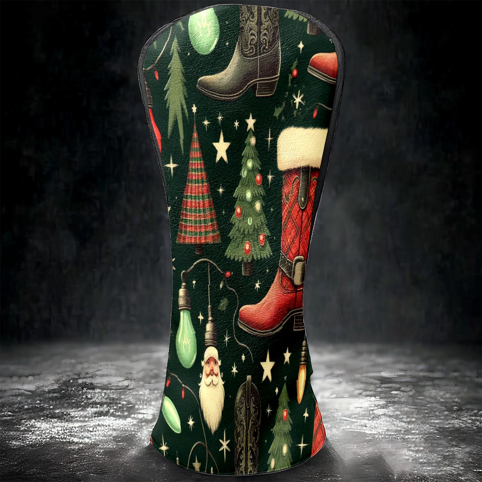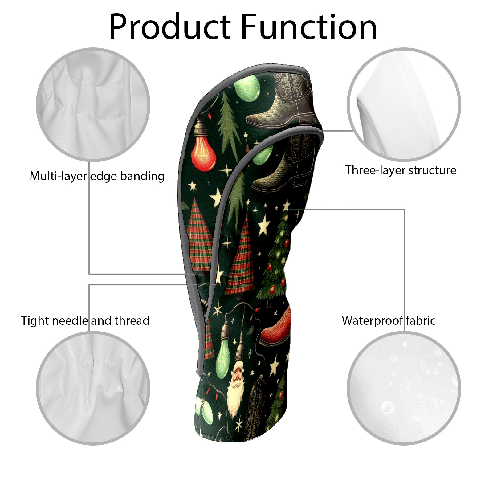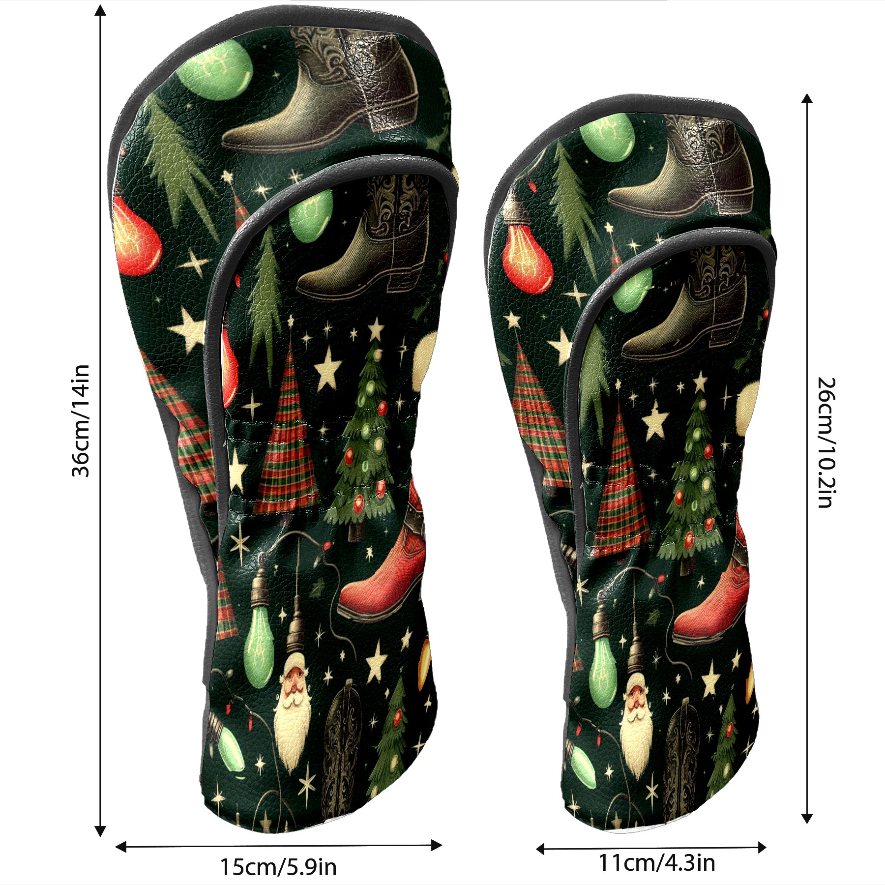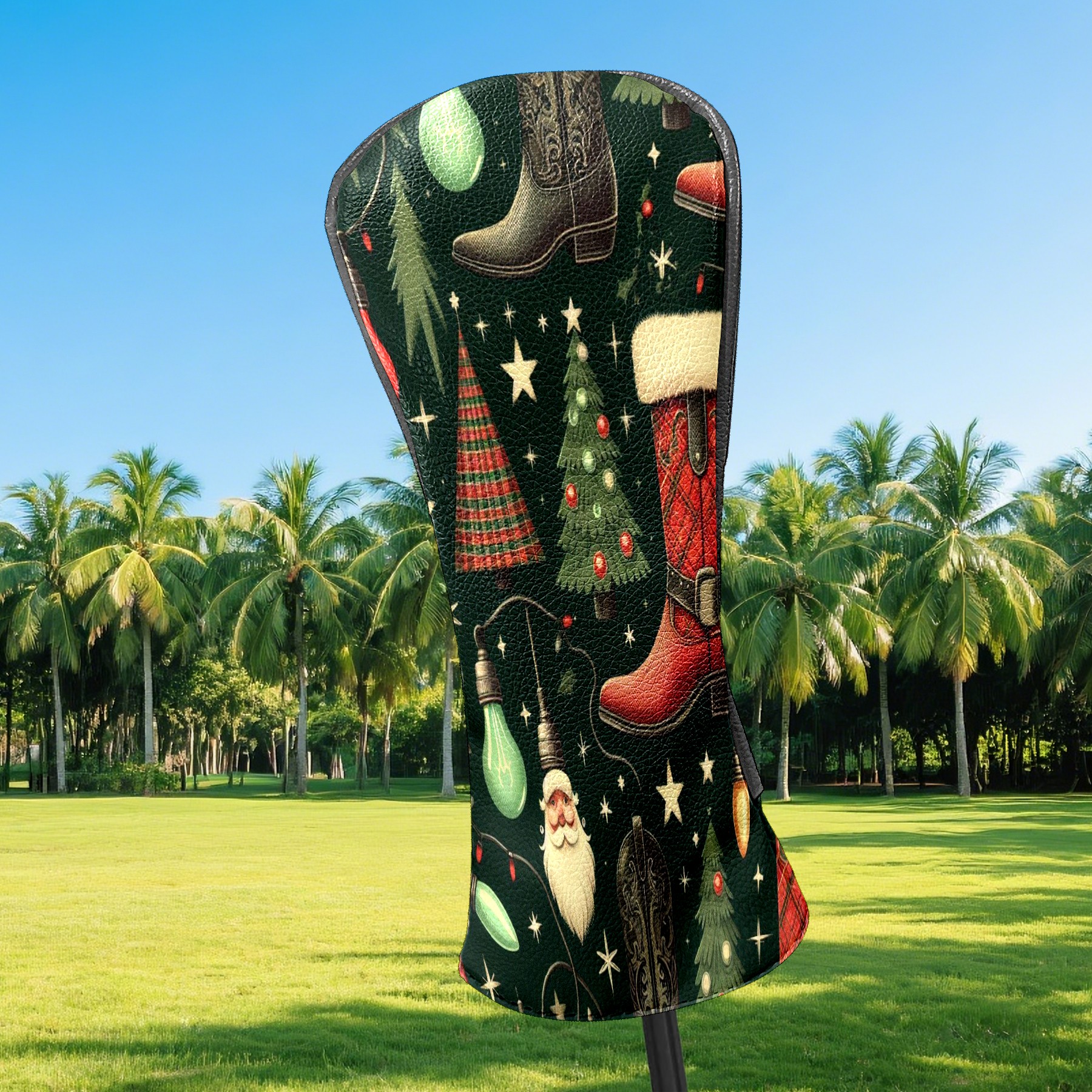 Golf Club Covers, DarkGreen Xmas Boot Premium PU Leather Driver Hybrid Putter Head Covers with Velvet Lining, Waterproof Golf Gifts for Men Women