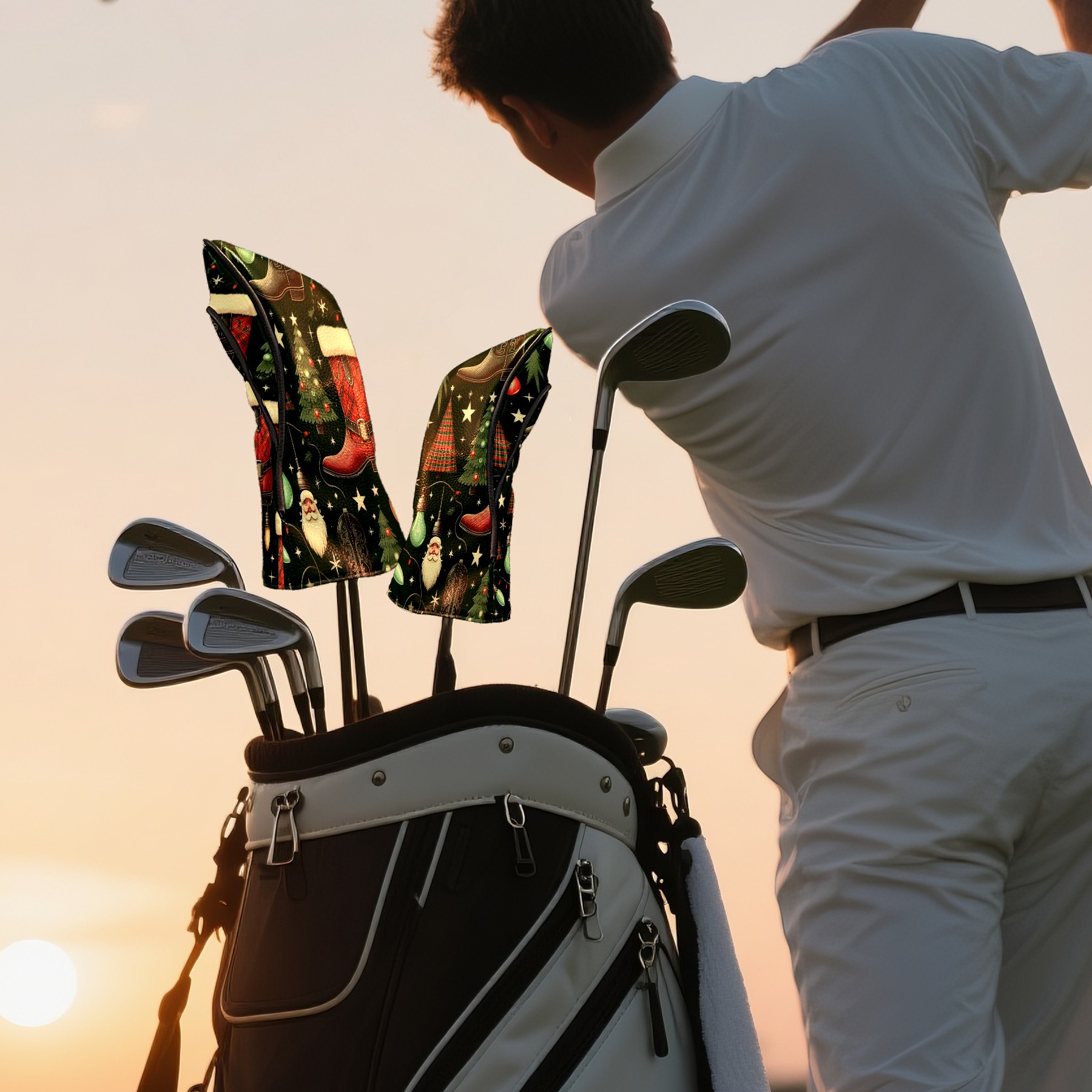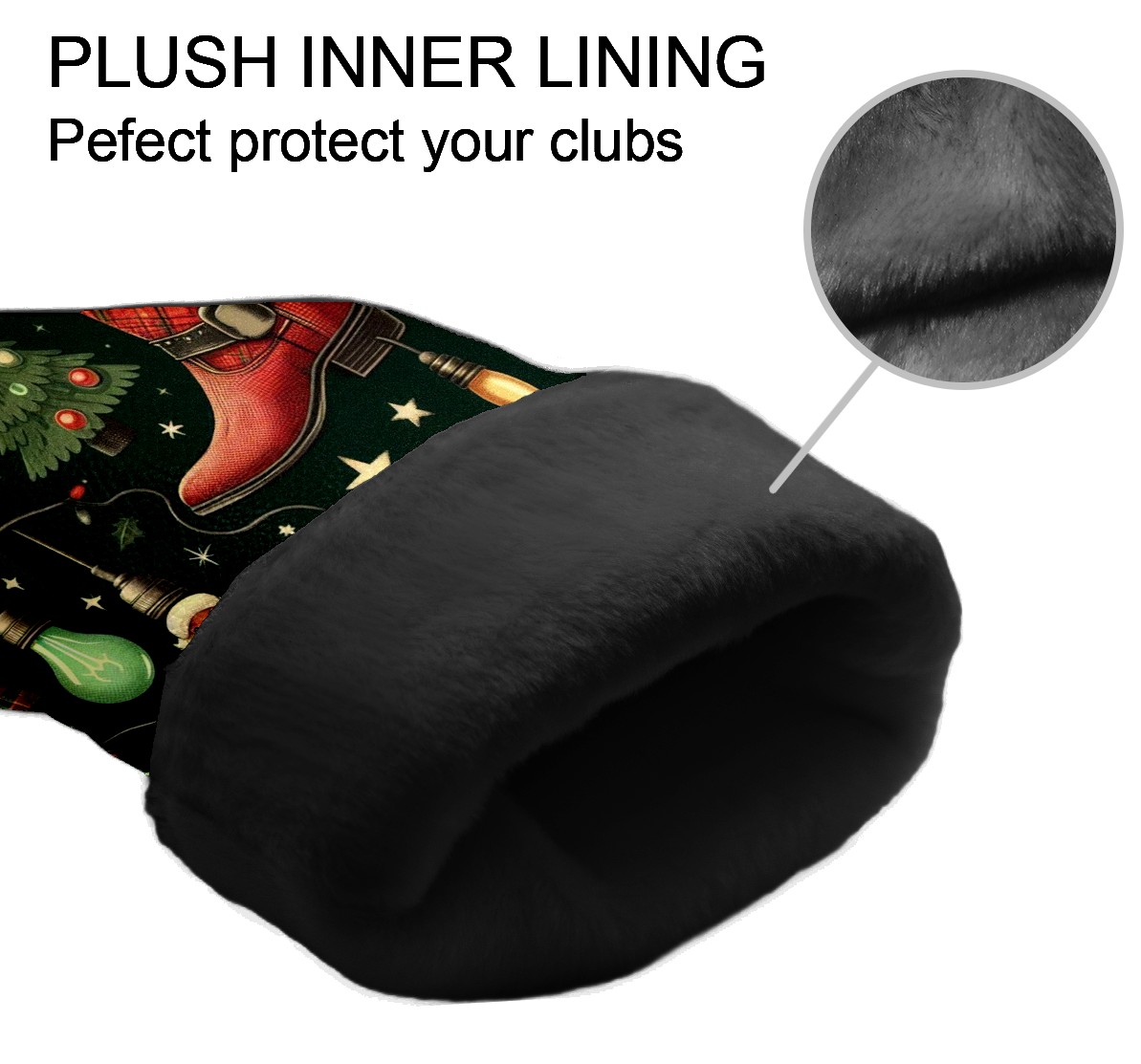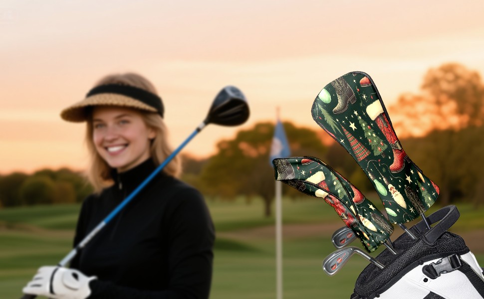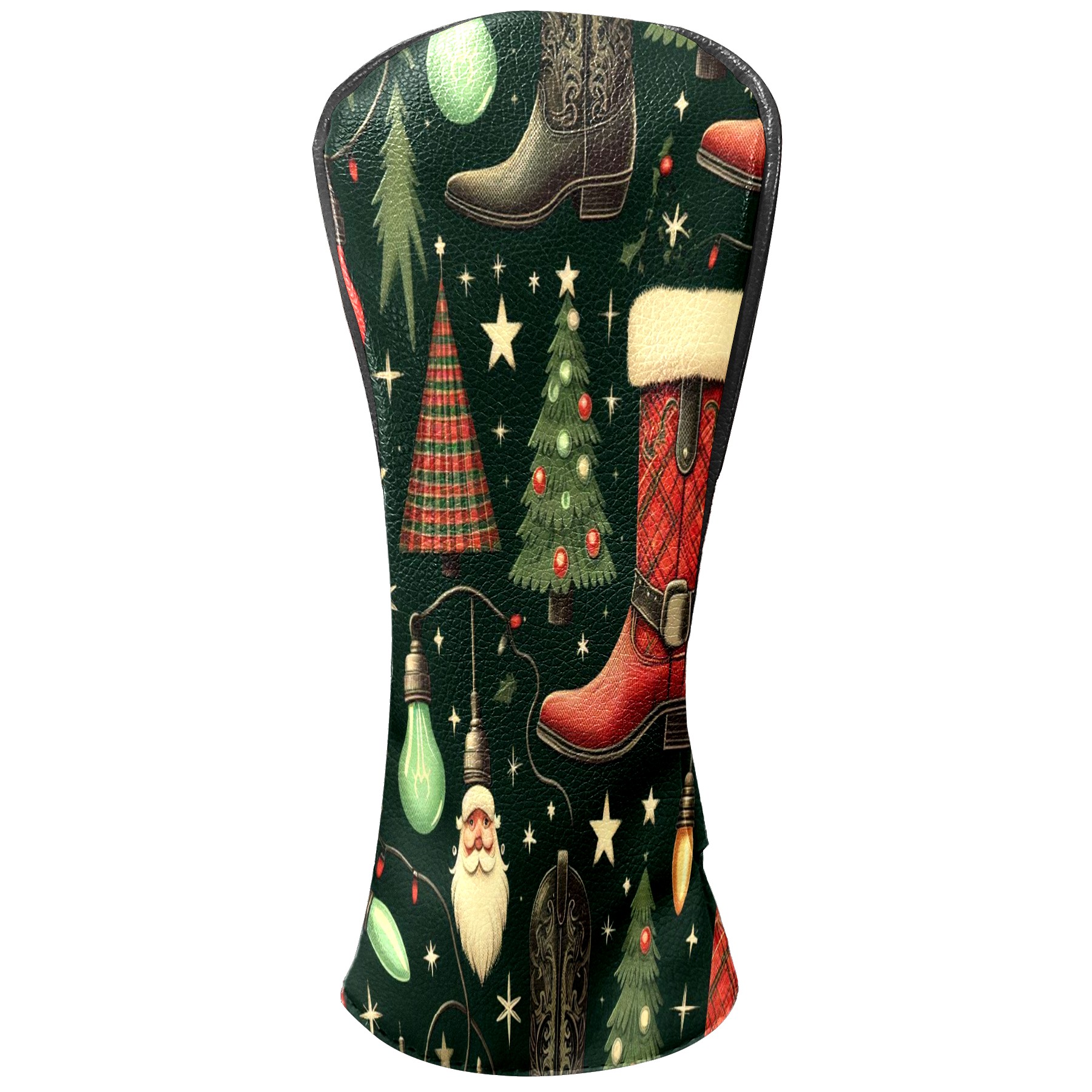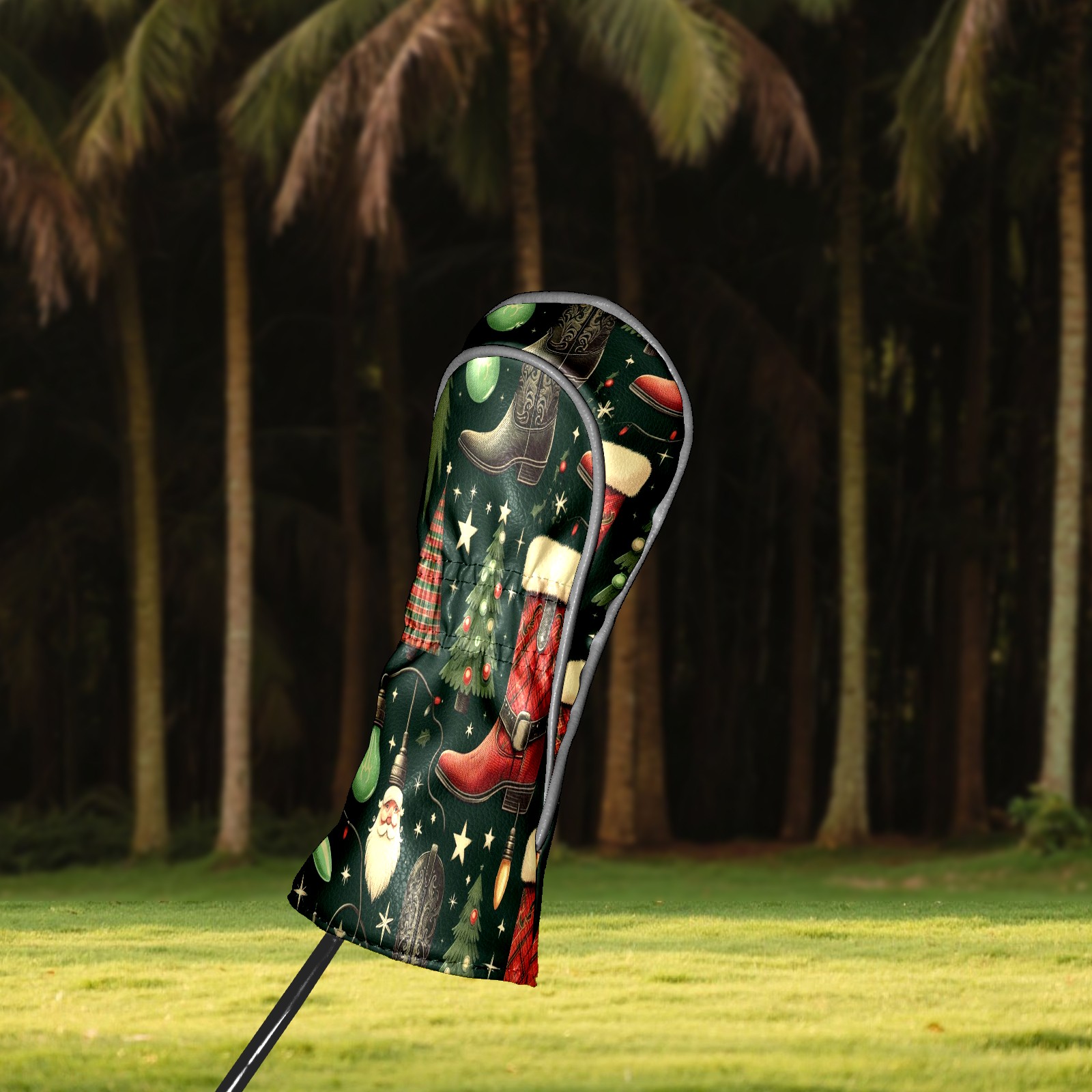 Golf Club Covers, DarkGreen Xmas Boot Premium PU Leather Driver Hybrid Putter Head Covers with Velvet Lining, Waterproof Golf Gifts for Men Women