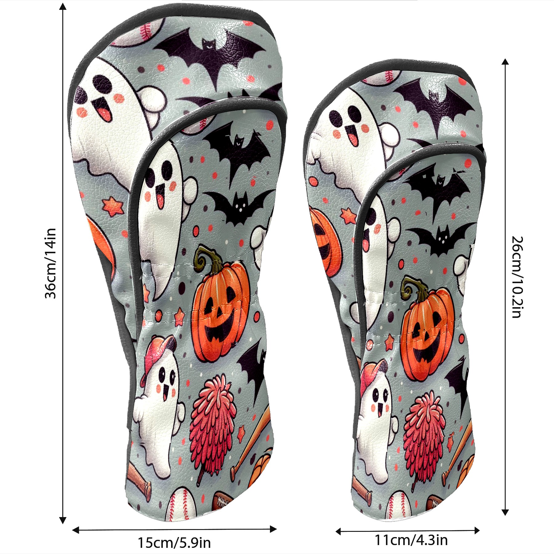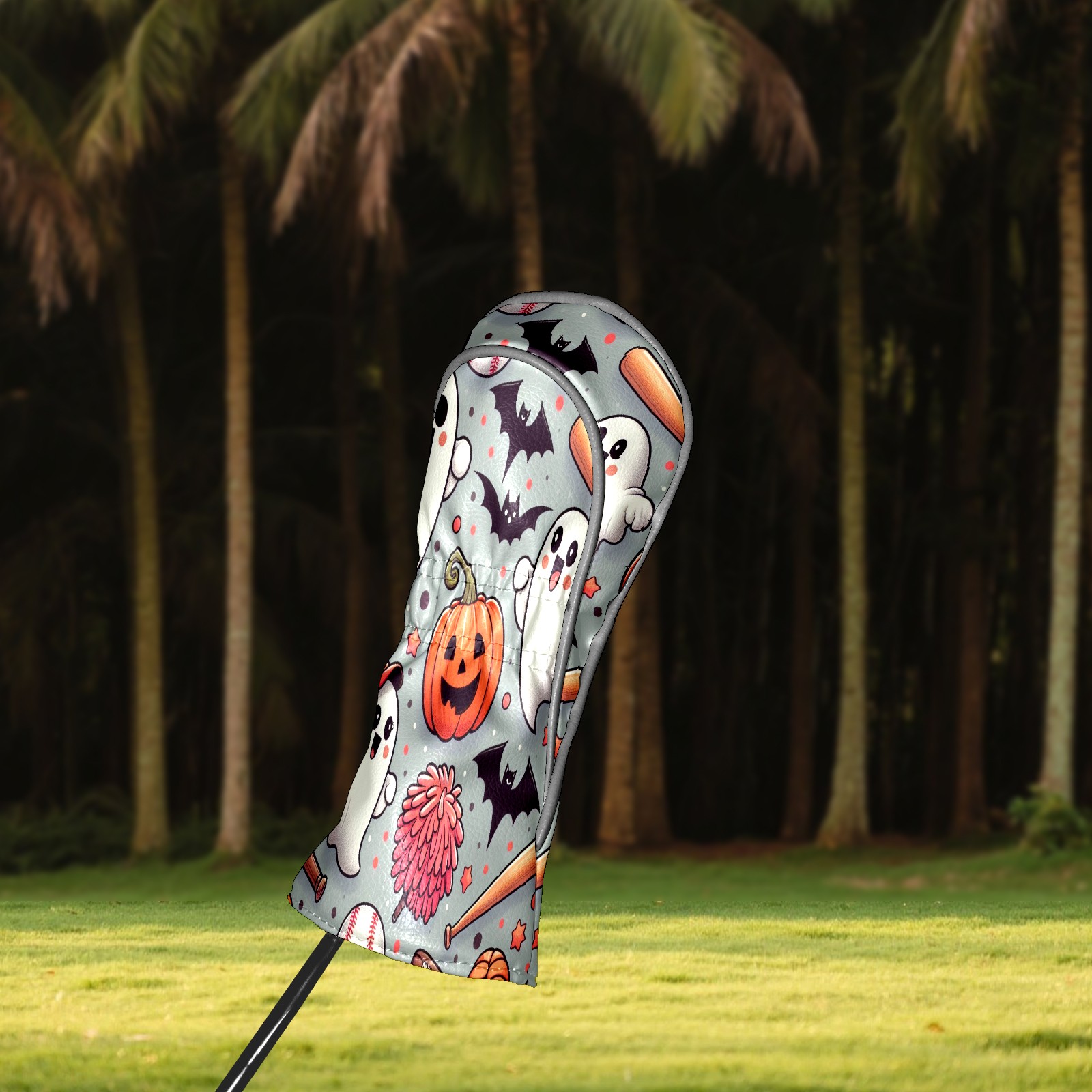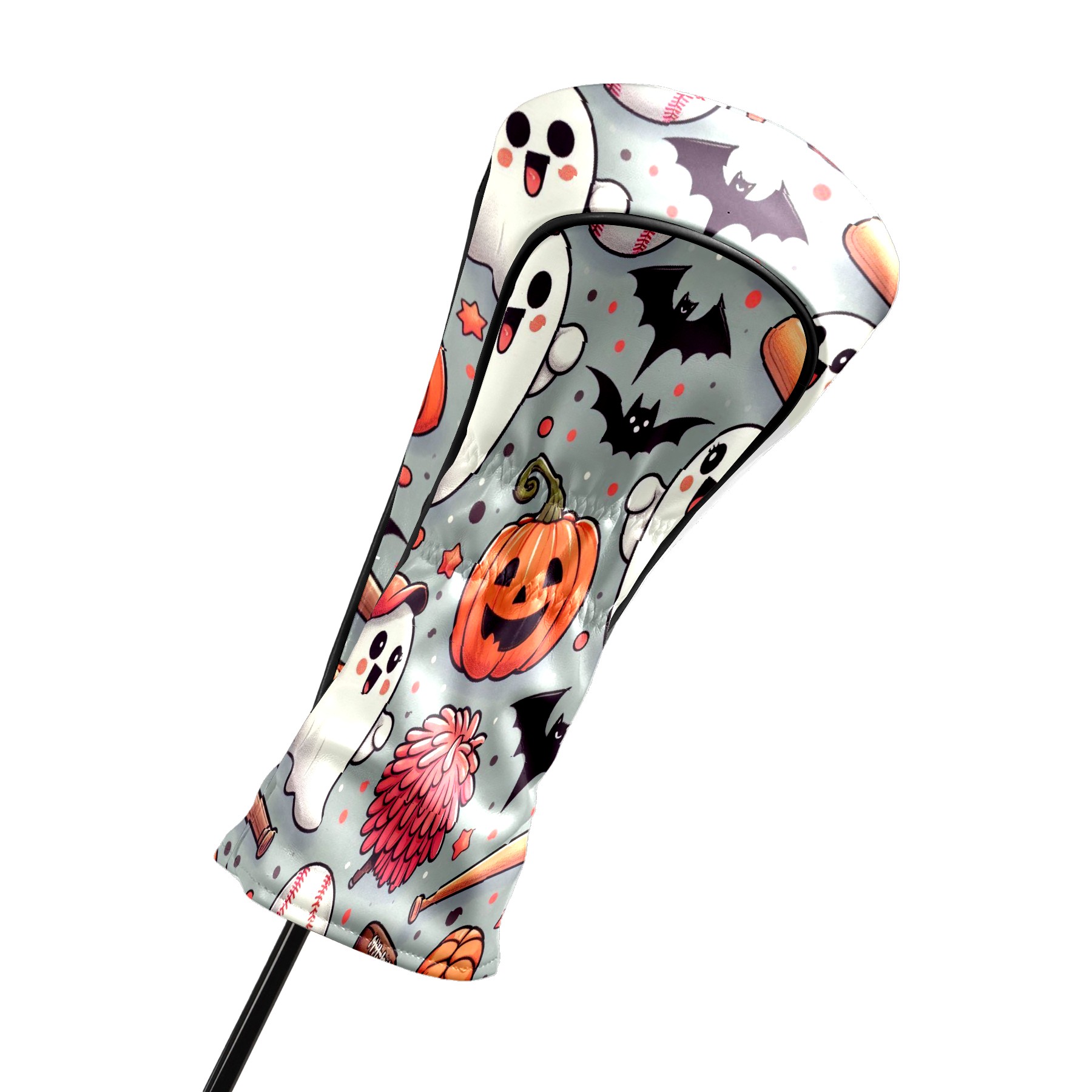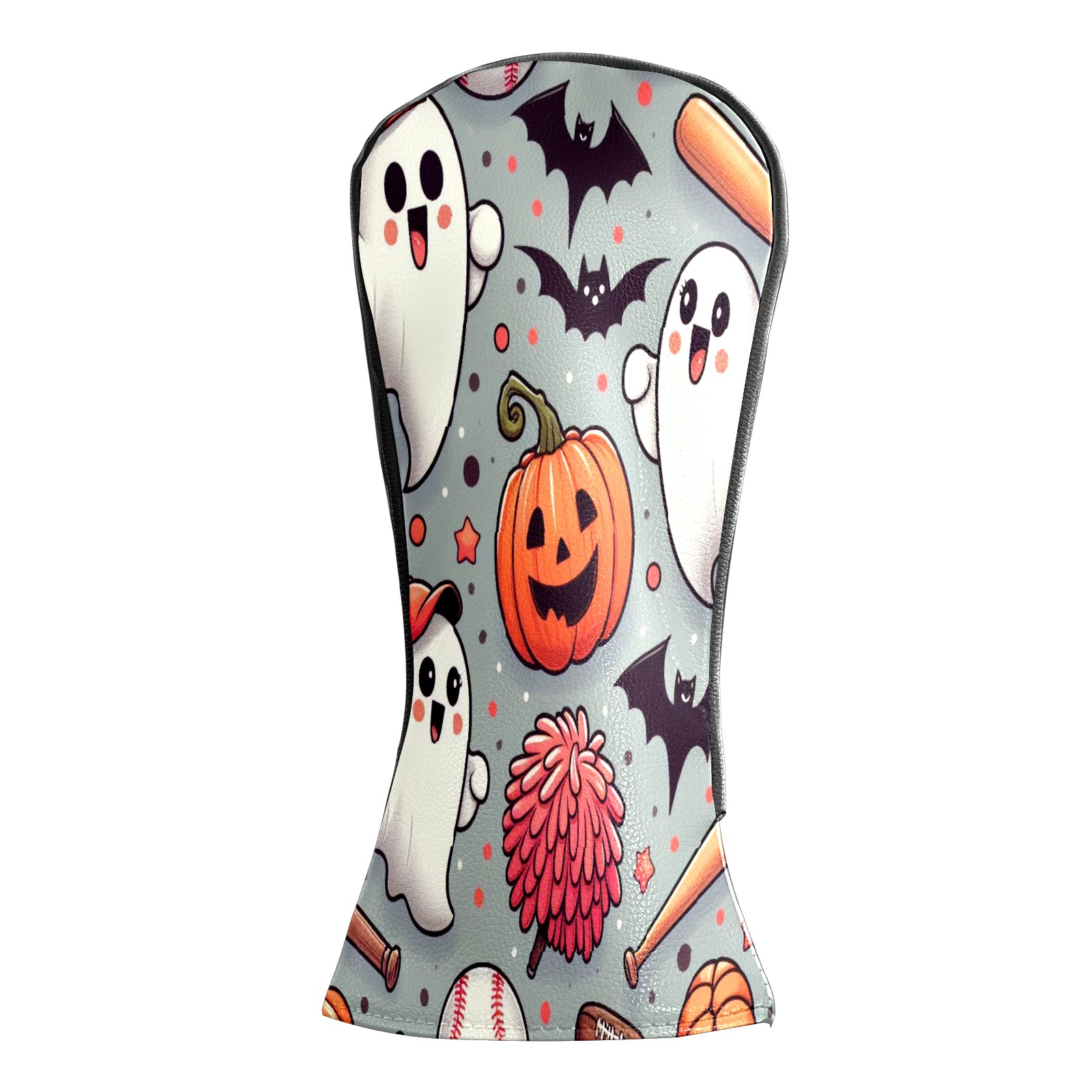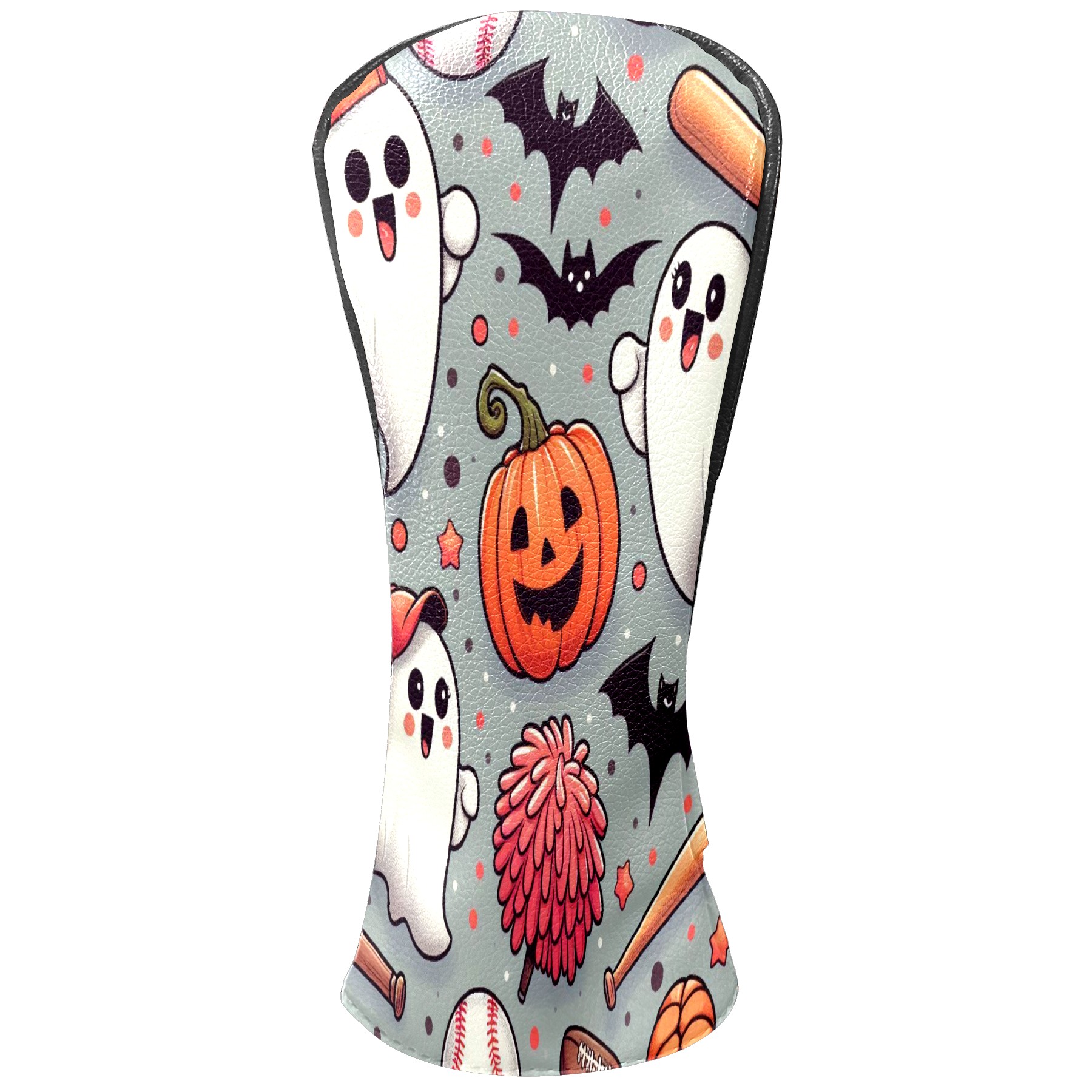 Golf Club Covers, Orange Ghost Pumpkin Premium PU Leather Driver Hybrid Putter Head Covers with Velvet Lining, Waterproof Golf Gifts for Men Women