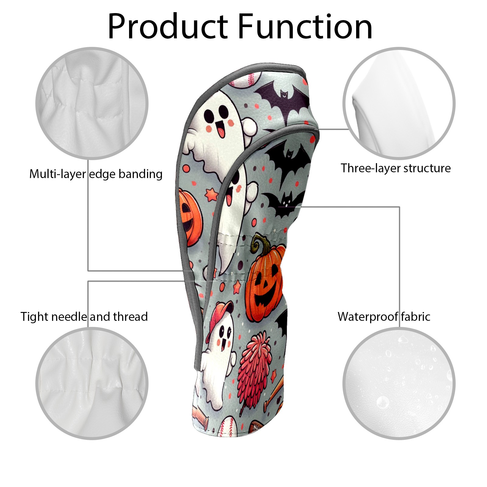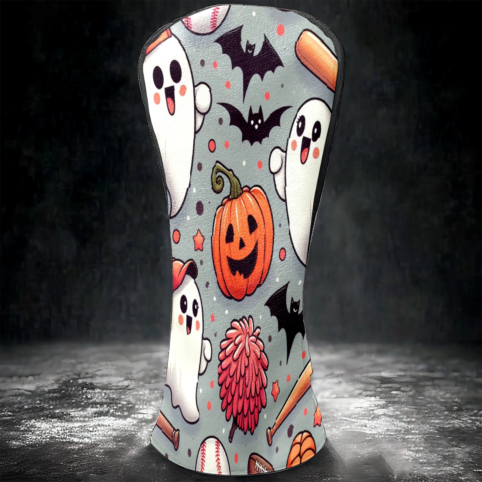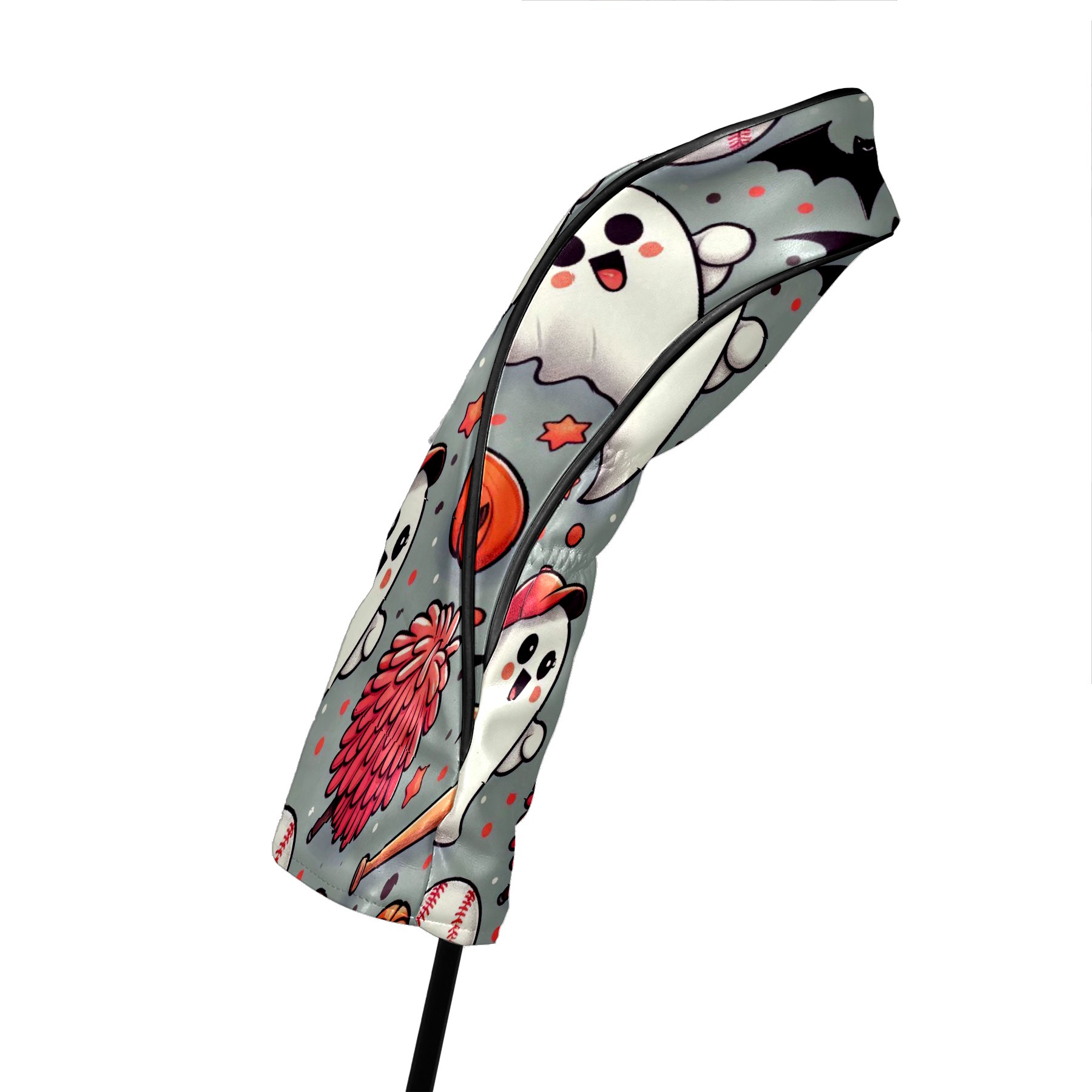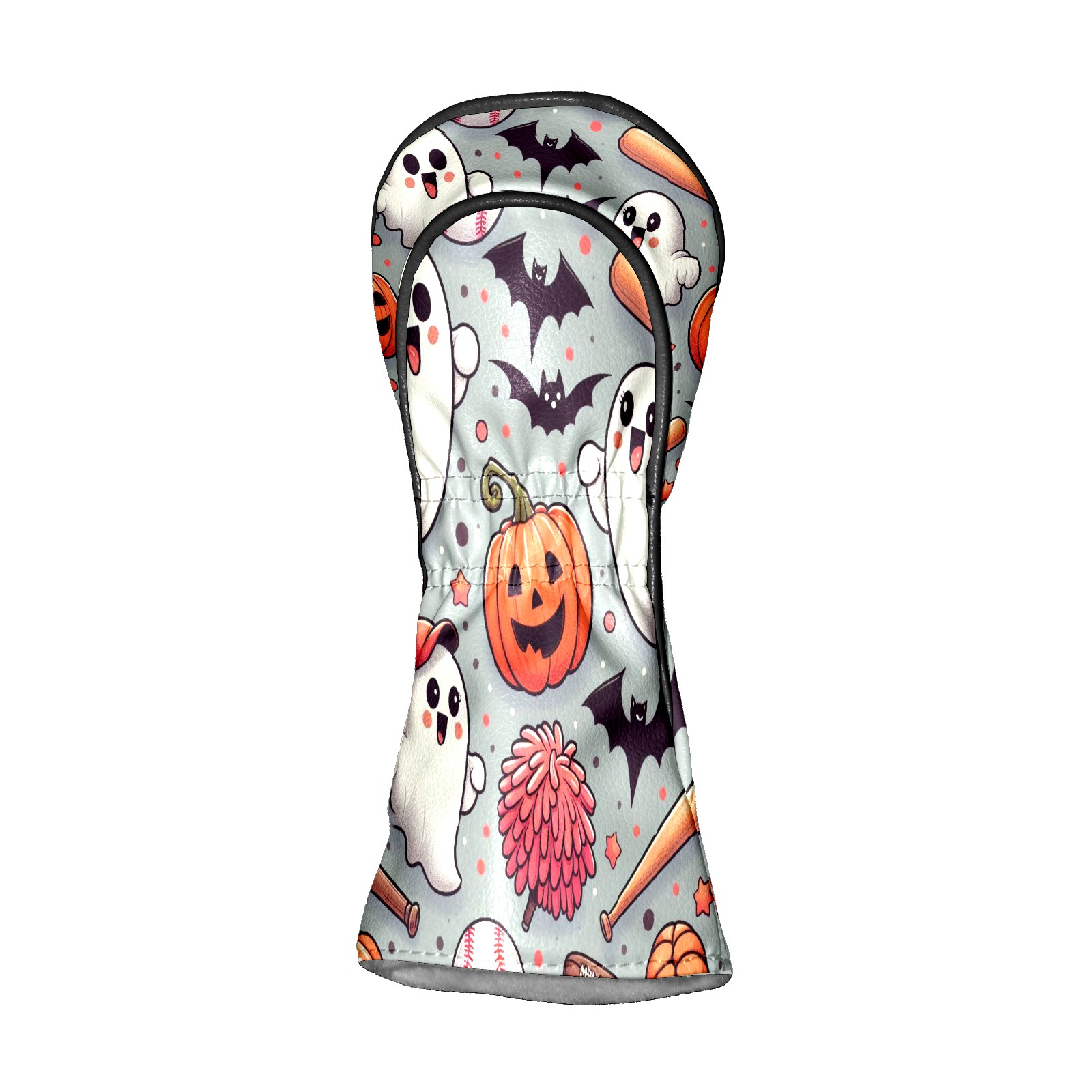 Golf Club Covers, Orange Ghost Pumpkin Premium PU Leather Driver Hybrid Putter Head Covers with Velvet Lining, Waterproof Golf Gifts for Men Women