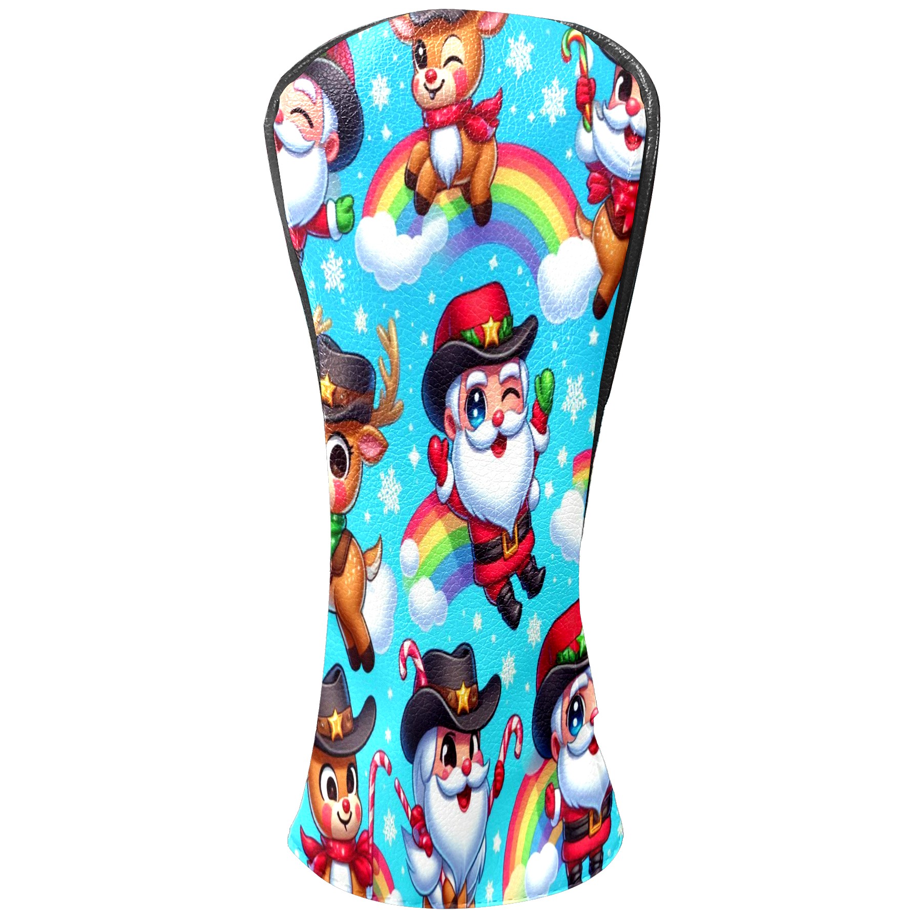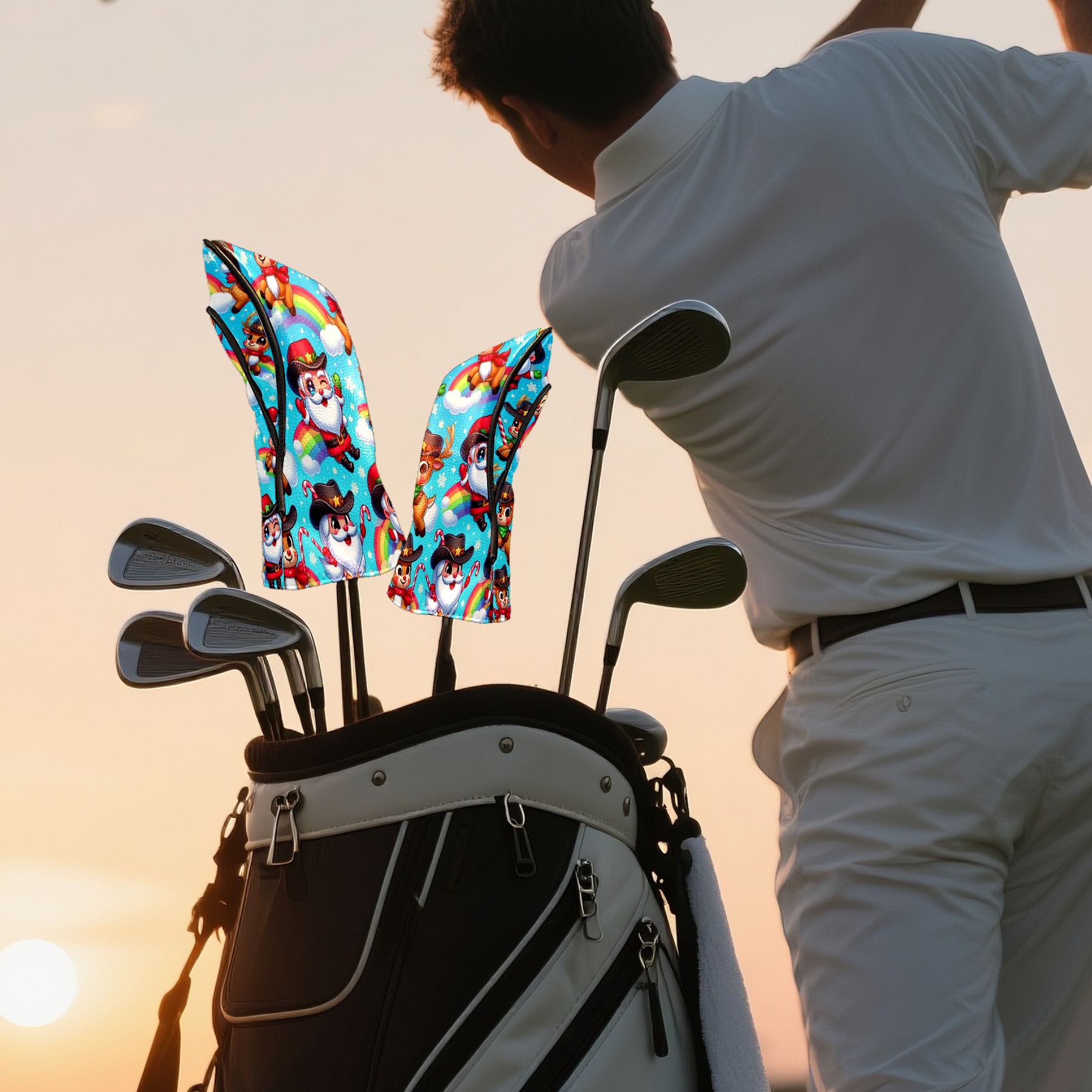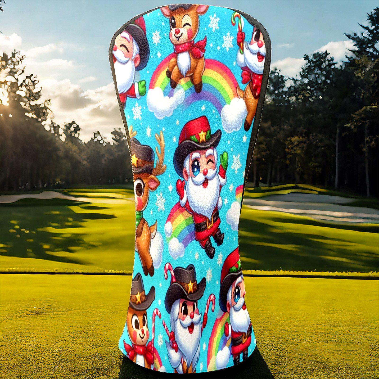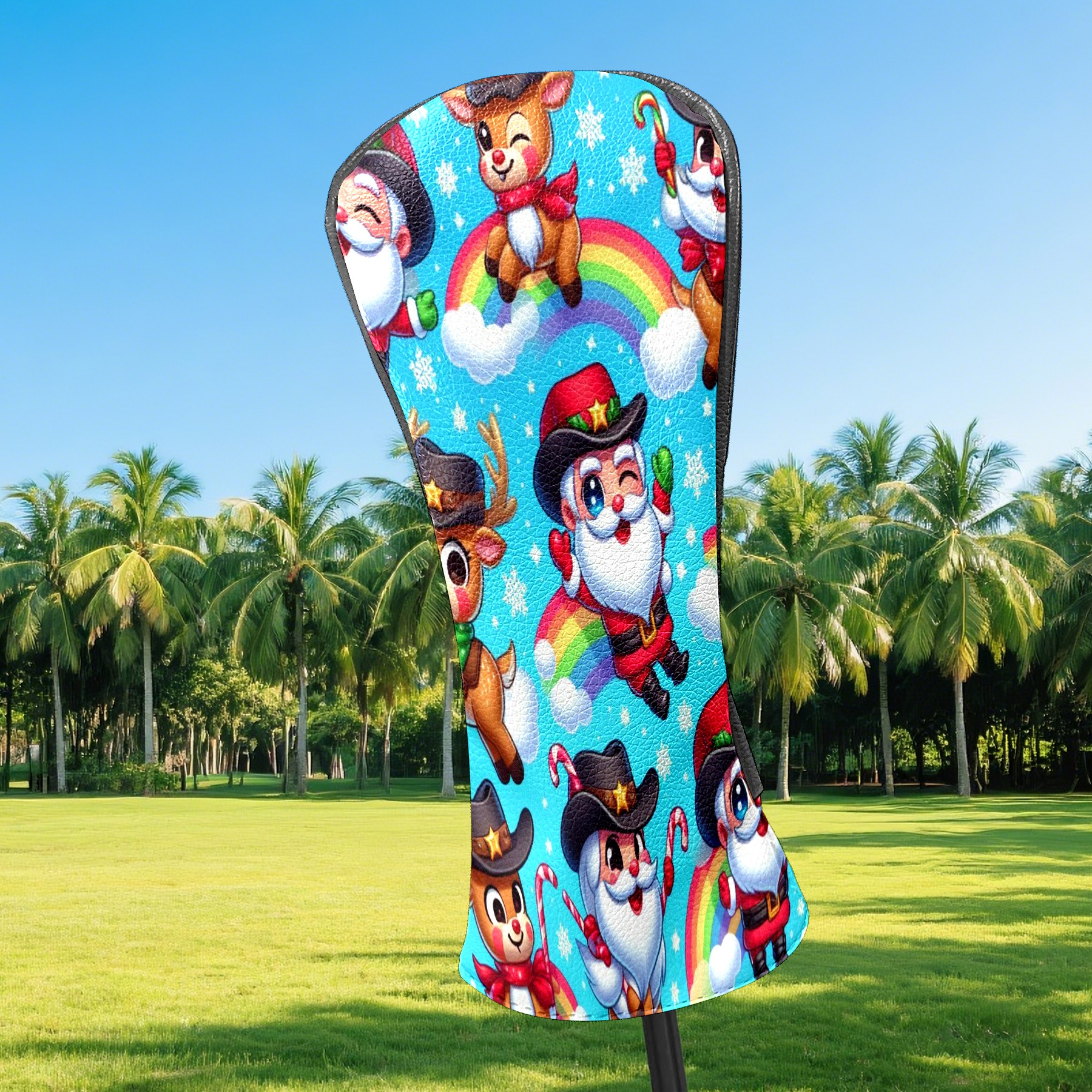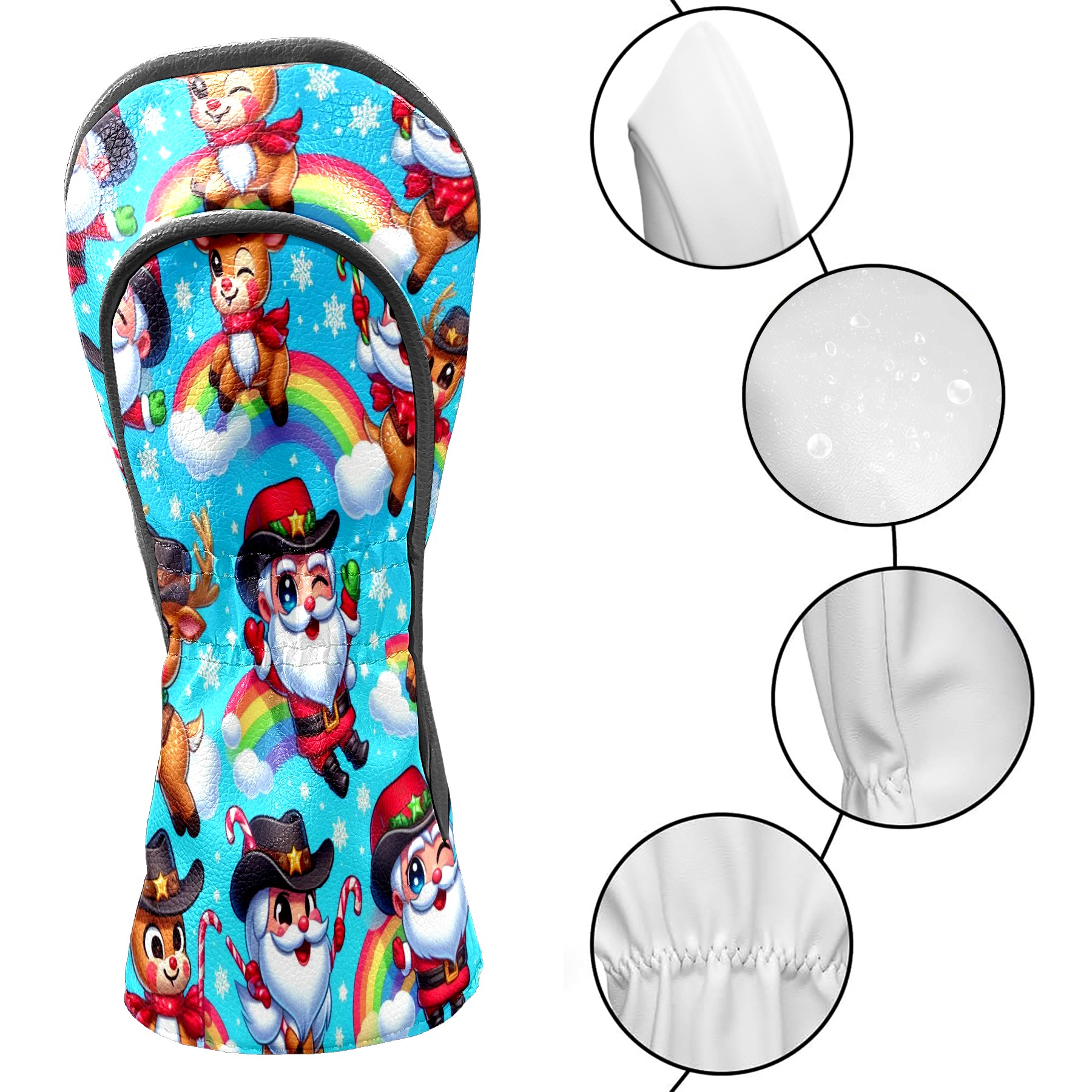 Golf Club Covers, Blue Xmas Rainbow Premium PU Leather Driver Hybrid Putter Head Covers with Velvet Lining, Waterproof Golf Gifts for Men Women