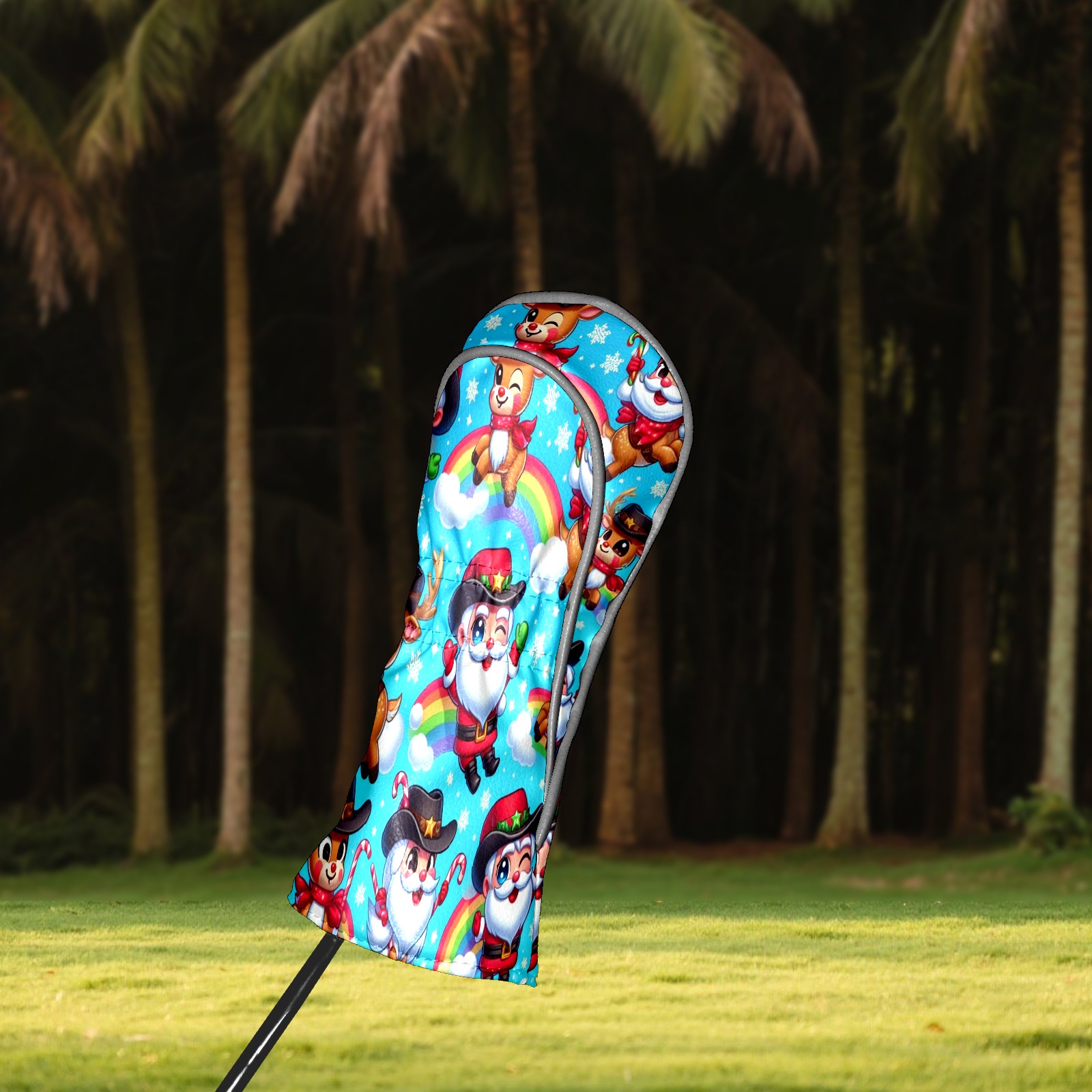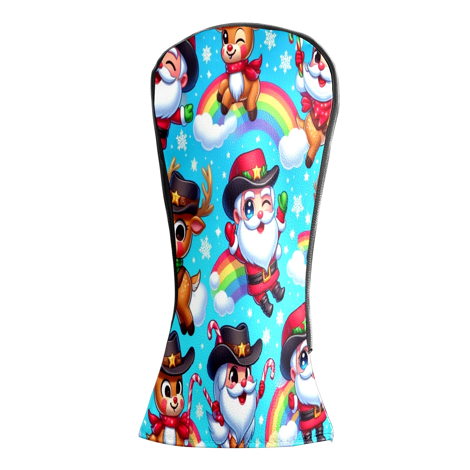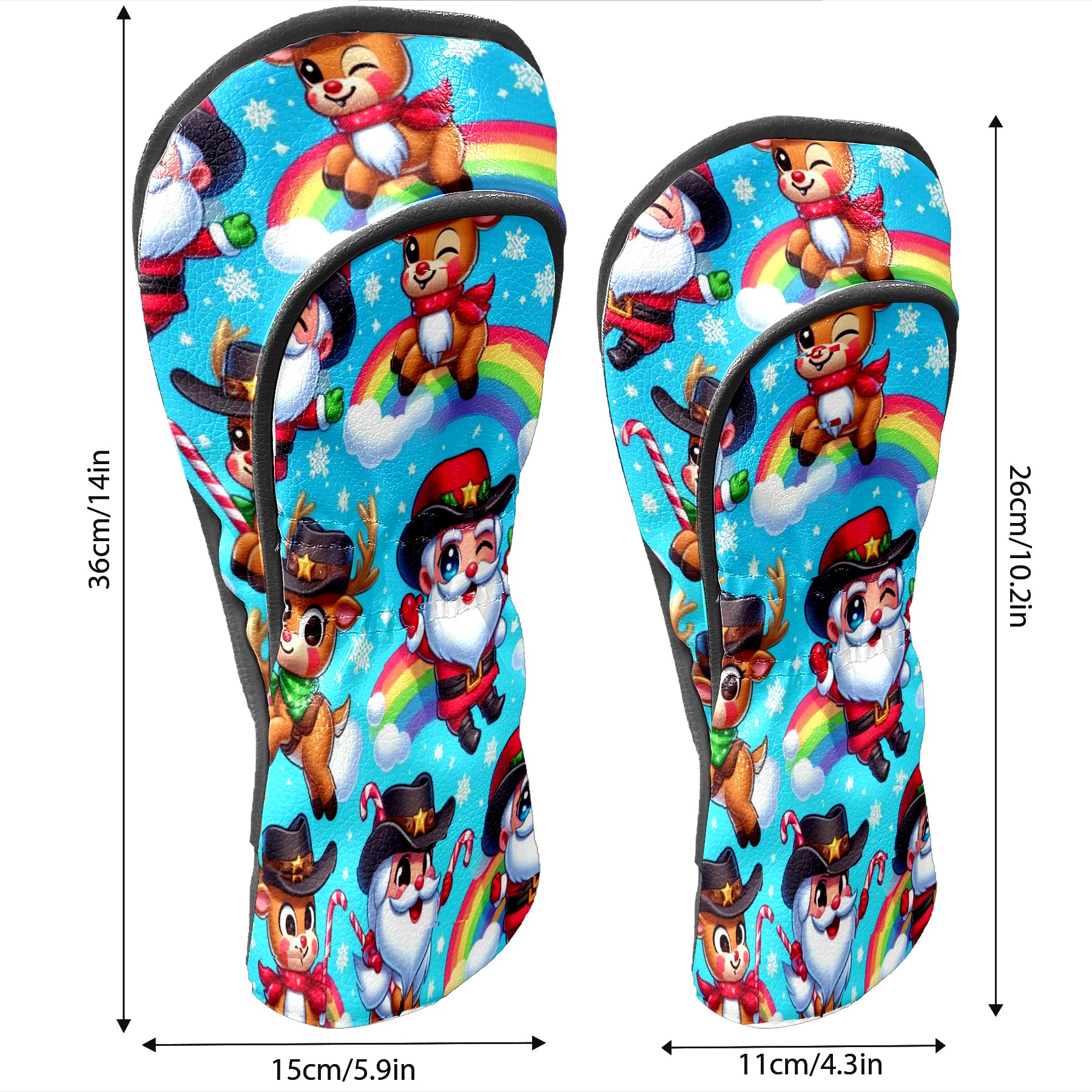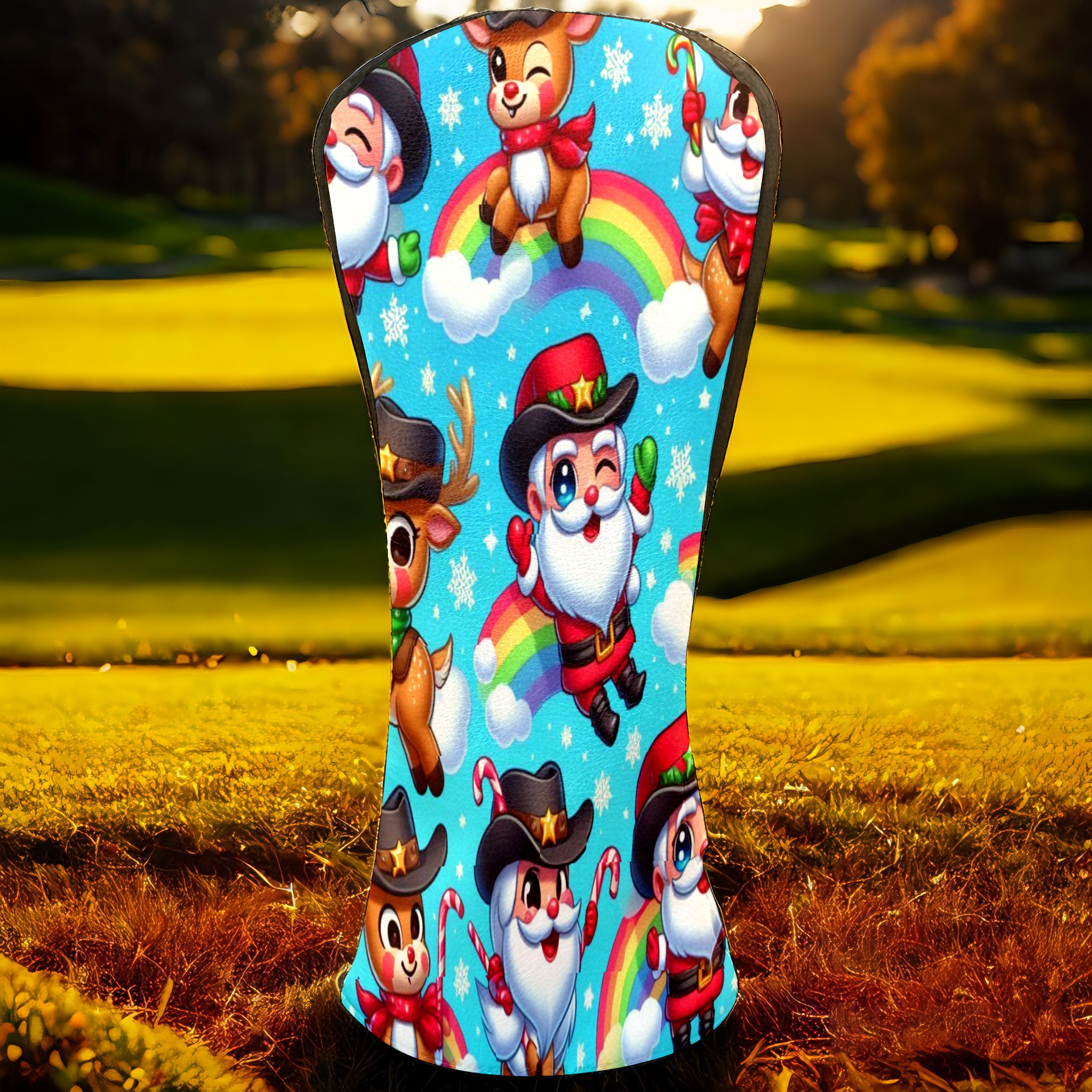 Golf Club Covers, Blue Xmas Rainbow Premium PU Leather Driver Hybrid Putter Head Covers with Velvet Lining, Waterproof Golf Gifts for Men Women