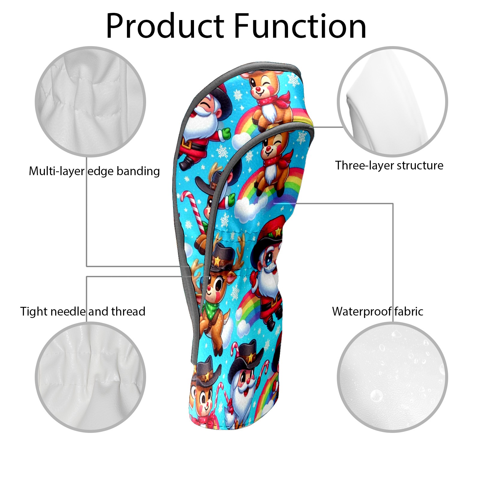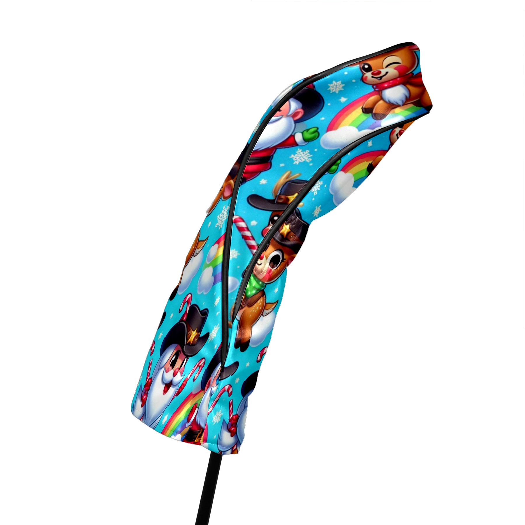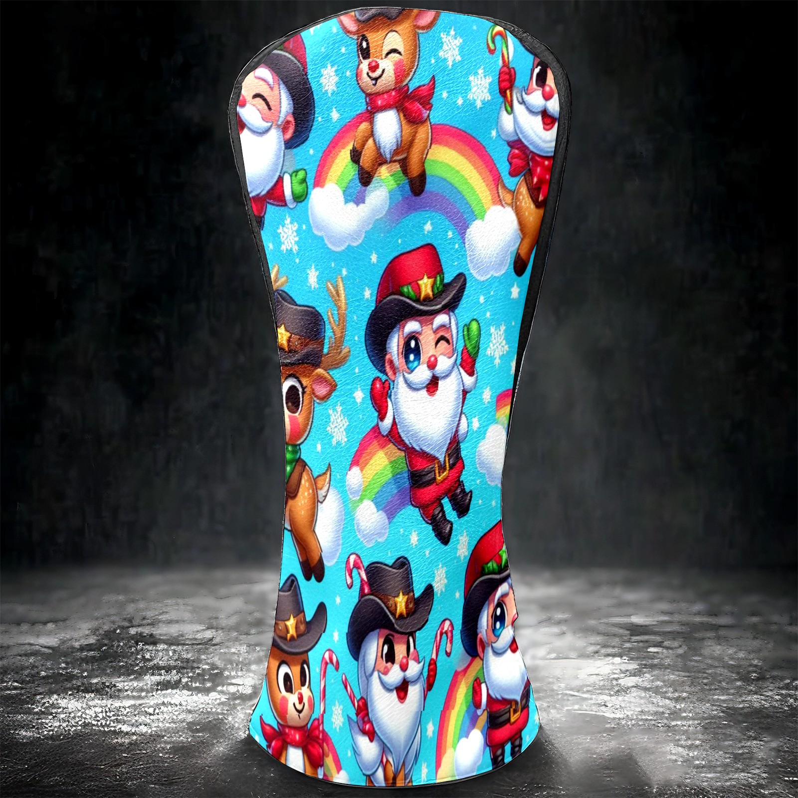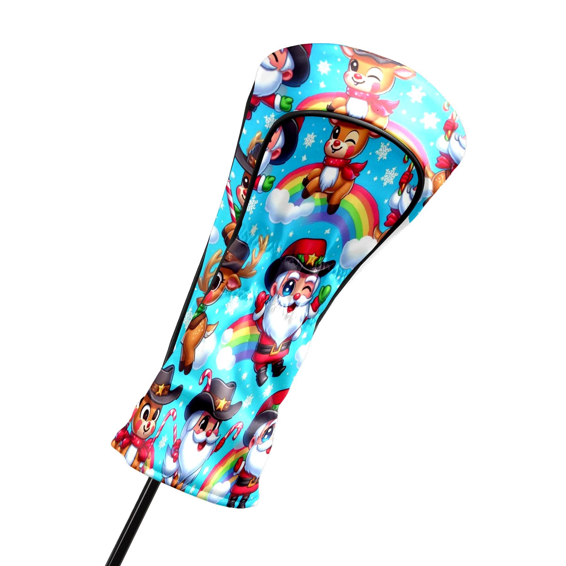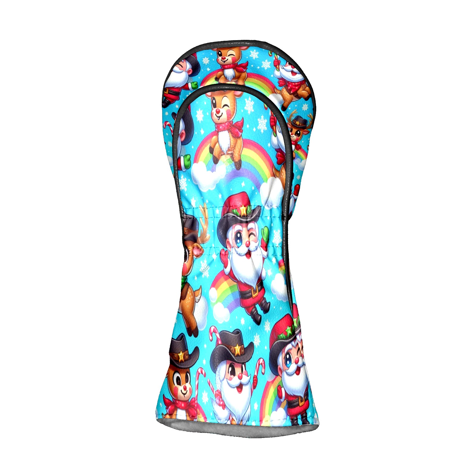 Golf Club Covers, Blue Xmas Rainbow Premium PU Leather Driver Hybrid Putter Head Covers with Velvet Lining, Waterproof Golf Gifts for Men Women