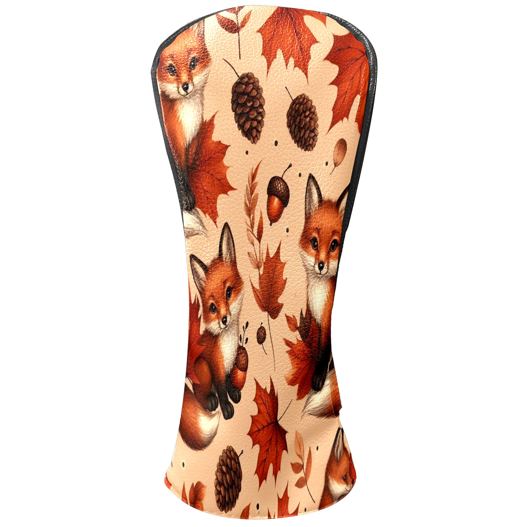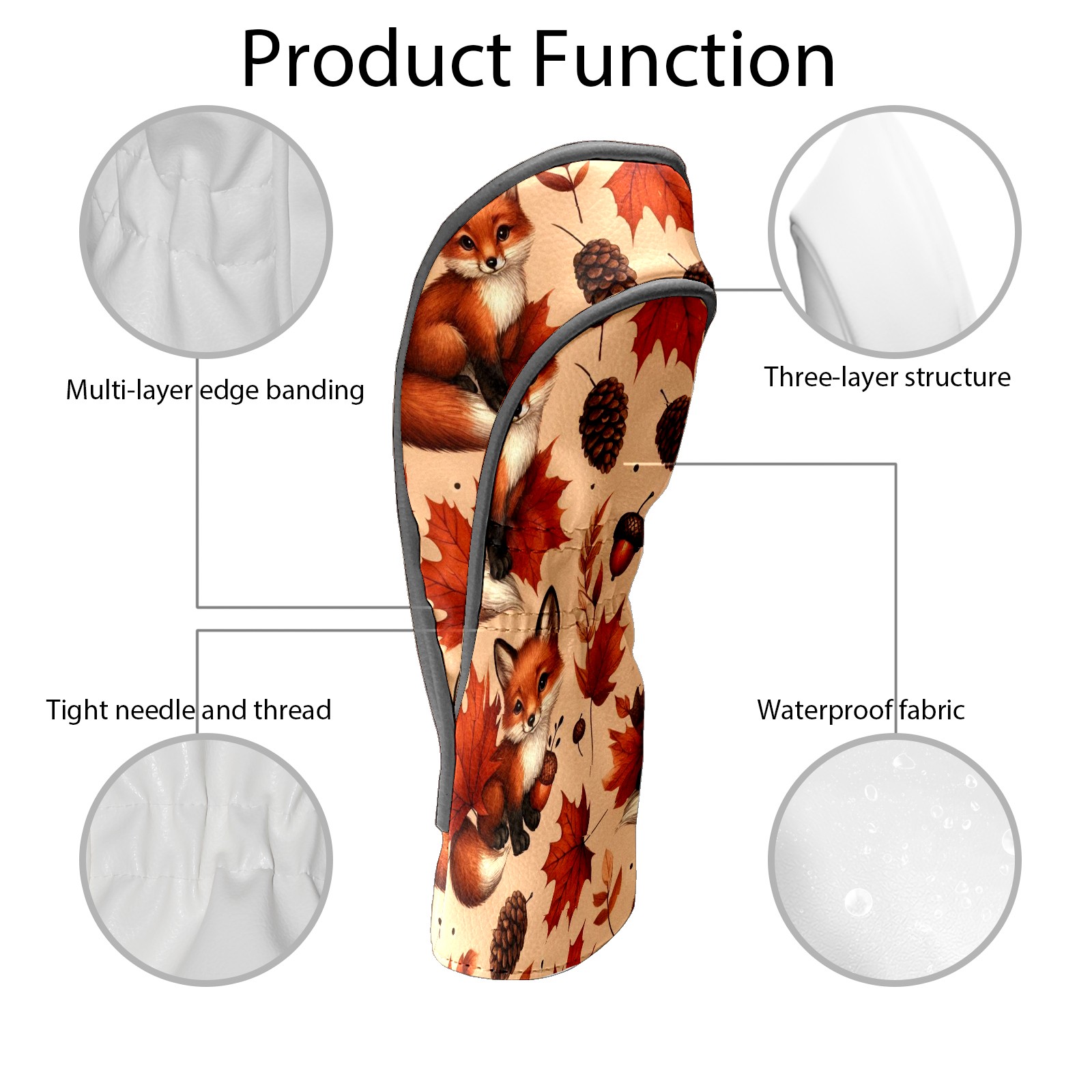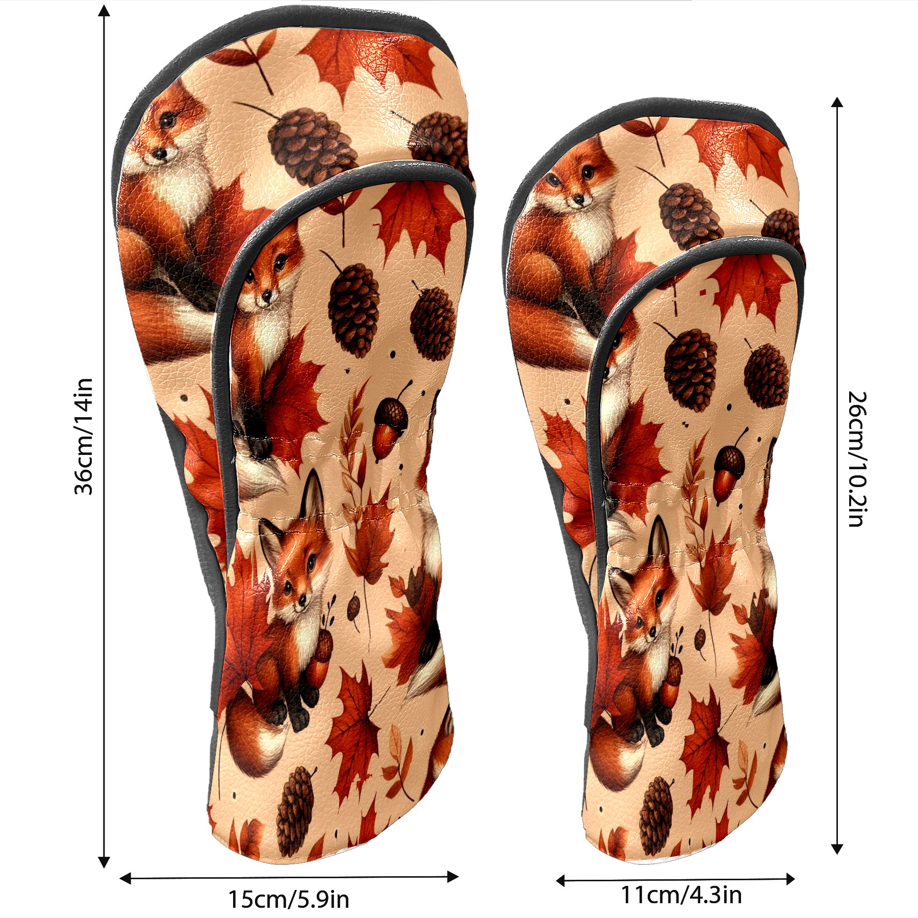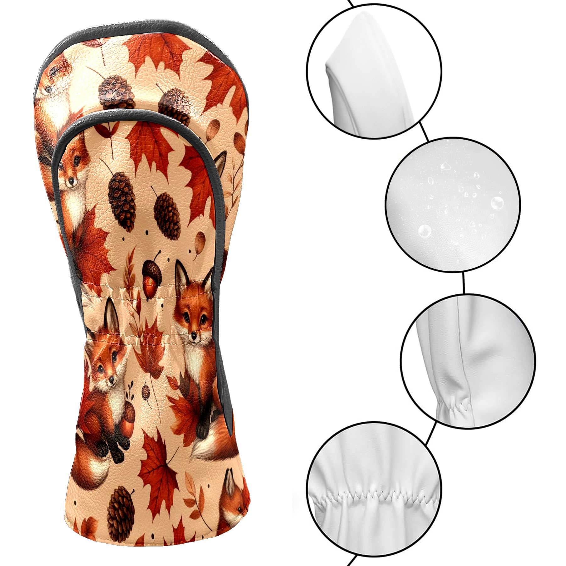 Golf Club Covers, Orange Fox Premium PU Leather Driver Hybrid Putter Head Covers with Velvet Lining, Waterproof Golf Gifts for Men Women