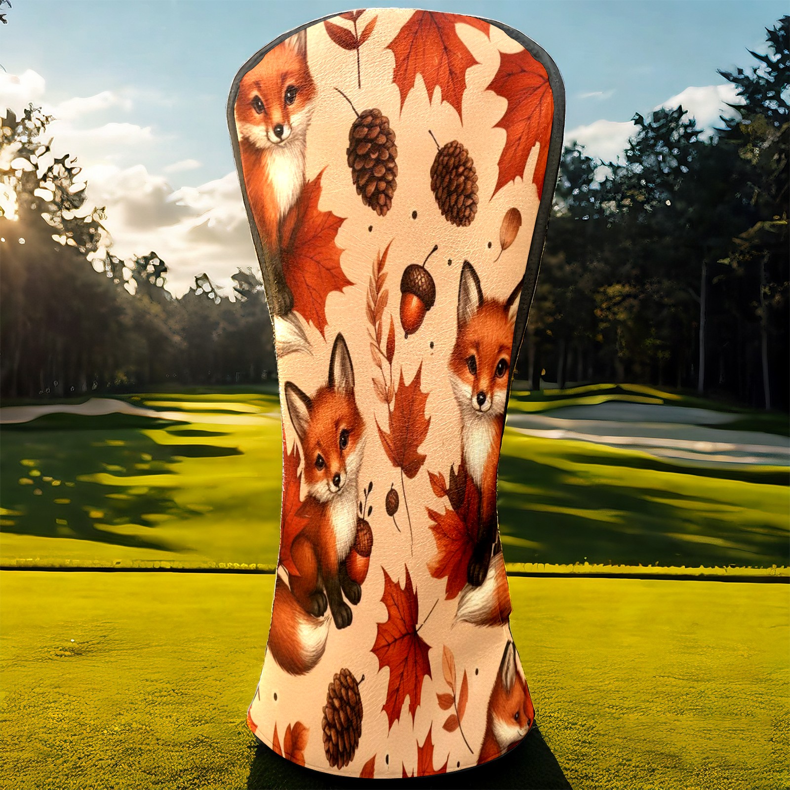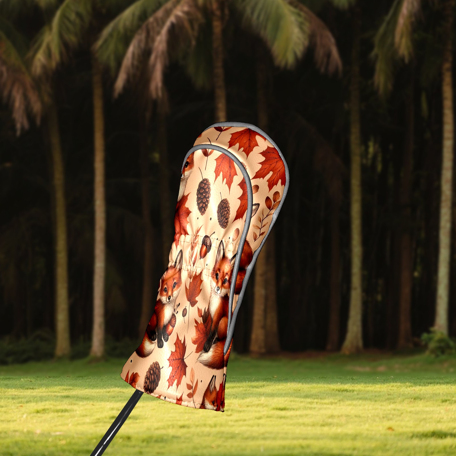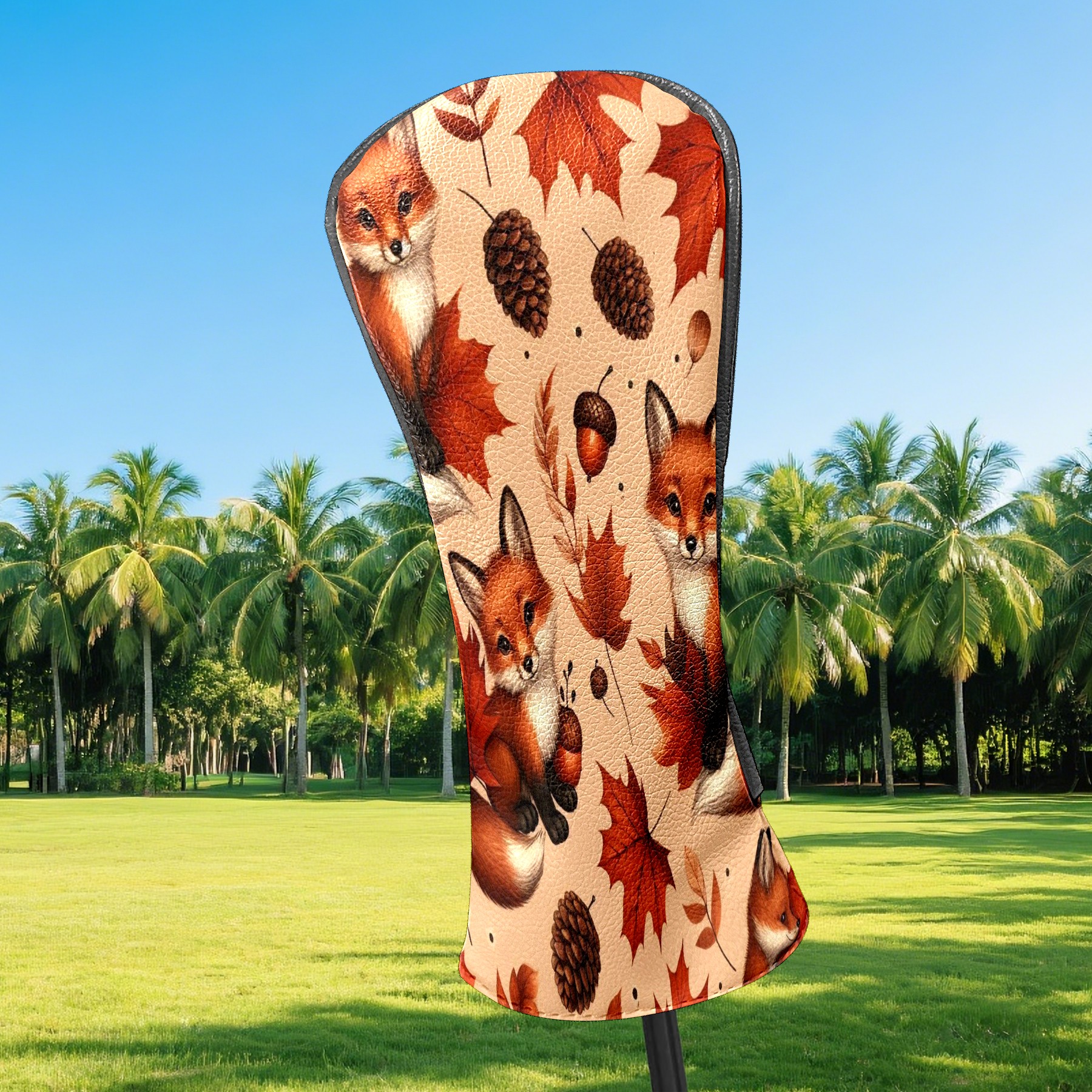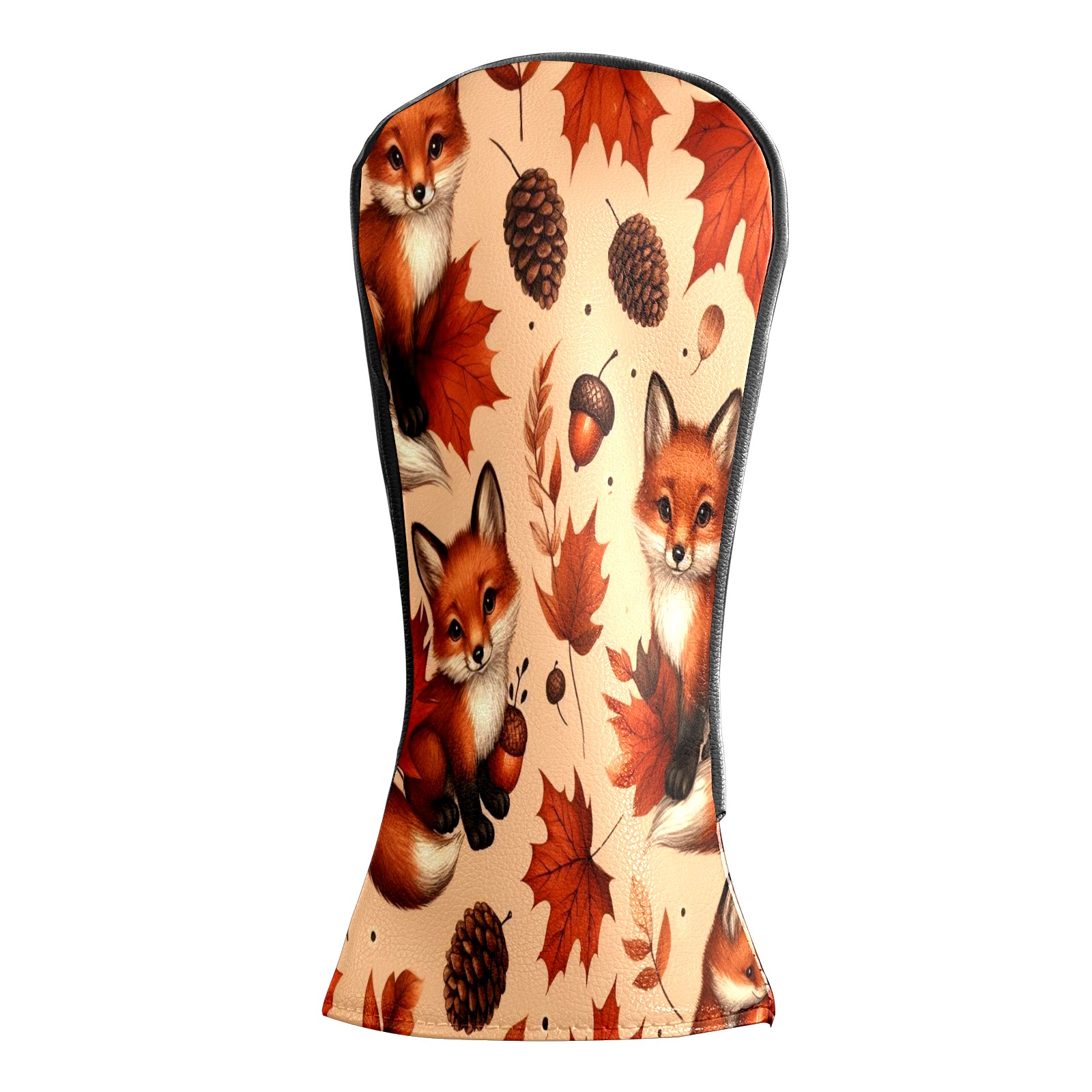 Golf Club Covers, Orange Fox Premium PU Leather Driver Hybrid Putter Head Covers with Velvet Lining, Waterproof Golf Gifts for Men Women