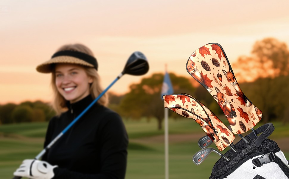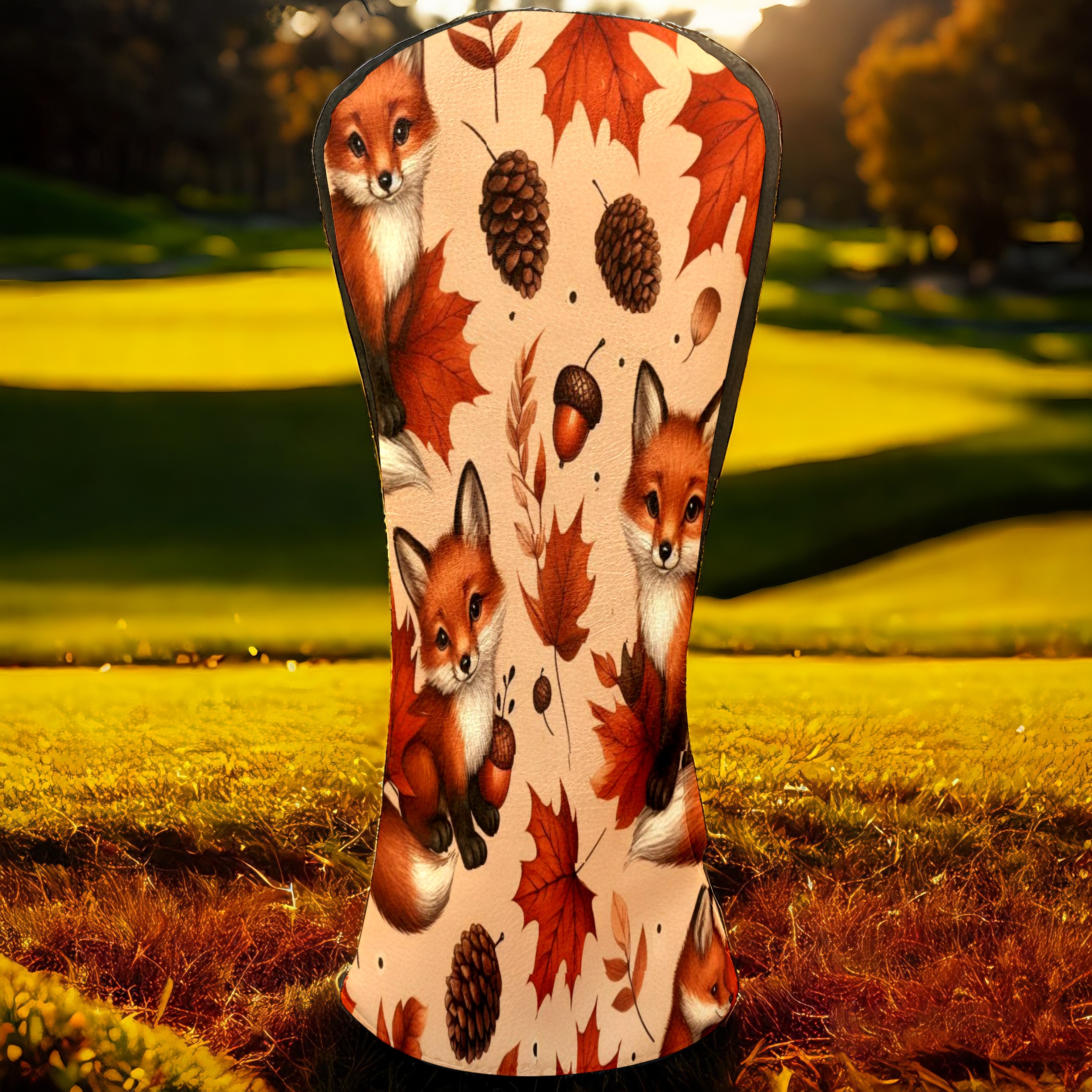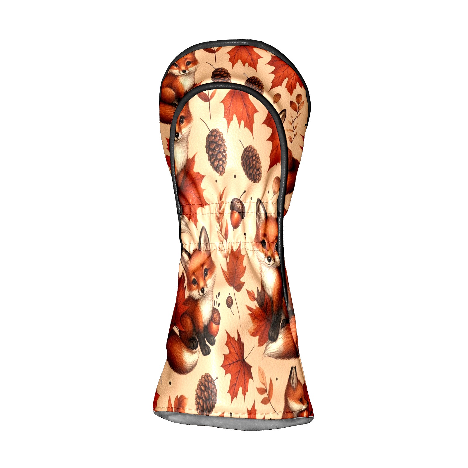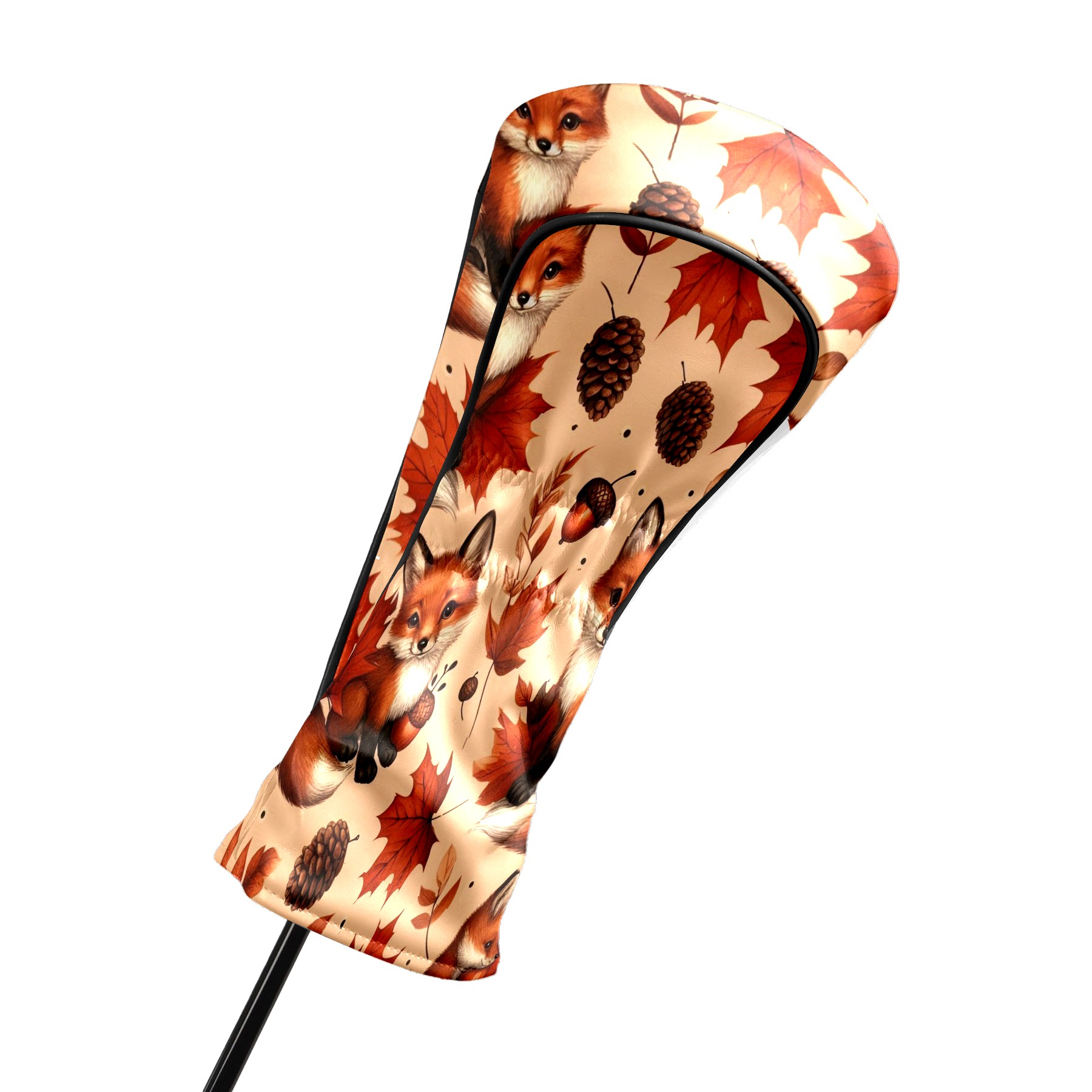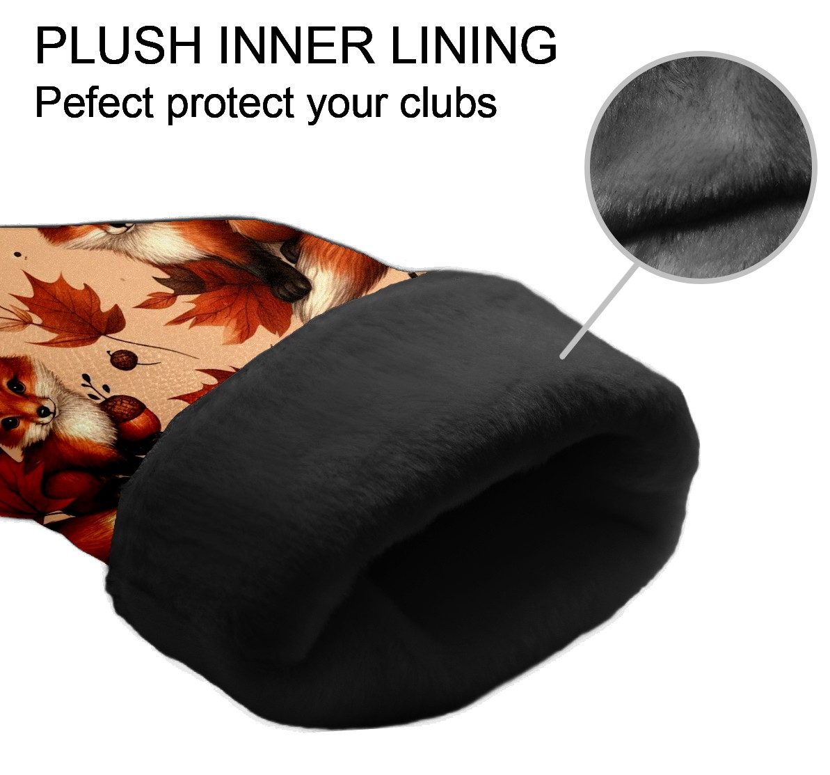 Golf Club Covers, Orange Fox Premium PU Leather Driver Hybrid Putter Head Covers with Velvet Lining, Waterproof Golf Gifts for Men Women