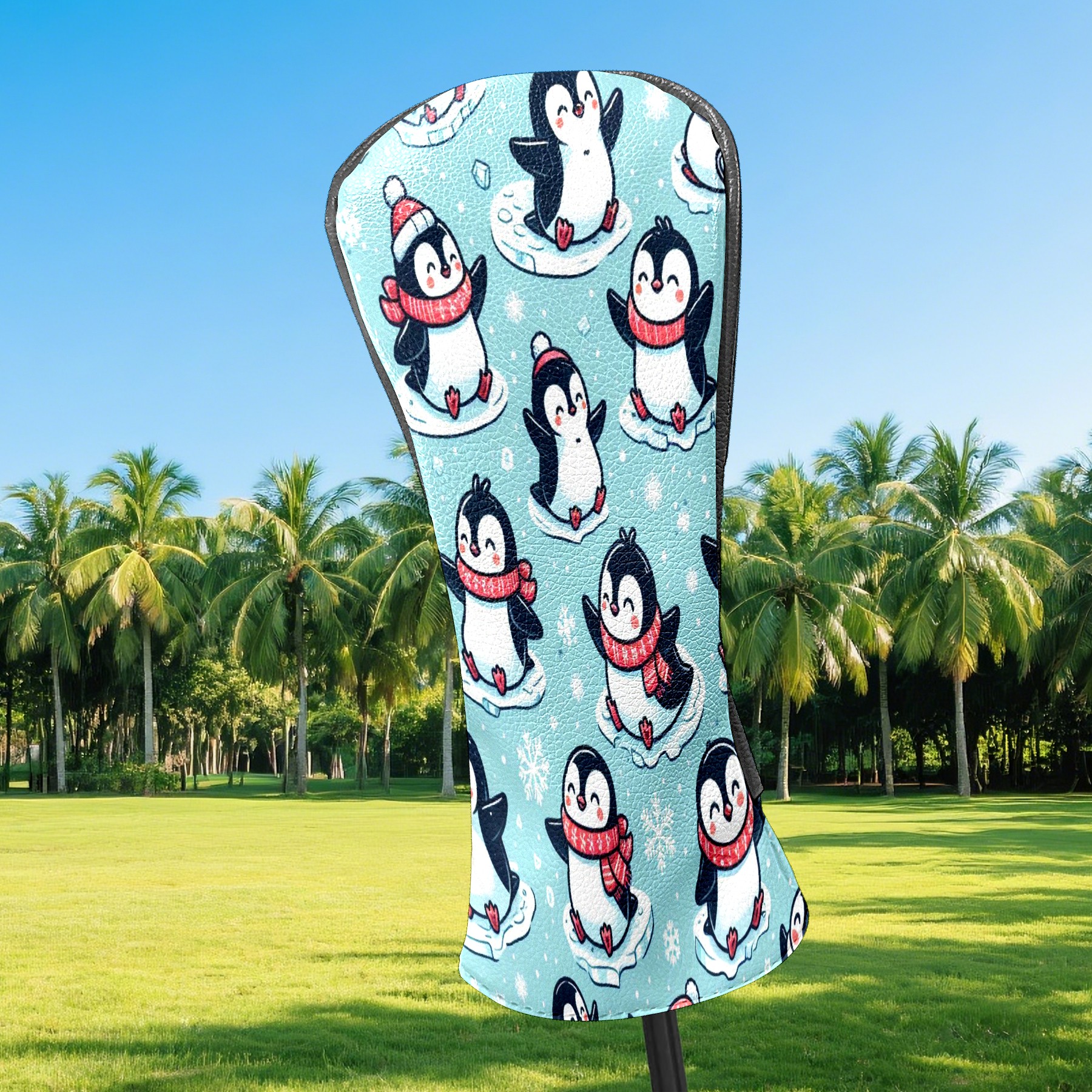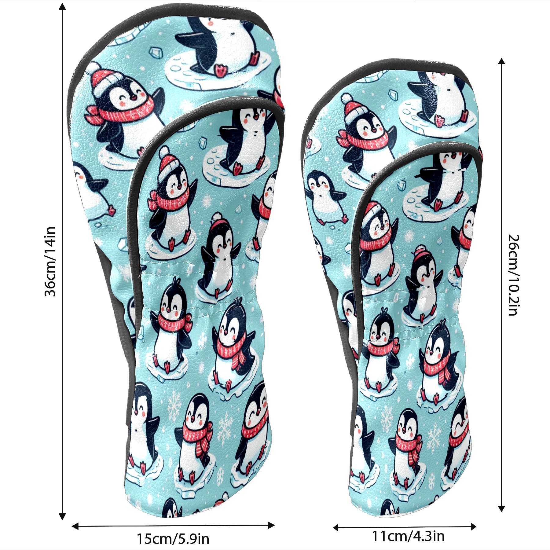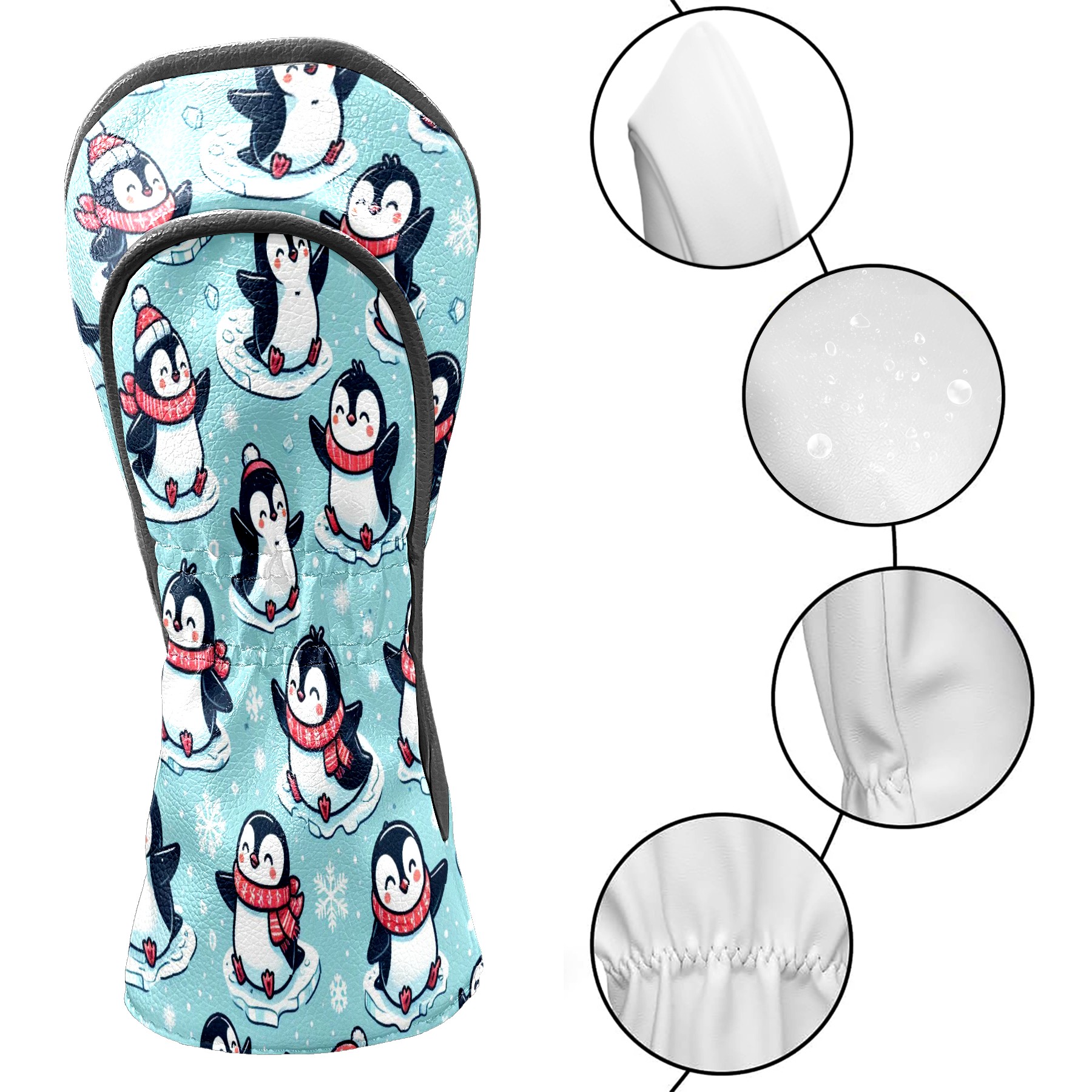 Golf Club Covers, LightBlue Penguin Premium PU Leather Driver Hybrid Putter Head Covers with Velvet Lining, Waterproof Golf Gifts for Men Women