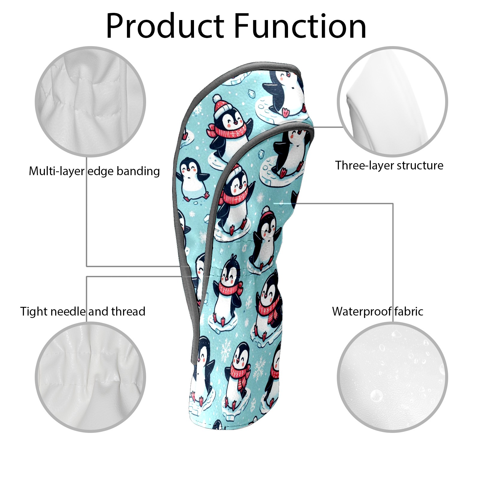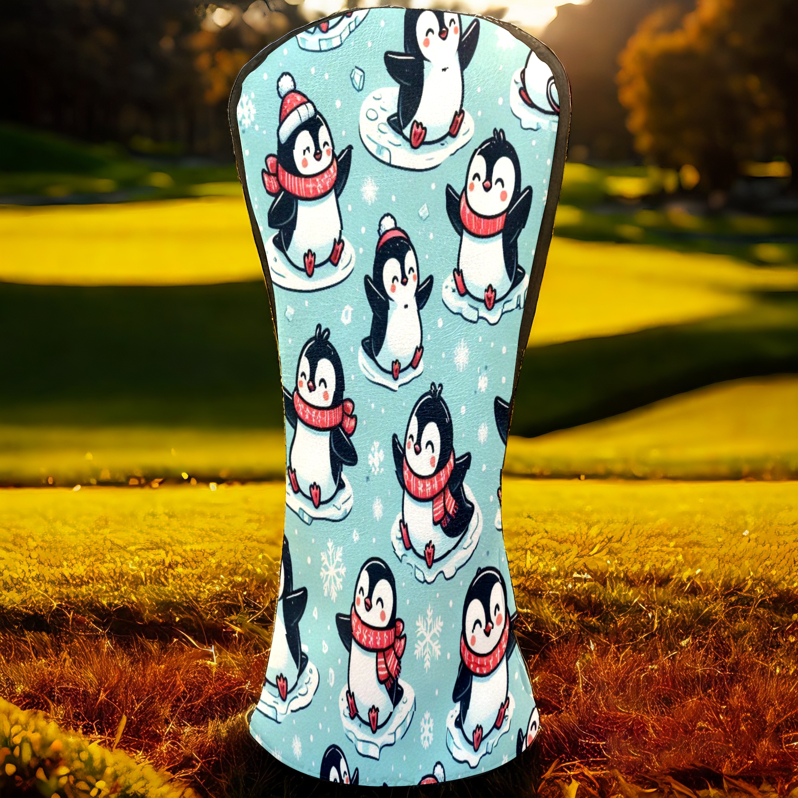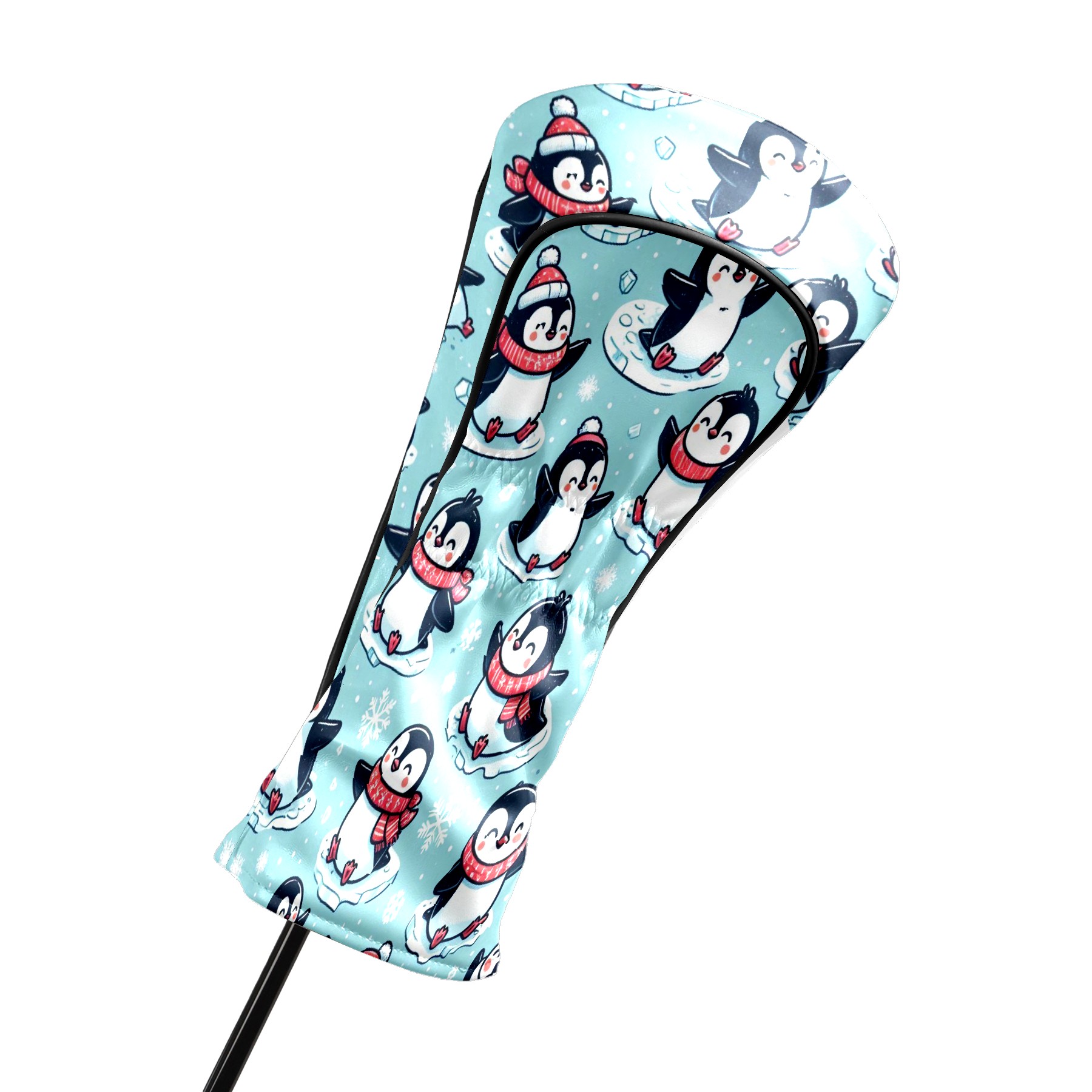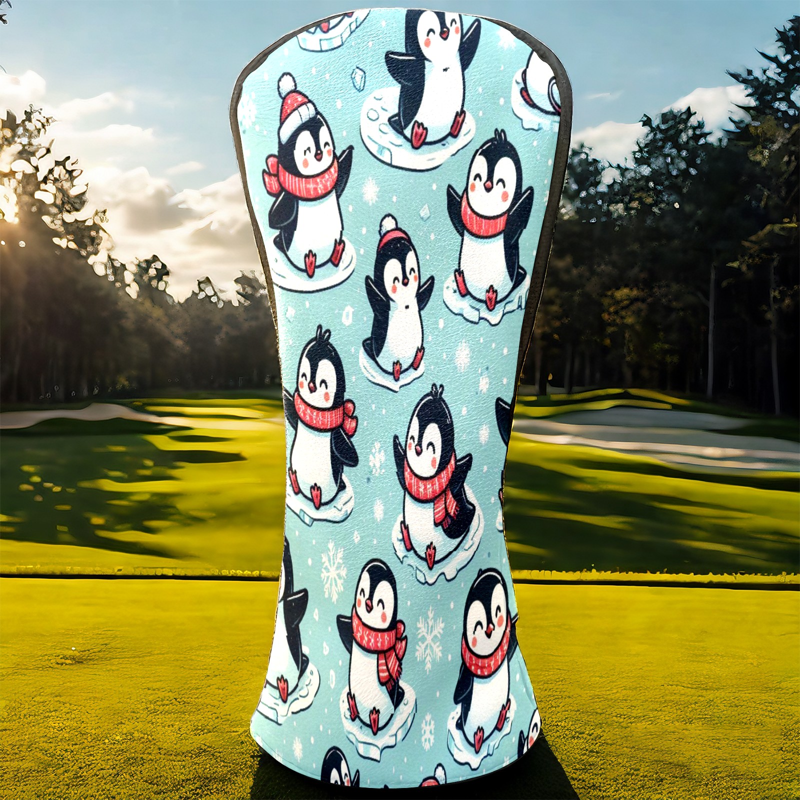 Golf Club Covers, LightBlue Penguin Premium PU Leather Driver Hybrid Putter Head Covers with Velvet Lining, Waterproof Golf Gifts for Men Women