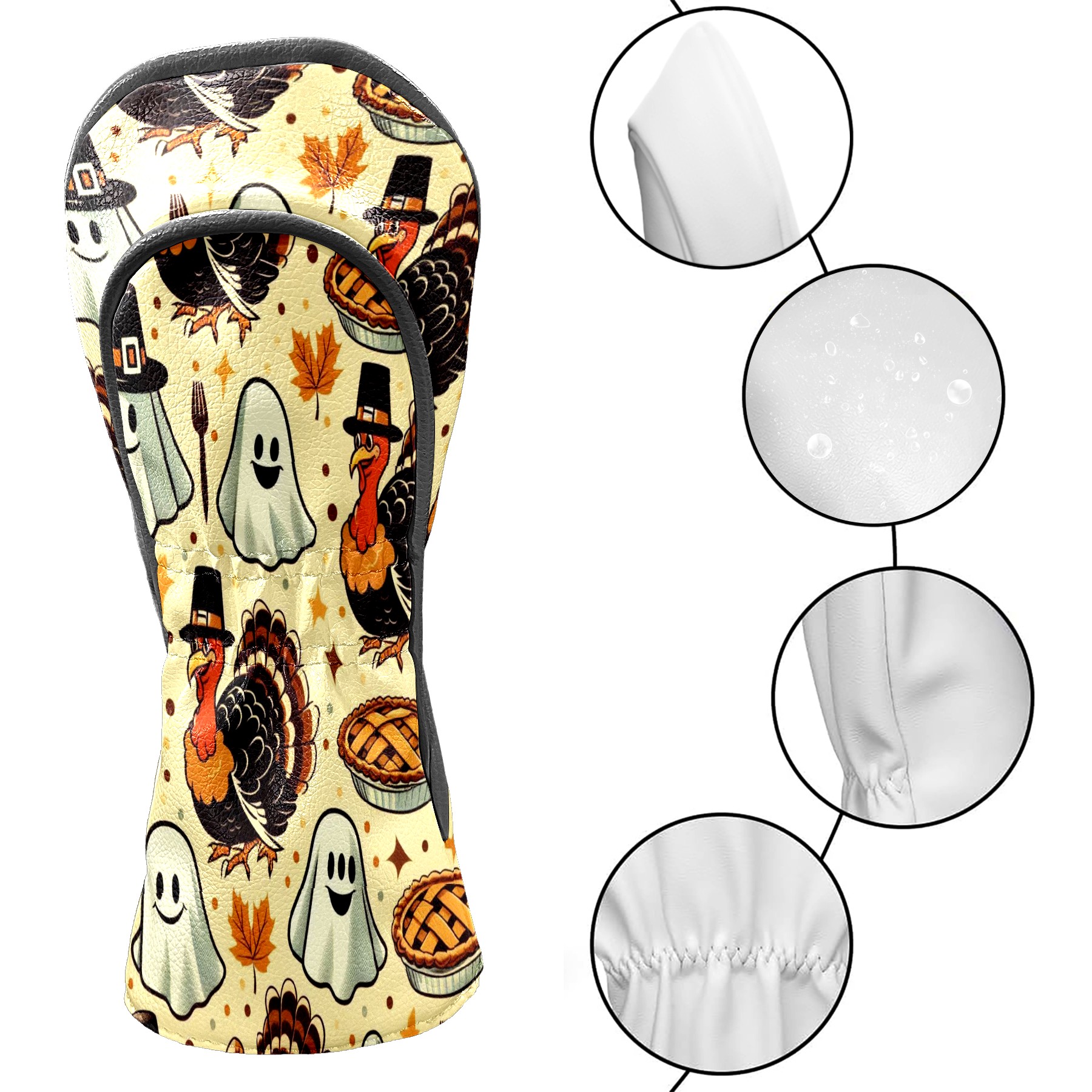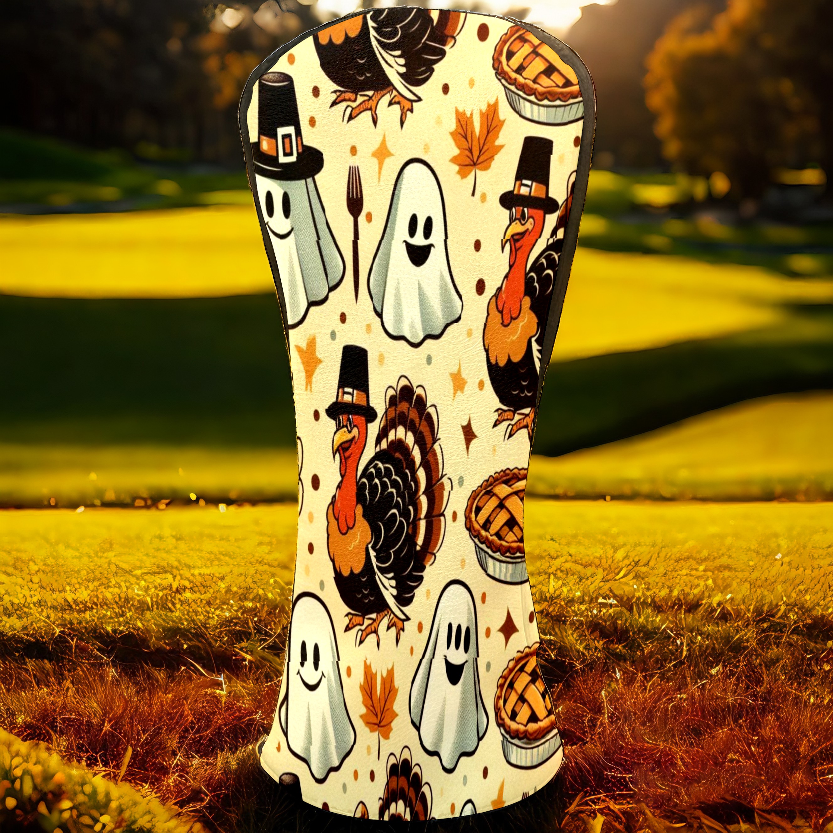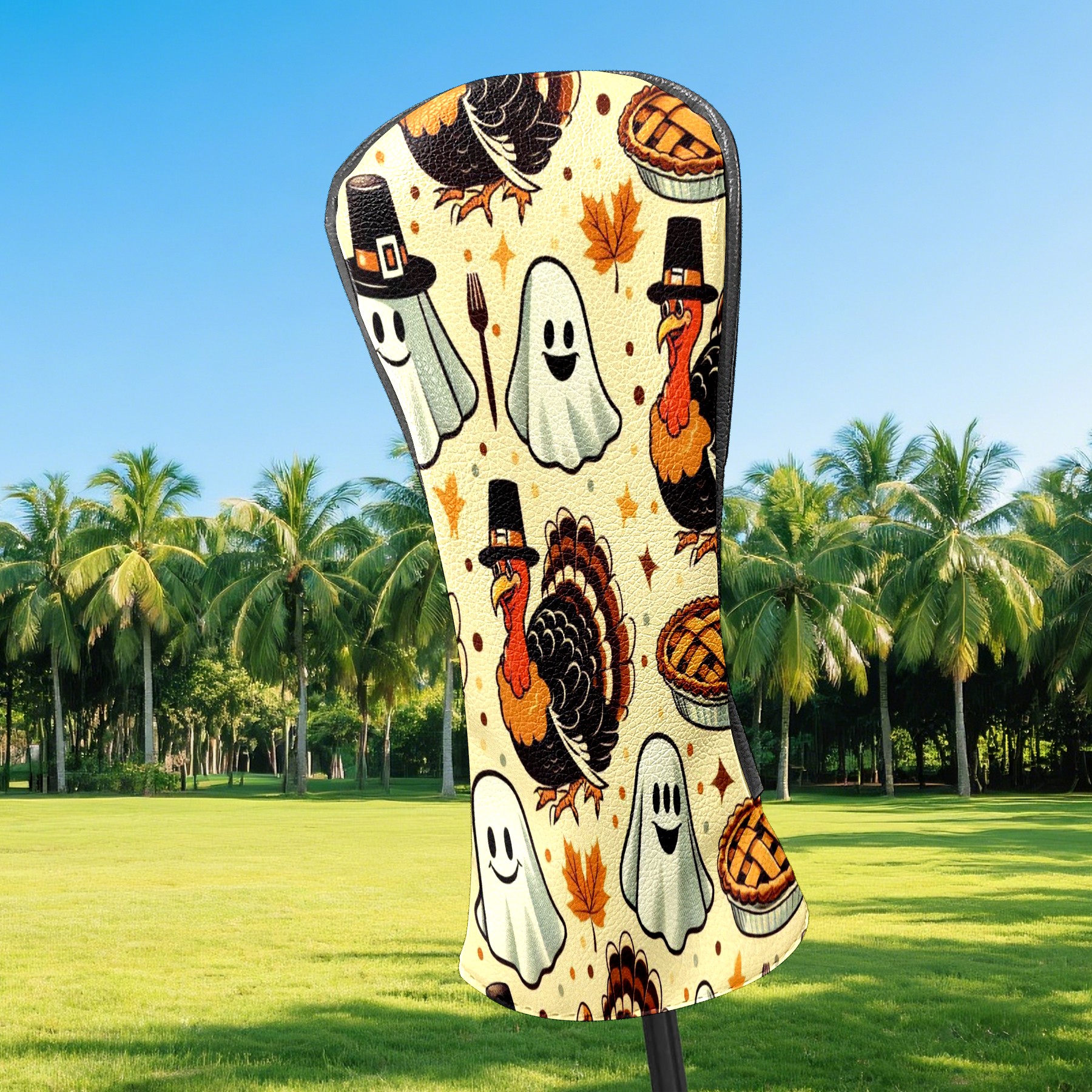 Golf Club Covers, Brown Turkey Ghost Premium PU Leather Driver Hybrid Putter Head Covers with Velvet Lining, Waterproof Golf Gifts for Men Women