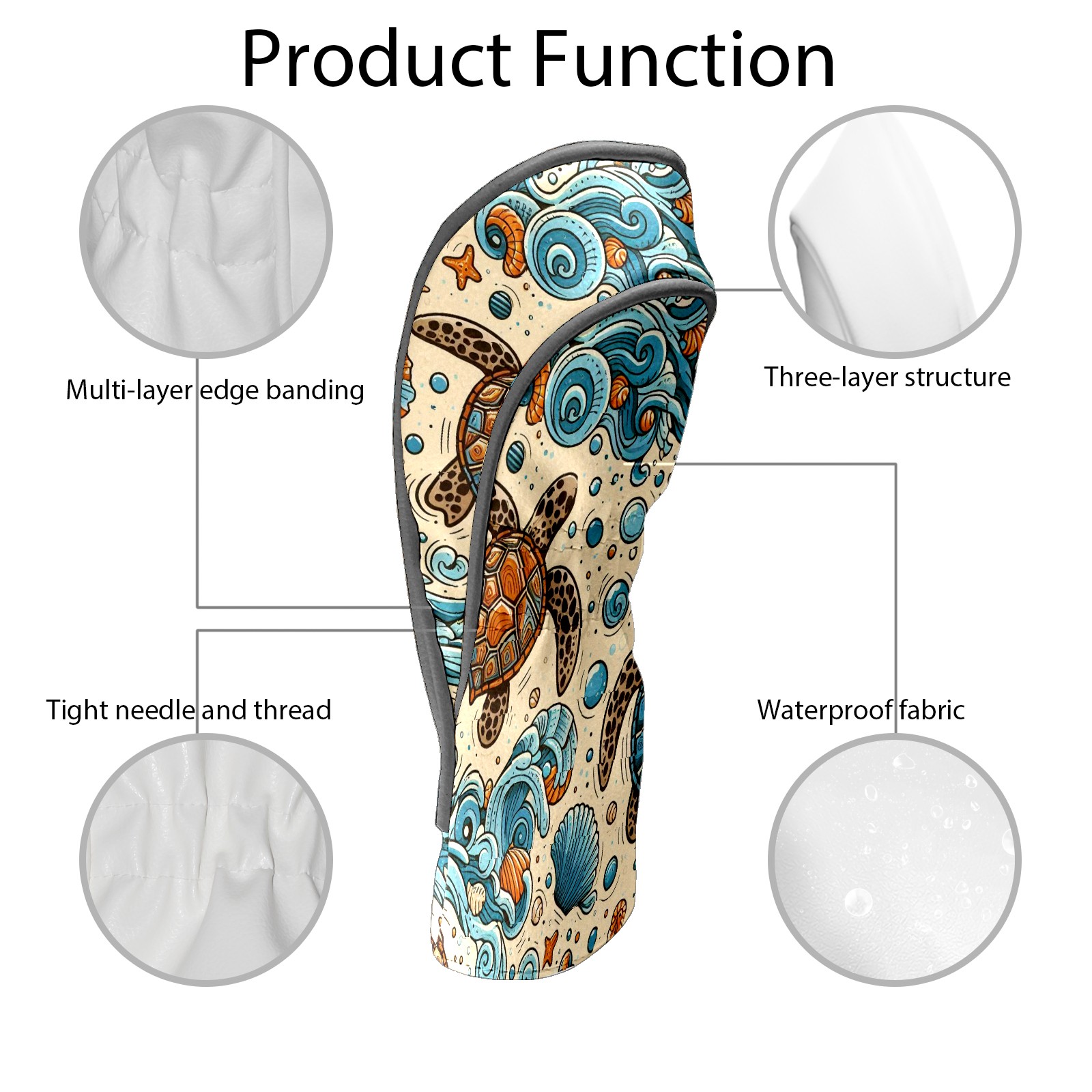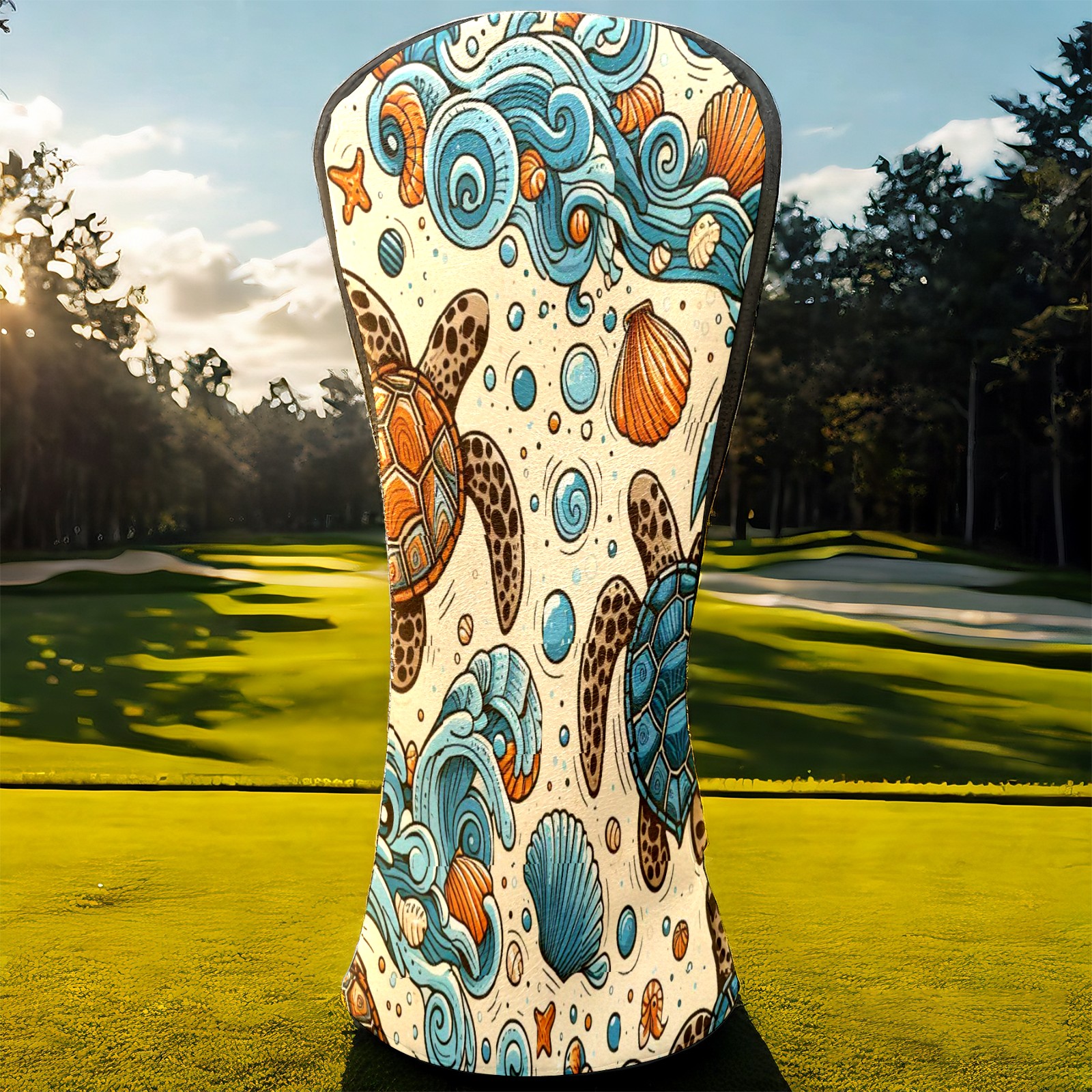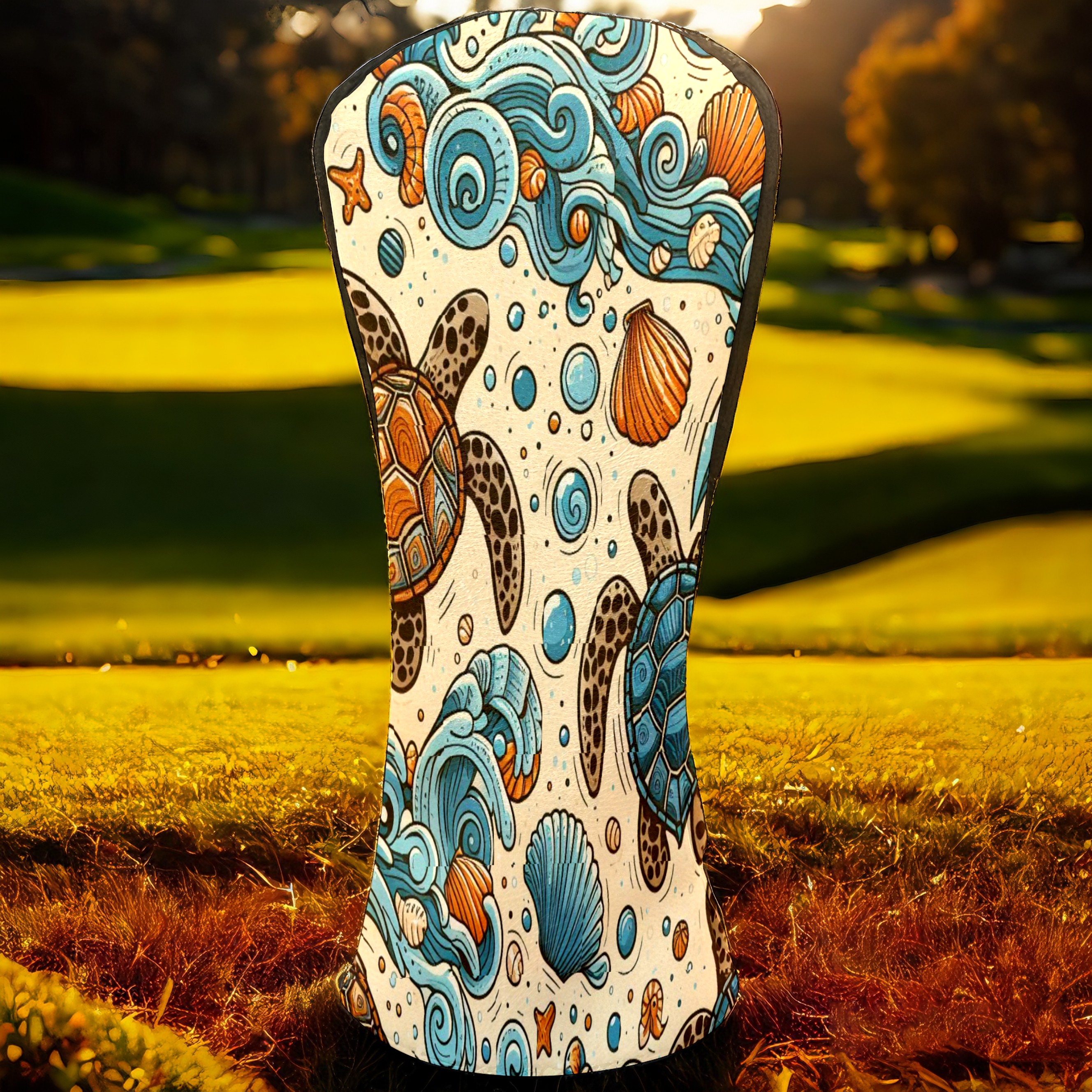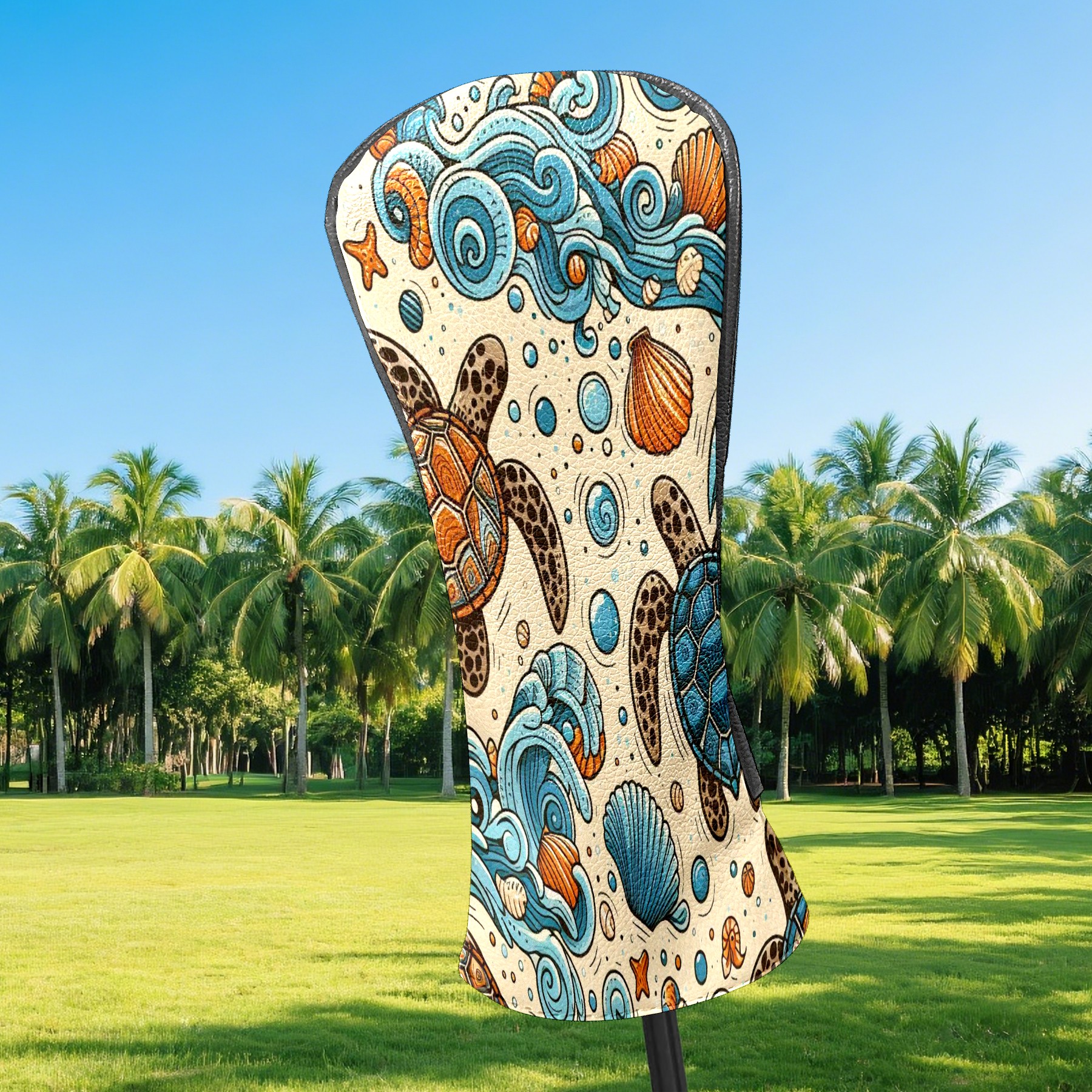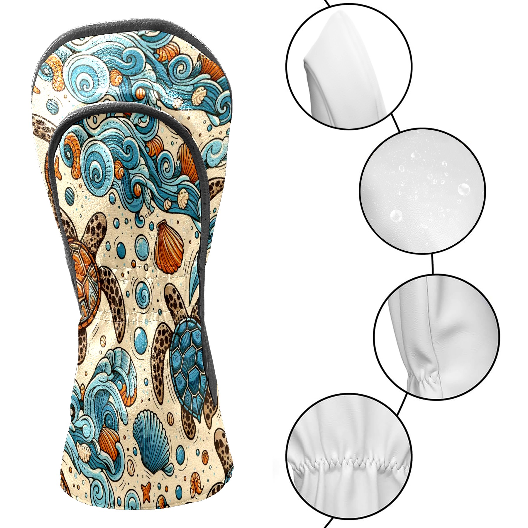 Golf Club Covers, Blue Turtle Sea Premium PU Leather Driver Hybrid Putter Head Covers with Velvet Lining, Waterproof Golf Gifts for Men Women