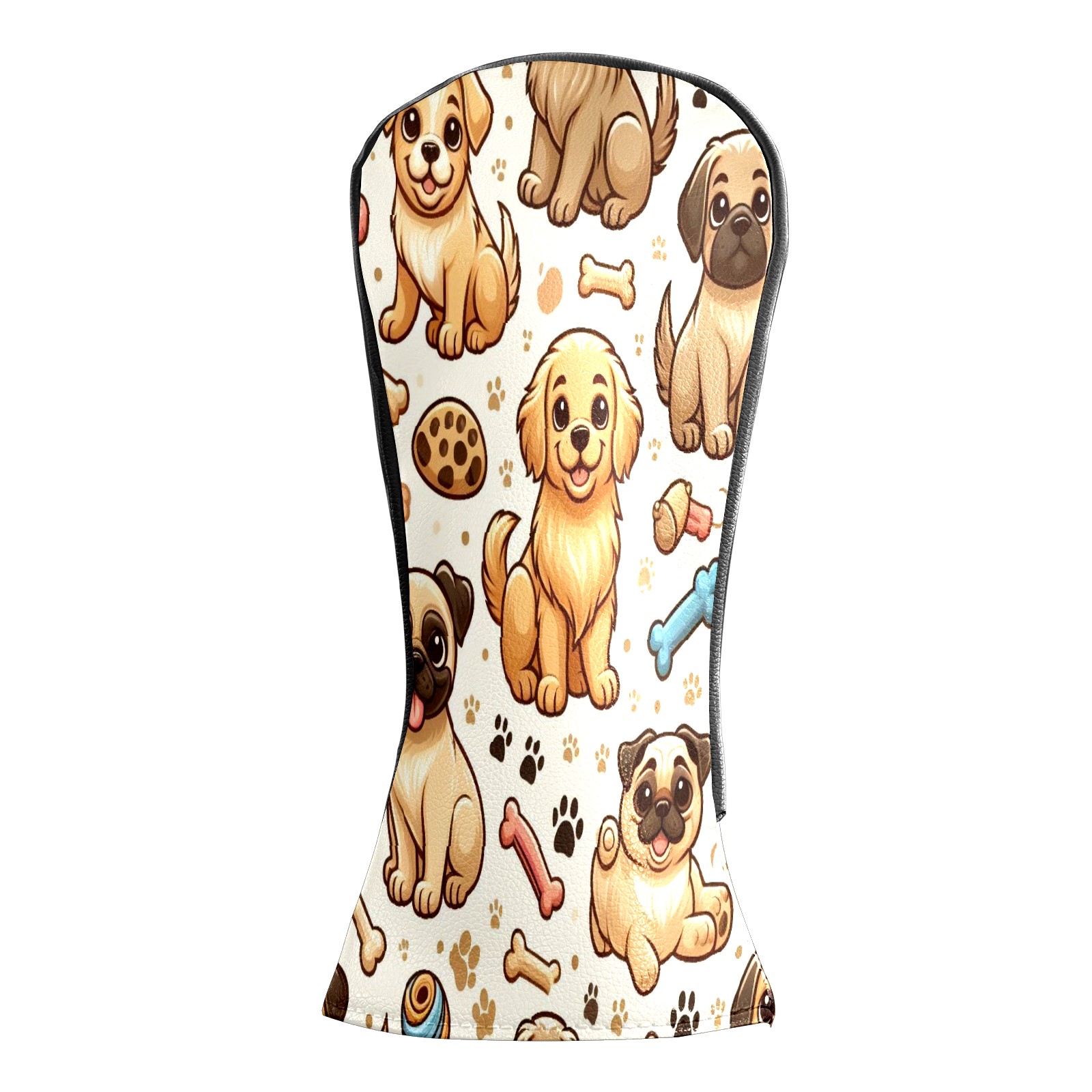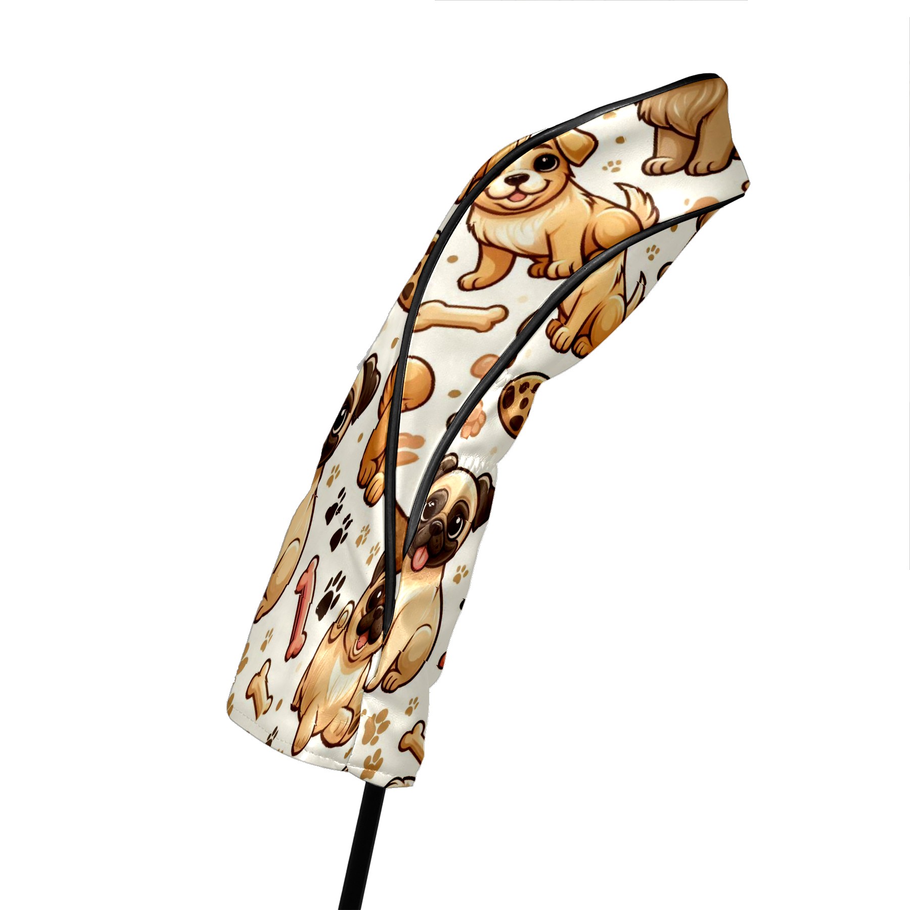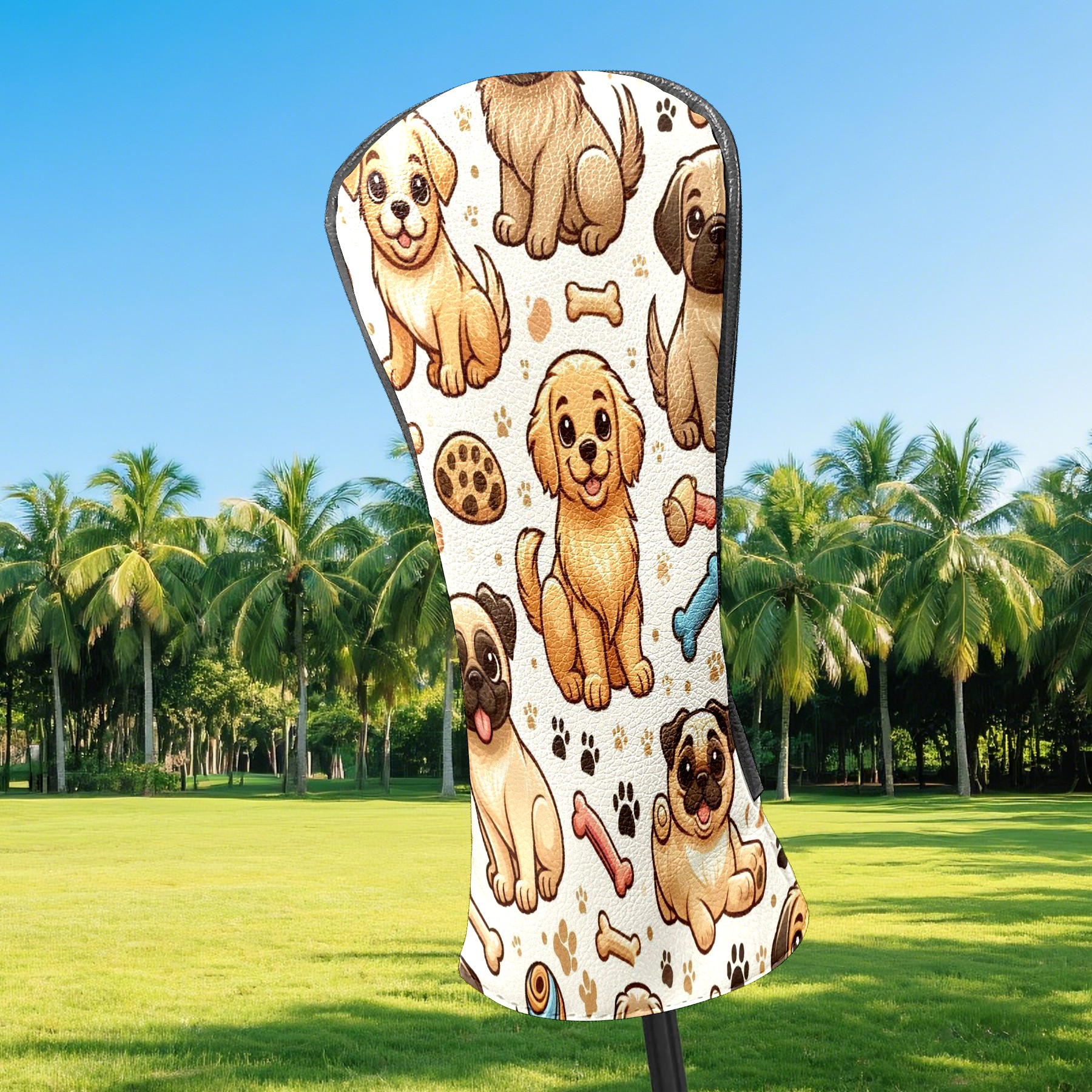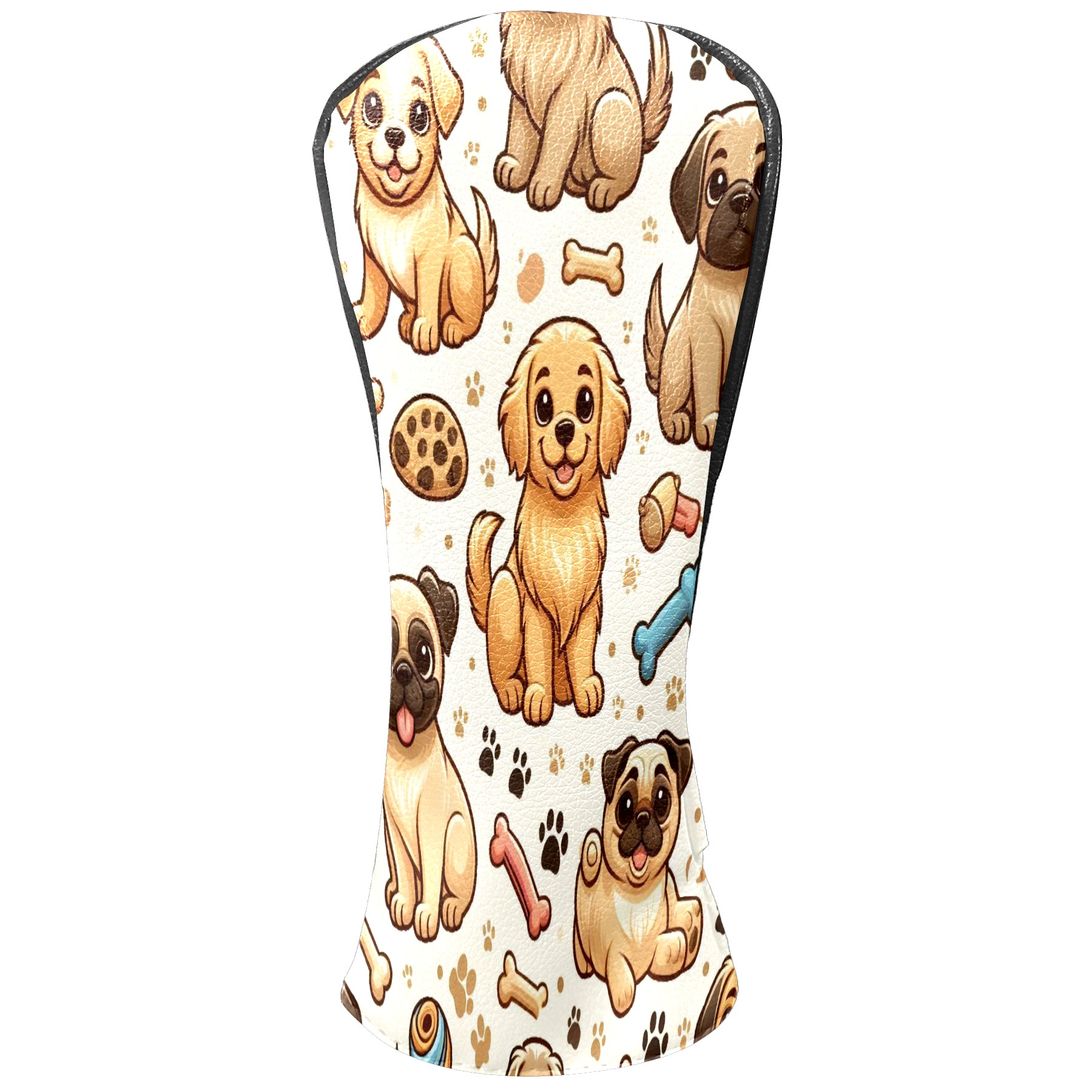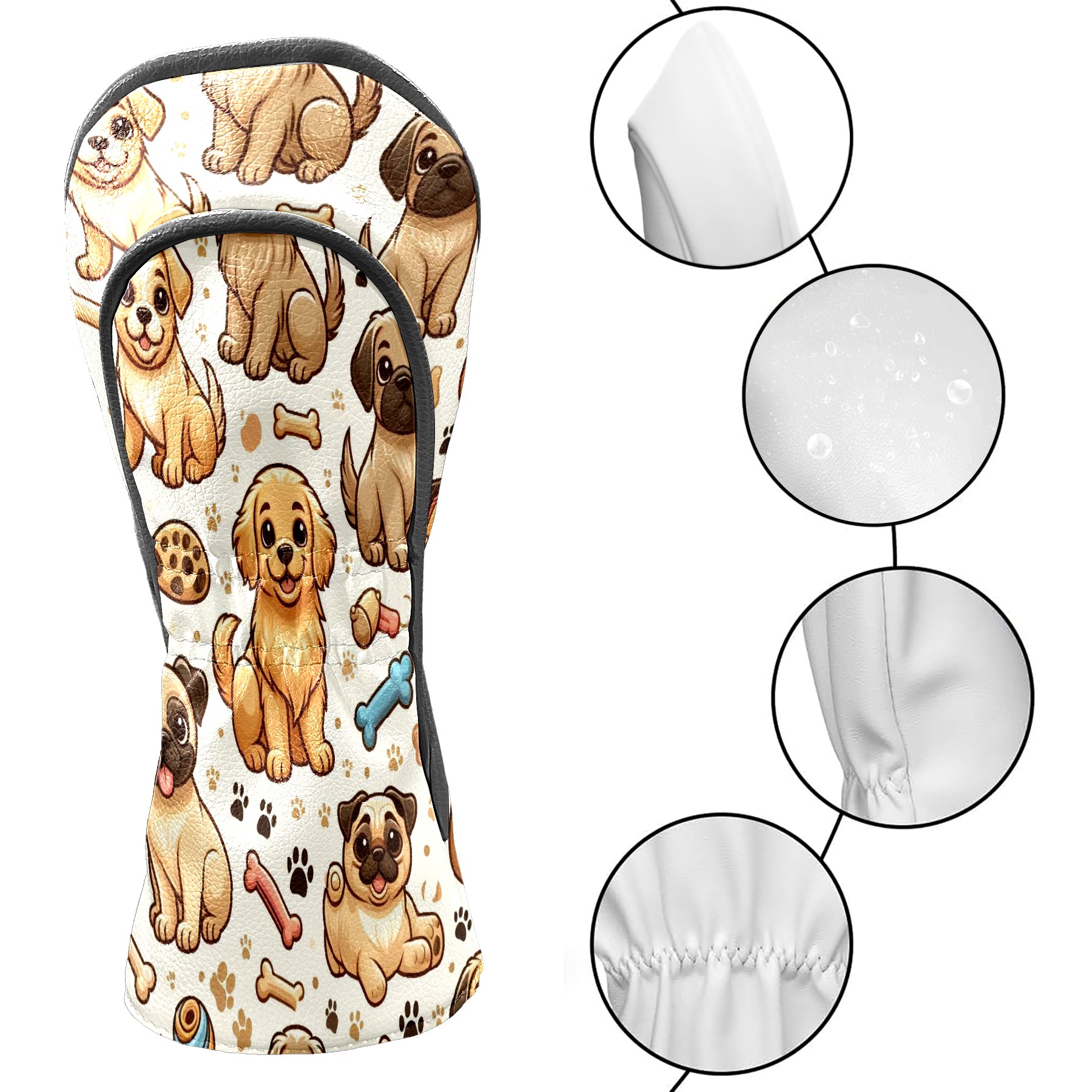Golf Club Covers, Brown Cute Dog Premium PU Leather Driver Hybrid Putter Head Covers with Velvet Lining, Waterproof Golf Gifts for Men Women