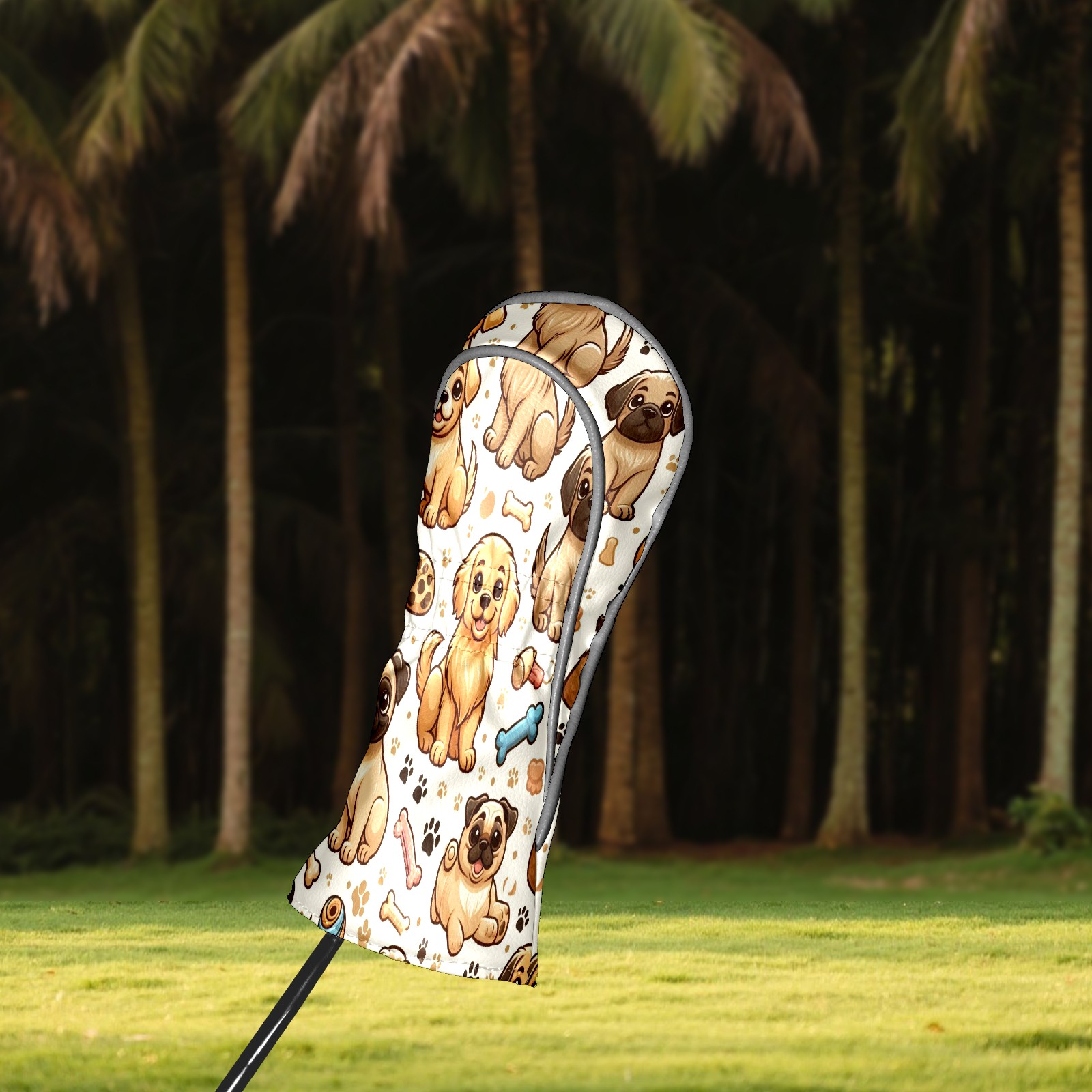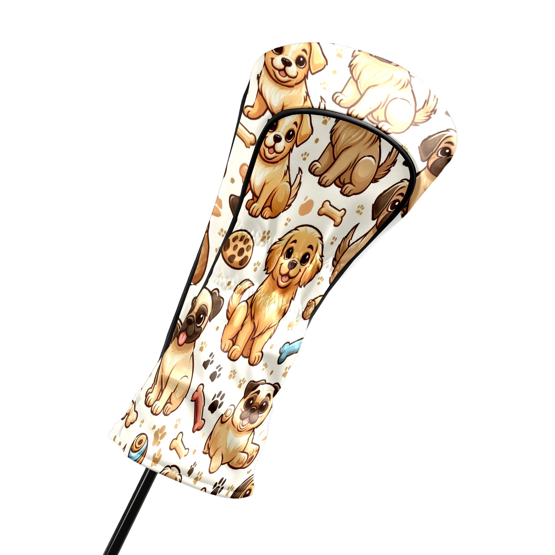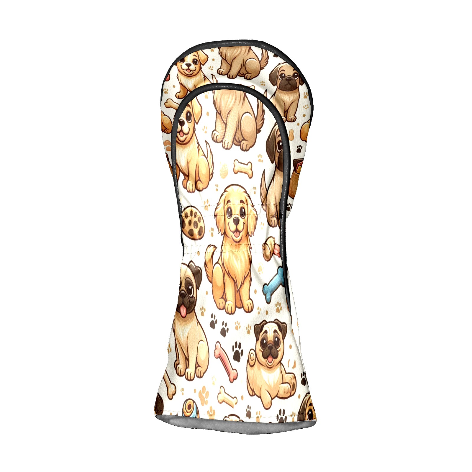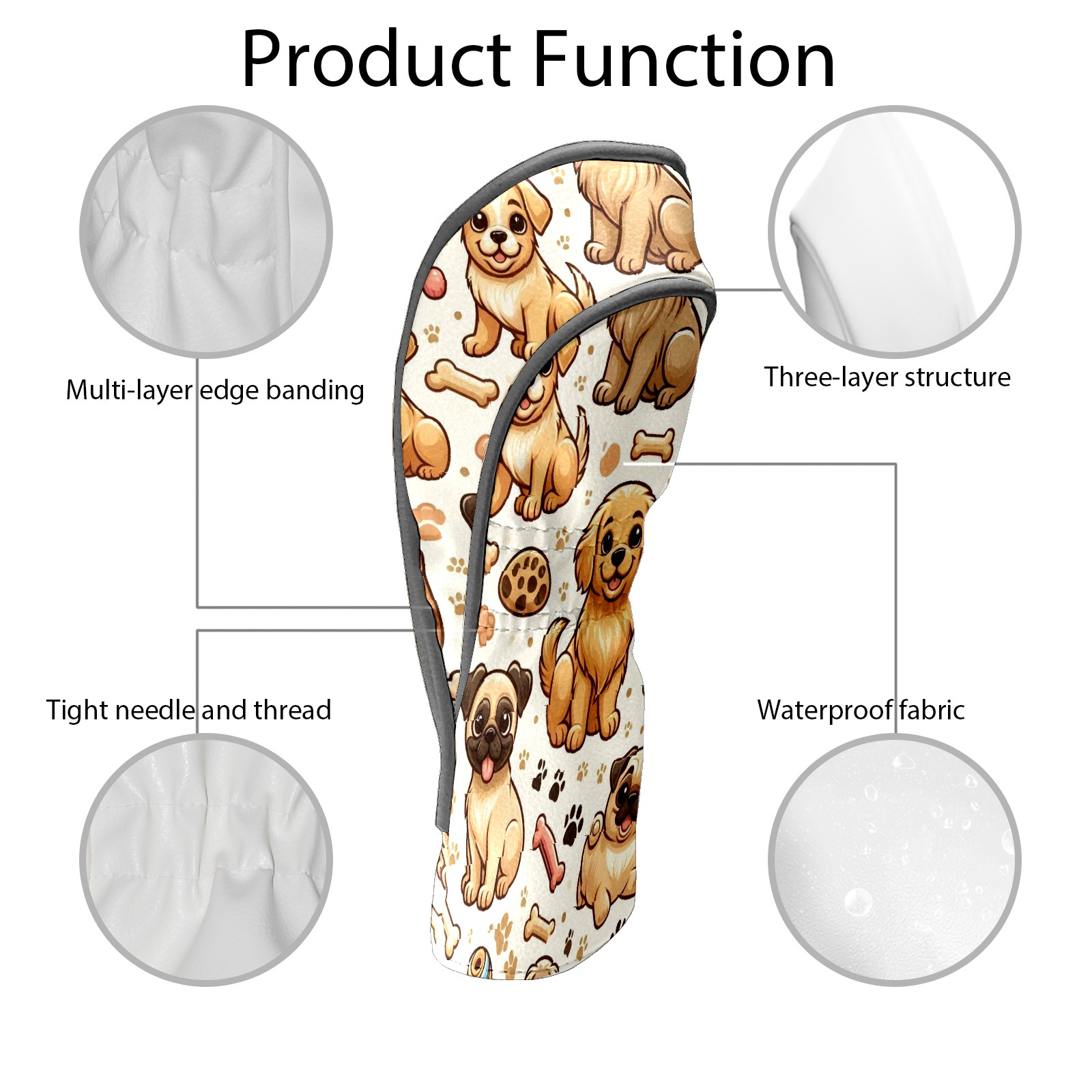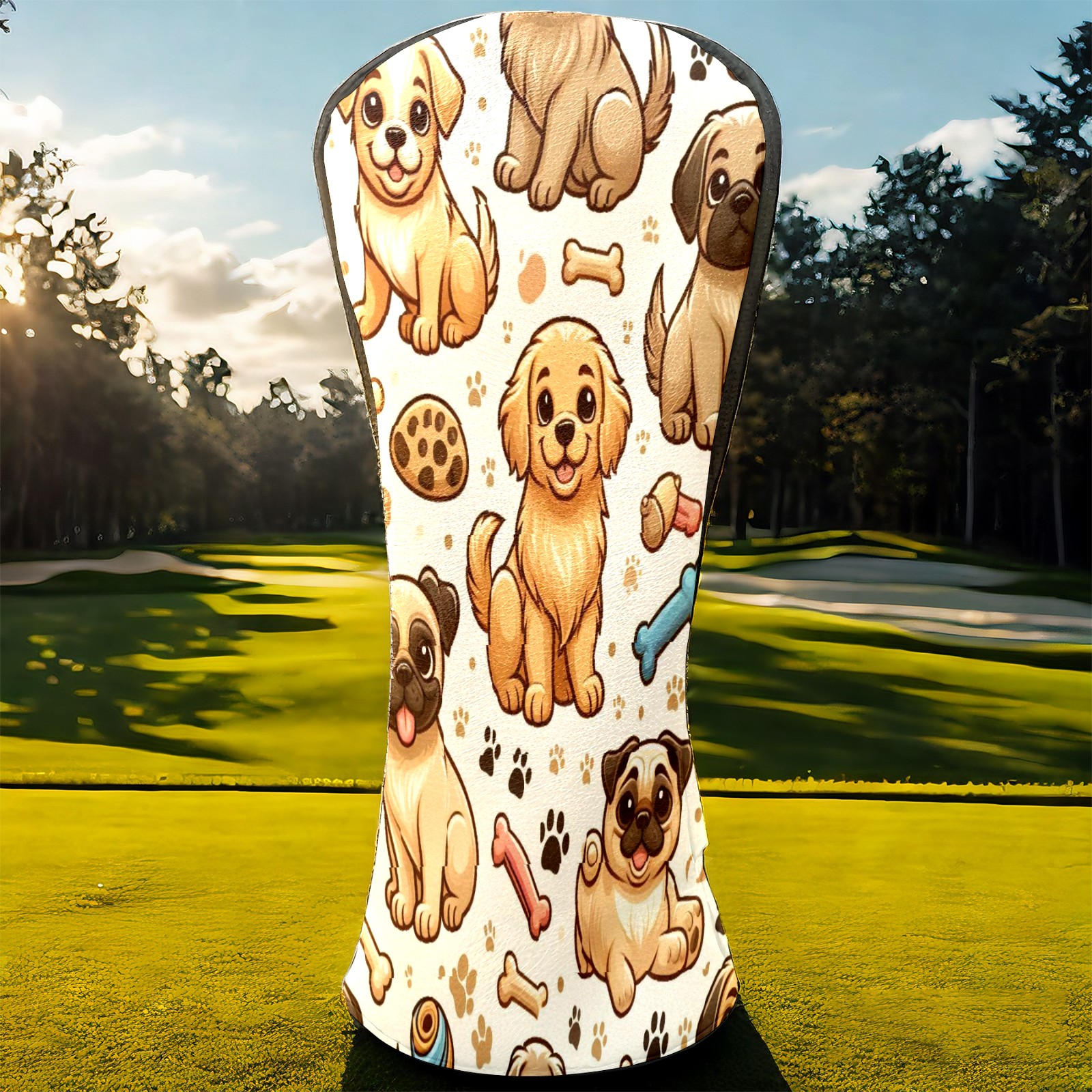 Golf Club Covers, Brown Cute Dog Premium PU Leather Driver Hybrid Putter Head Covers with Velvet Lining, Waterproof Golf Gifts for Men Women