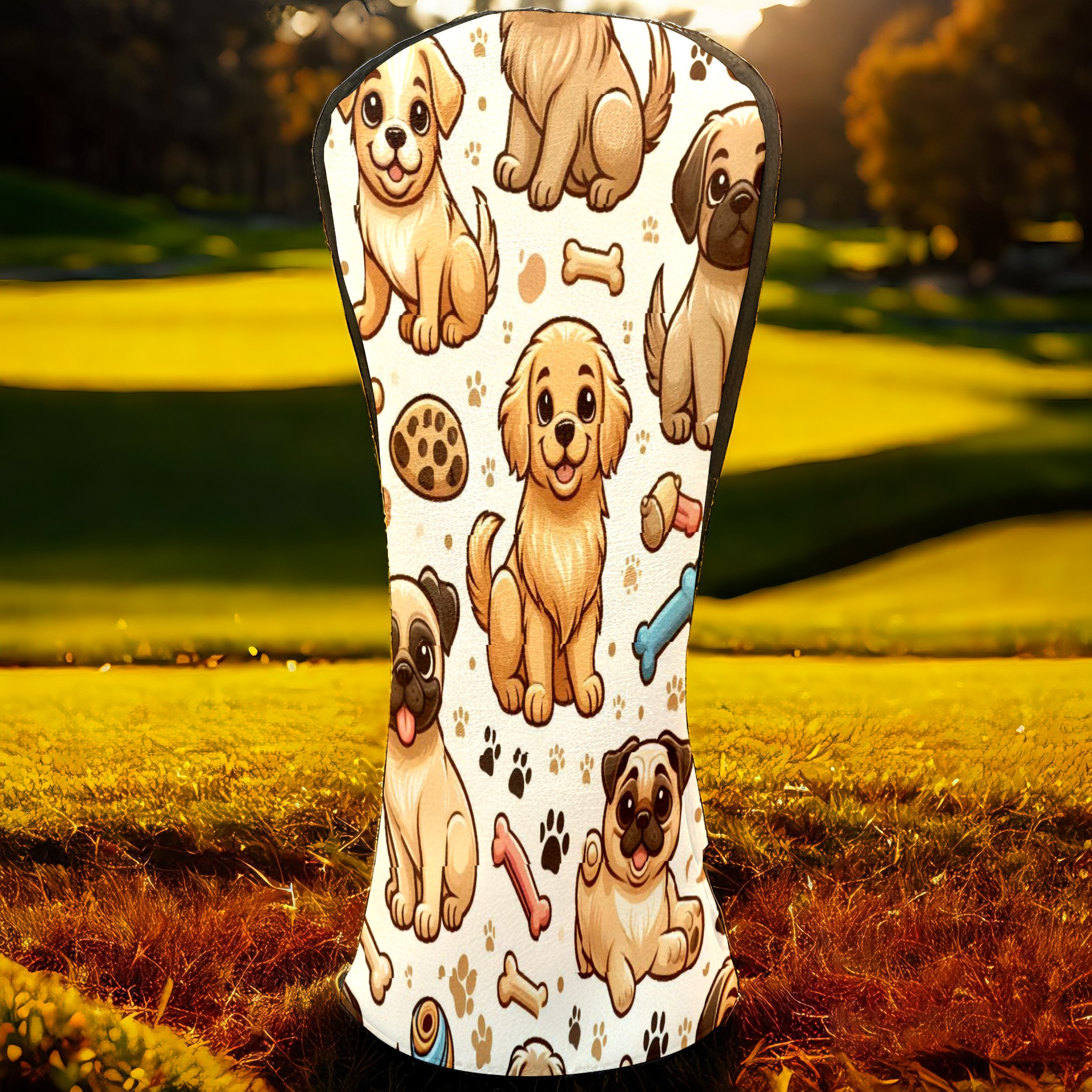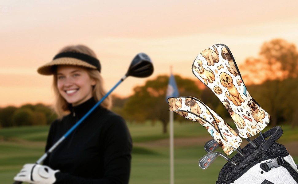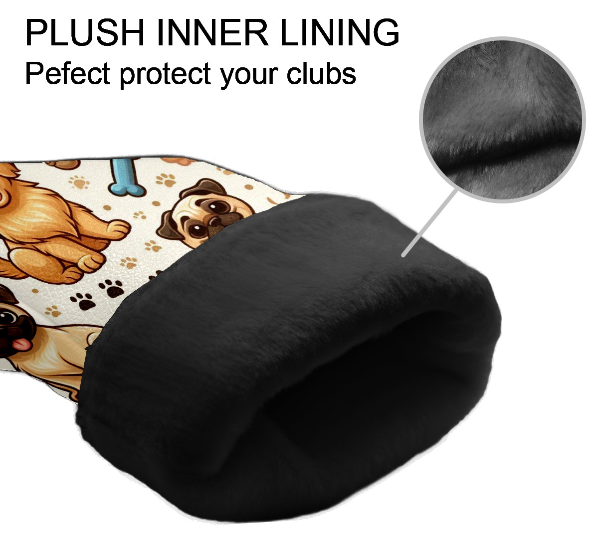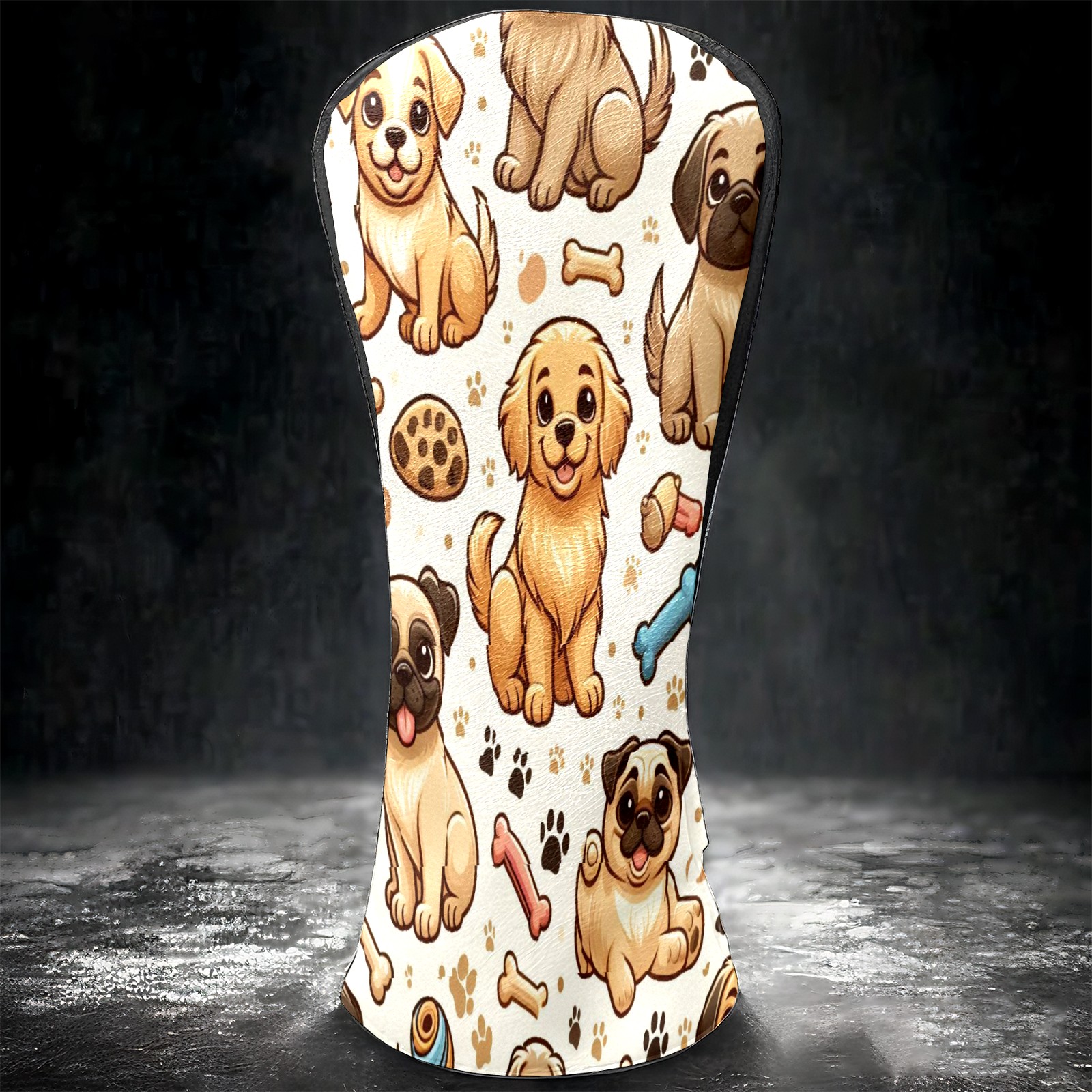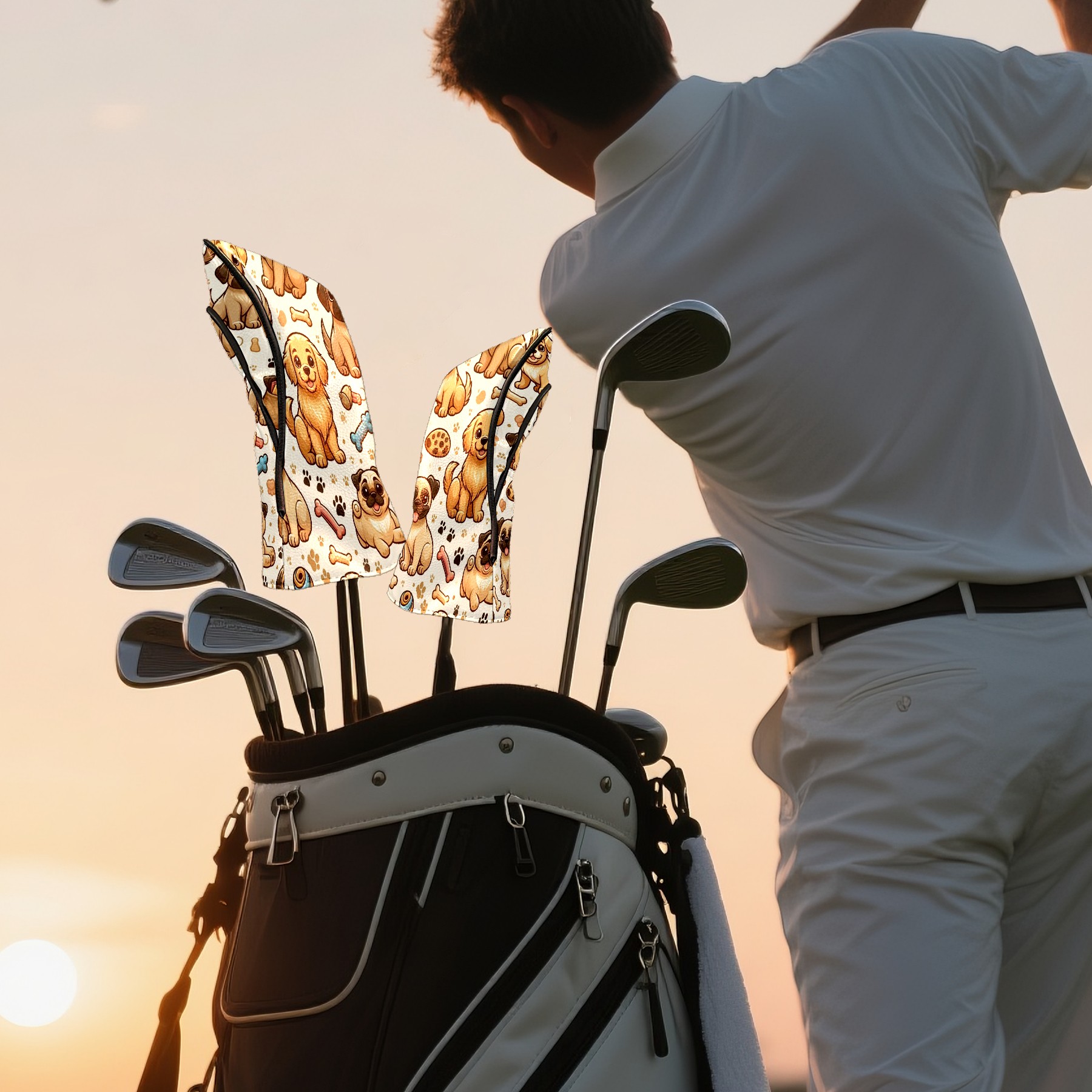 Golf Club Covers, Brown Cute Dog Premium PU Leather Driver Hybrid Putter Head Covers with Velvet Lining, Waterproof Golf Gifts for Men Women