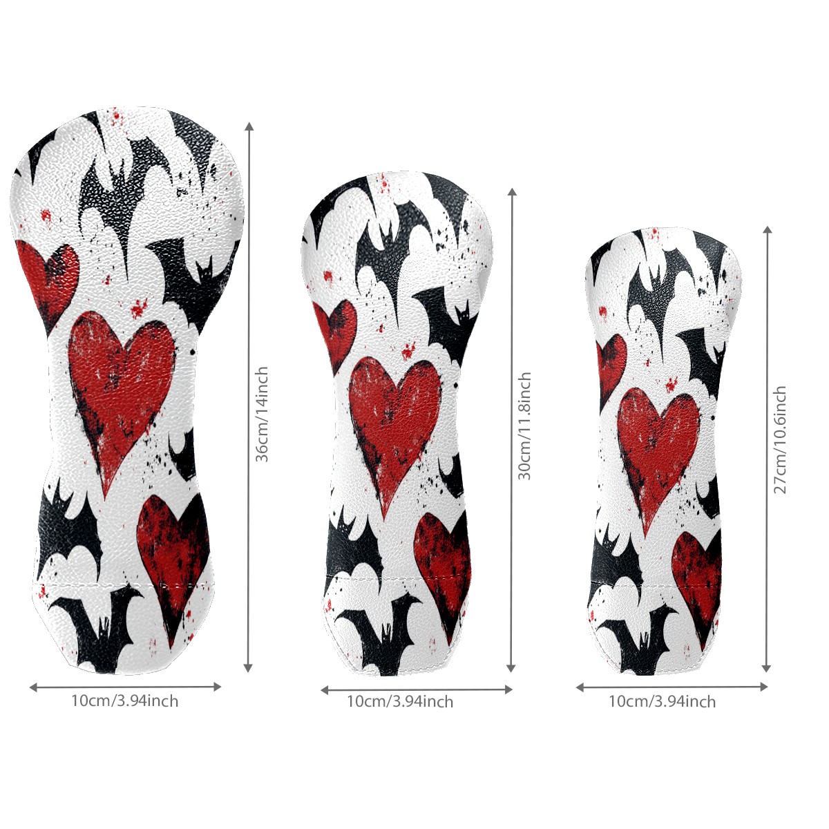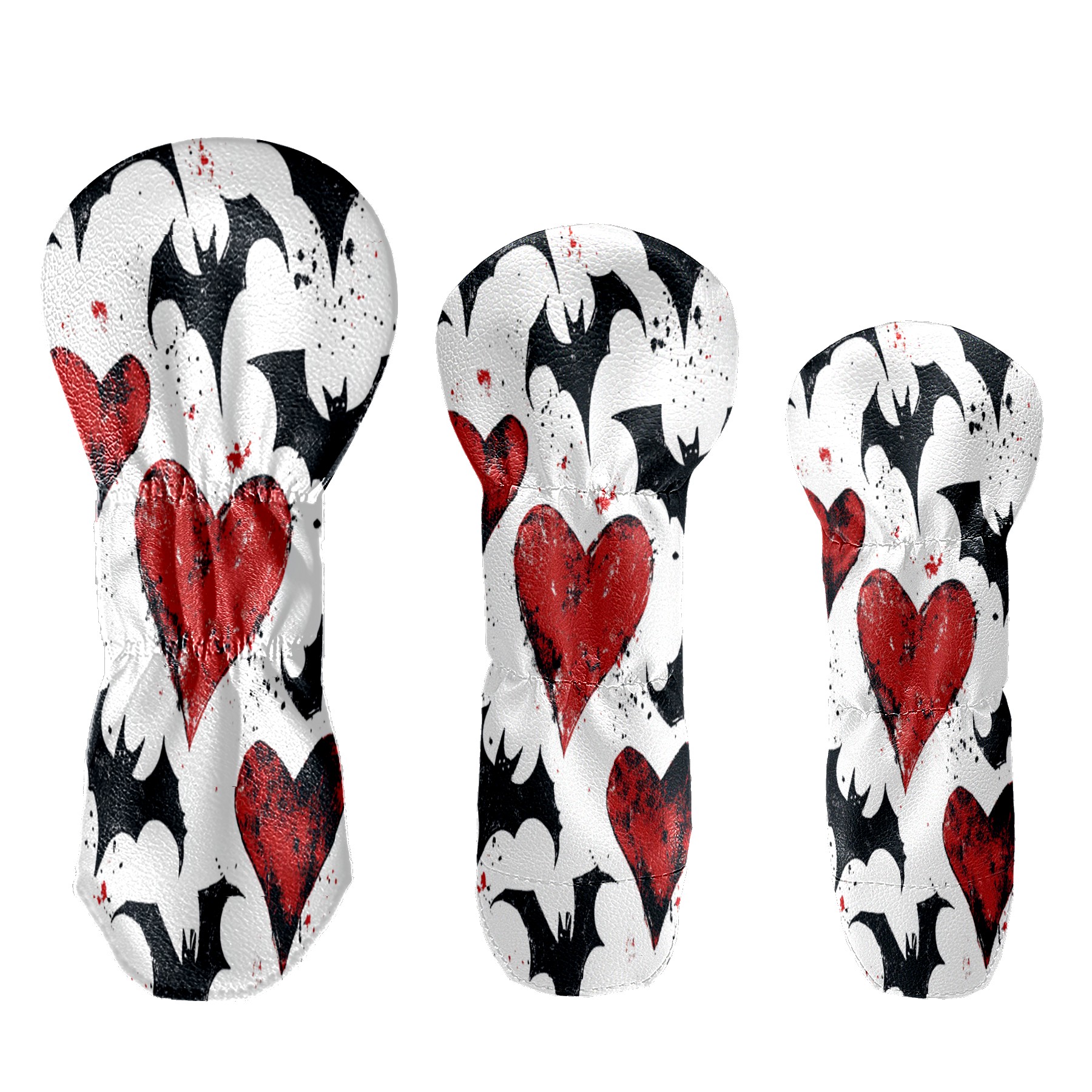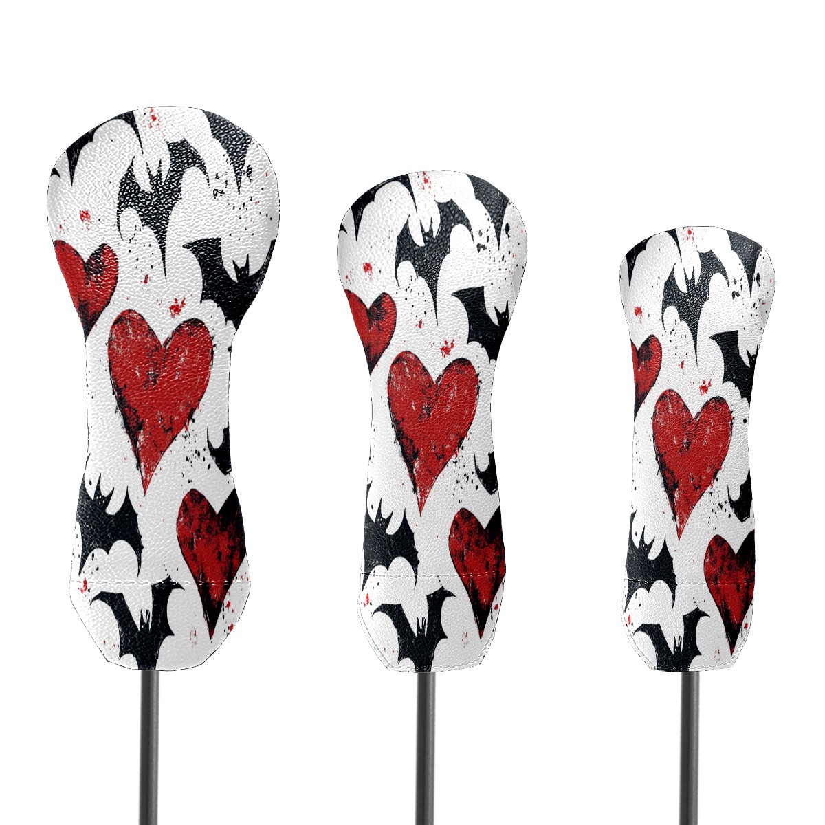 Golf Club Cover, Velvet Lining, High-Quality Leather, Suitable for the First Wood, Fairway Wood and Hybrid Club Head Cover, Suitable for Men and Women Golf Enthusiasts Heart-shaped Bat Wings