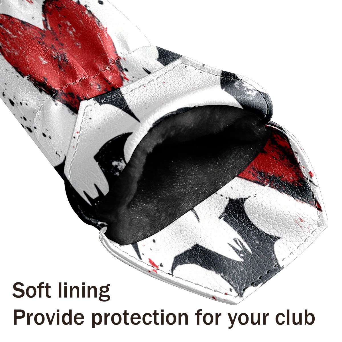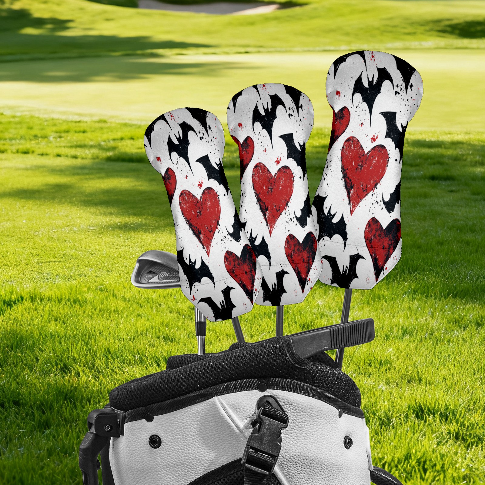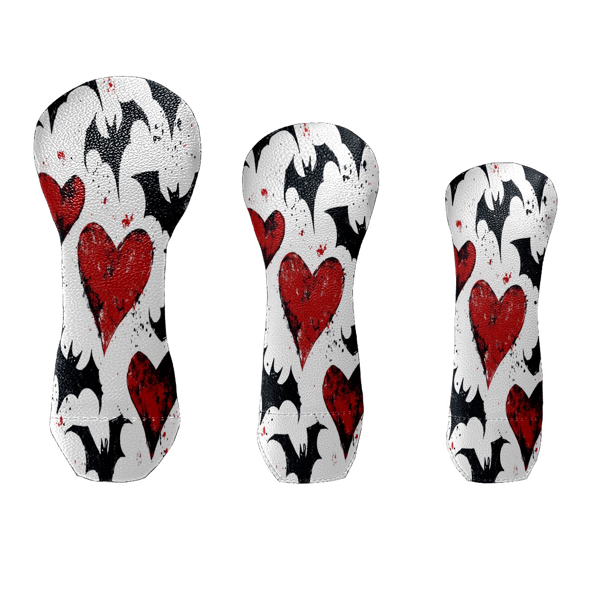 Golf Club Cover, Velvet Lining, High-Quality Leather, Suitable for the First Wood, Fairway Wood and Hybrid Club Head Cover, Suitable for Men and Women Golf Enthusiasts Heart-shaped Bat Wings