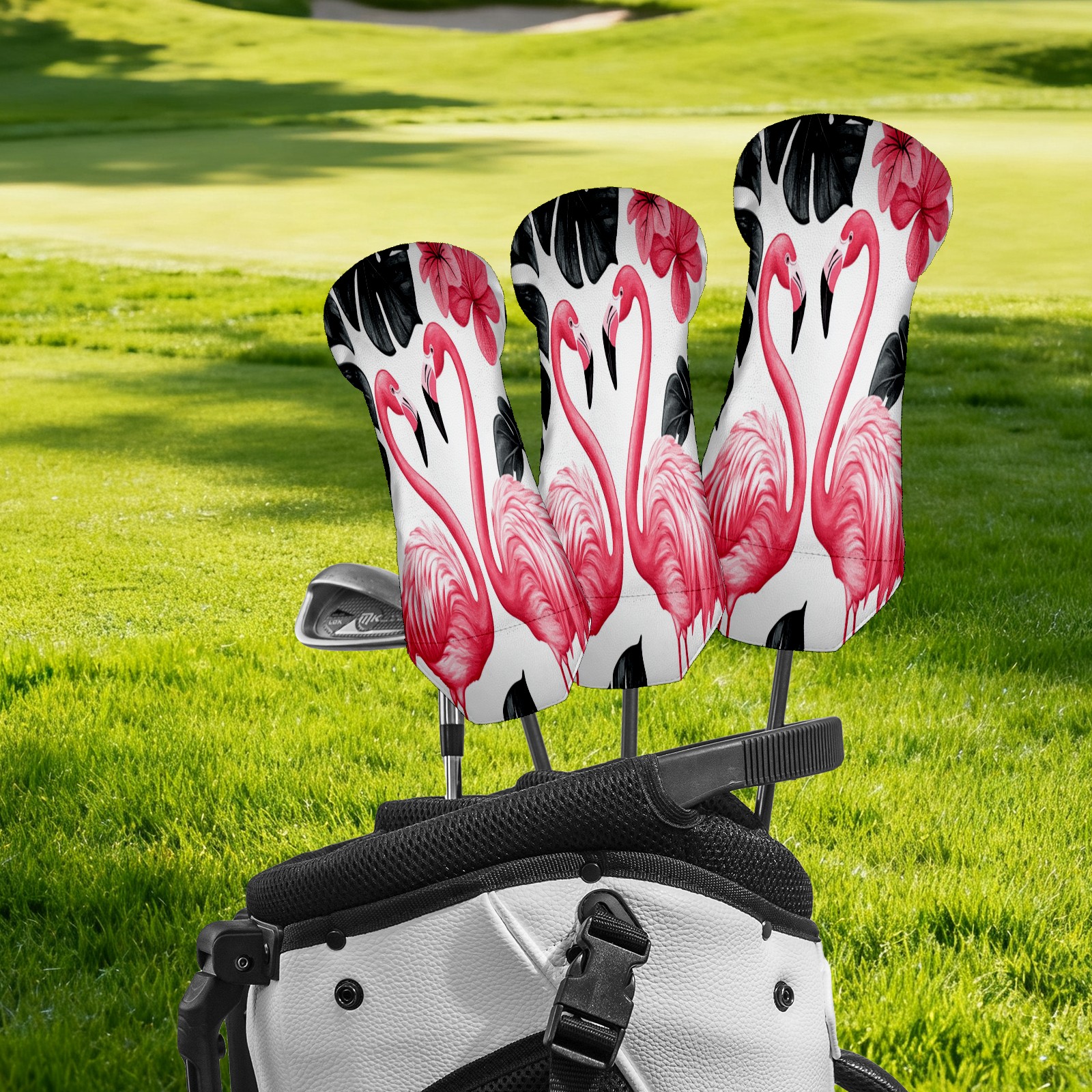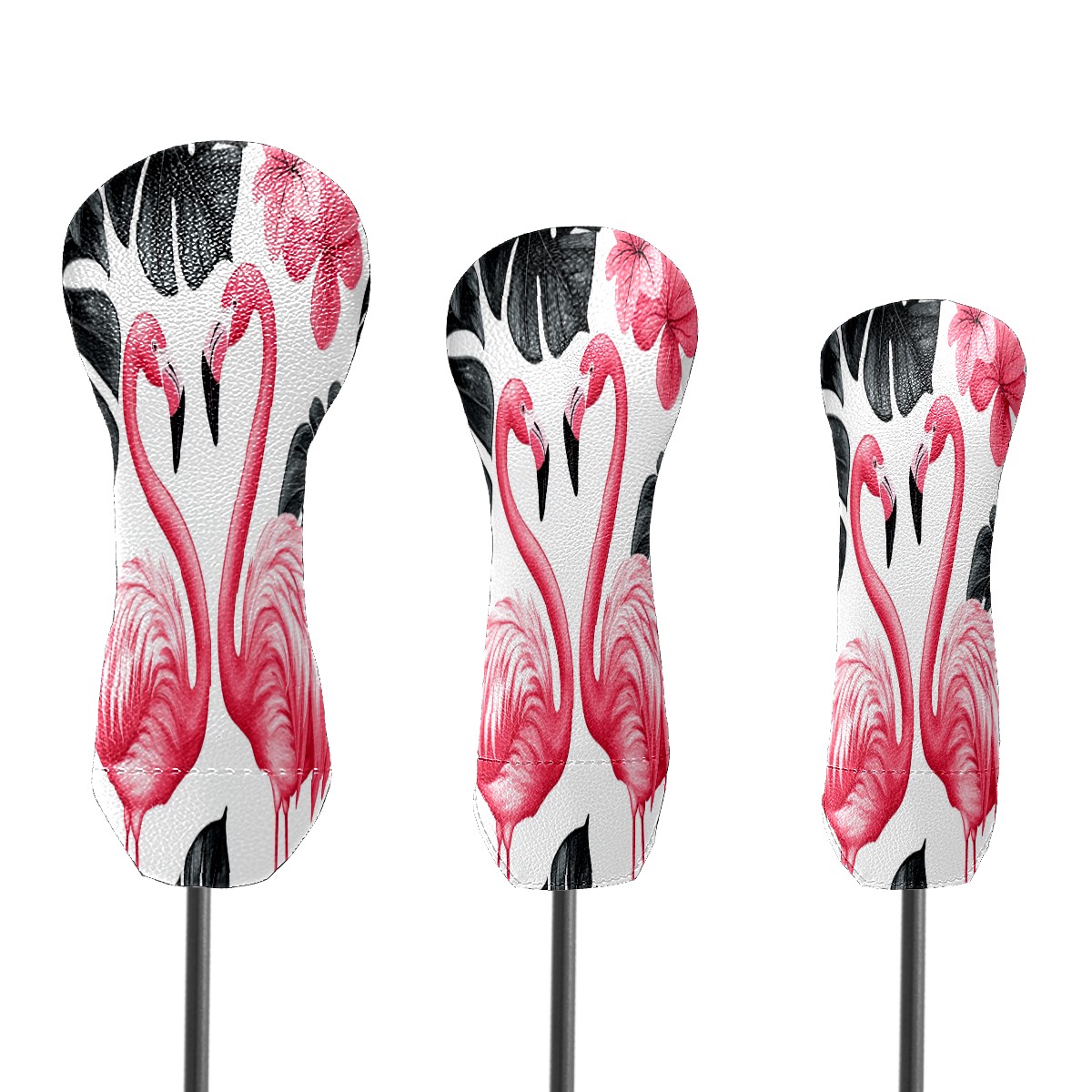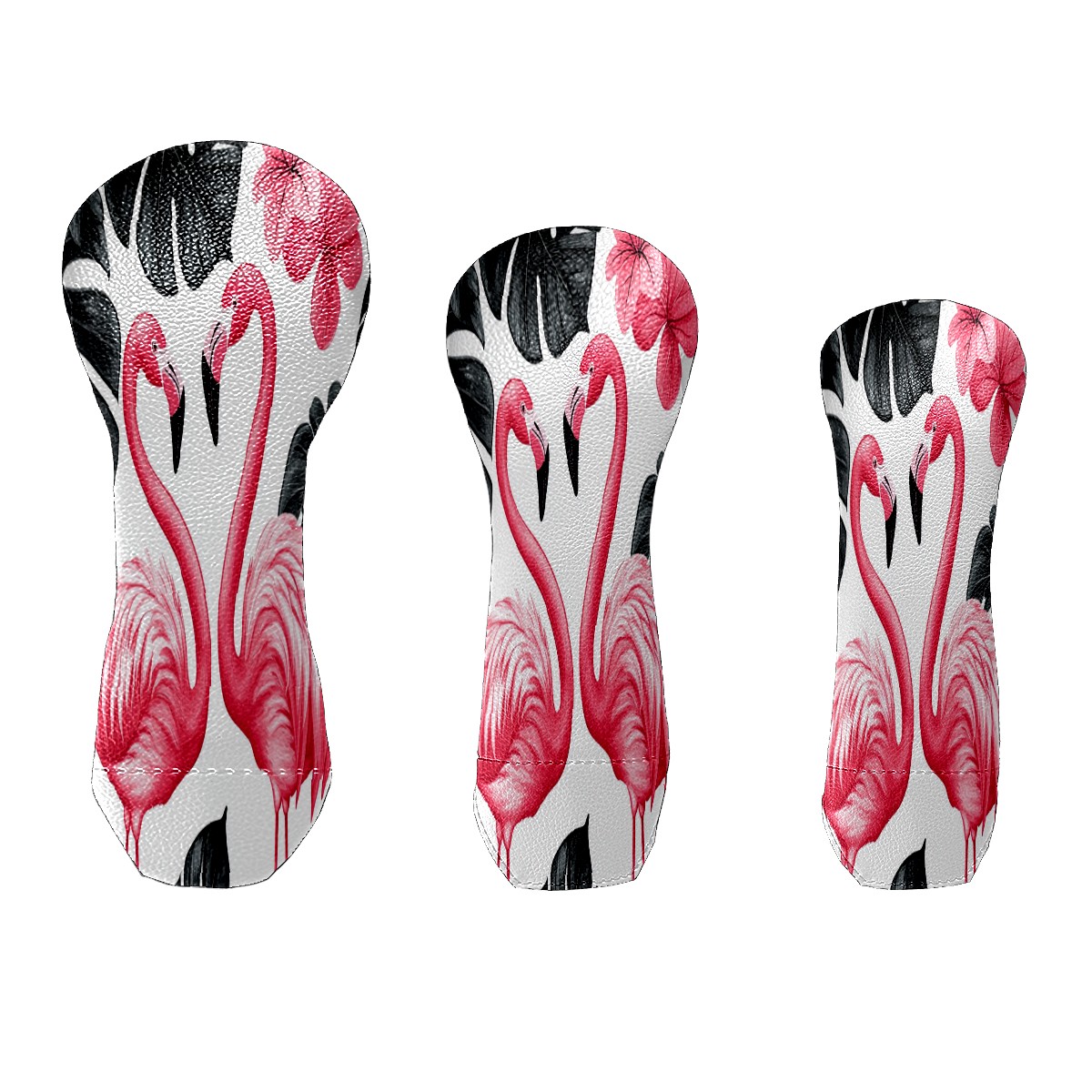 Golf Club Cover, Velvet Lining, High-Quality Leather, Suitable for the First Wood, Fairway Wood and Hybrid Club Head Cover, Suitable for Men and Women Golf Enthusiasts Pink Flamingo