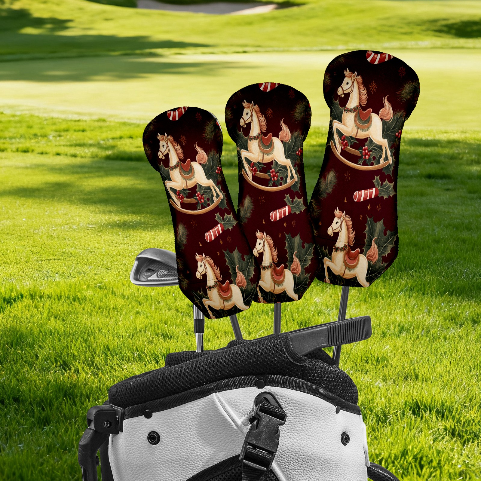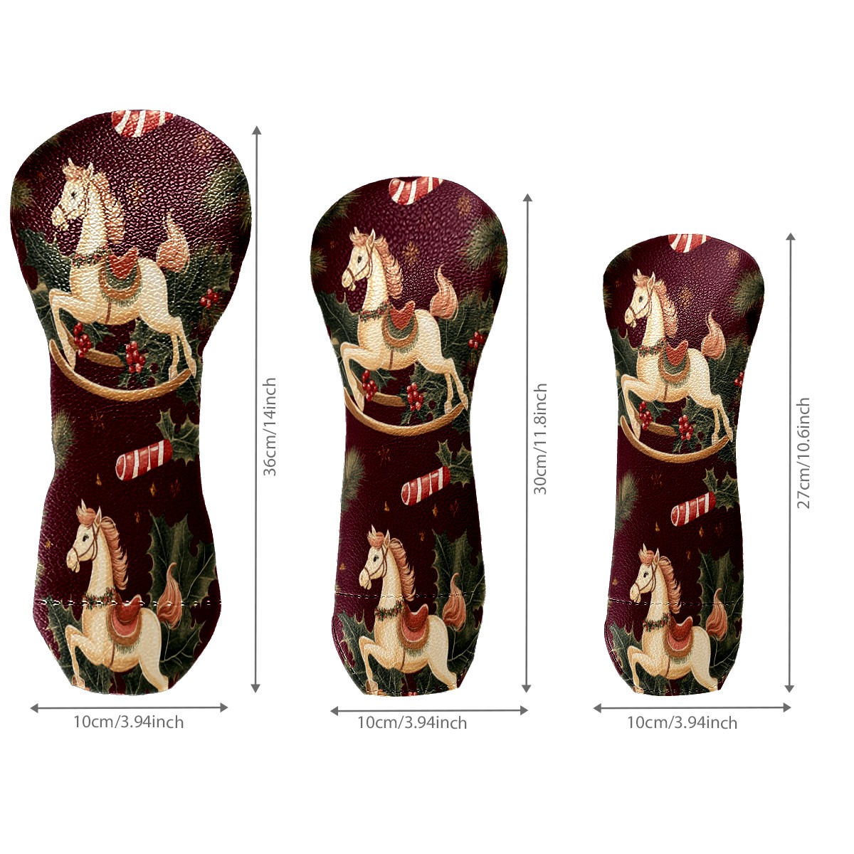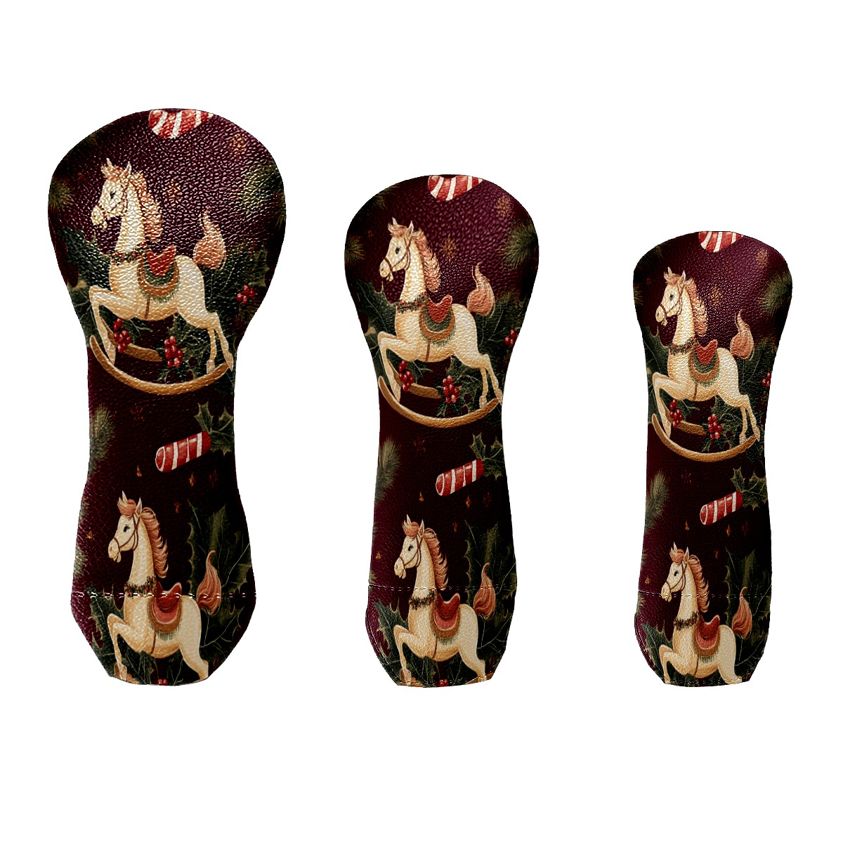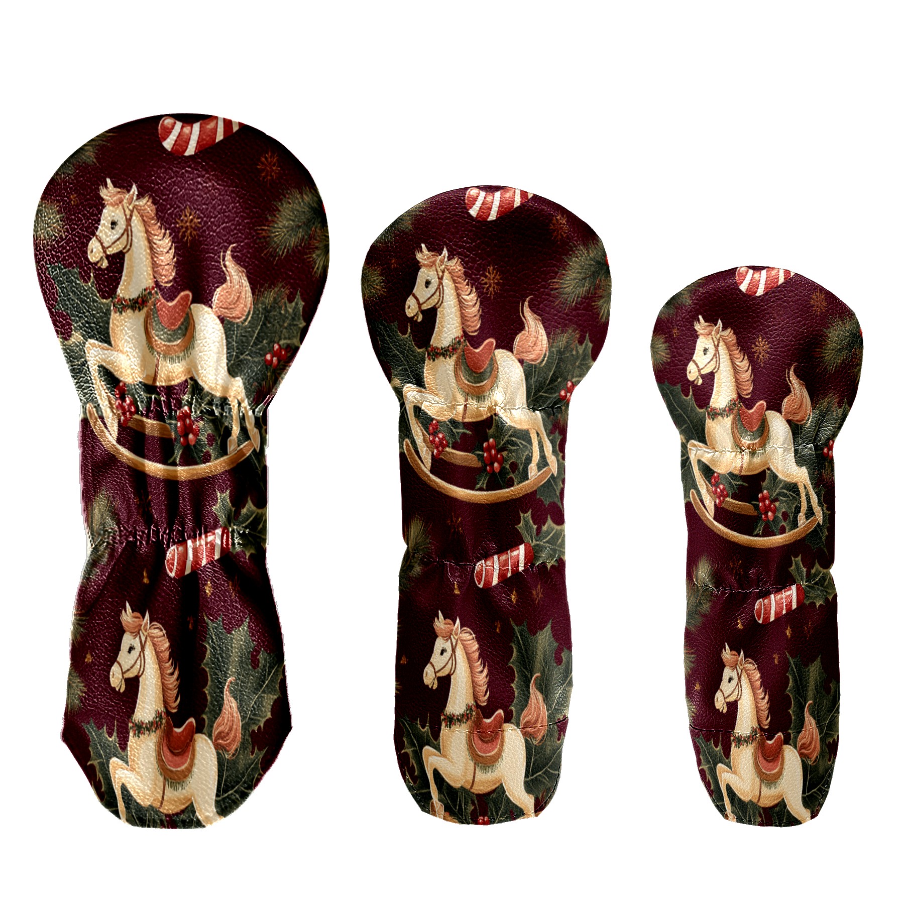 Golf Club Cover, Velvet Lining, High-Quality Leather, Suitable for the First Wood, Fairway Wood and Hybrid Club Head Cover, Suitable for Men and Women Golf Enthusiasts Rocking Horse
