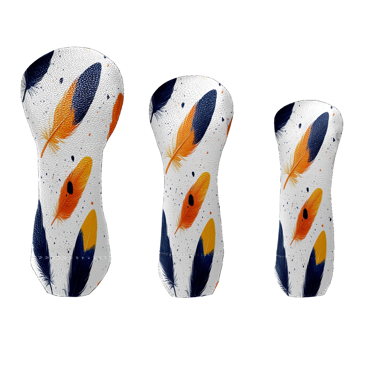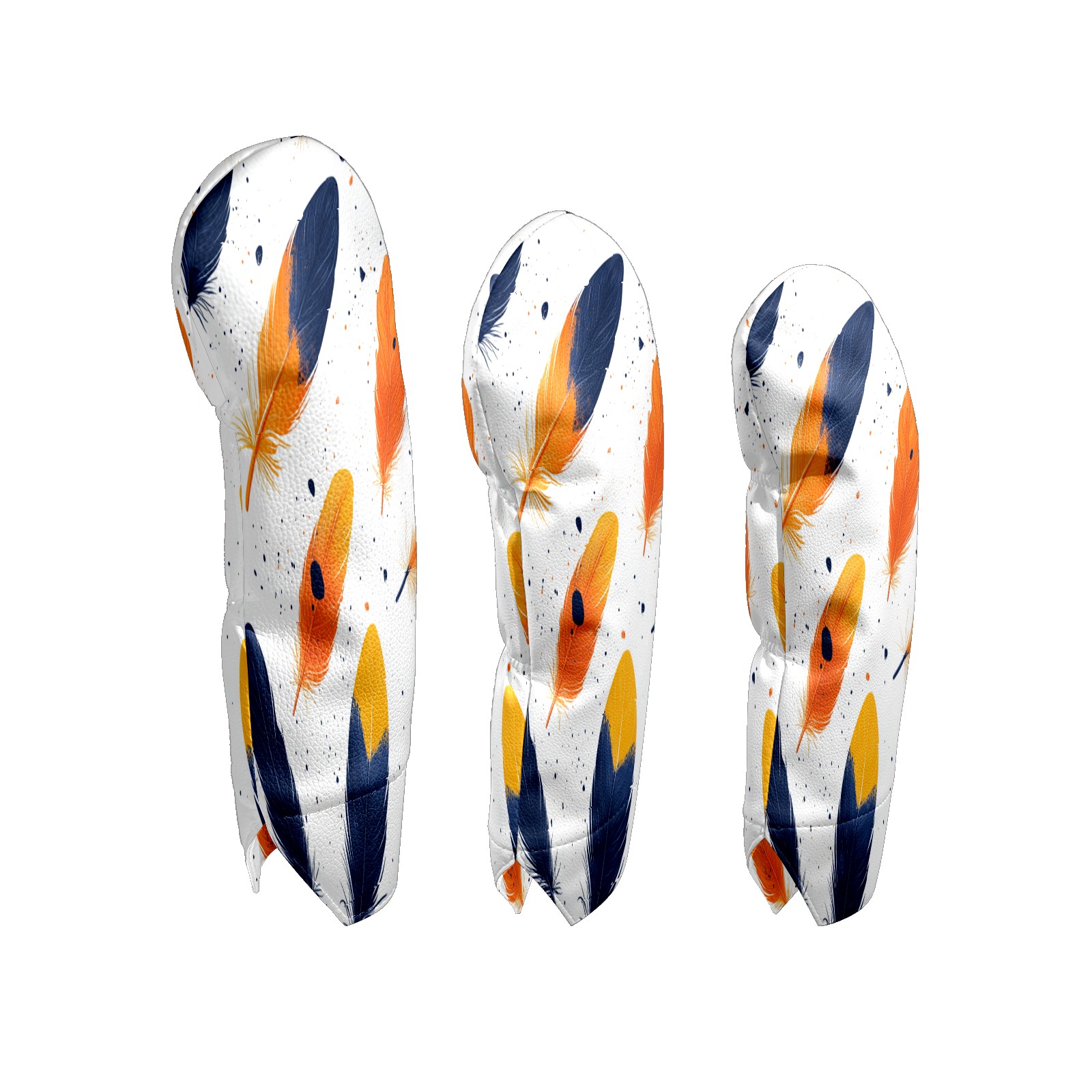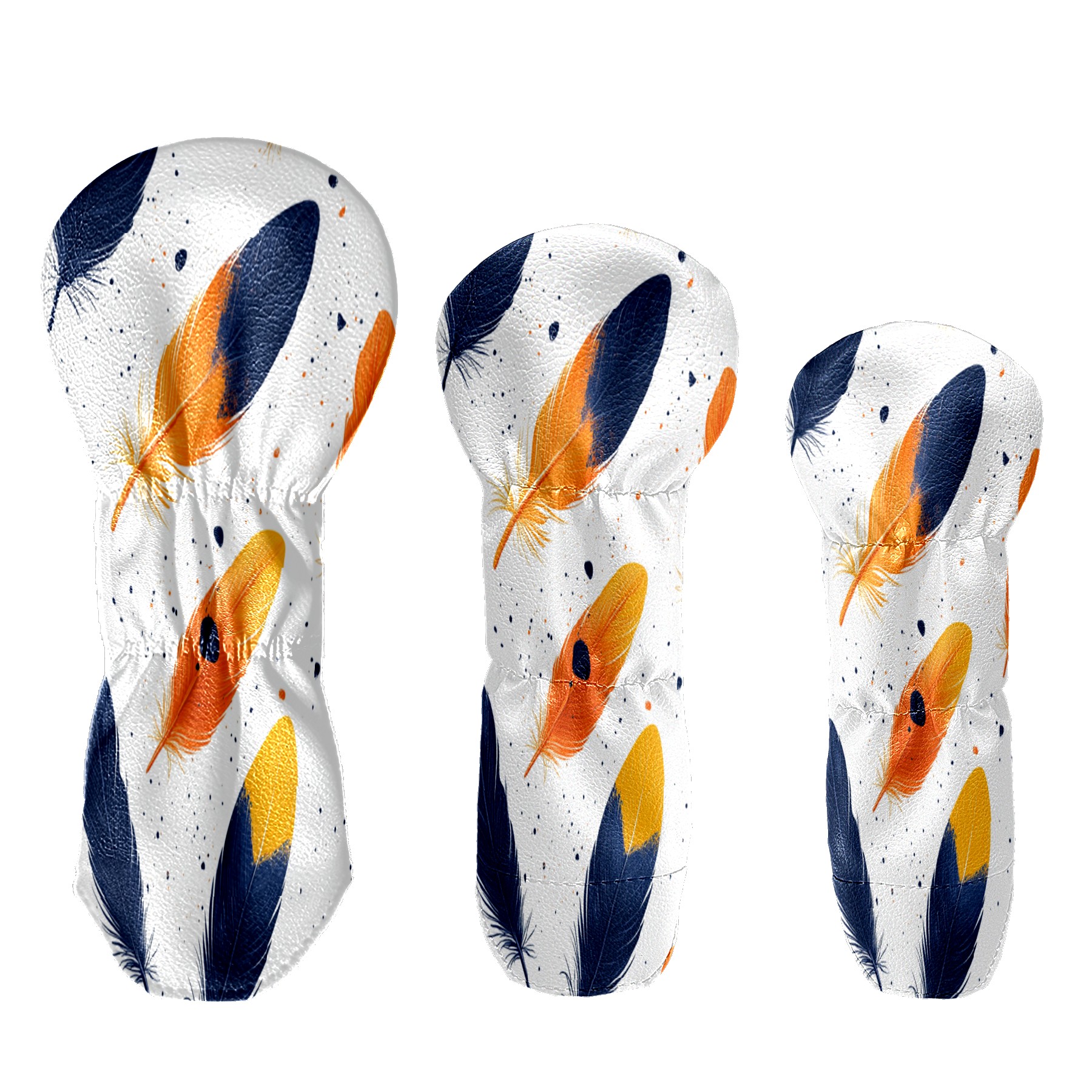 Golf Club Cover, Velvet Lining, High-Quality Leather, Suitable for the First Wood, Fairway Wood and Hybrid Club Head Cover, Suitable for Men and Women Golf Enthusiasts Orange Feathers