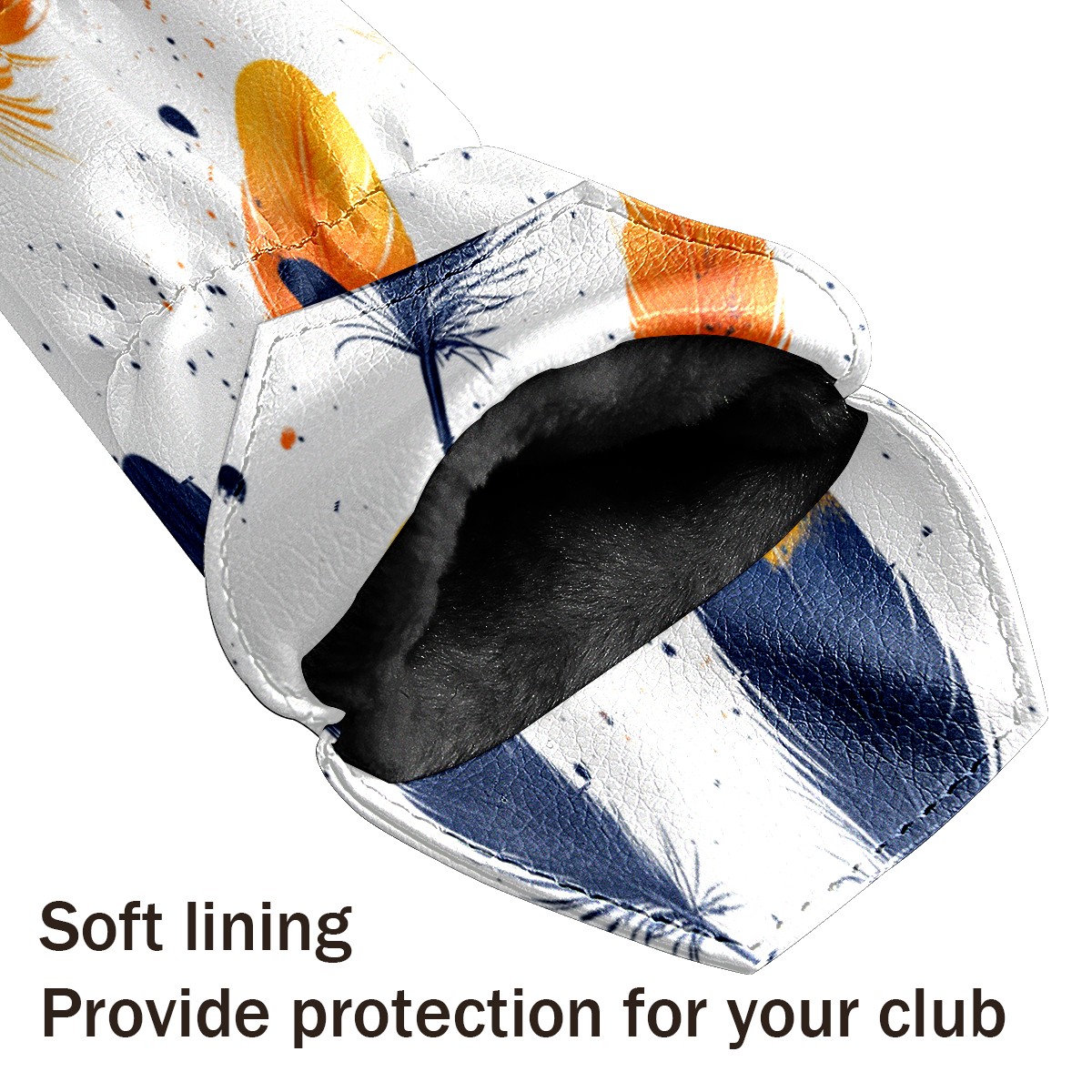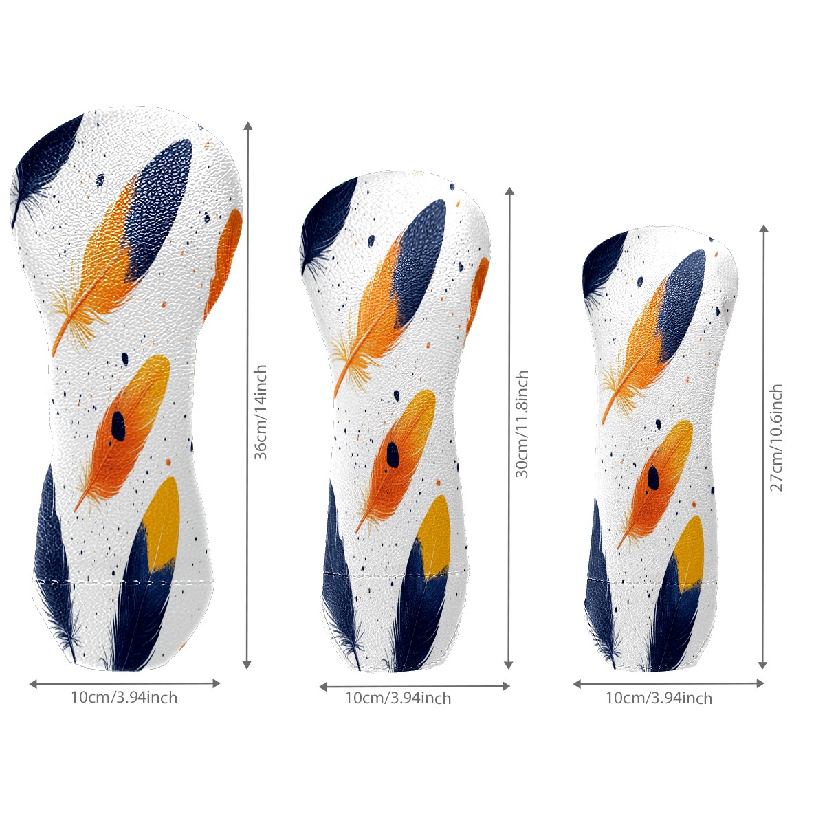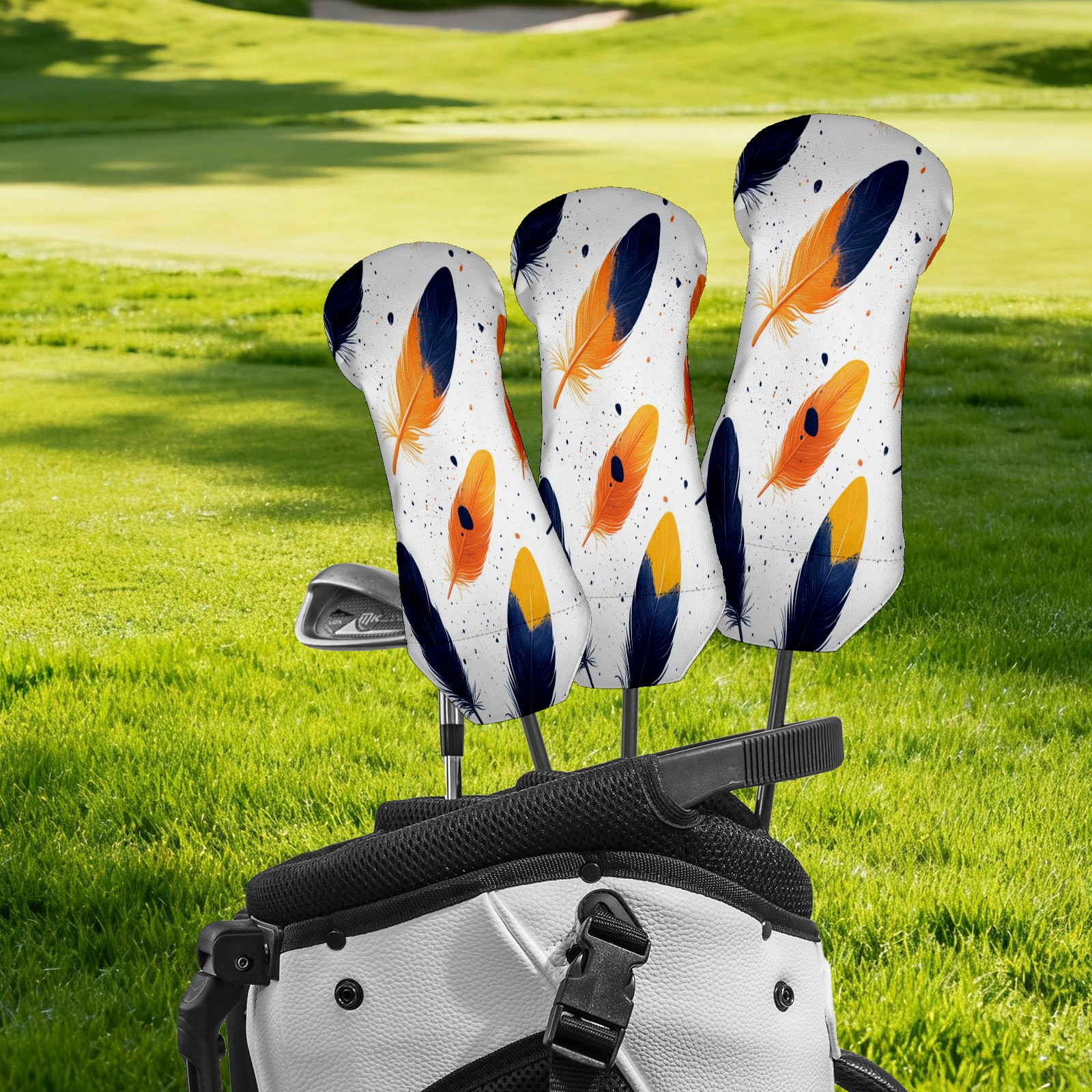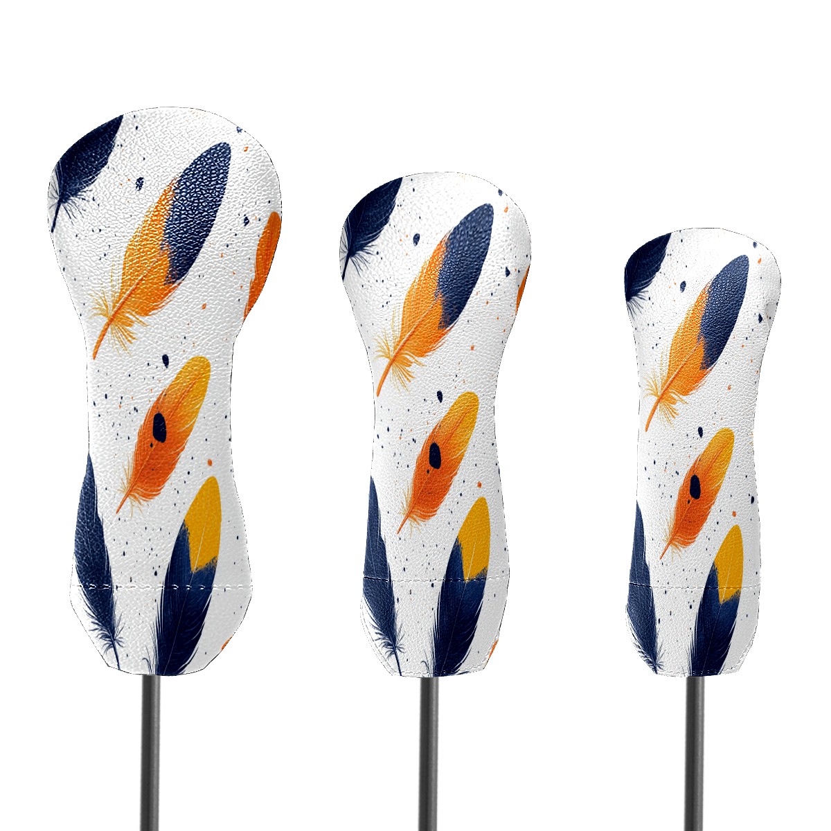 Golf Club Cover, Velvet Lining, High-Quality Leather, Suitable for the First Wood, Fairway Wood and Hybrid Club Head Cover, Suitable for Men and Women Golf Enthusiasts Orange Feathers