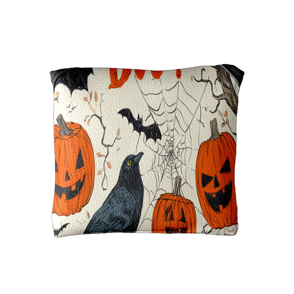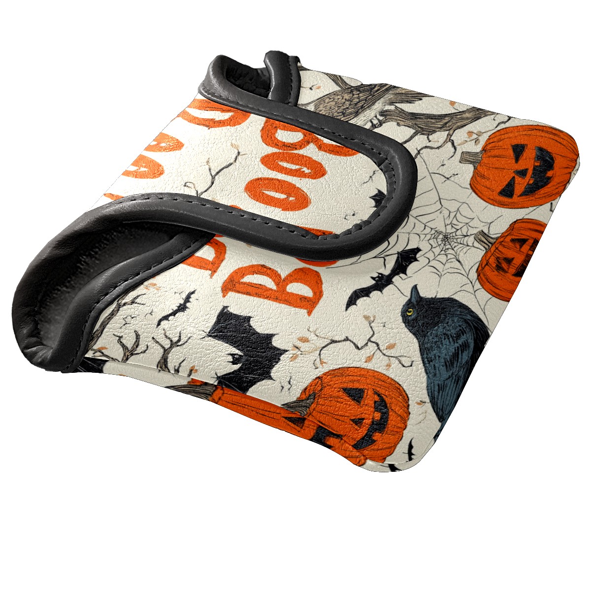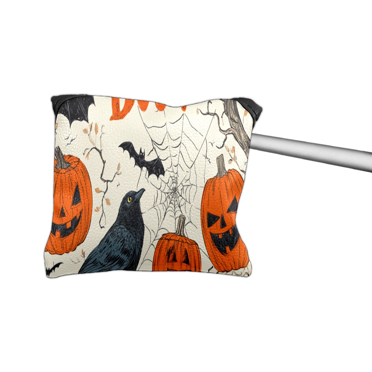 Golf Mallet Putter Cover Premium Leather Golf Putter Head Cover with Magnetic Closure Golf Cover for Men and Women Pumpkin Lantern