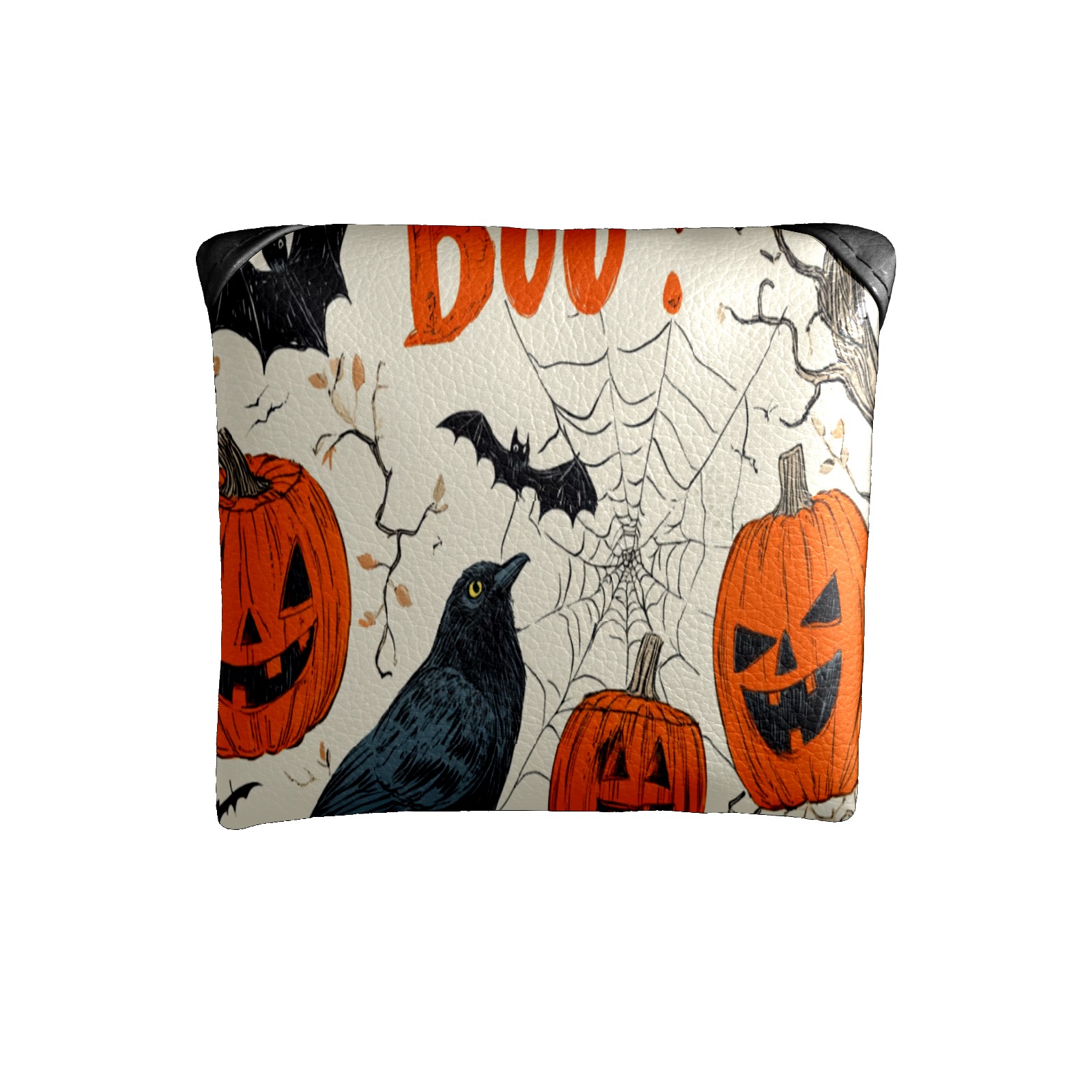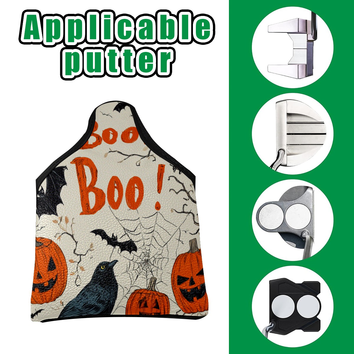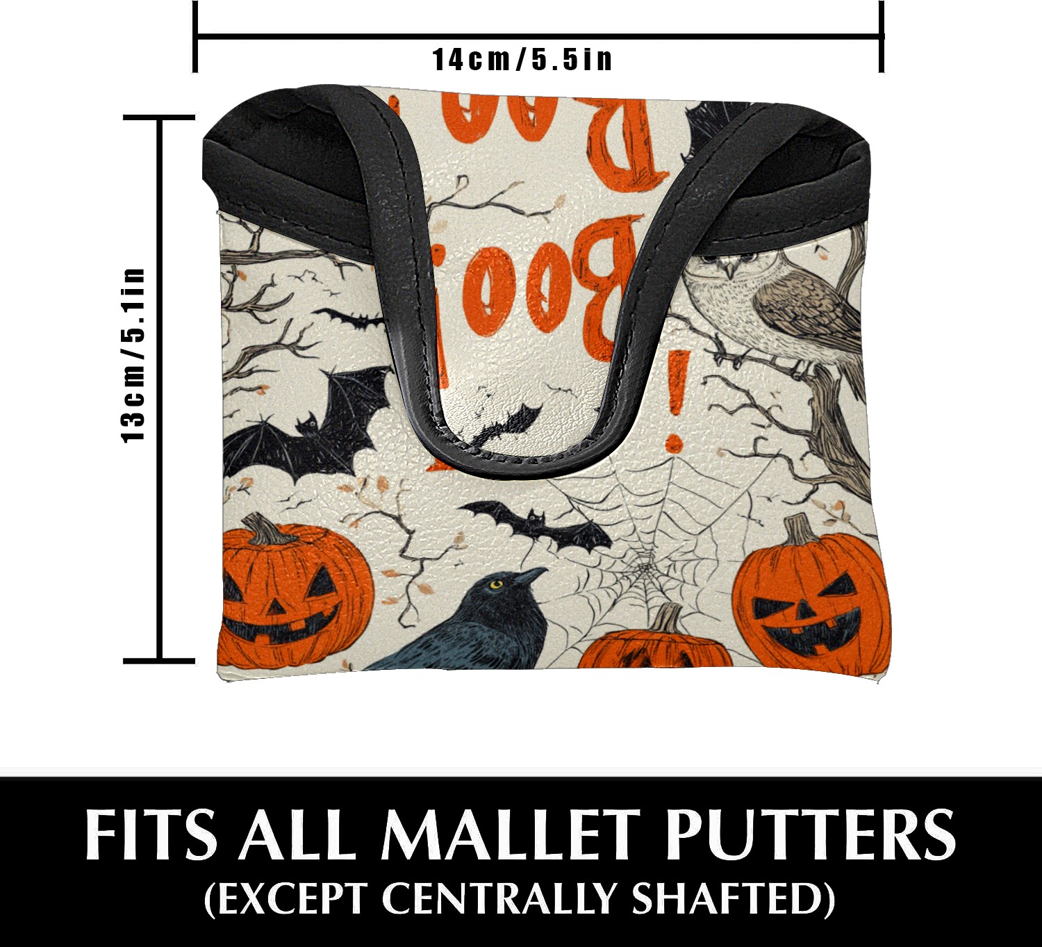 Golf Mallet Putter Cover Premium Leather Golf Putter Head Cover with Magnetic Closure Golf Cover for Men and Women Pumpkin Lantern