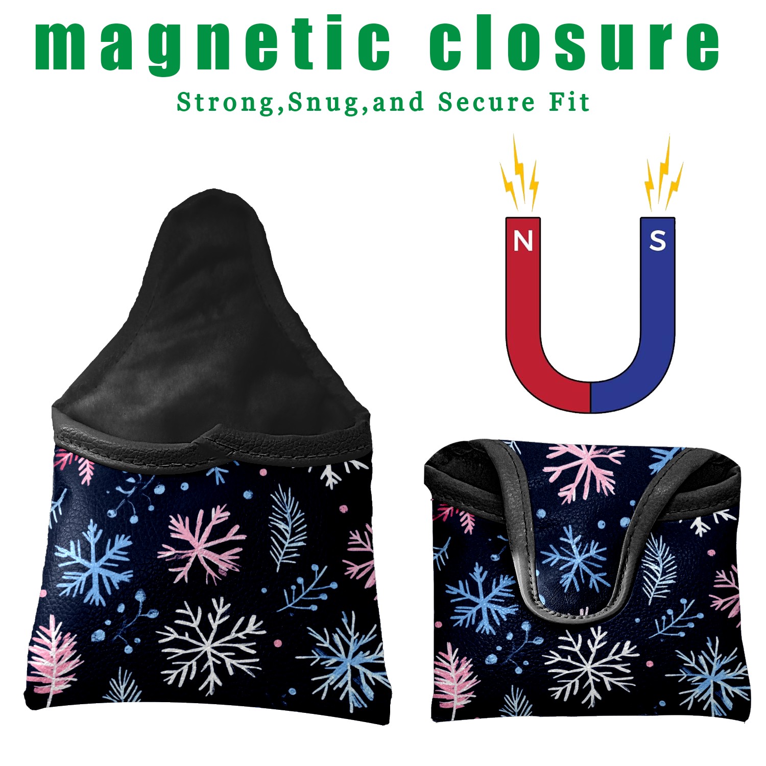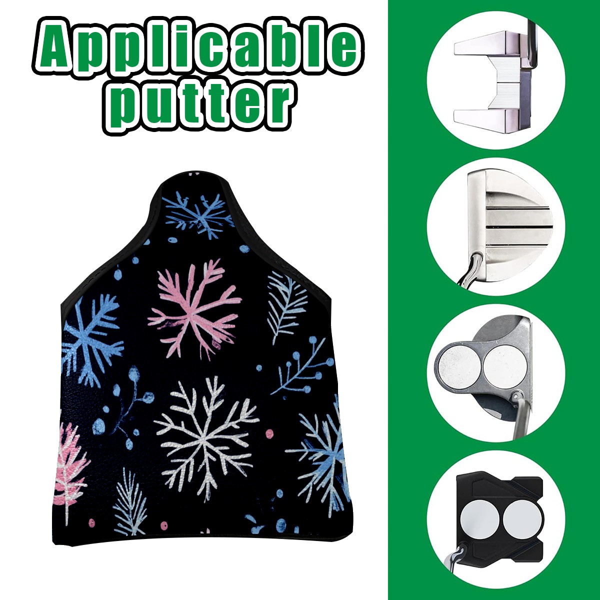 Golf Mallet Putter Cover Premium Leather Golf Putter Head Cover with Magnetic Closure Golf Cover for Men and Women Snowflake Pine Branches