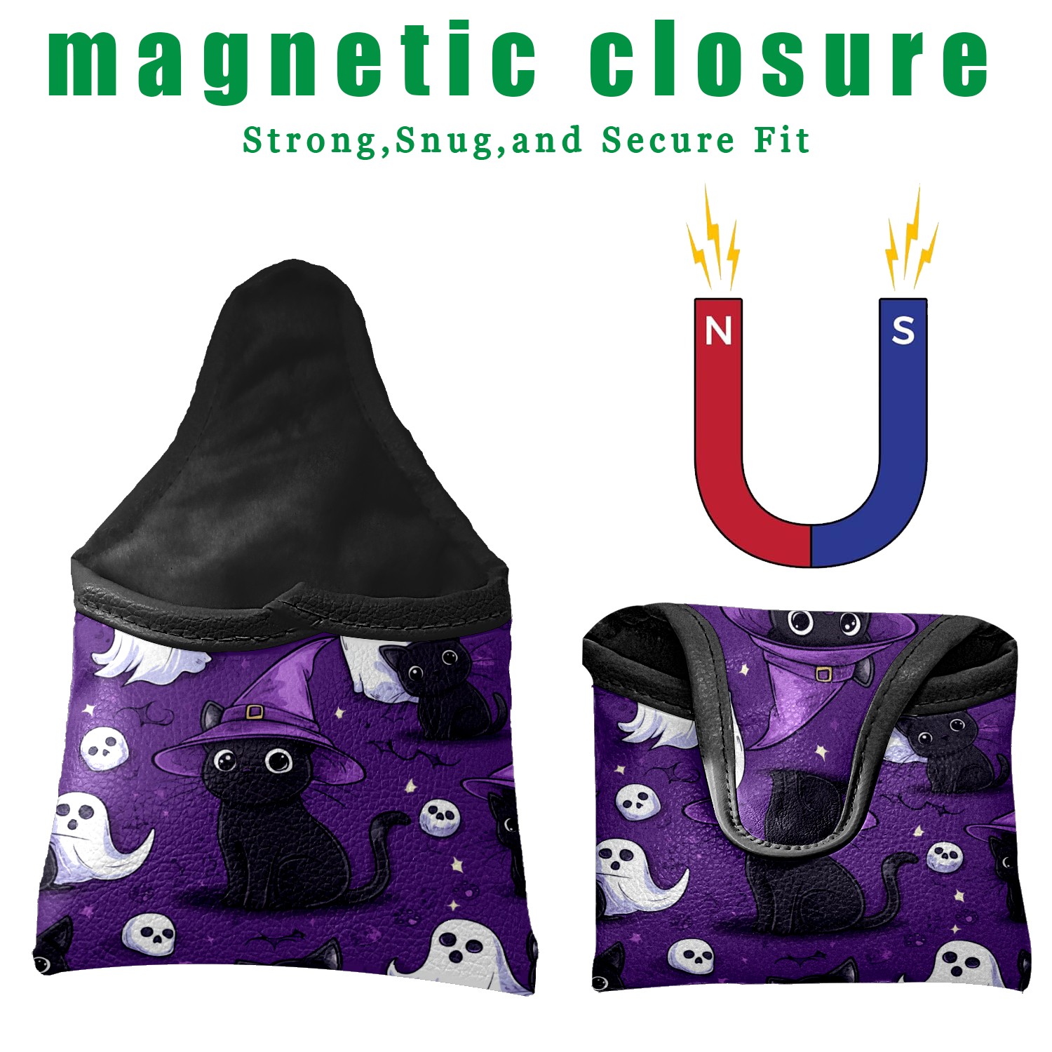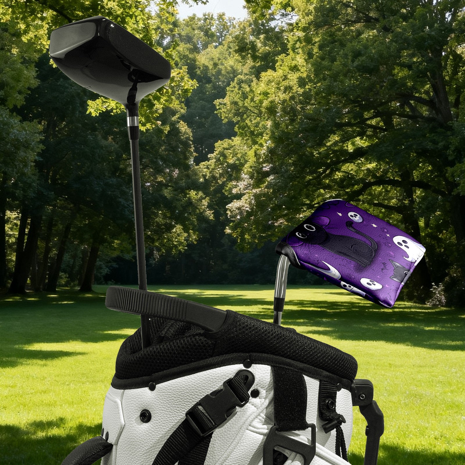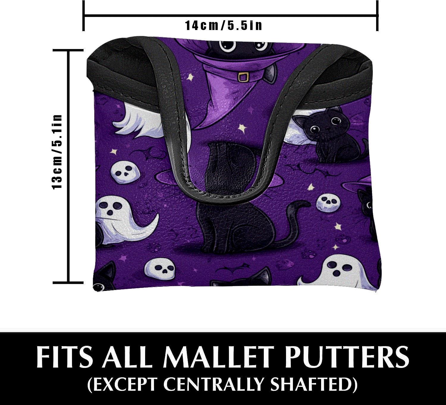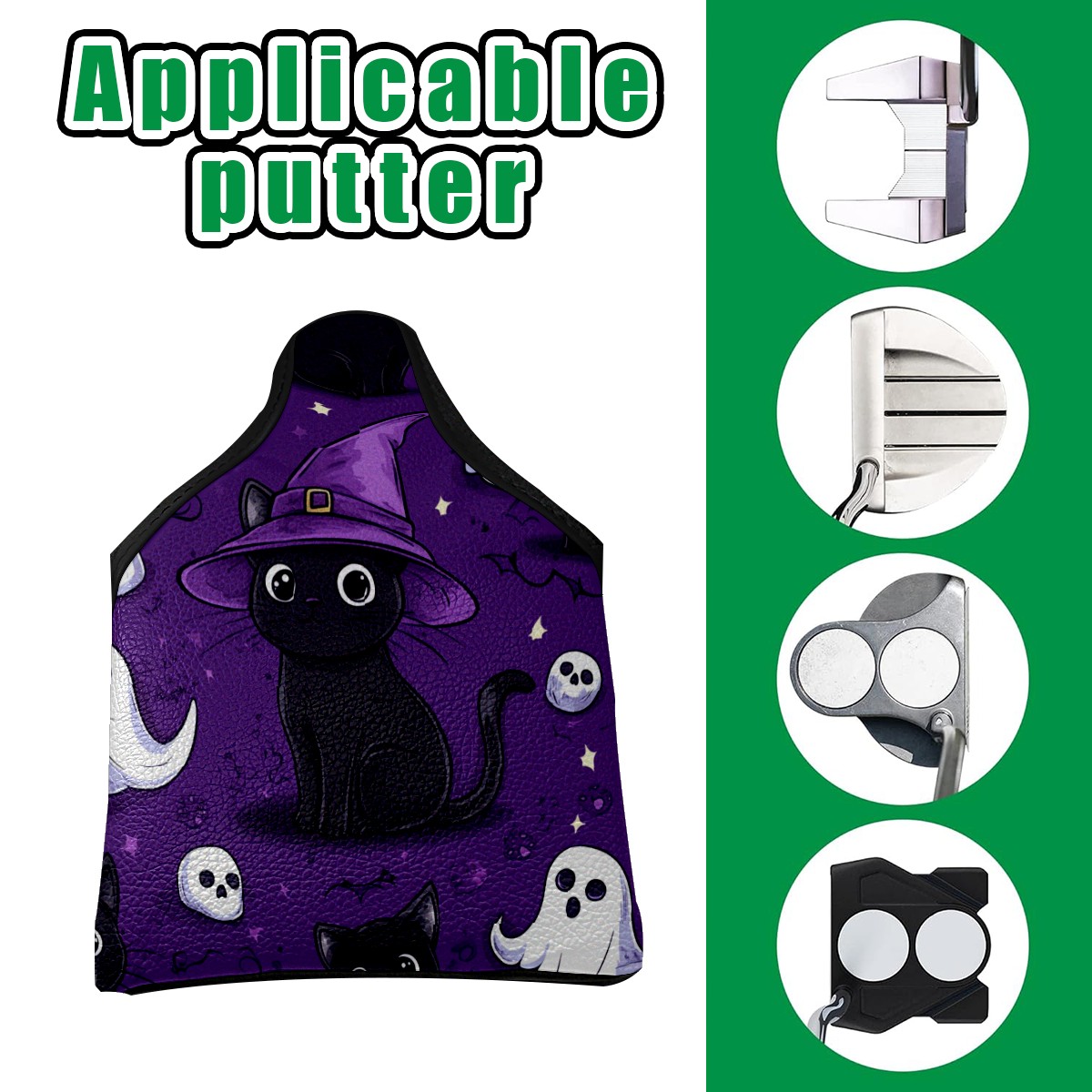Golf Mallet Putter Cover Premium Leather Golf Putter Head Cover with Magnetic Closure Golf Cover for Men and Women Cute Black Cat