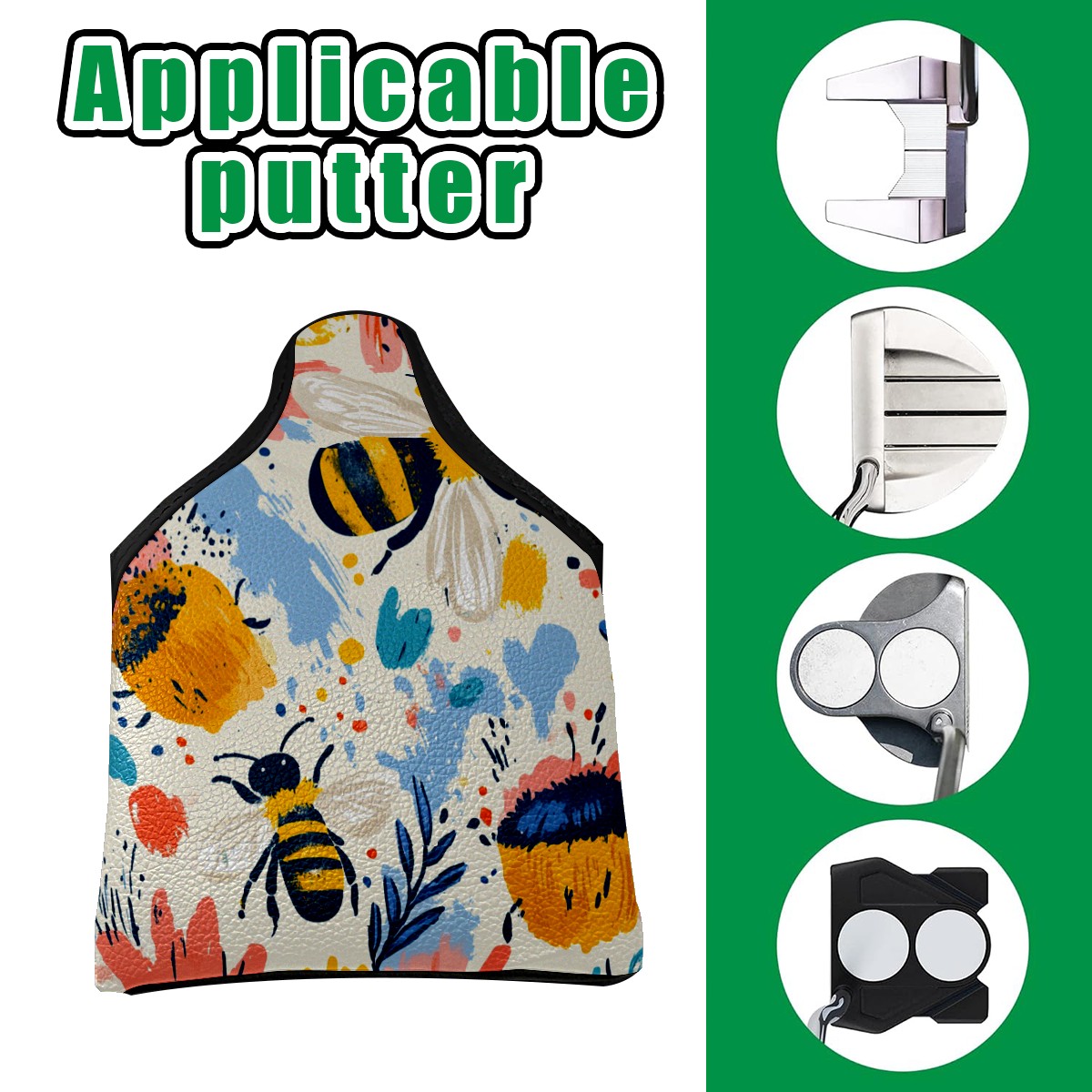 Golf Mallet Putter Cover Premium Leather Golf Putter Head Cover with Magnetic Closure Golf Cover for Men and Women Cartoon Bee Hive