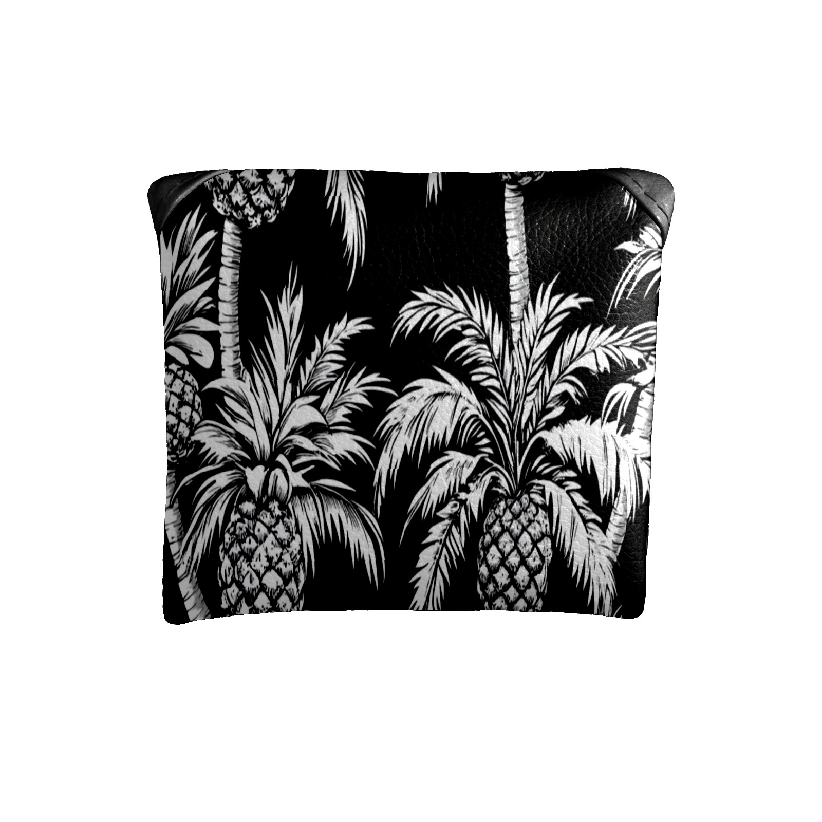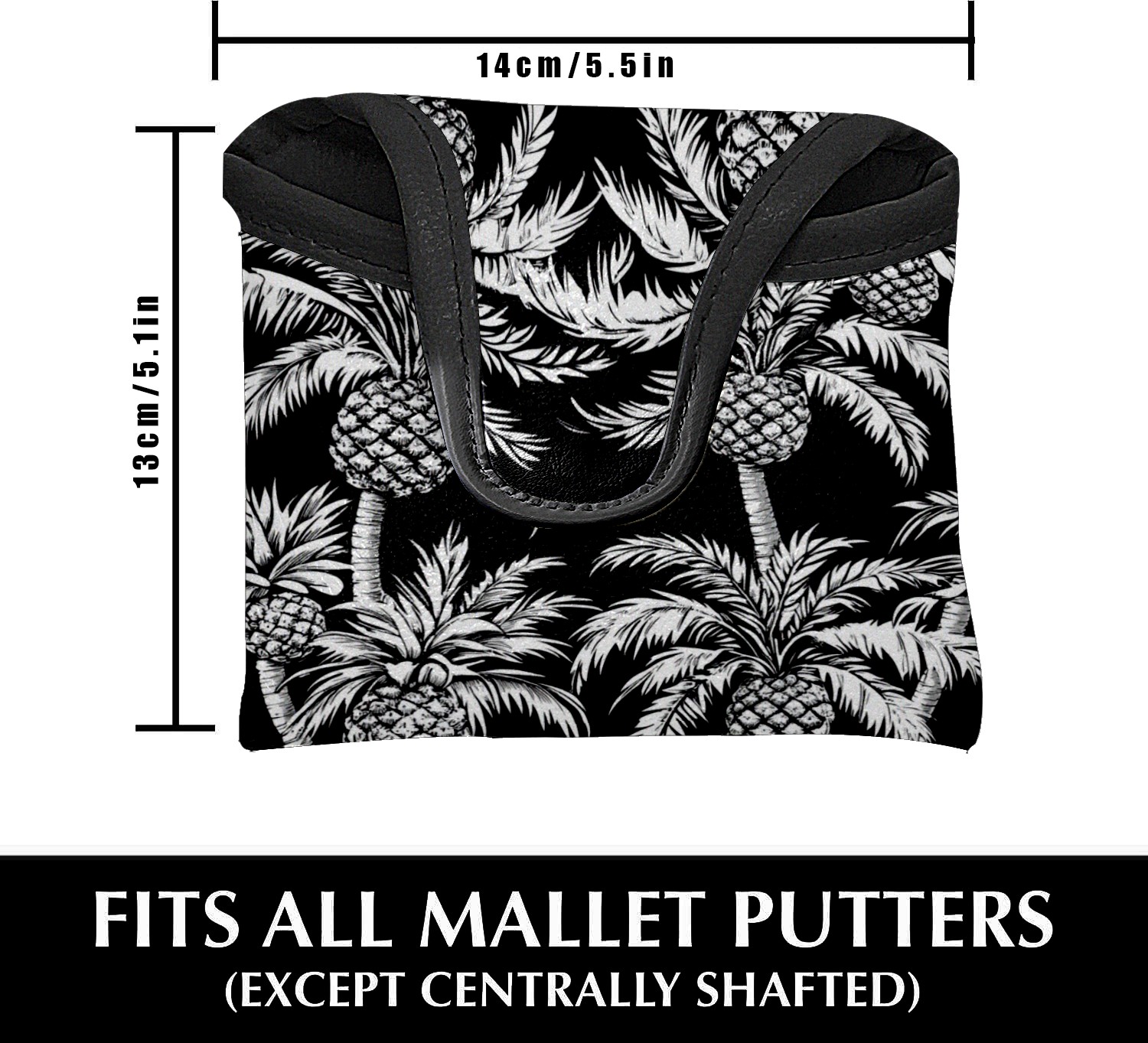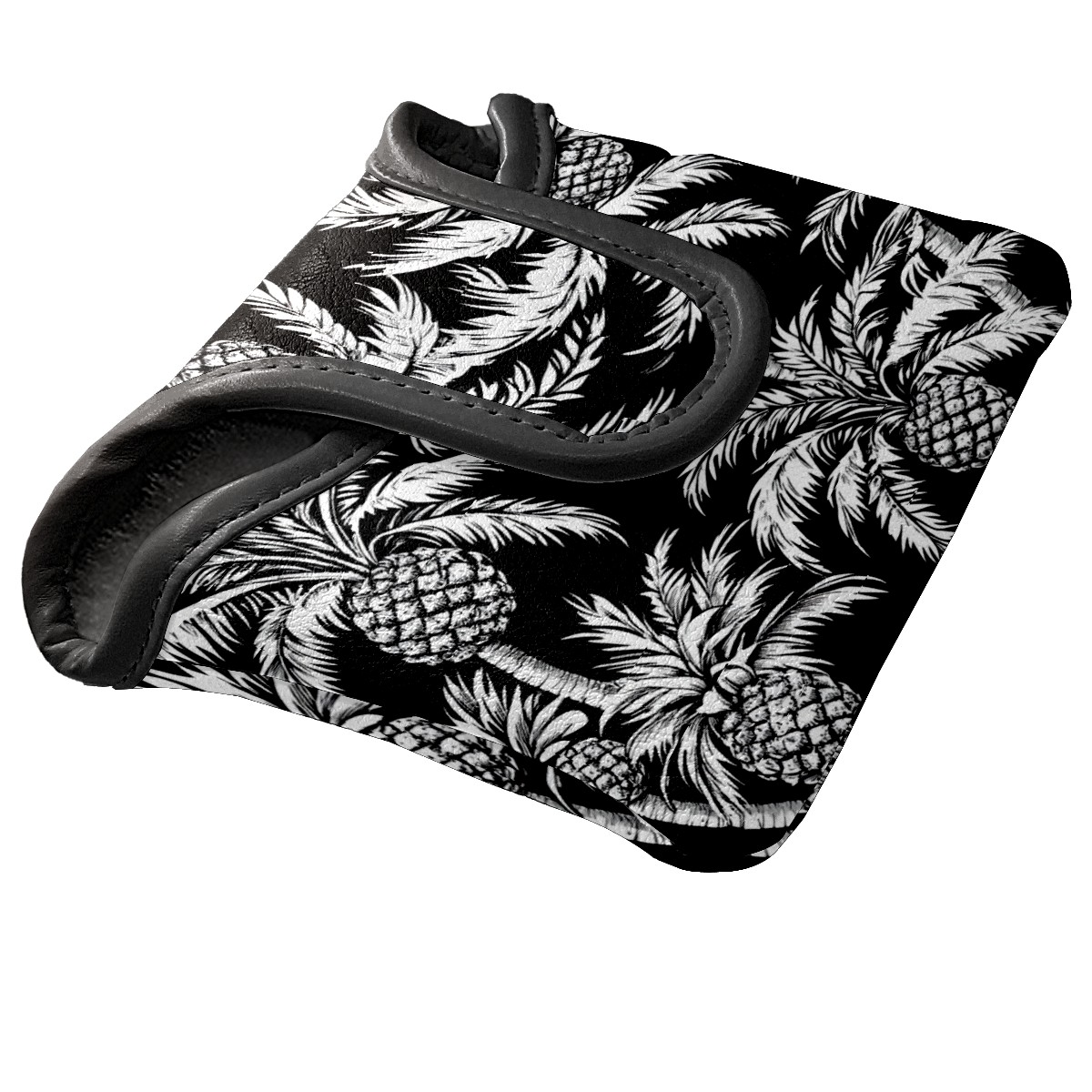 Golf Mallet Putter Cover Premium Leather Golf Putter Head Cover with Magnetic Closure Golf Cover for Men and Women Black White Palm Tree Pineapple