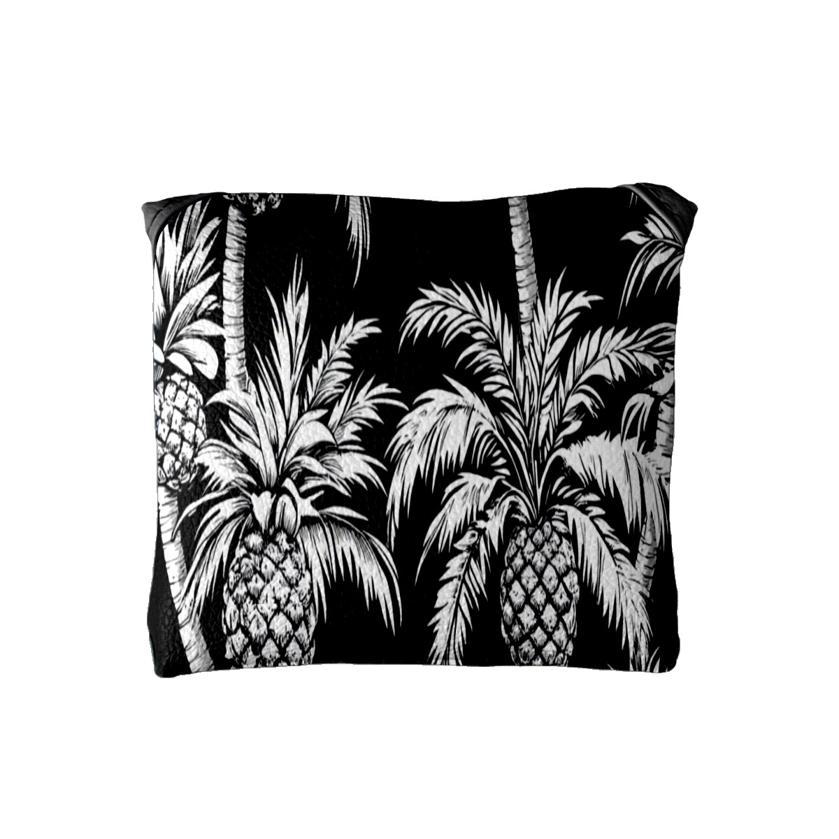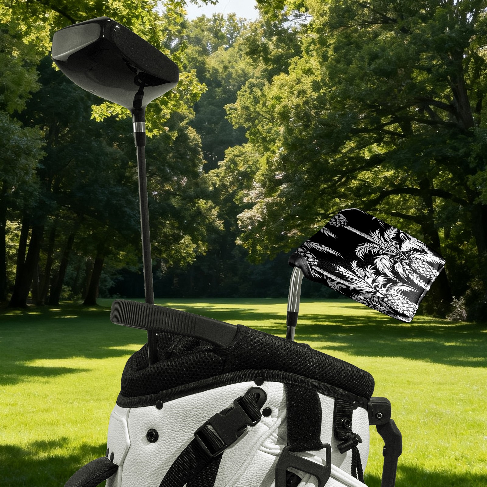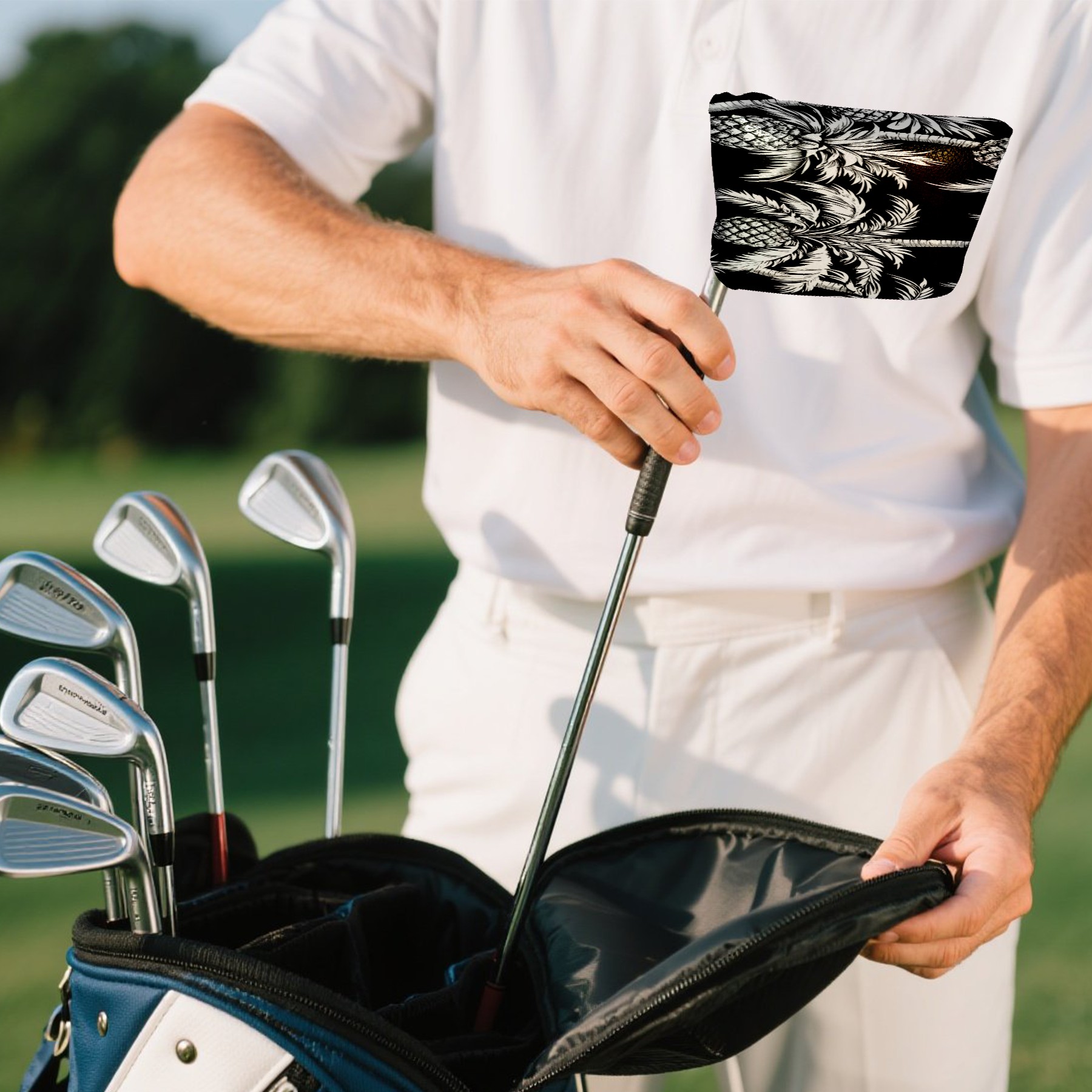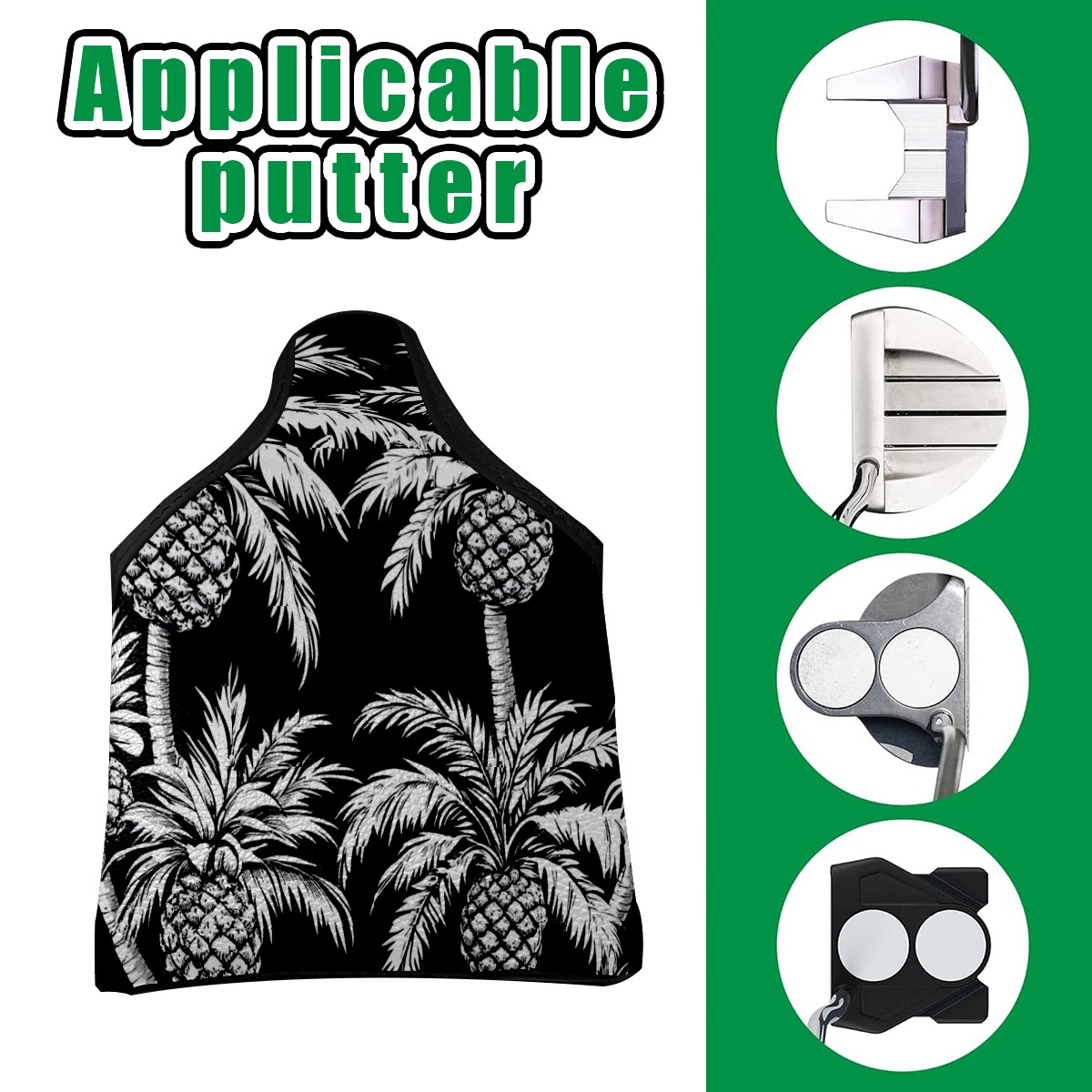Golf Mallet Putter Cover Premium Leather Golf Putter Head Cover with Magnetic Closure Golf Cover for Men and Women Black White Palm Tree Pineapple