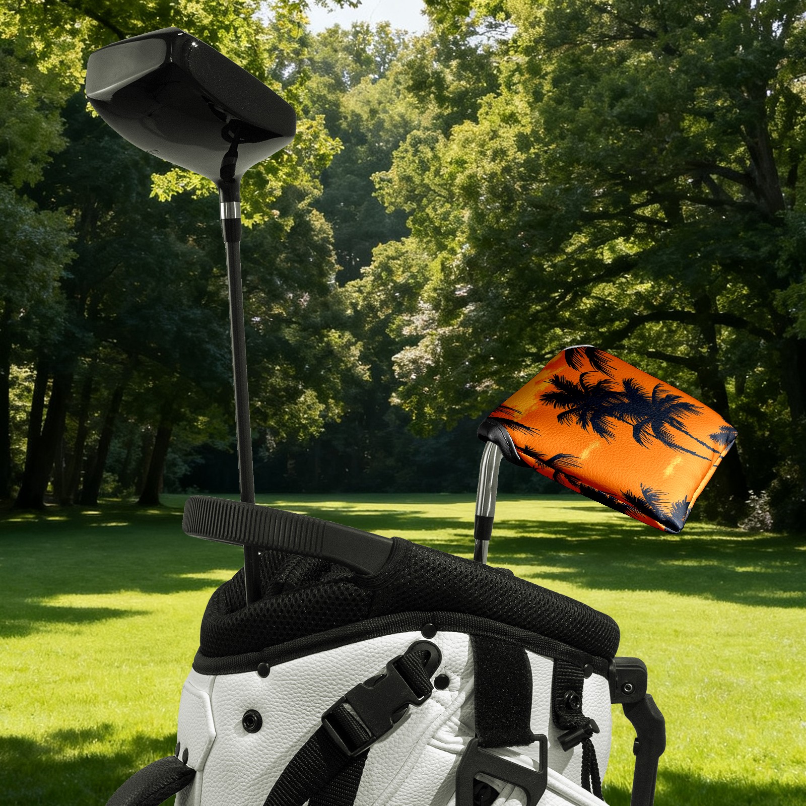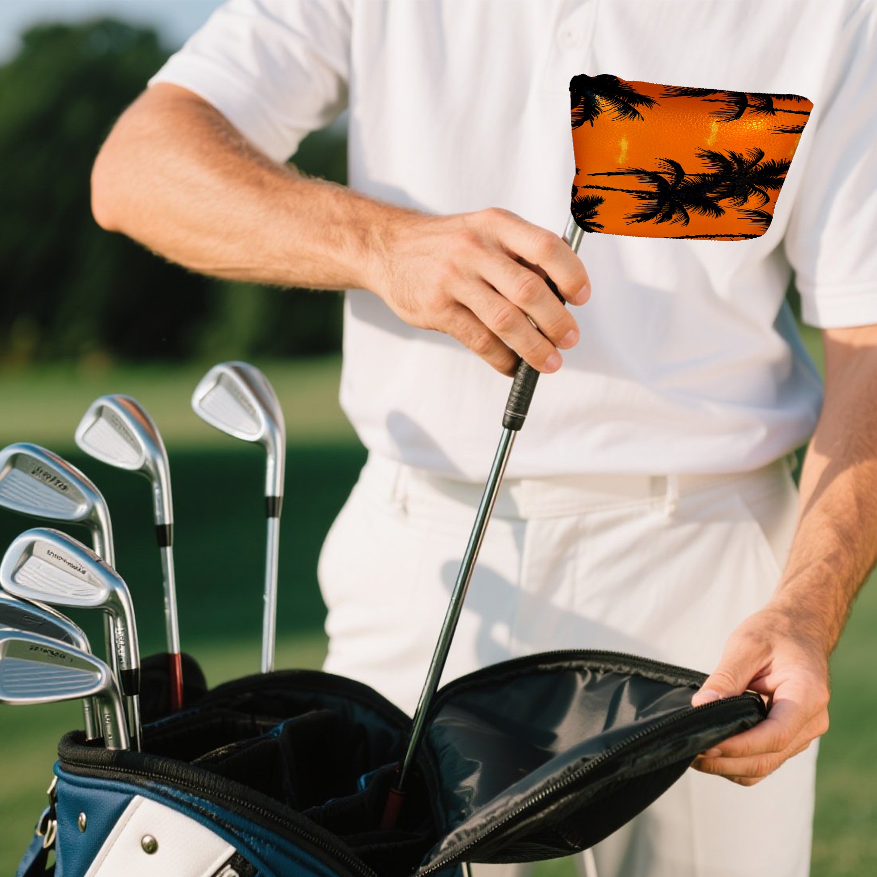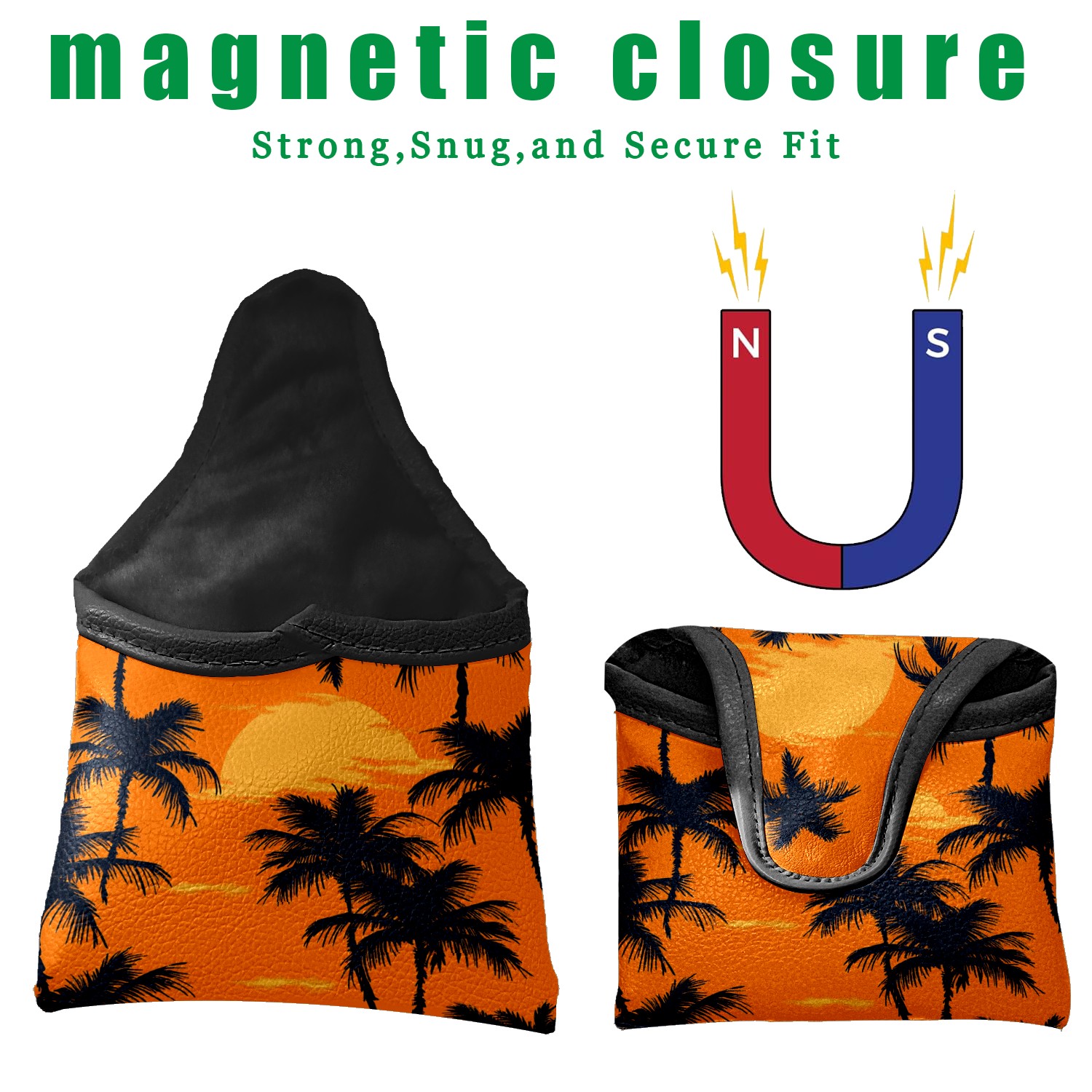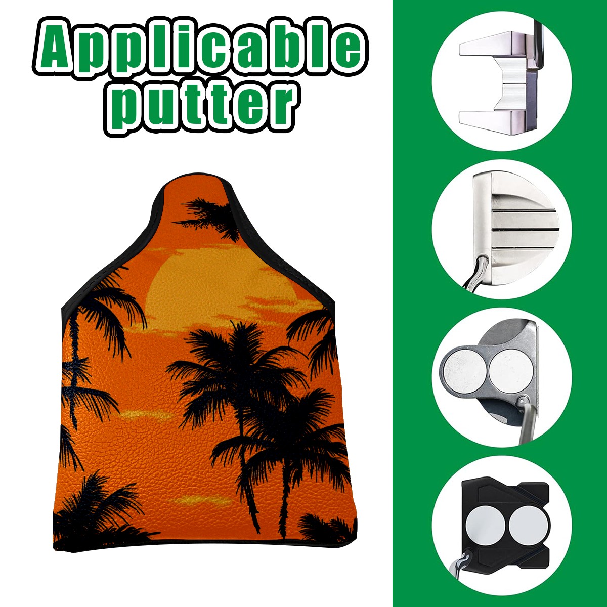 Golf Mallet Putter Cover Premium Leather Golf Putter Head Cover with Magnetic Closure Golf Cover for Men and Women Orange Sunset Pattern