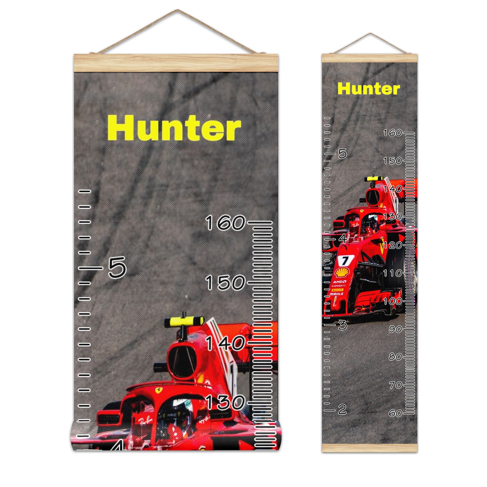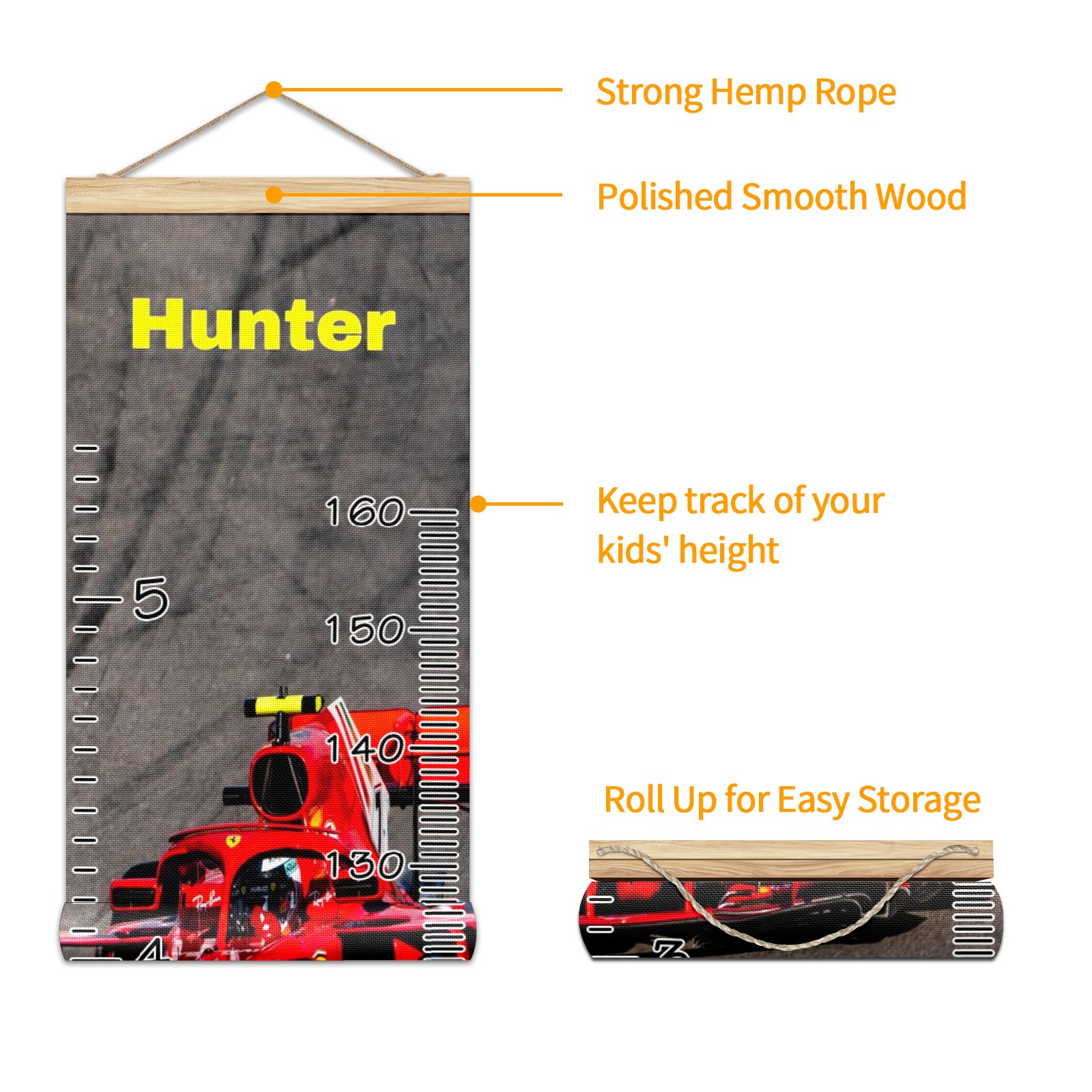 Personalized Kids Name Growth Chart Ruler for Wall Wood Frame Canvas Height Measure Chart 13.4x56 in Hanging Growth Chart RACE CAR9.30 Boys Girls Room Decor