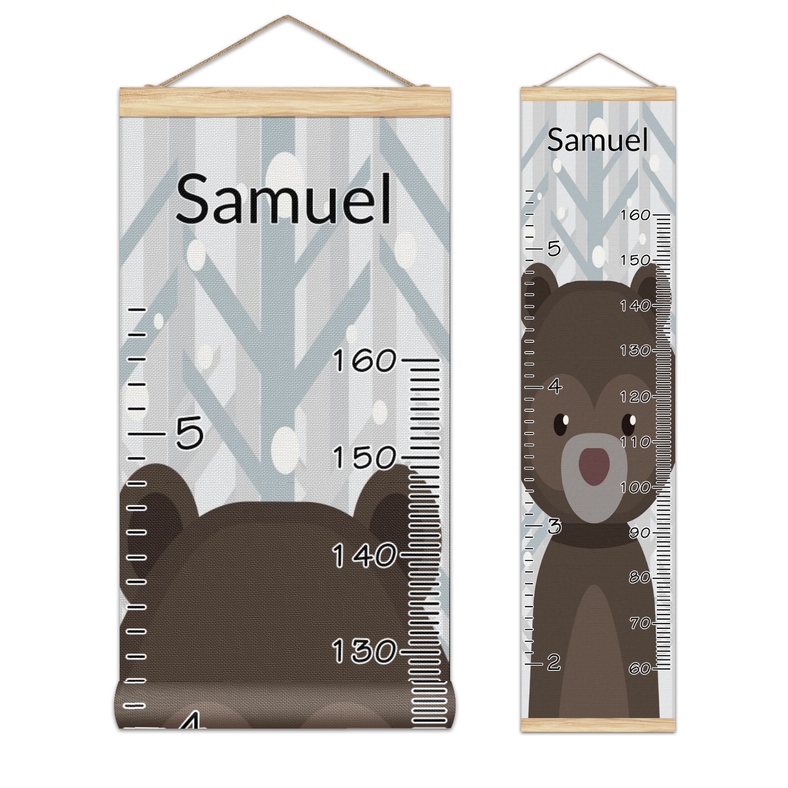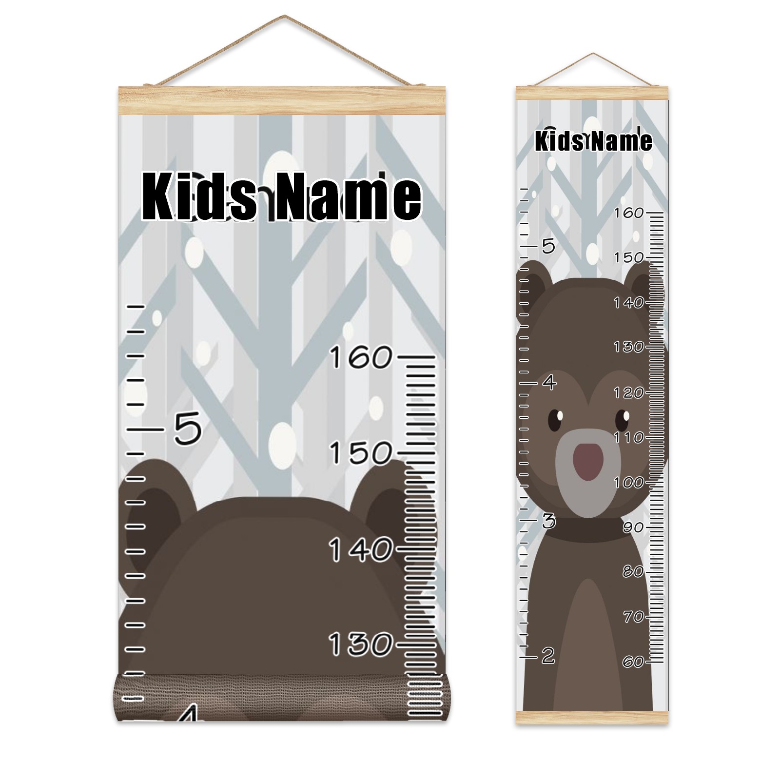 Personalized Kids Name Growth Chart Ruler for Wall Wood Frame Canvas Height Measure Chart 13.4x56 in Hanging Growth Chart Lovely Bear Before Forest9.30 Boys Girls Room Decor
