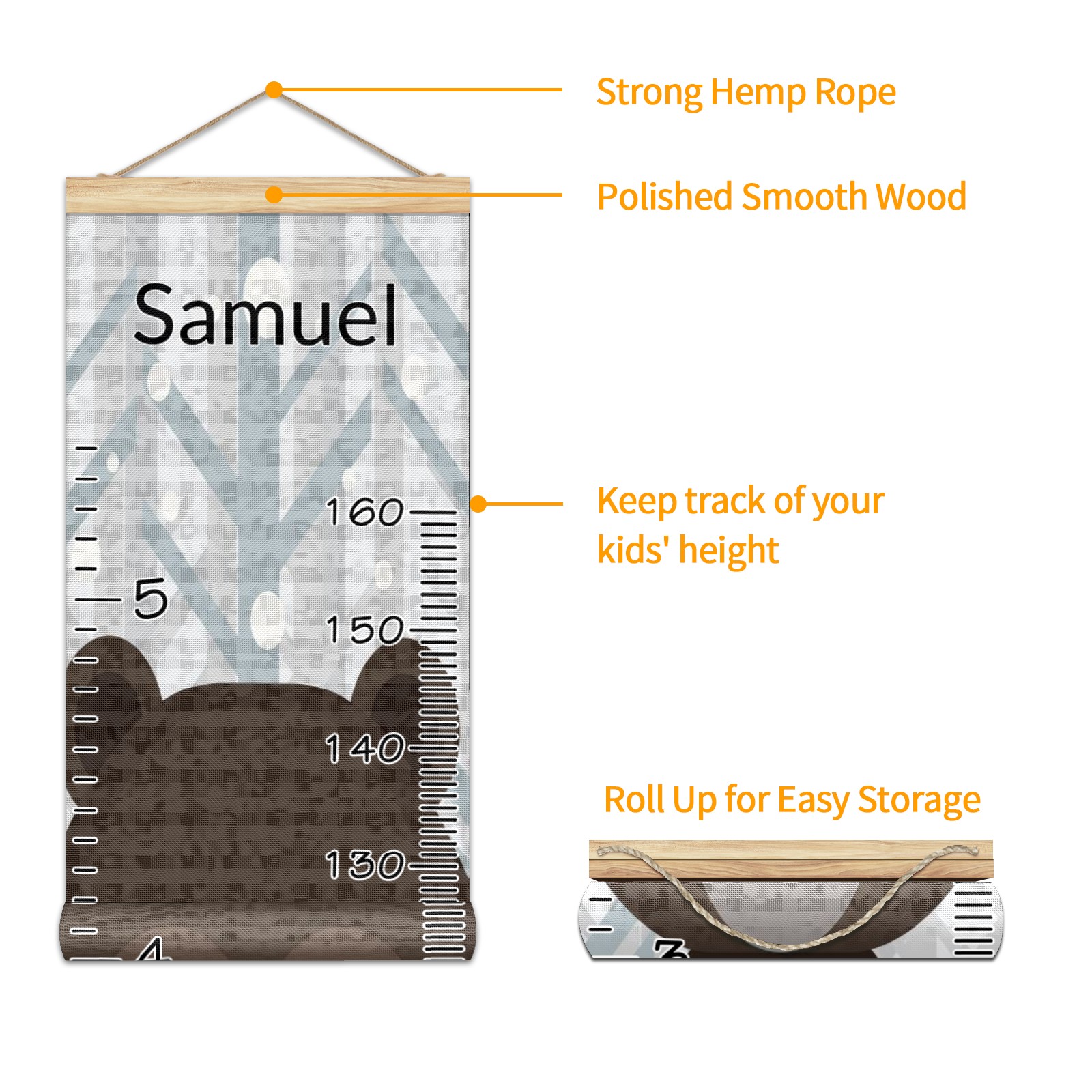 • <p><b>Features:</b></p> <p>Rope for Hanging</p> <p>Material: Linen + Wood</p> <p>Dimensions: 13.4x56 inches</p> <p>Package Included: 1 * Baby Growth Chart</p> <p><b>Baby height growth chart can be used anywhere</b></p> <p>Ideal for kids nursery decoration, kids bedroom, interior walls or windows, playroom, living room, homedecoration.Add name and make the growth chart special!</p> <p><b>Easy to fold and carry</b></p> <p>With rope at the top of the growth chart, it is easy to install and remove.You can fold it and unfold any time any where.</p> <p><b>Perfect Gift Idea for Kids</b></p> <p>Environmental and non-toxic for kids use, it must be a perfect gift for baby, kids, girls, and boys.This is a best choice for your friend who have kids or baby as a popular gift.</p> <p><b>Easy to read</b></p> <p>Measurement accrate with 2 scales, Centimeters and feet. The letters are big enough, very easy to read.</p> <p><b>60cm(23.6inch) Over Ground Design</b></p> <p>Not only can protect from dust and other damage, but also will not interfere in floor cleaning.</p>