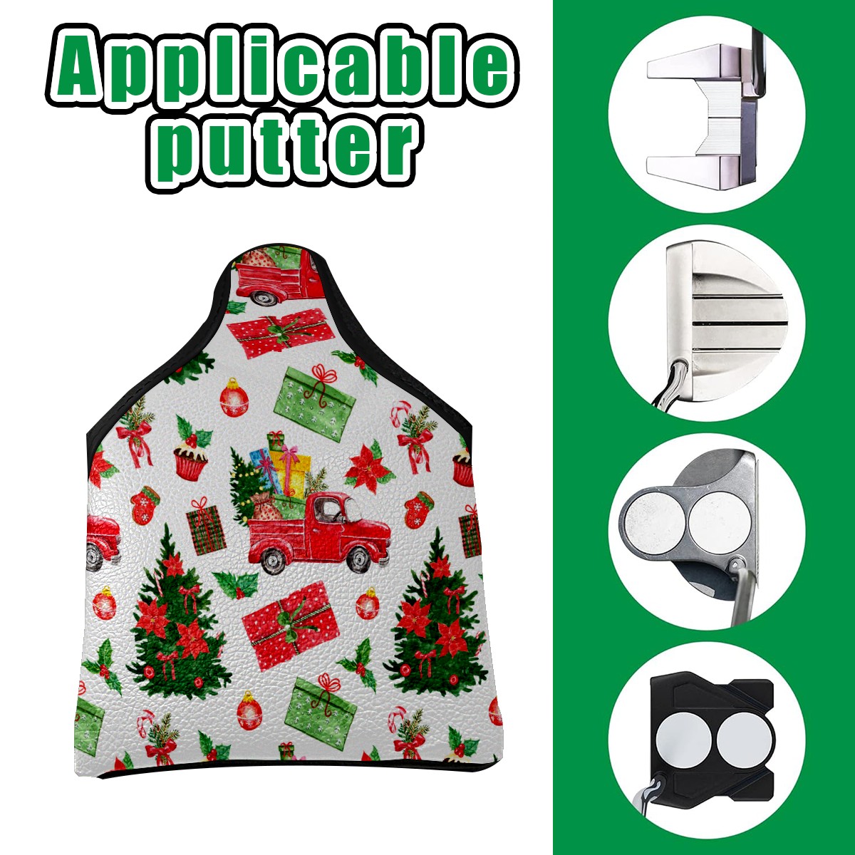 Mallet Putter Cover, PU Leather and Waterproof Golf Putter Cover, Golf Club Protective Case Fits Most Mallet Putters, Easily Slips on and Secures Colorful Winter Christmas