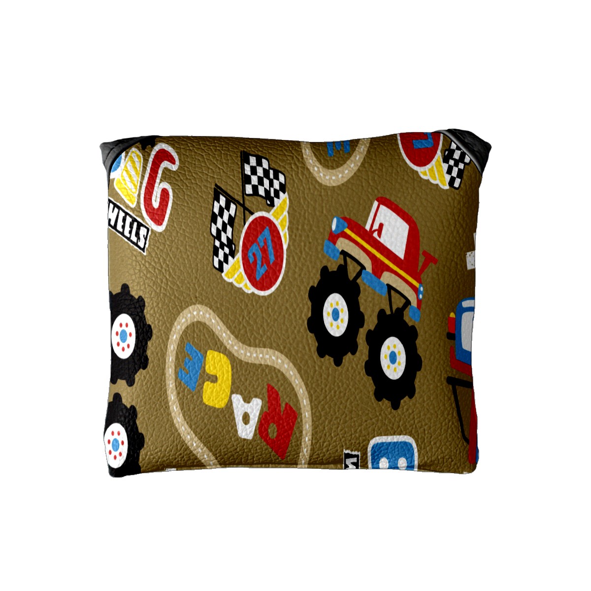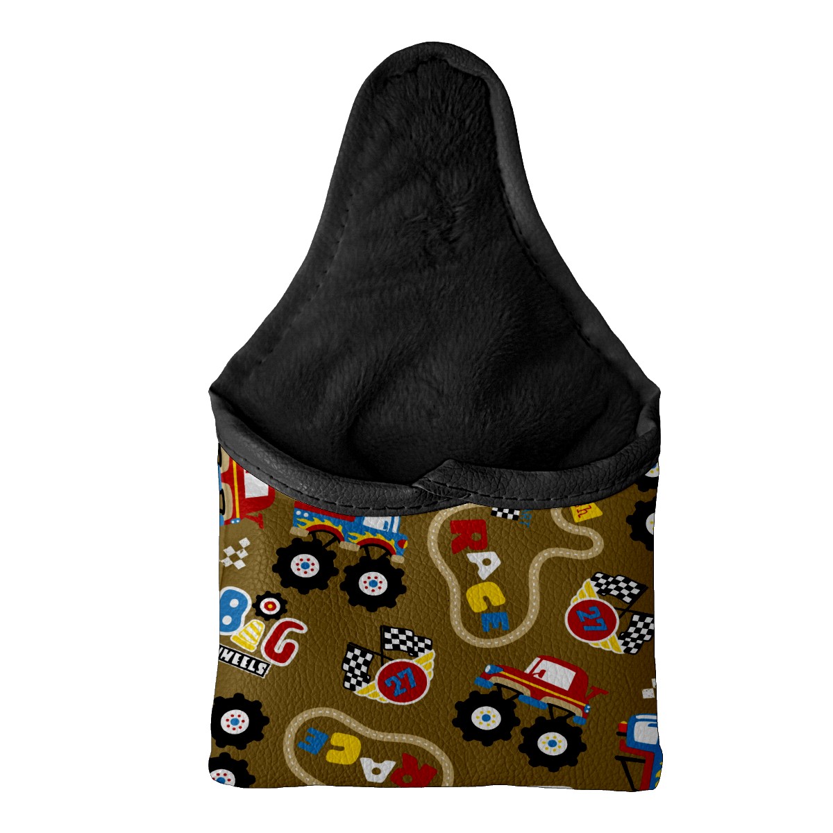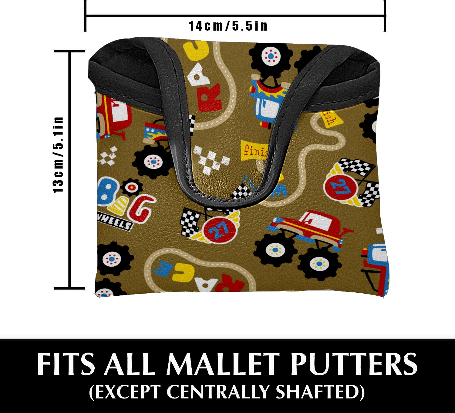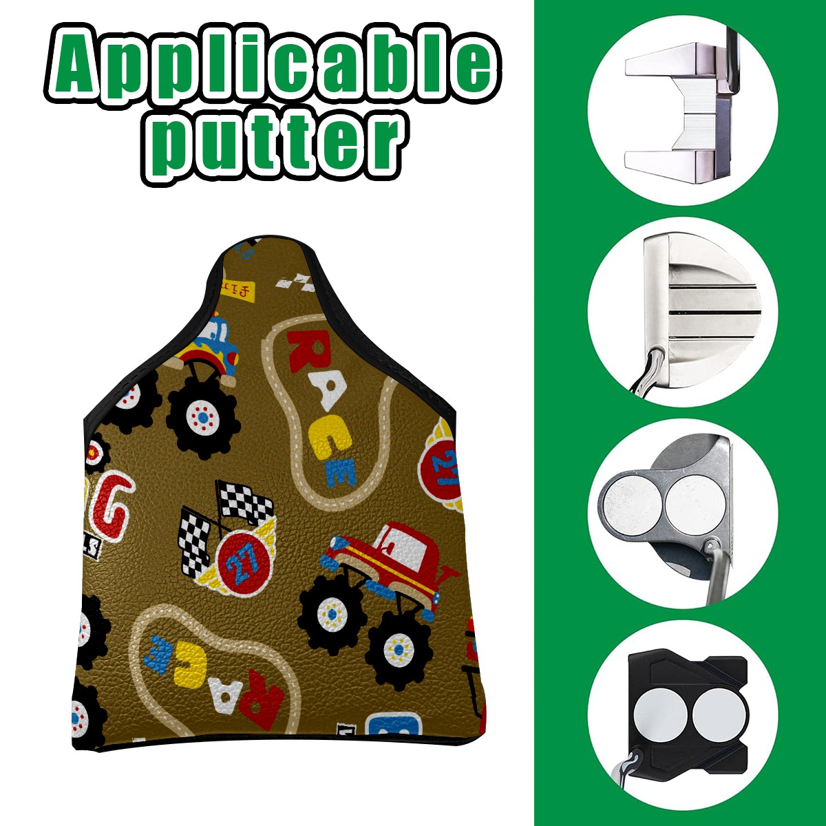 Mallet Putter Cover, PU Leather and Waterproof Golf Putter Cover, Golf Club Protective Case Fits Most Mallet Putters, Easily Slips on and Secures Vintage Retro Cartoon Monster Trucks Pattern
