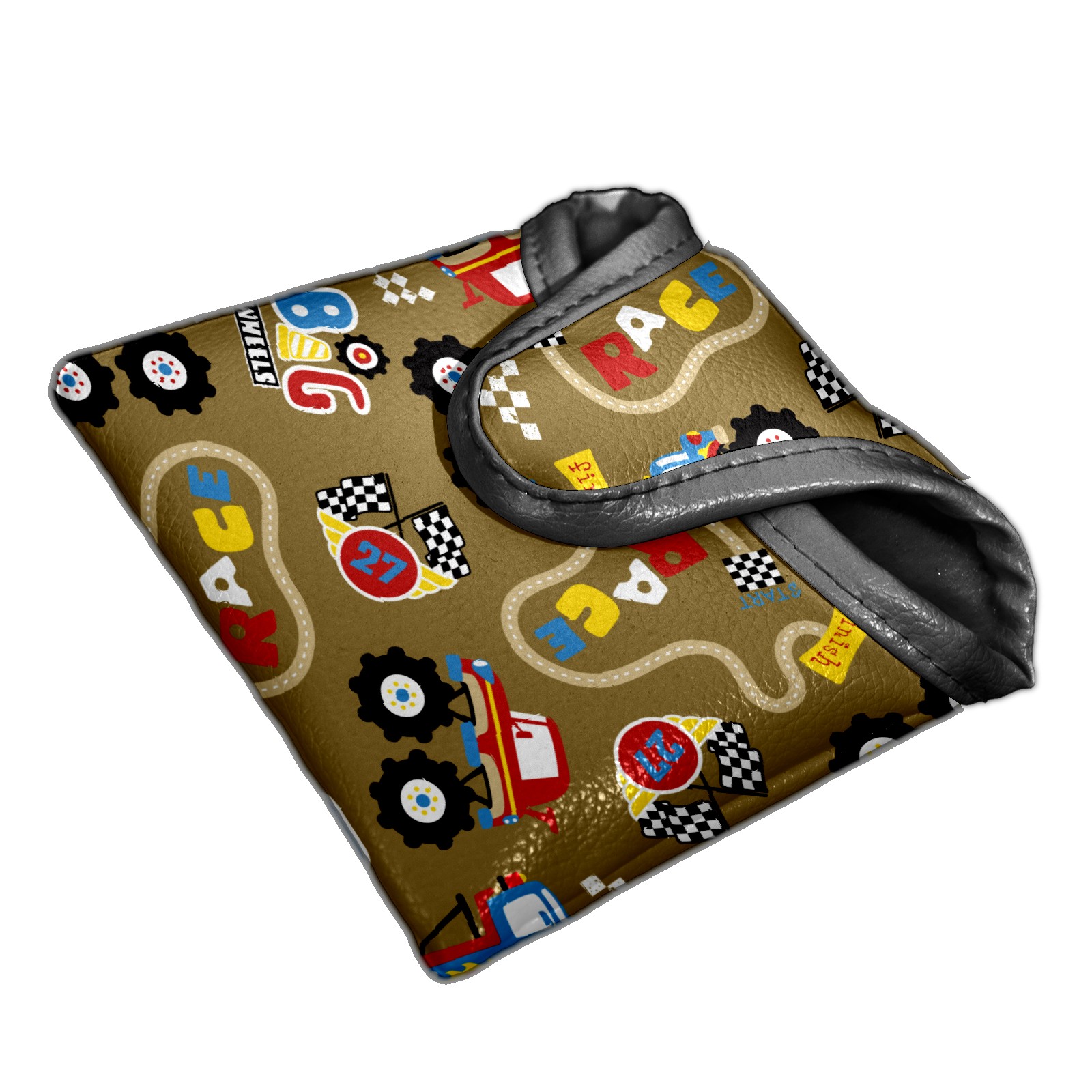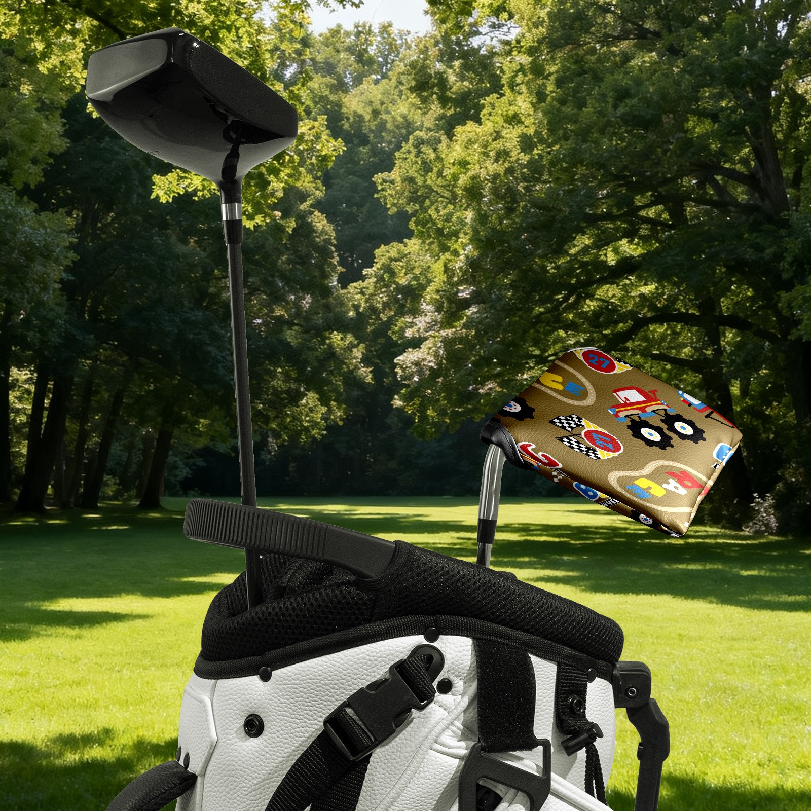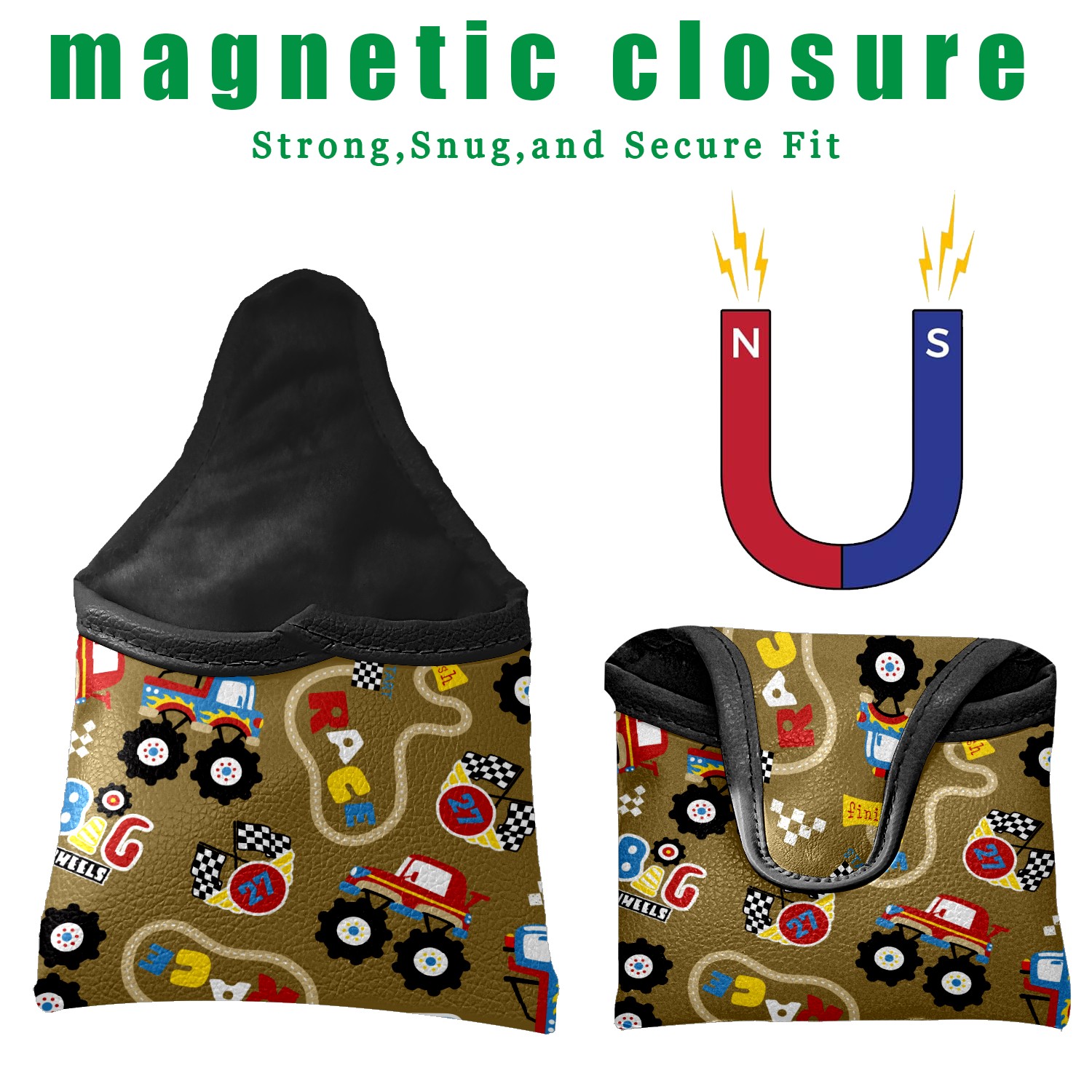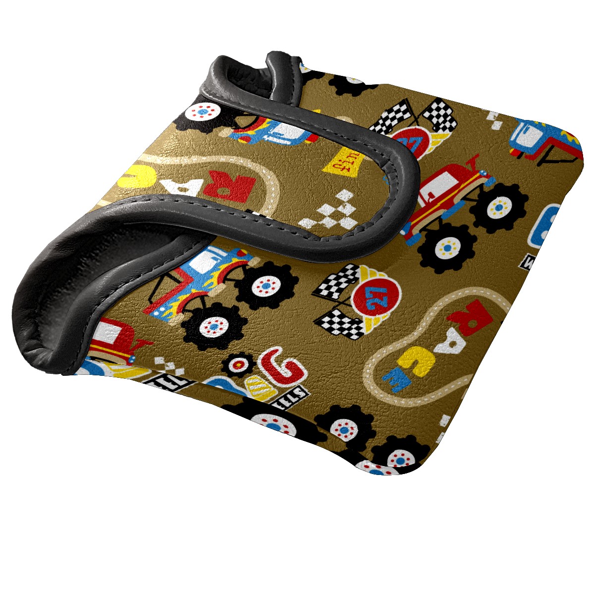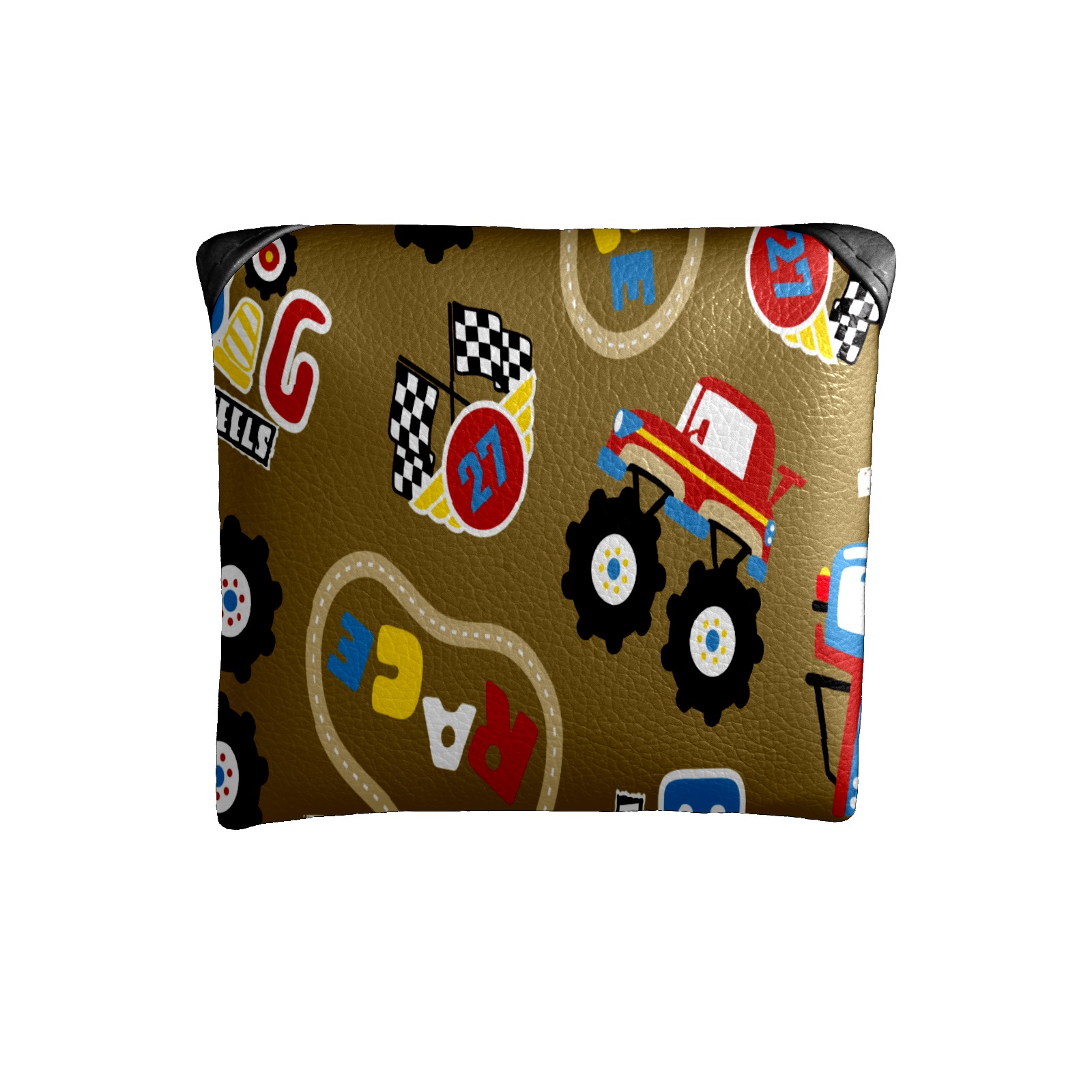 Mallet Putter Cover, PU Leather and Waterproof Golf Putter Cover, Golf Club Protective Case Fits Most Mallet Putters, Easily Slips on and Secures Vintage Retro Cartoon Monster Trucks Pattern