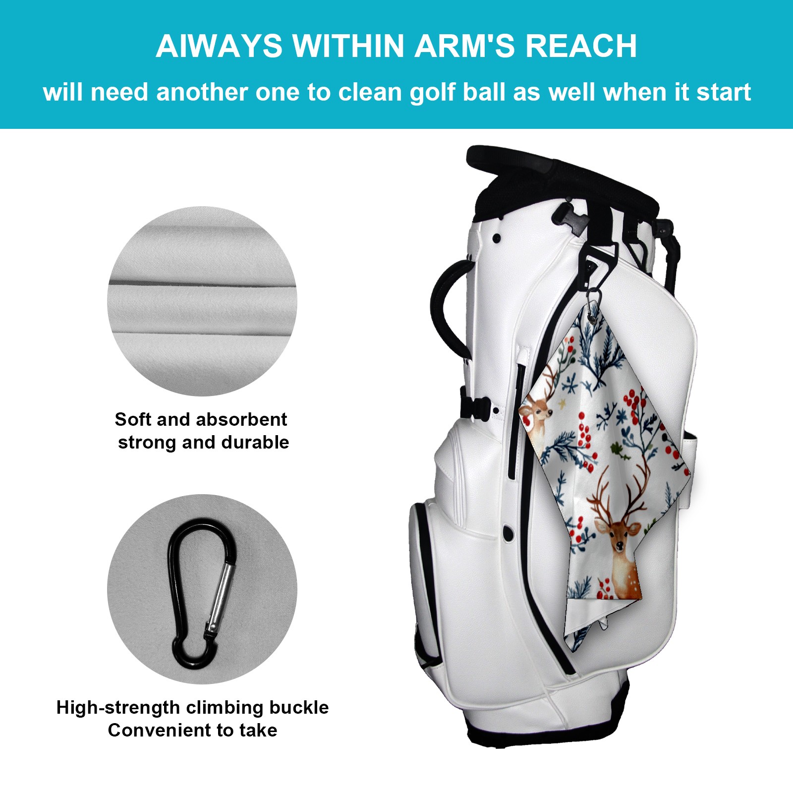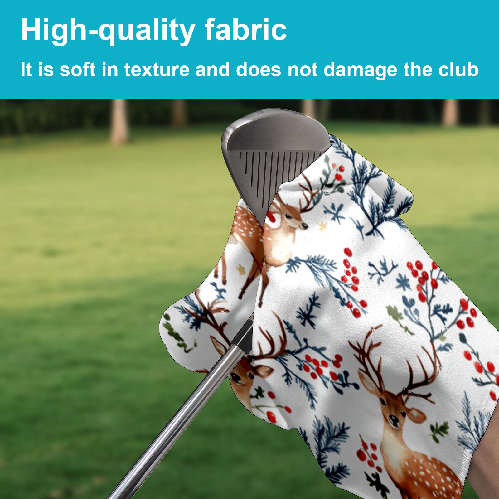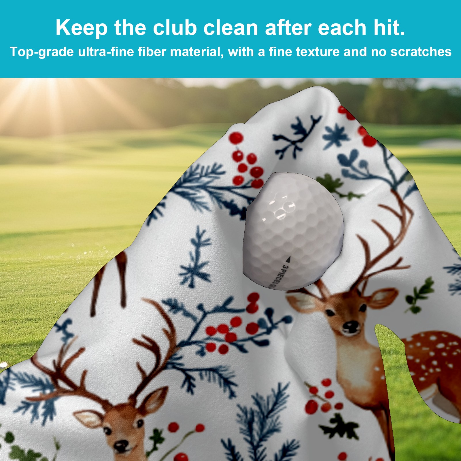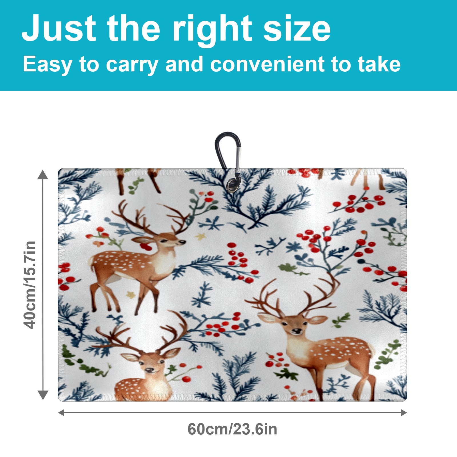 Golf Towel Microfiber Pocket Towels with Buckle Clip, Quick Dry Golf Ball Cleaner Accessories for Course Exercise TowelDeer And Berry Pattern